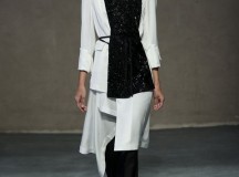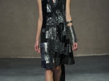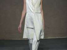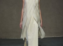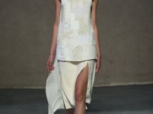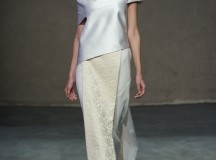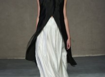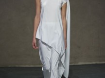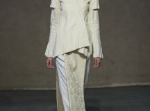 Une collection inspirée et inspirante donnant la part belle aux tuniques et autres robes de cérémonies. On pense à l’influence du Japon, à l’influence des robes de prêtres. Les matières se superposent, les broderies ton sur ton rajoutent finesse à une collection clair obscure.
