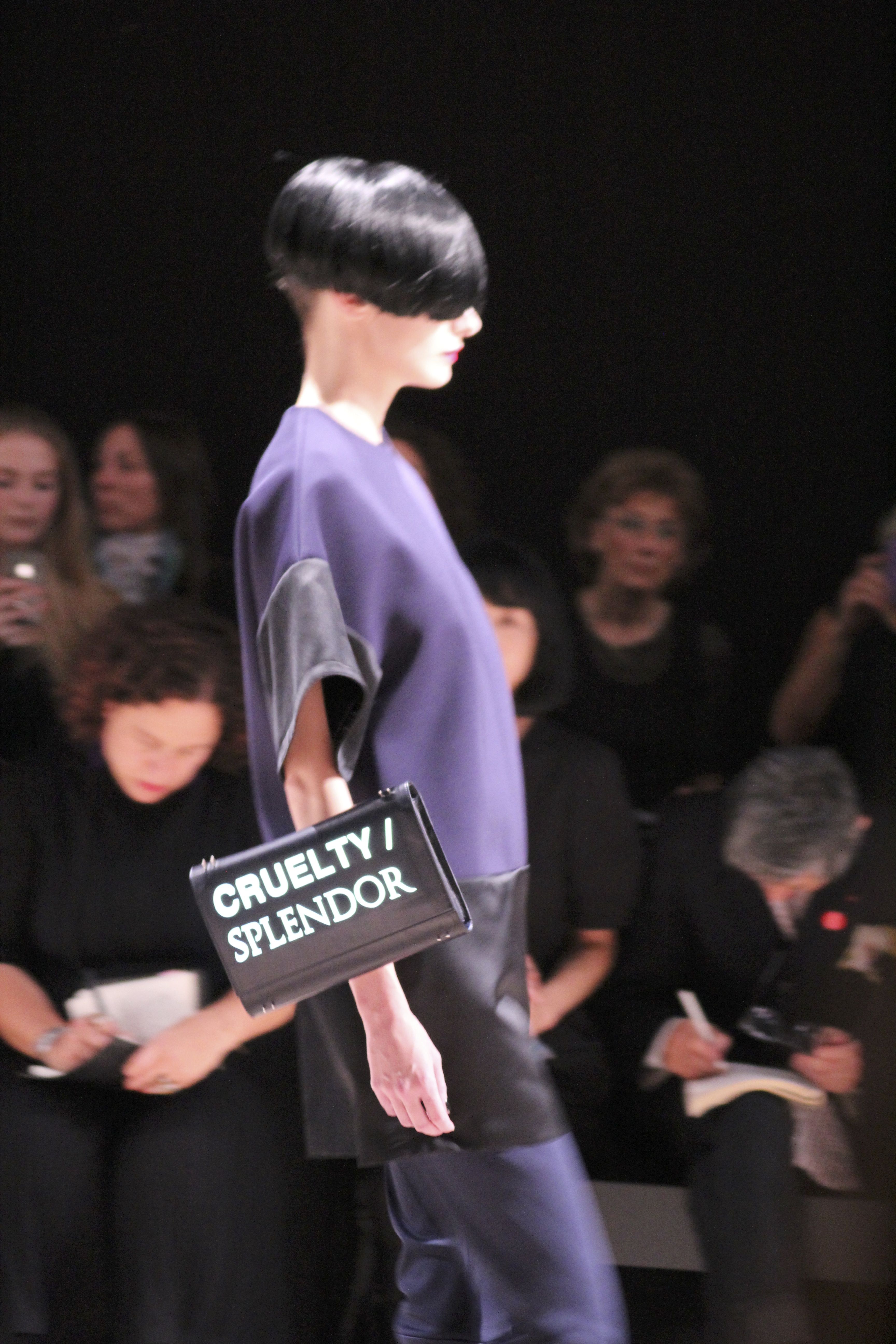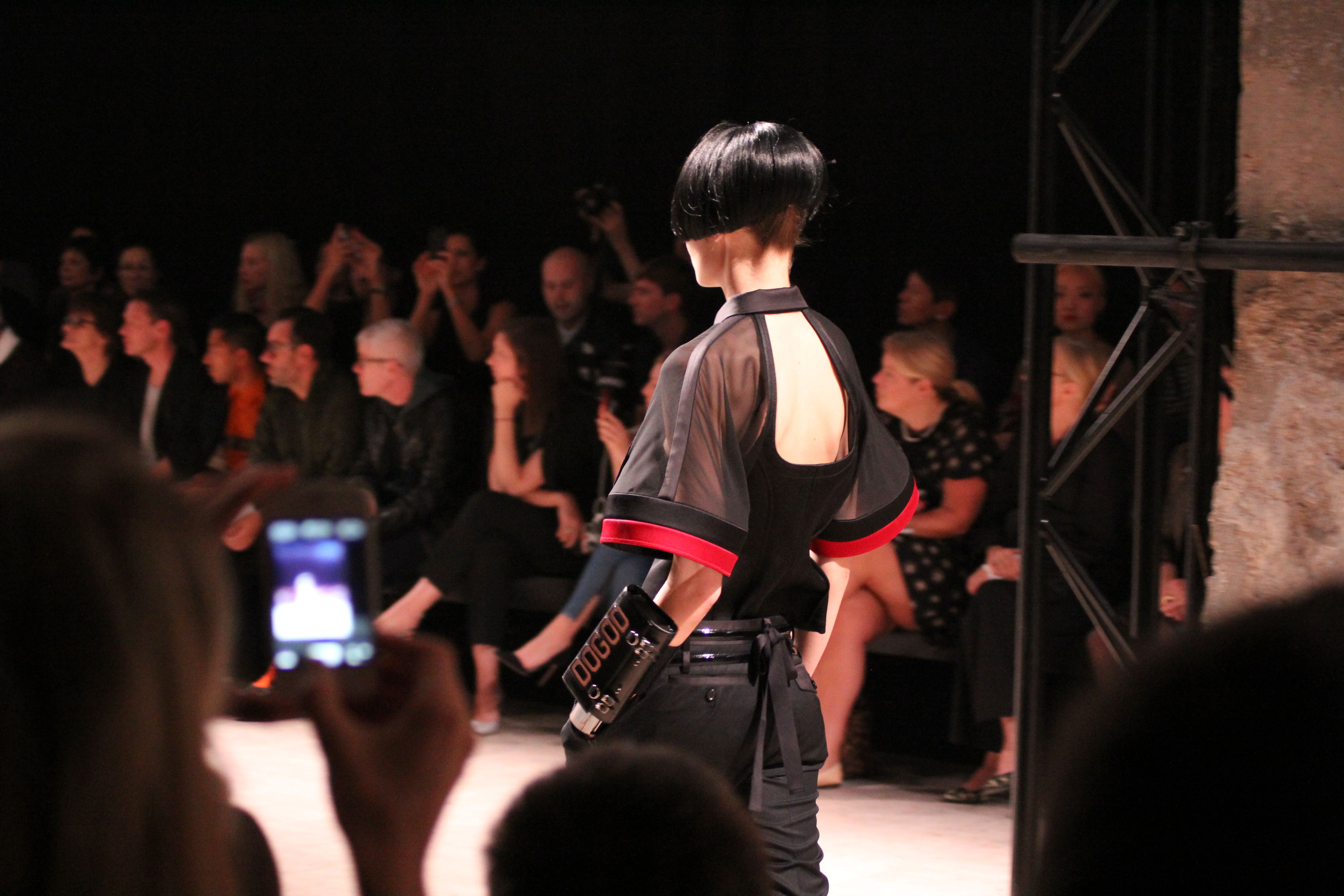 Conjoncture actuelle oblige, Undercover s’inspire de la femme anarchique, aux couleurs du combat, essentiellement composées de noir et de rouge, mais aussi de quelques touches de blanc et de bleu nuit. L’ajout de la broderie, pertinente, vient confirmer les sous-entendus du show, « CHAOS ».