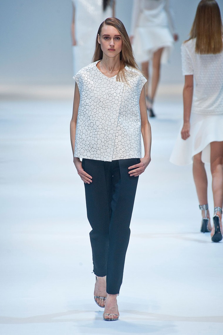 Guy Laroche est certainement une des maisons qui a su renaître de ses cendres ces dernières années. Saison après saison, nous découvrons avec plaisir la beauté de ses collections. Cette saison printemps été 2014, Guy Laroche nous propose une collection toute en finesse misant sur les effets de matières et la pureté des lignes et des coupes. Des coupes toujours millimétrées pour une femme résolument moderne.