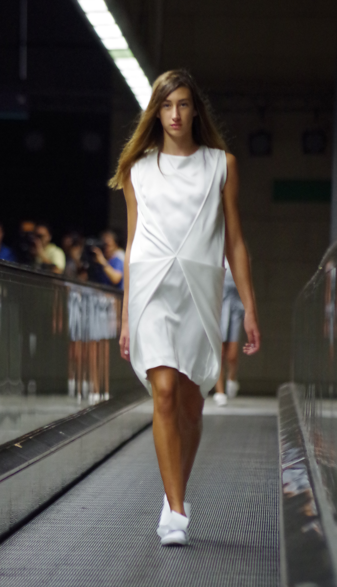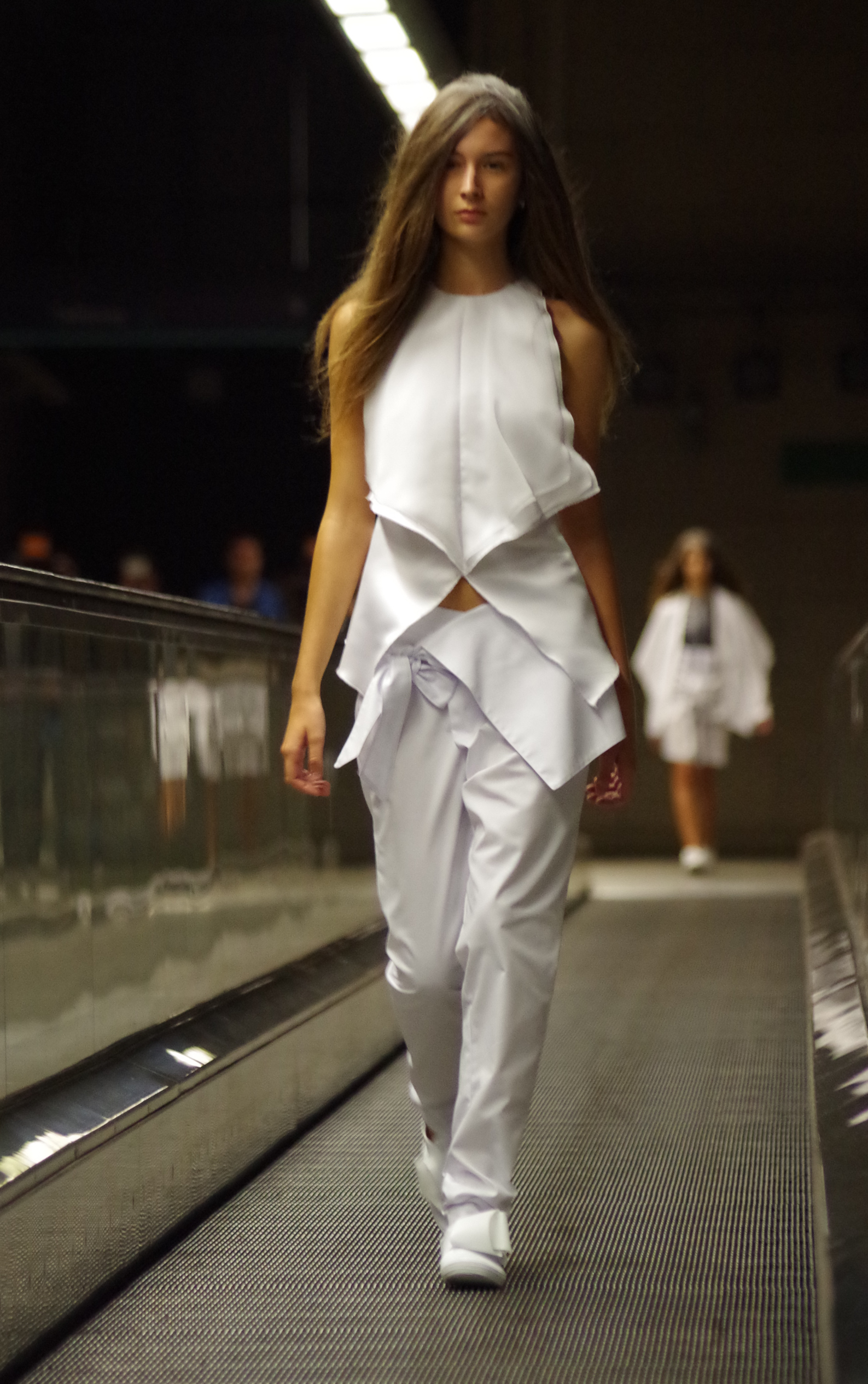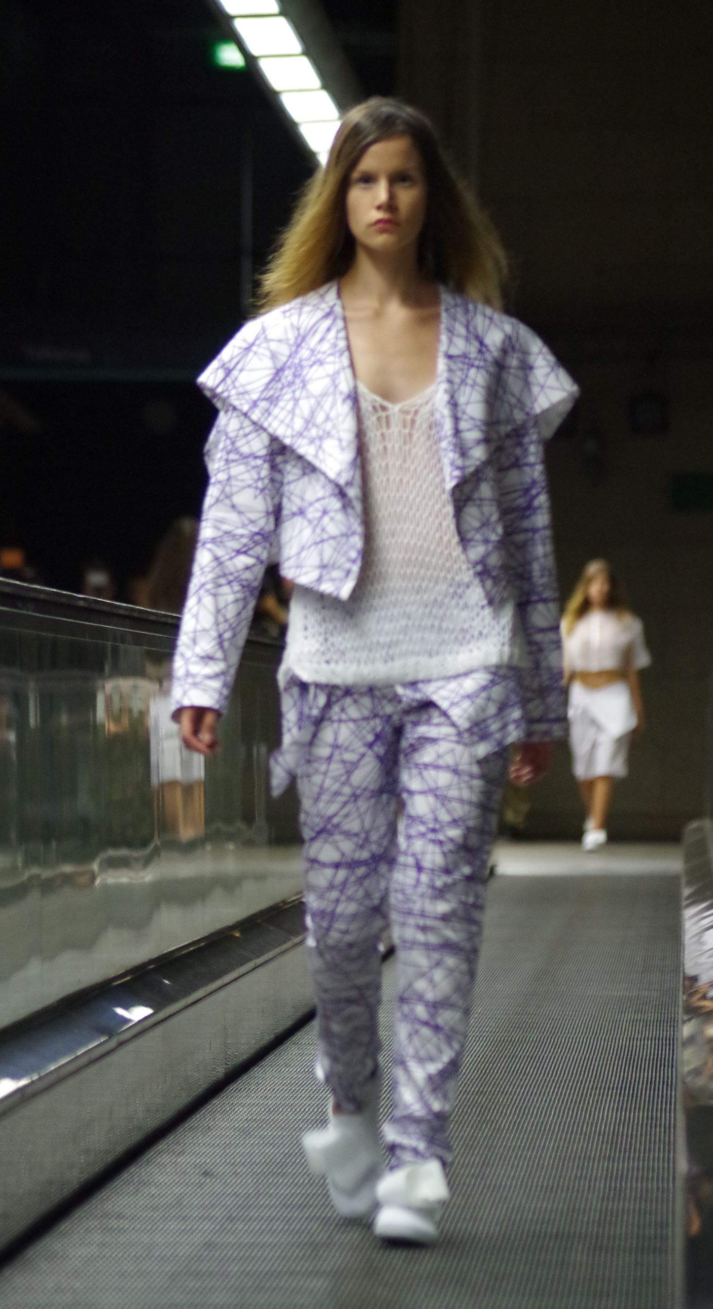 Andreia Lexim, jeune créatrice talentueuse présentait à Lisbonne sa collection Printemps Eté inspirée par les livres. Papier, livres, pliages, gribouillages sont à l’honneur. « turn the page » regroupe ainsi des pièces 3d en papier qui ont ensuite été transposé à des moules réels. On assiste alors à une confrontation entre matières rigdes et matières fluides.