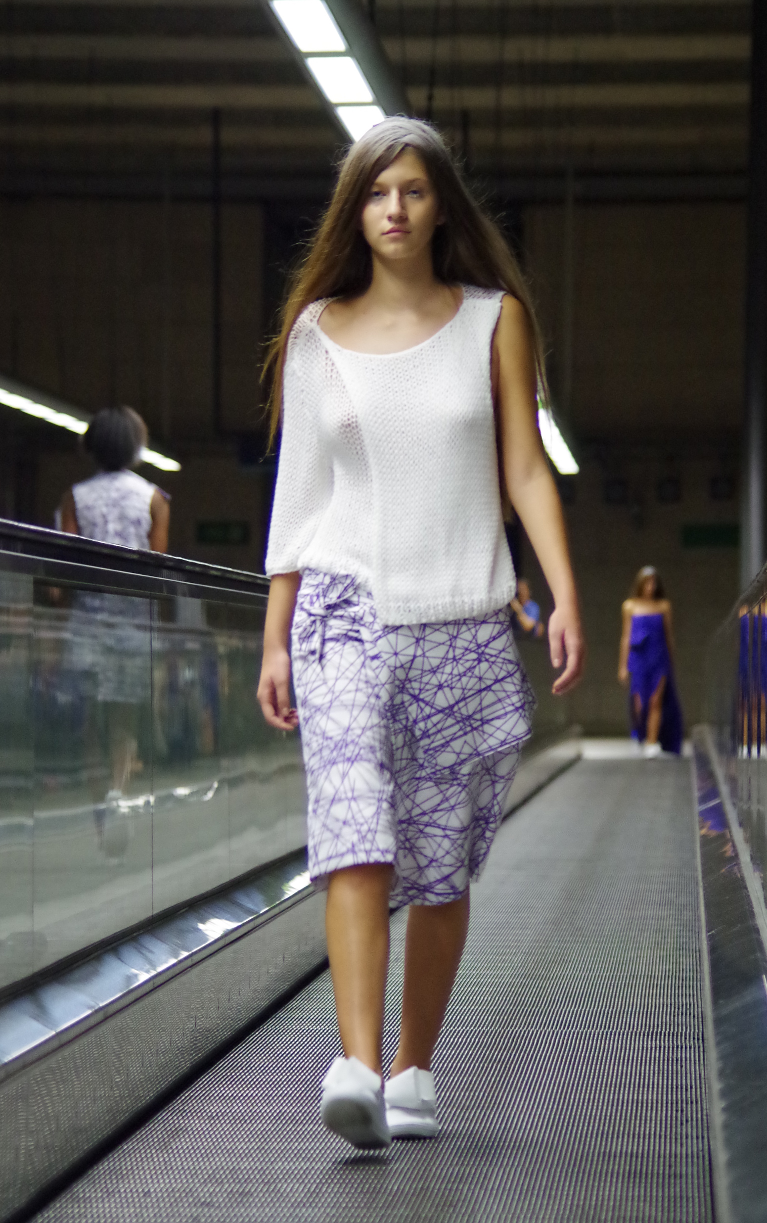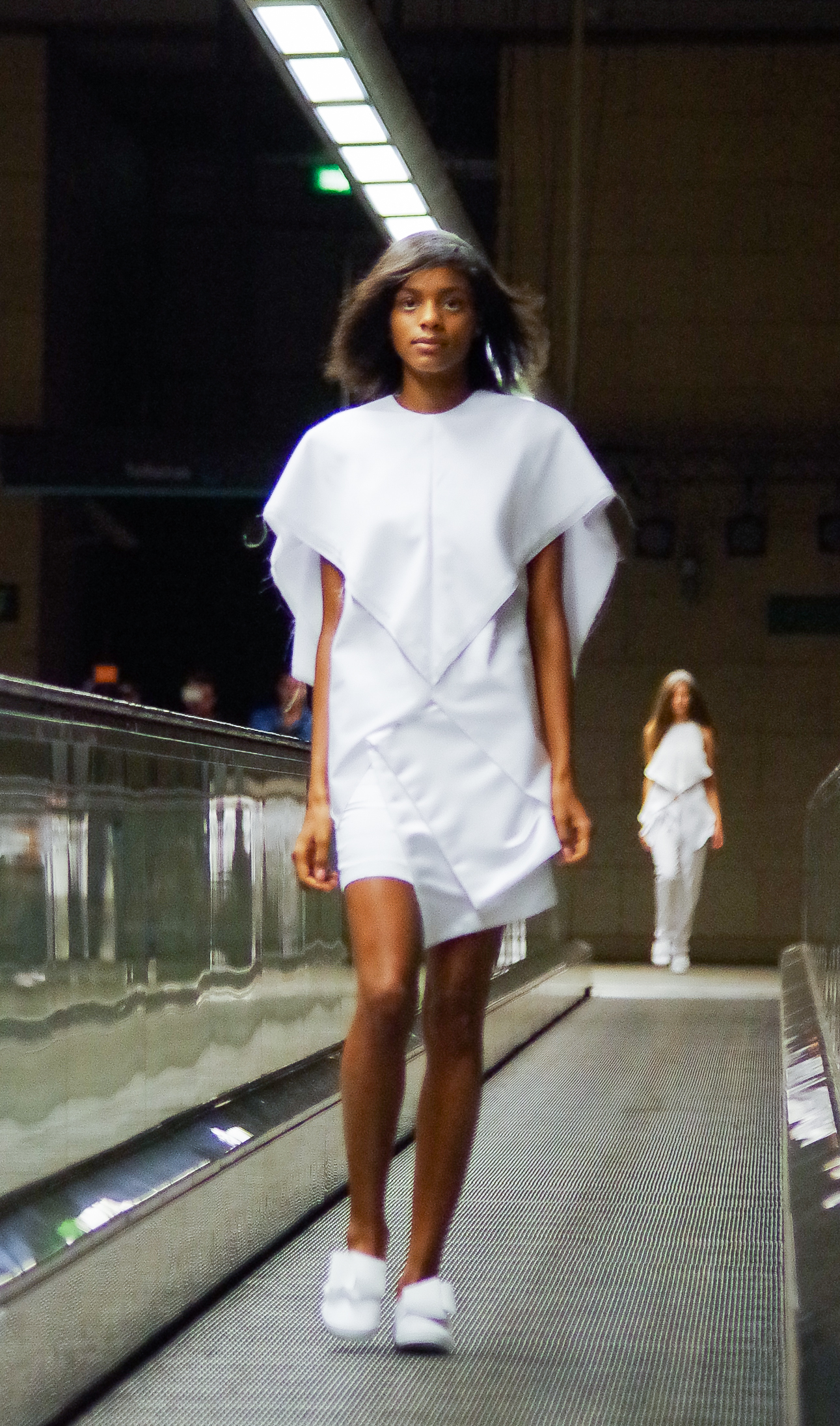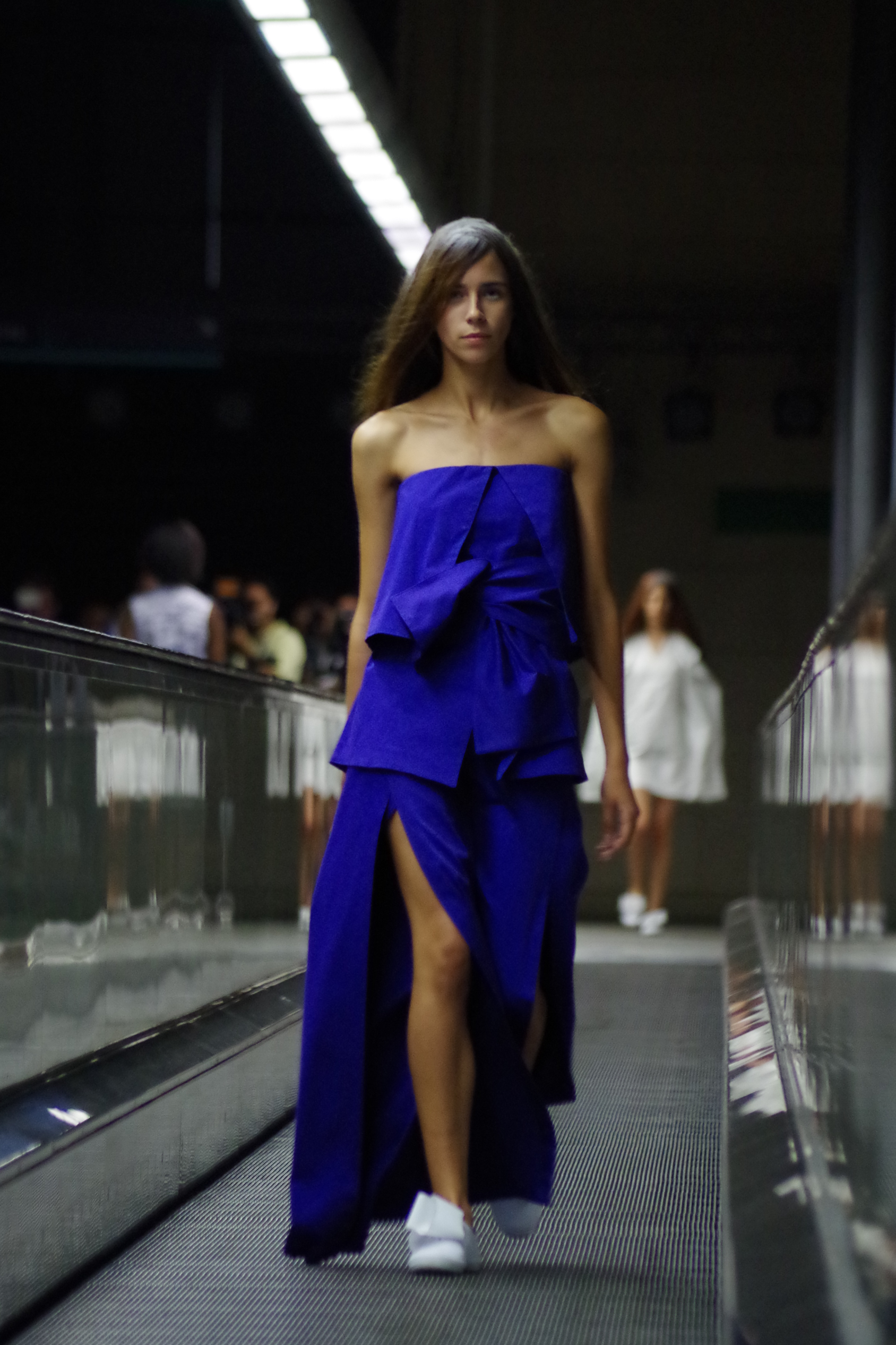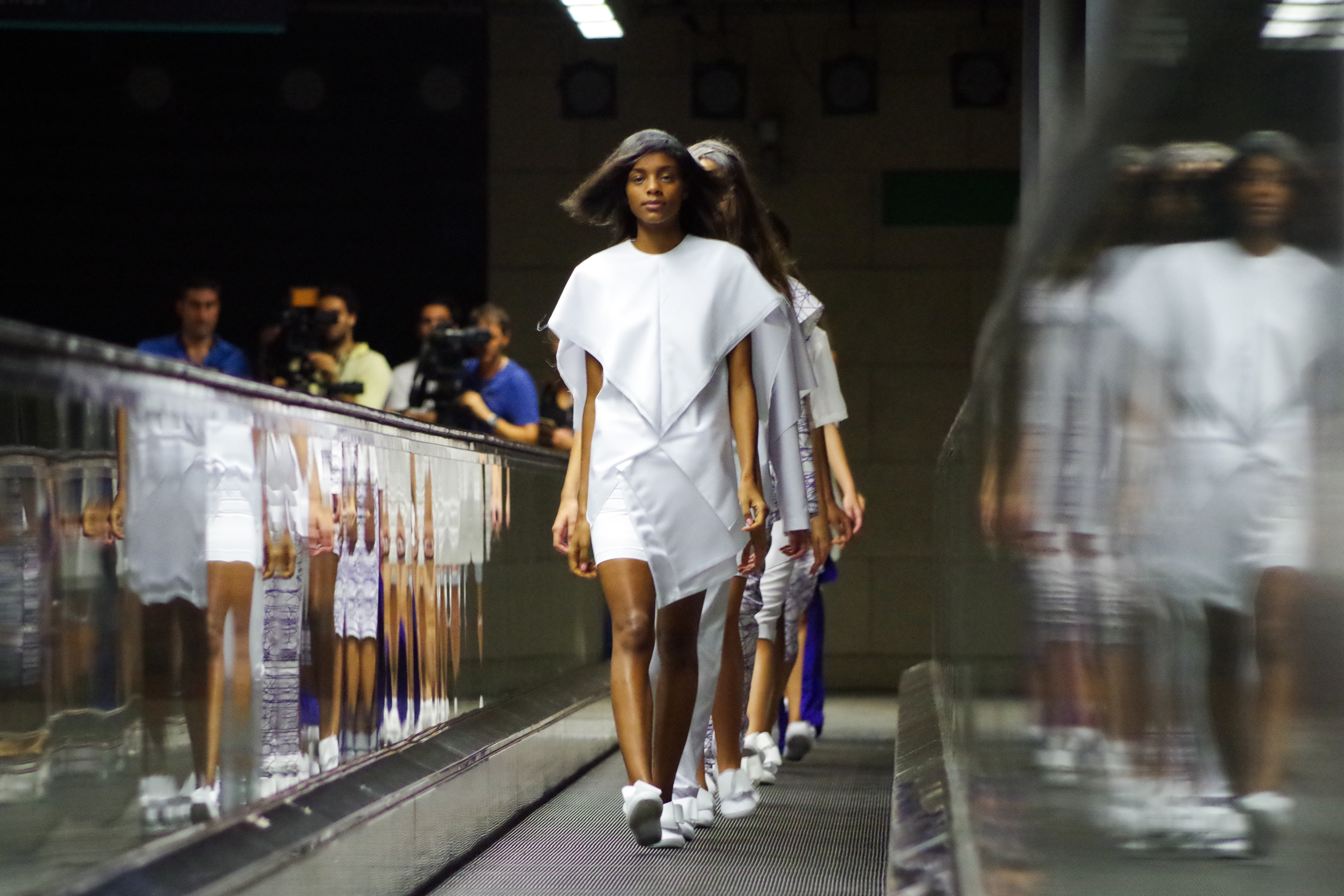 Andreia Lexim, jeune créatrice talentueuse présentait à Lisbonne sa collection Printemps Eté inspirée par les livres. Papier, livres, pliages, gribouillages sont à l’honneur. « turn the page » regroupe ainsi des pièces 3d en papier qui ont ensuite été transposé à des moules réels. On assiste alors à une confrontation entre matières rigdes et matières fluides.