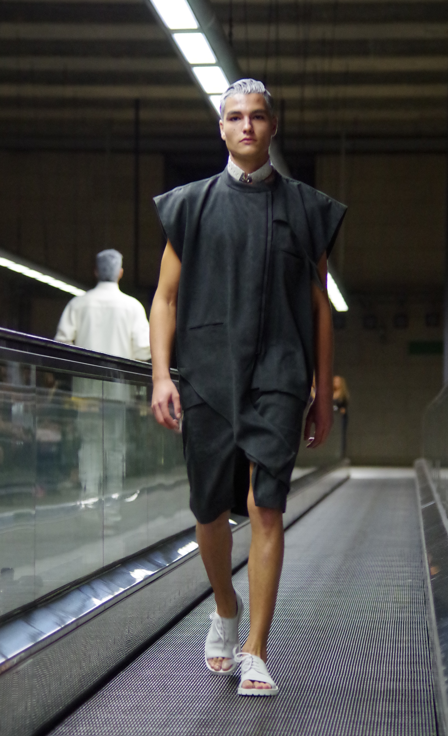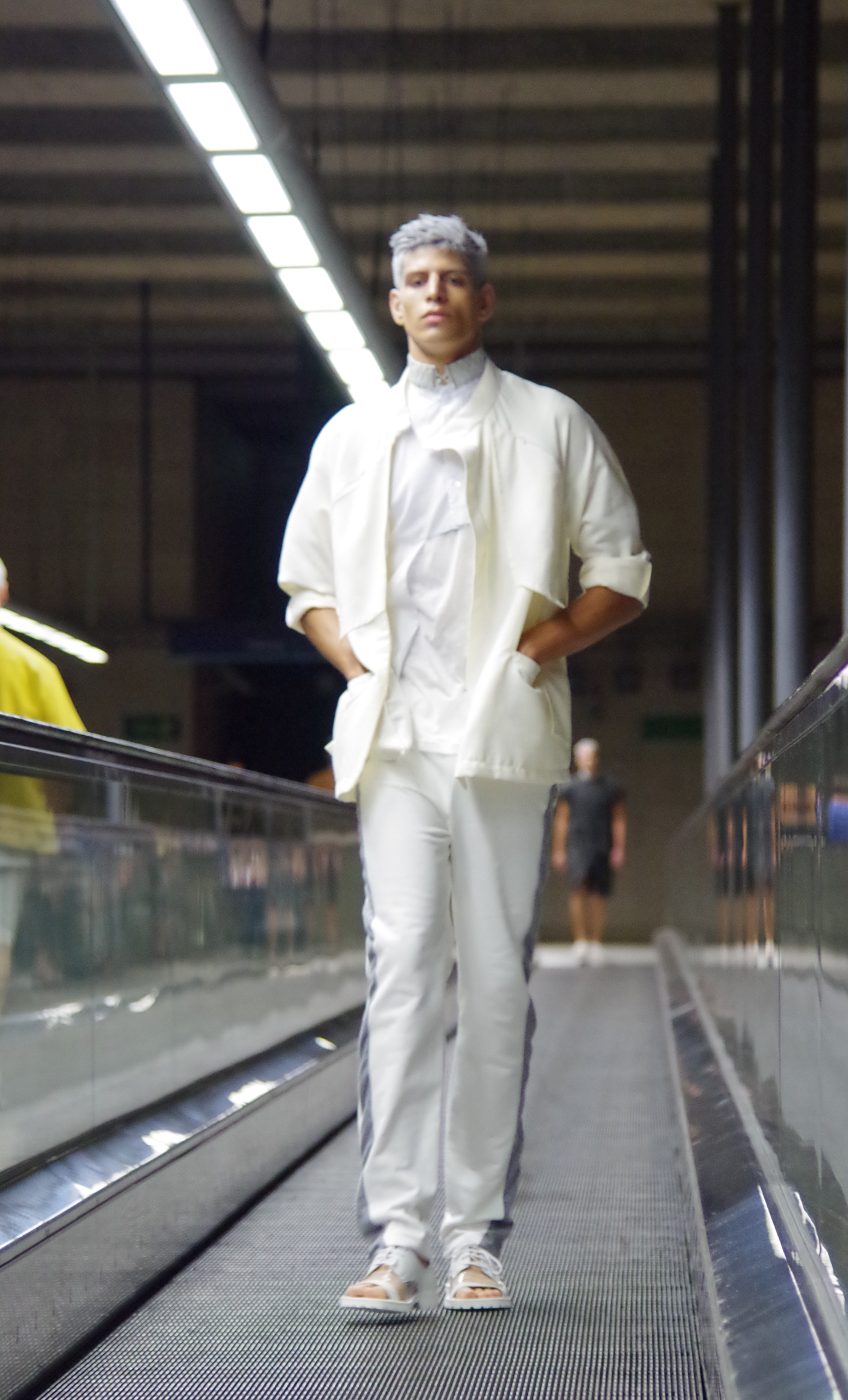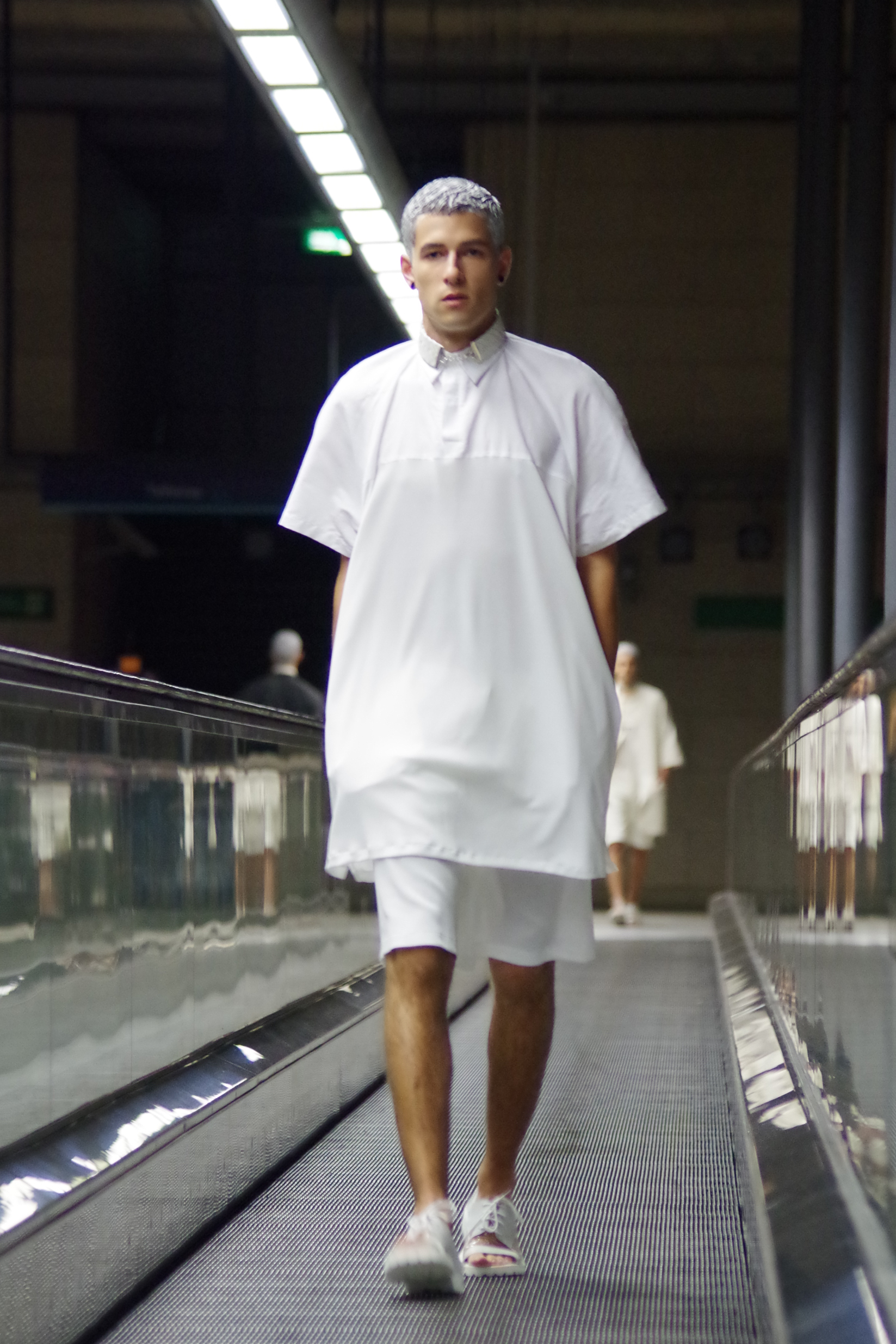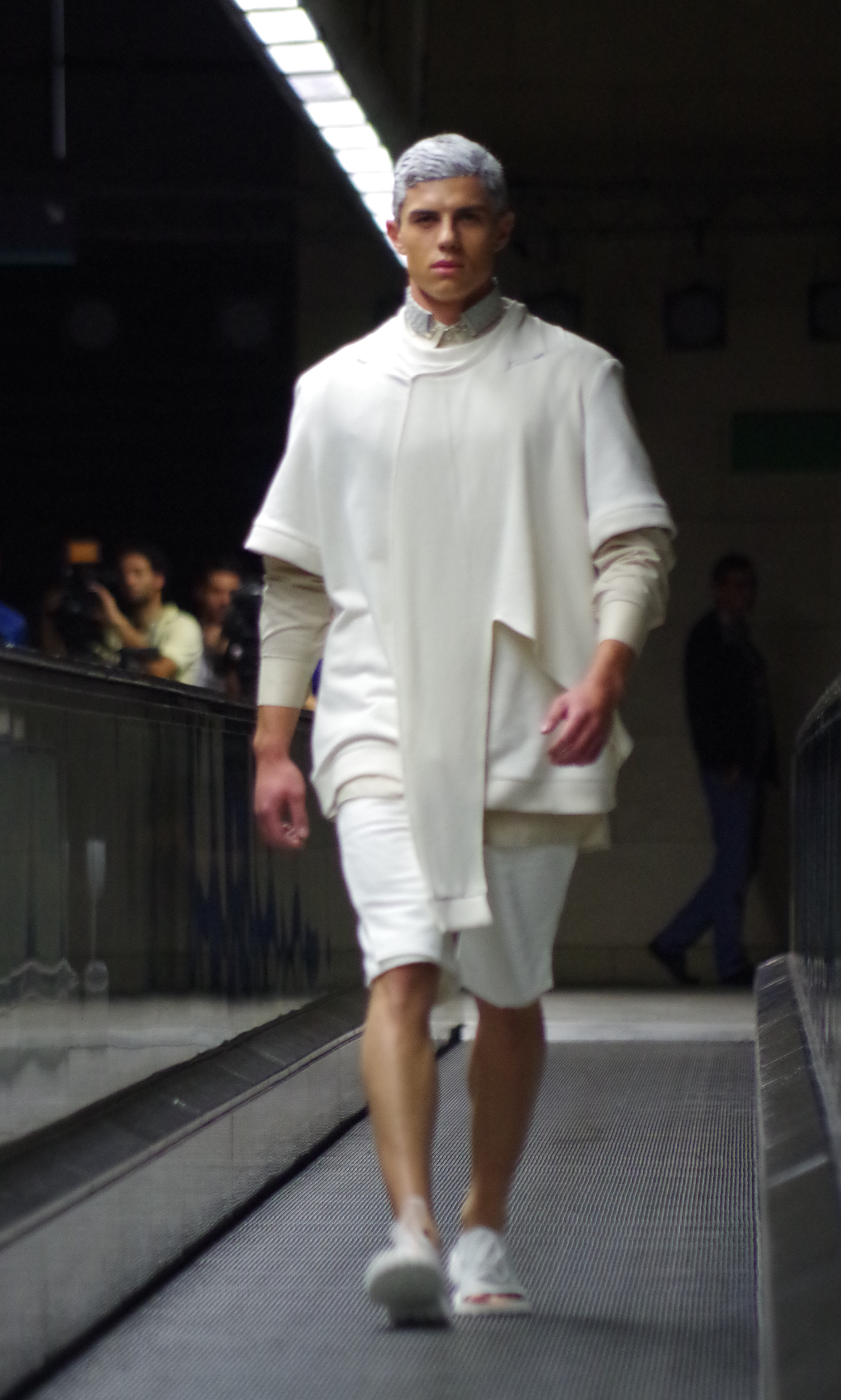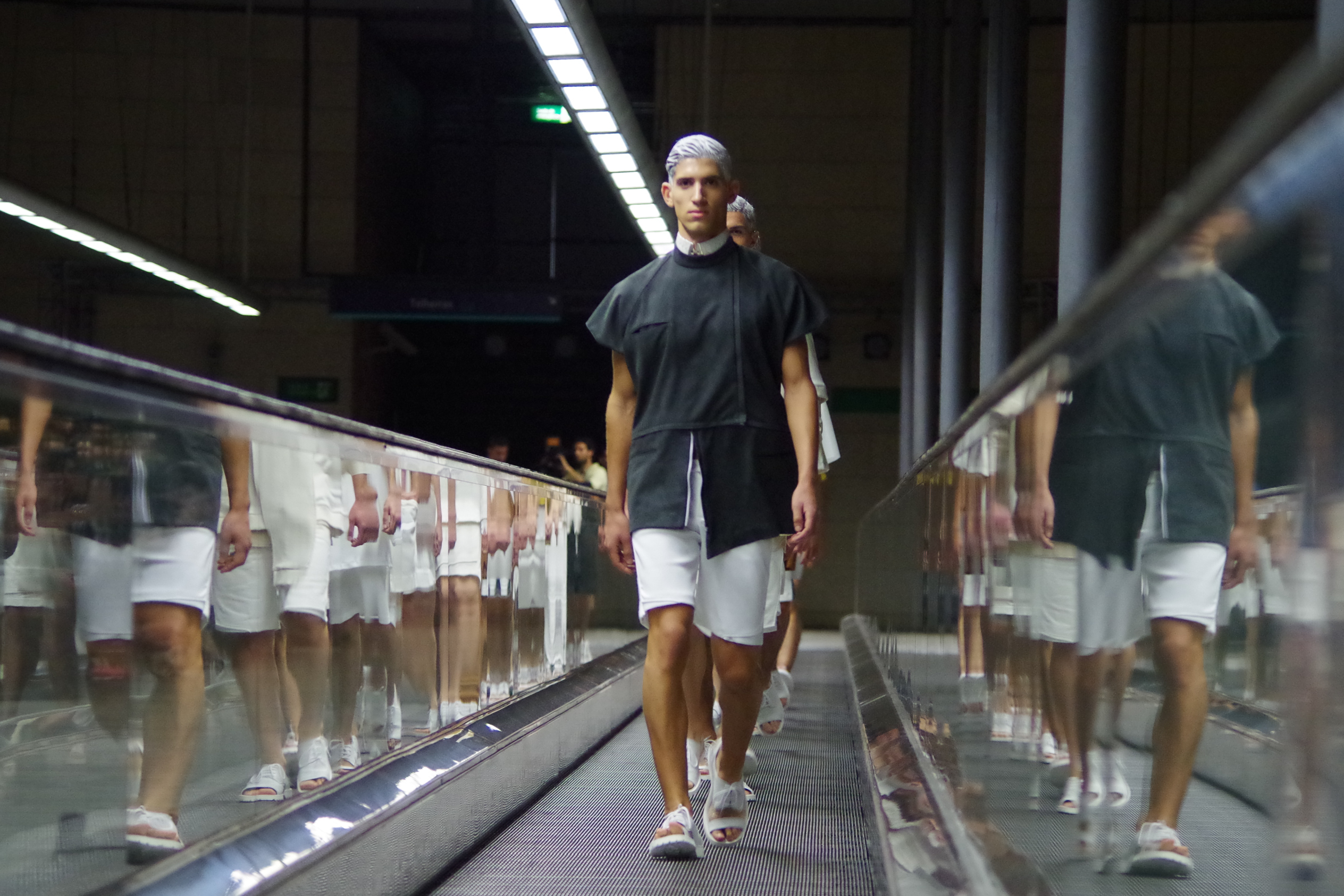 Gonçalo Pascoa, jeune créateur portugais présentait ses collections au Bloom. Inspirée par l’espace, sa collection « Astroman » mélange sportswear et streetwear en utilisant des matériaux audacieux.