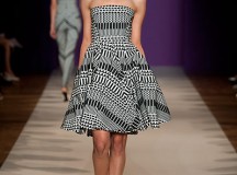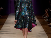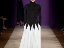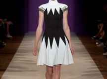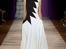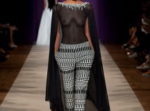 Inspirée par une rencontre avec Barbara Streisand, cette collection rend hommage au glamour avec une silhouette forte. Juxtaposition de matières, épaule fortes, cols accentués, cape. Utilisant le noir et blanc pour du coton piqué, la crêpe de soie, le jacquard. Une inspiration graphique avec hologrammes et coupures aux lasers. Les pièces maîtresses sont le jacquard « piano » , les robes à haut col, la robe arlequin.