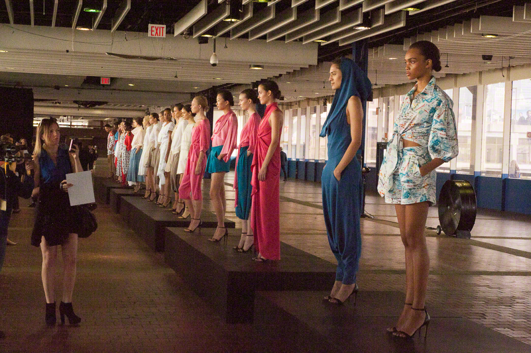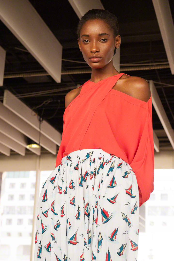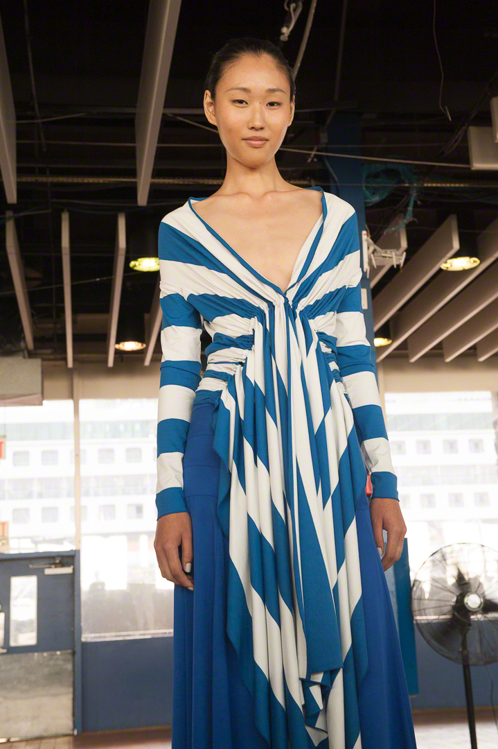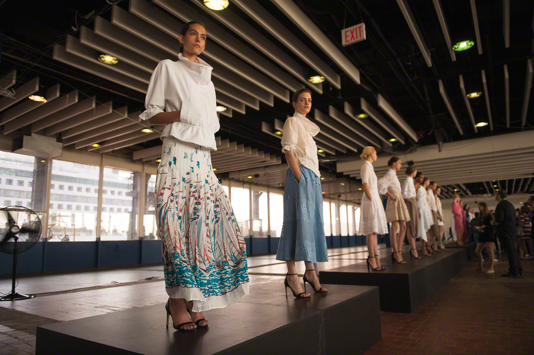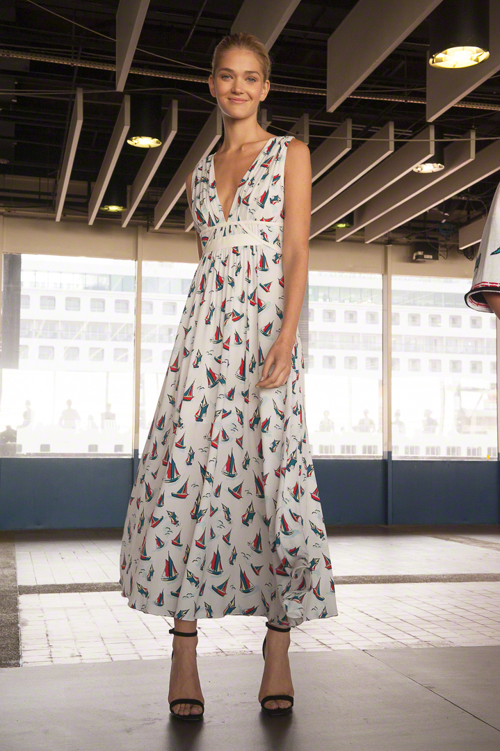 Catherine Malandrino présentait à New York dans le cadre d’un ancien entrepôt des docks. Une collection prénommée « Les voiles de Saint Tropez », hommage à l’été au bord de la méditerranée où les bateaux à voiles déploient leurs longues voiles. C’est un peu comme des voiles déployées au vent qui ondulent et qui s’animent au grès du vent que cette collection vie misant sur la fluidité et des silhouettes amples. Un voyage au bord de la méditerranée que nous avons grandement apprécié.