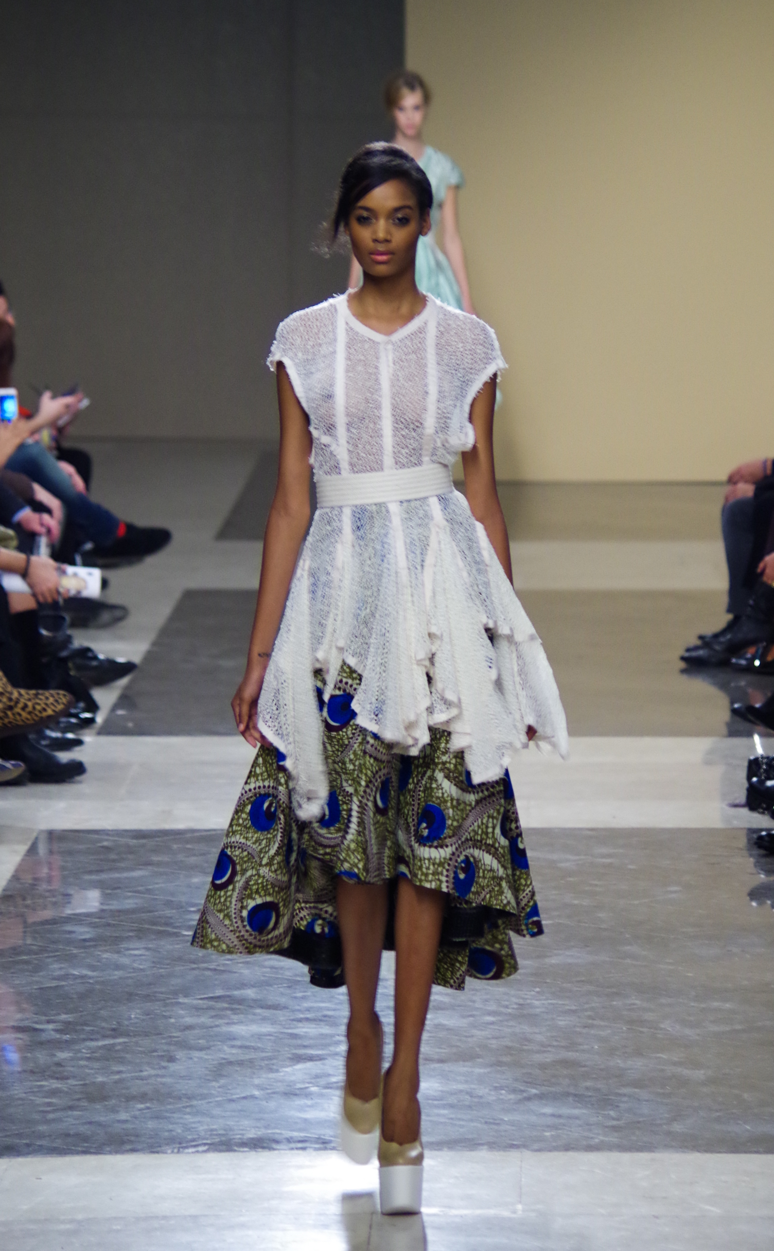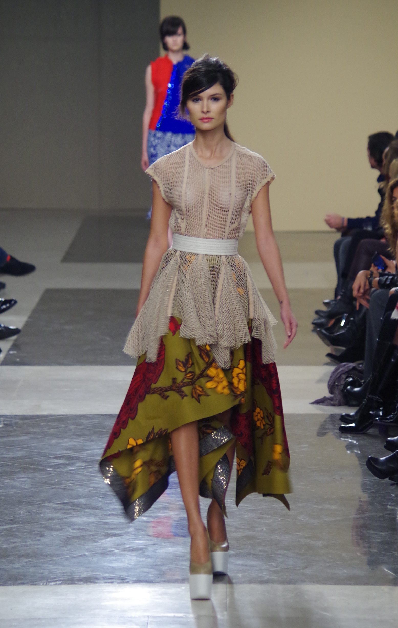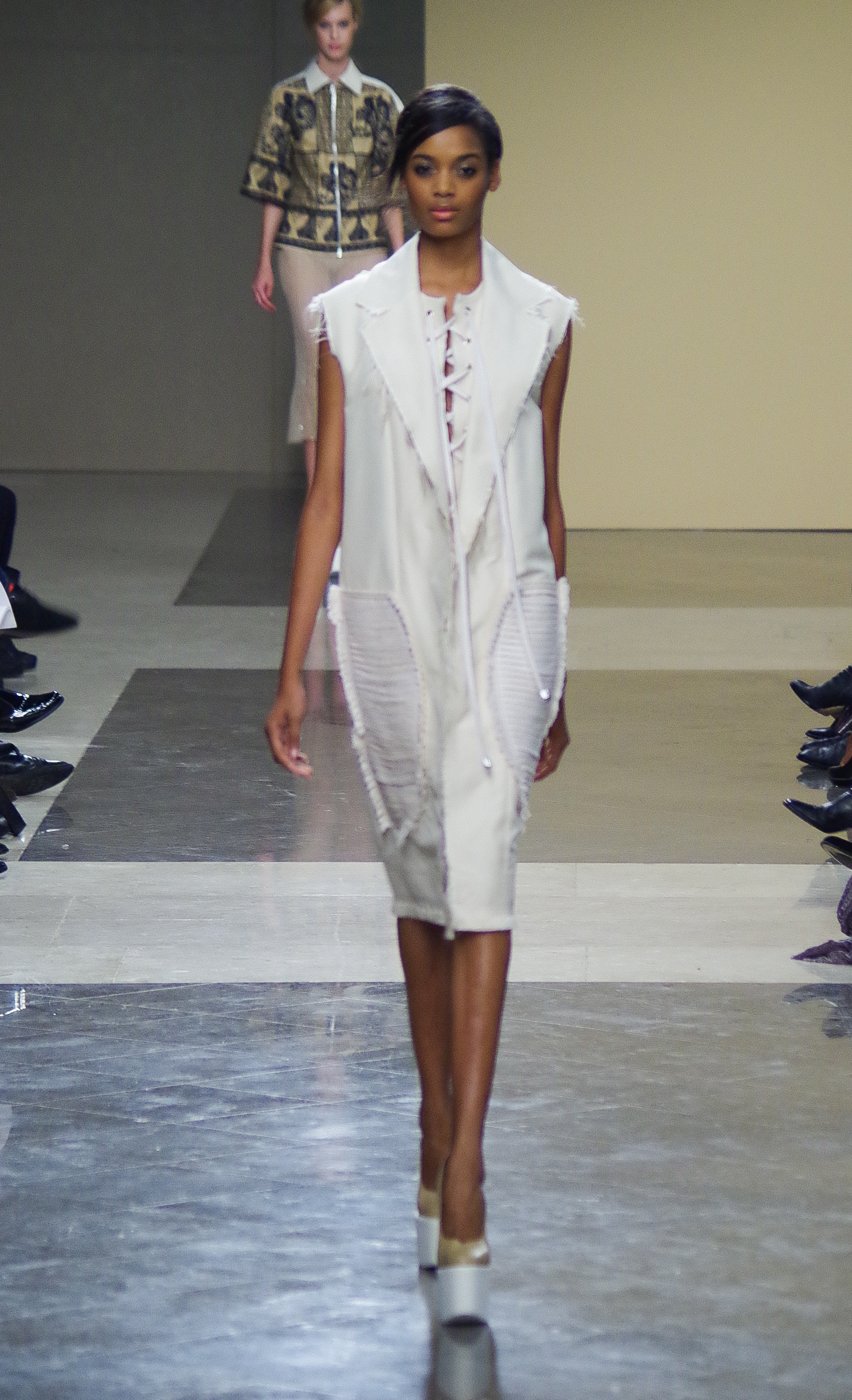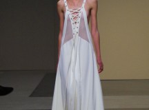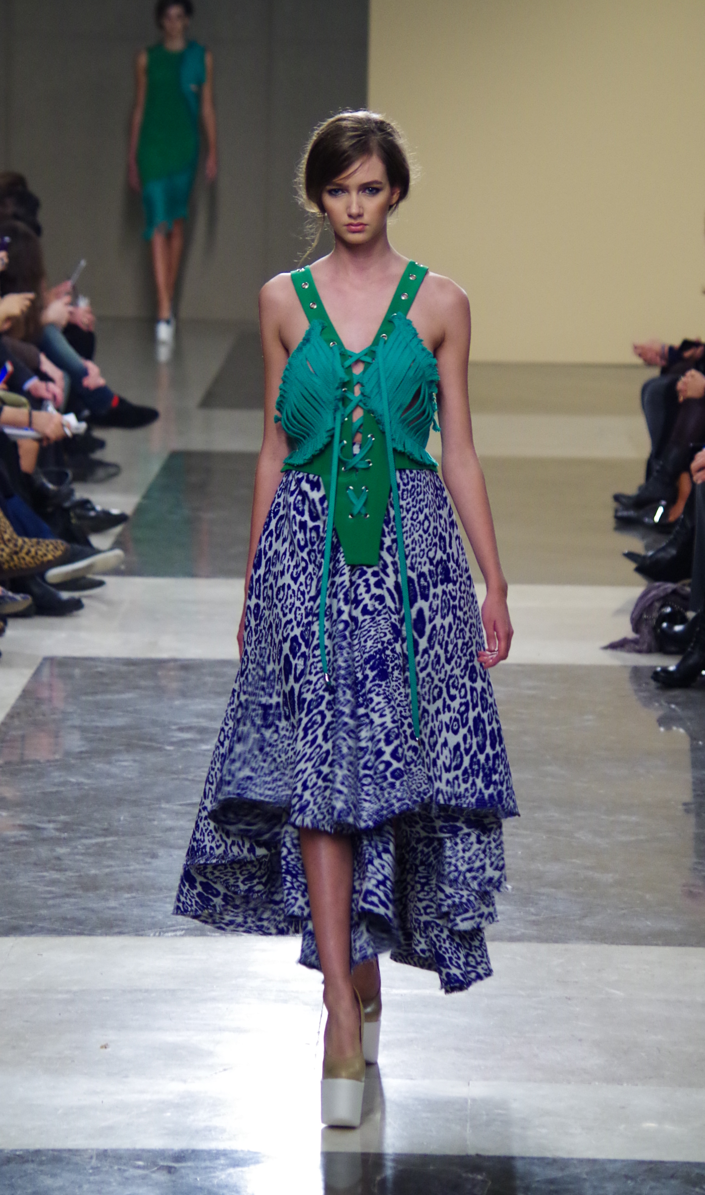 Une collection ultra-féminine jouant sur les matières, les lacets, les broderies, les vêtements déchirés. Des silhouettes modernes qui s’illuminent au grès des couleurs et des imprimés d’inspiration amérindienne pour finir sur un élan de noir.