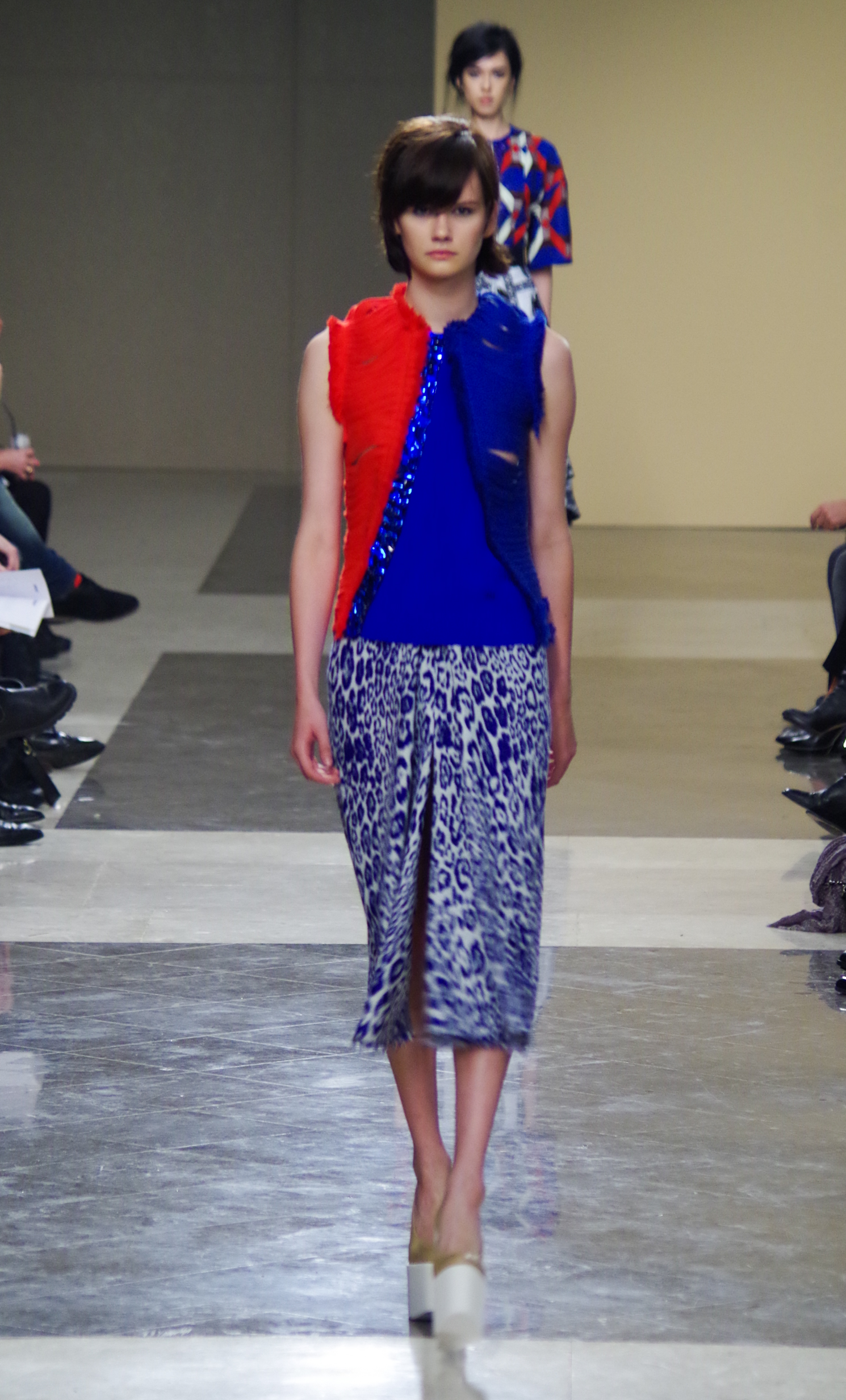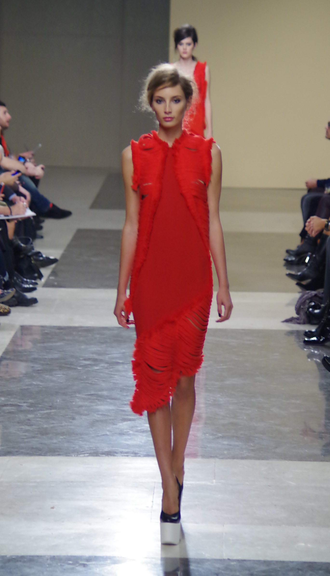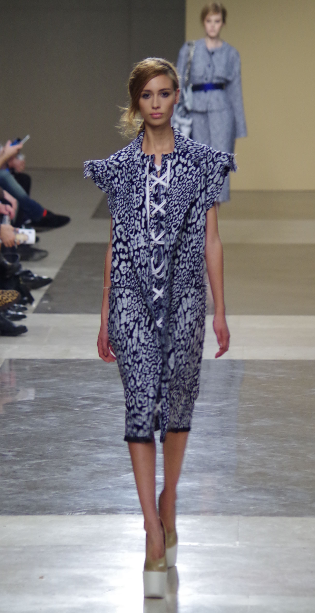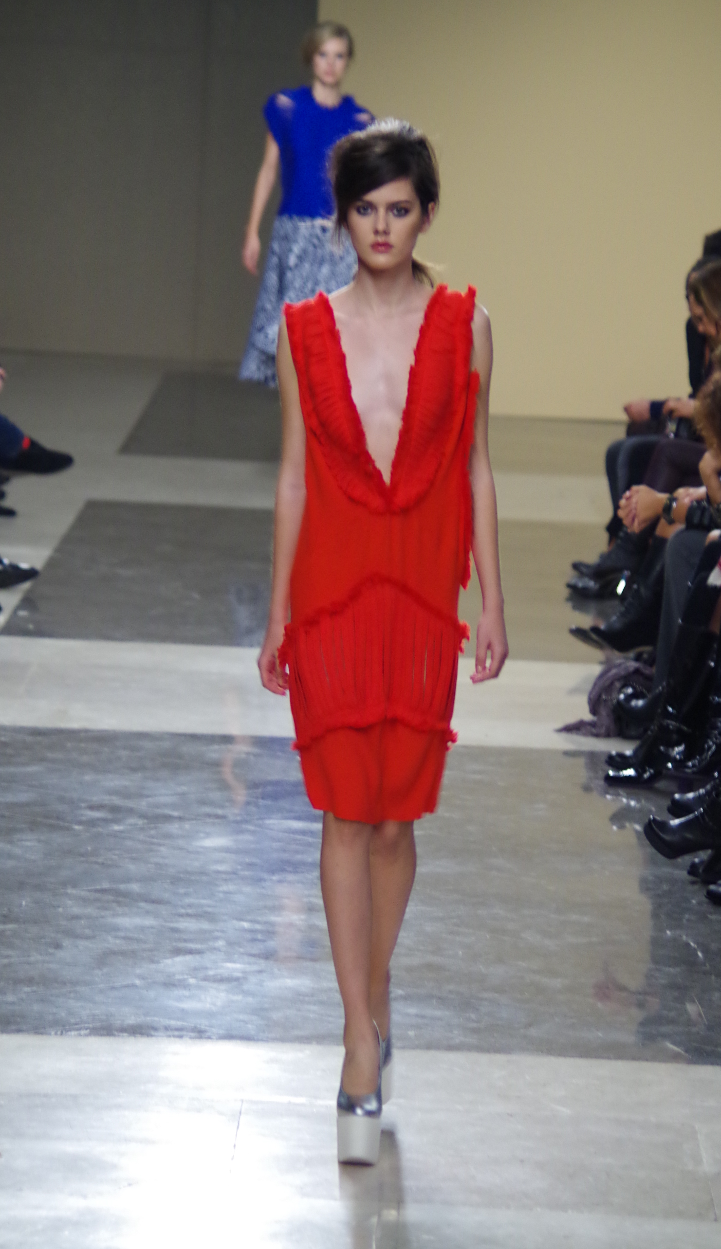 Une collection ultra-féminine jouant sur les matières, les lacets, les broderies, les vêtements déchirés. Des silhouettes modernes qui s’illuminent au grès des couleurs et des imprimés d’inspiration amérindienne pour finir sur un élan de noir.