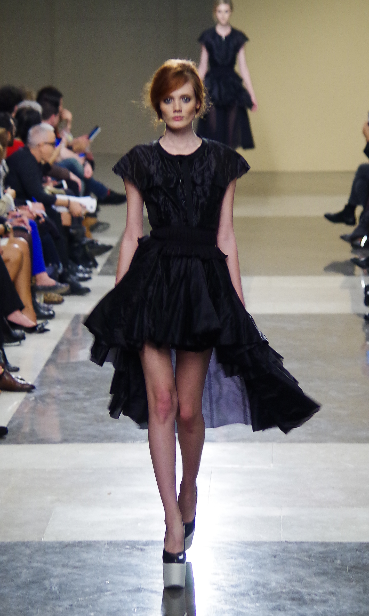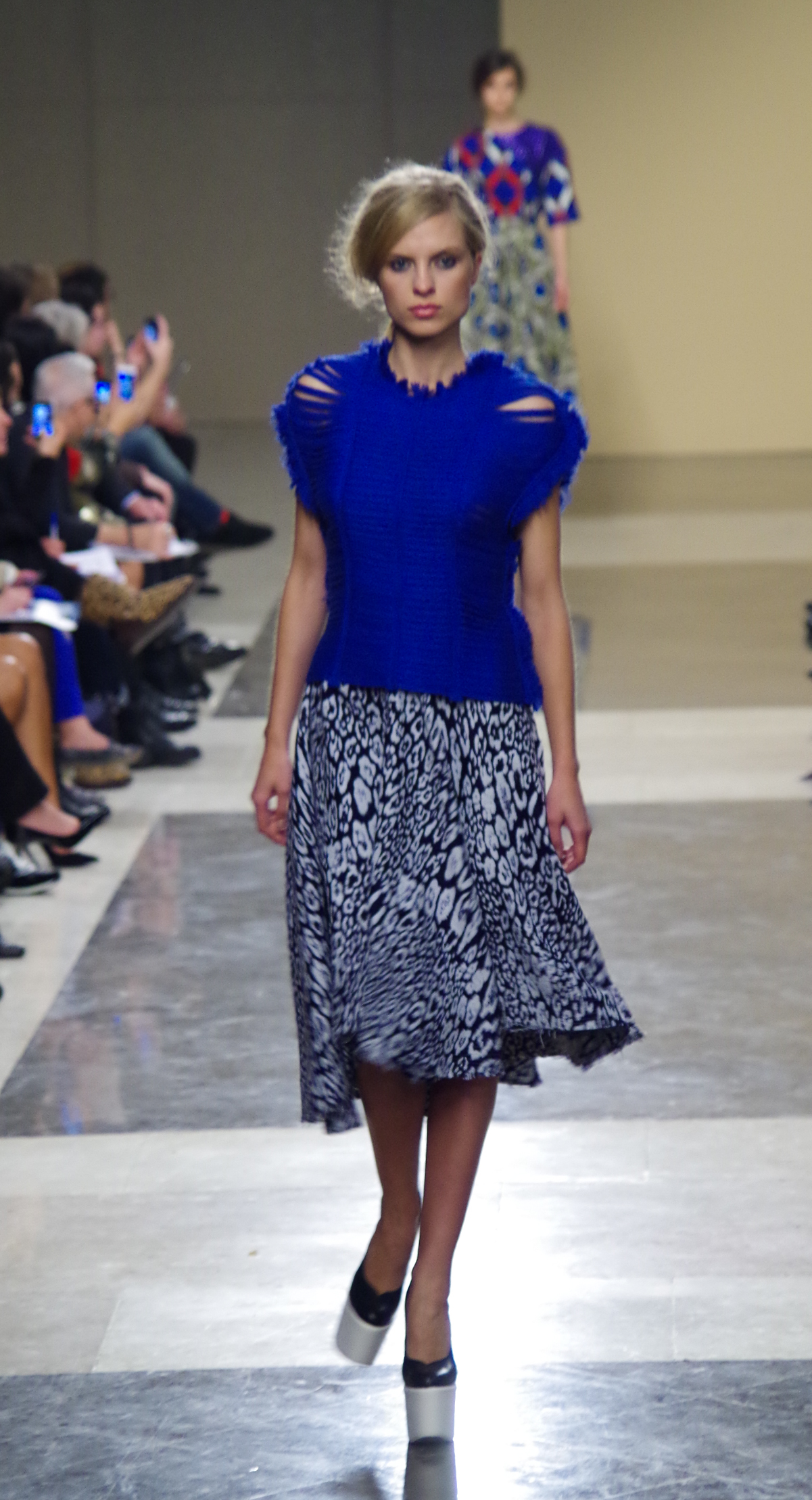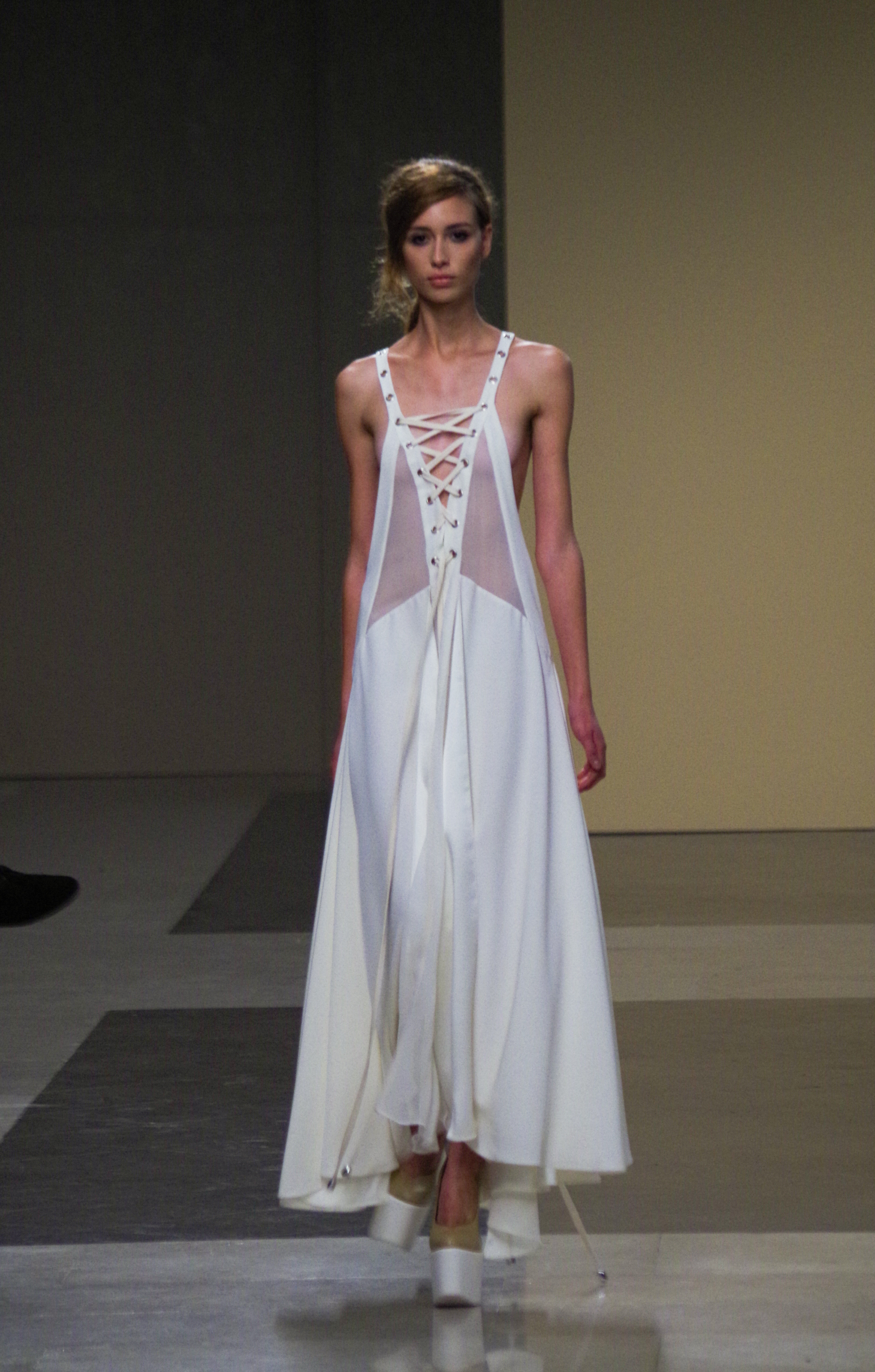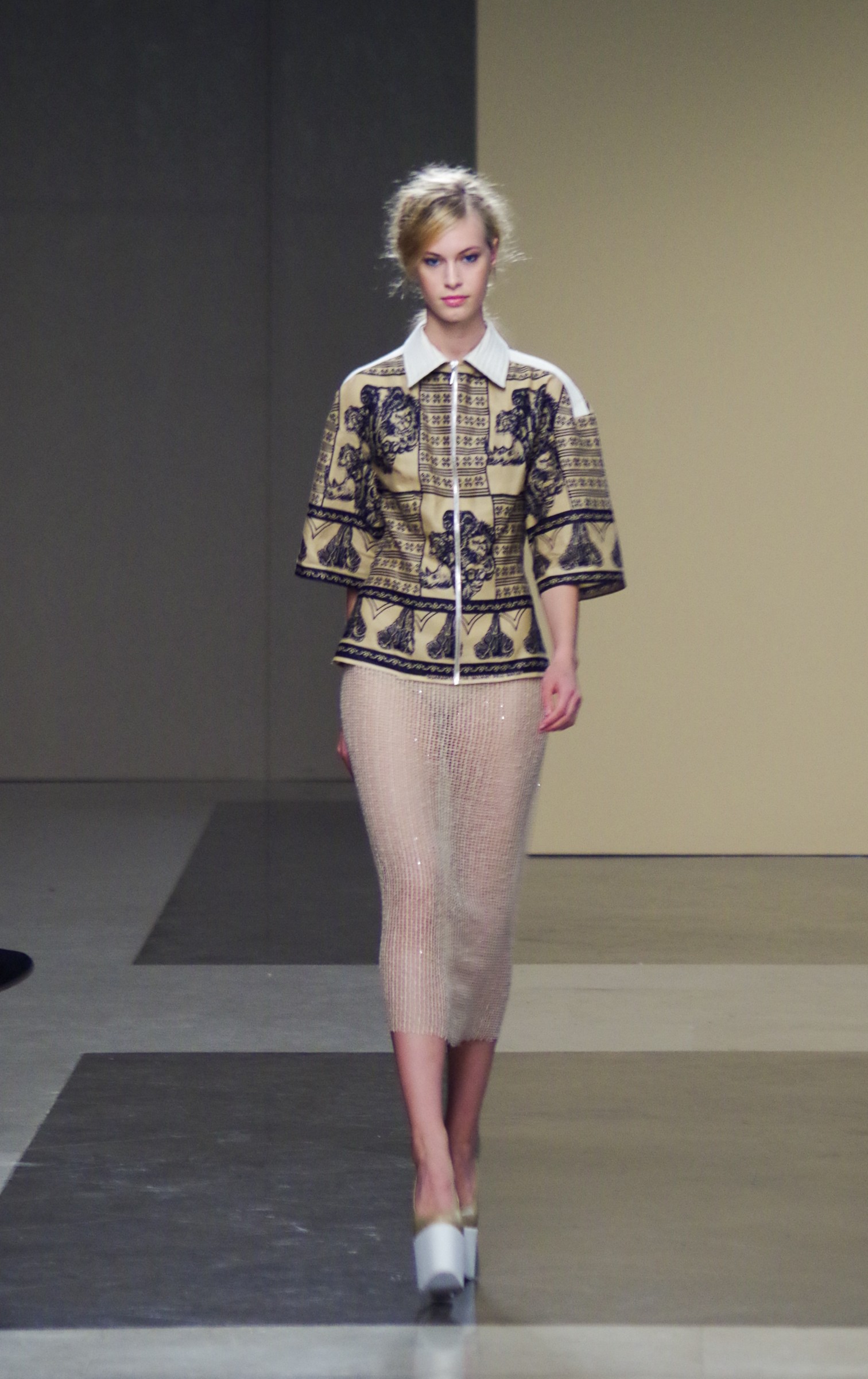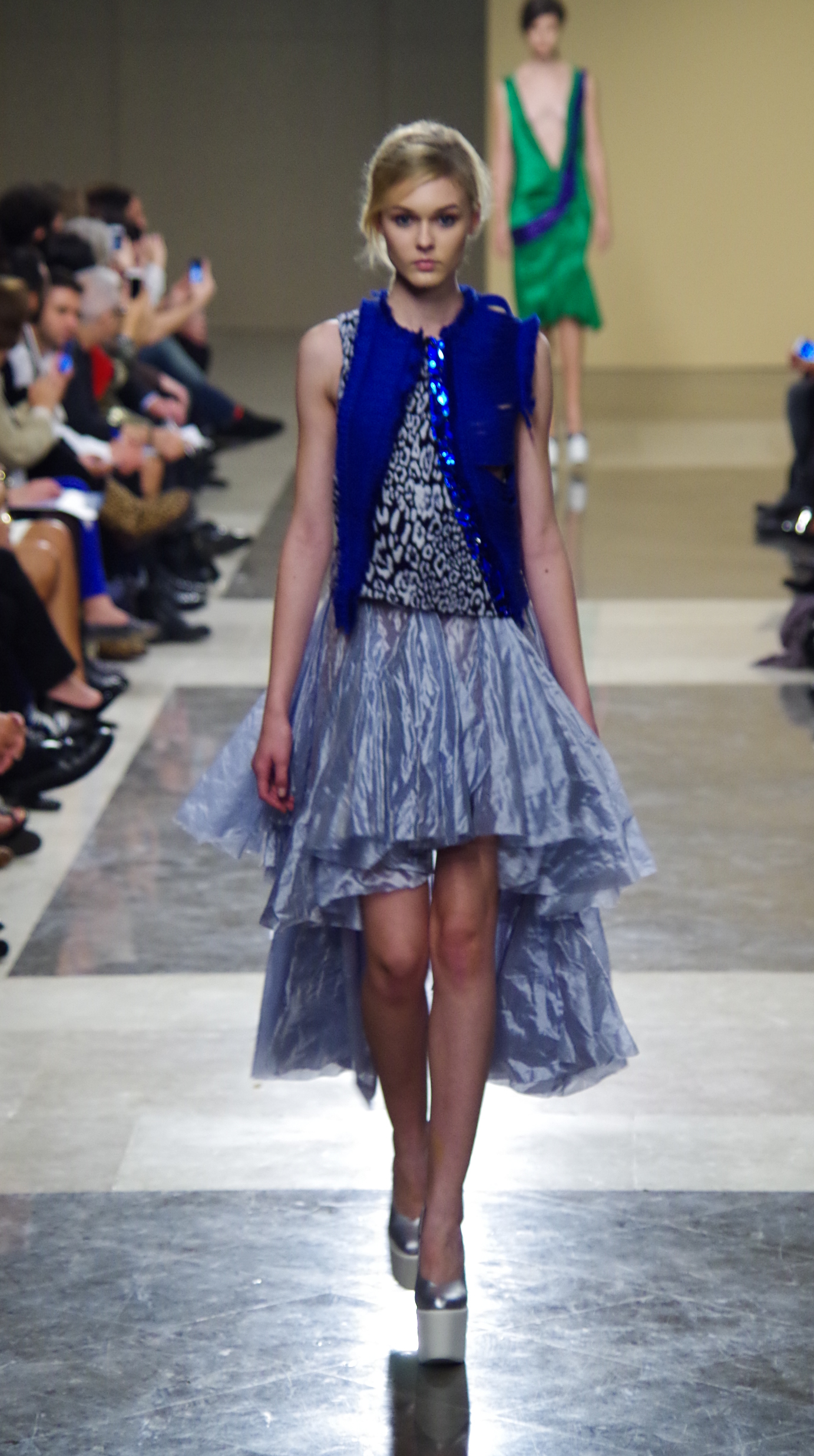 Une collection ultra-féminine jouant sur les matières, les lacets, les broderies, les vêtements déchirés. Des silhouettes modernes qui s’illuminent au grès des couleurs et des imprimés d’inspiration amérindienne pour finir sur un élan de noir.