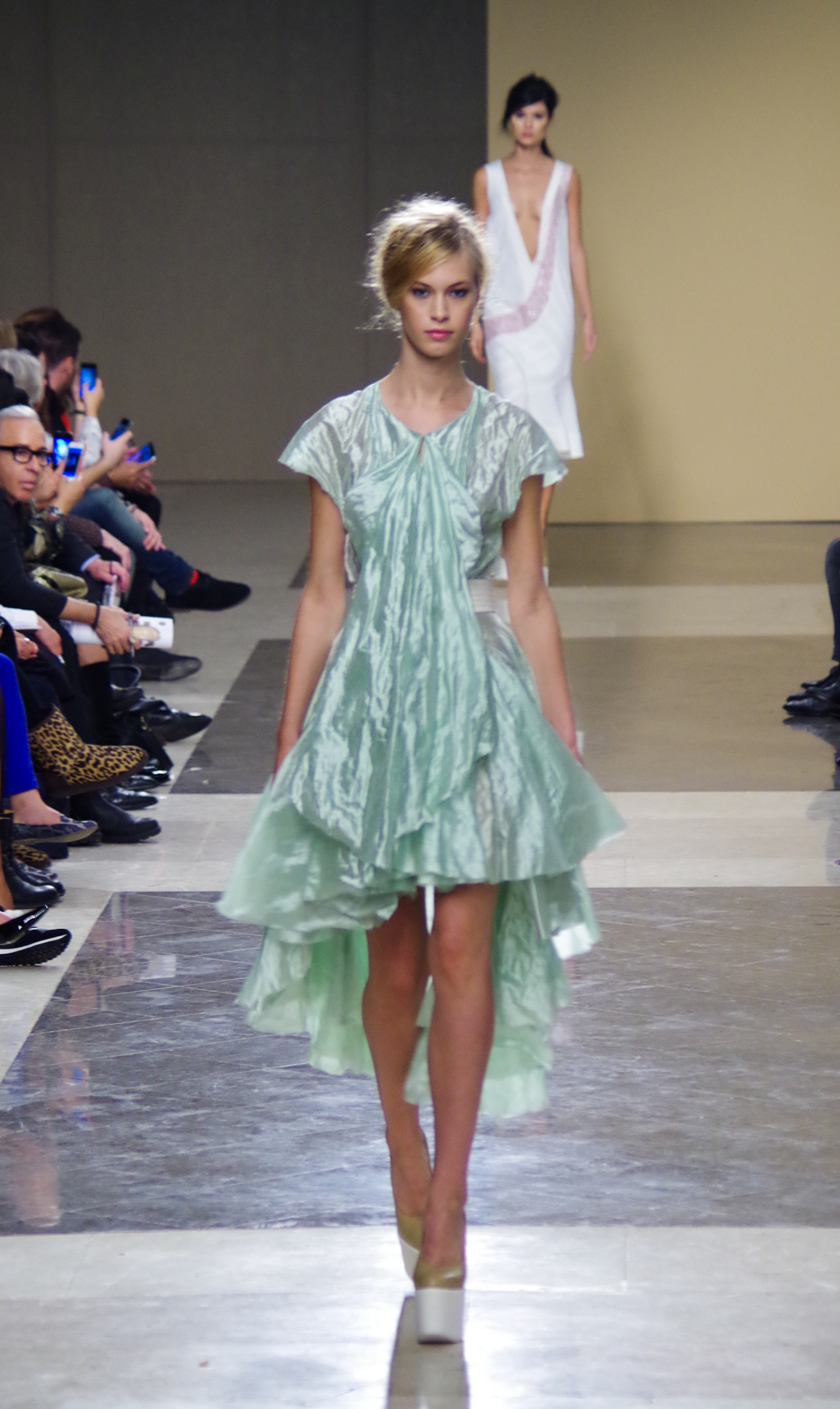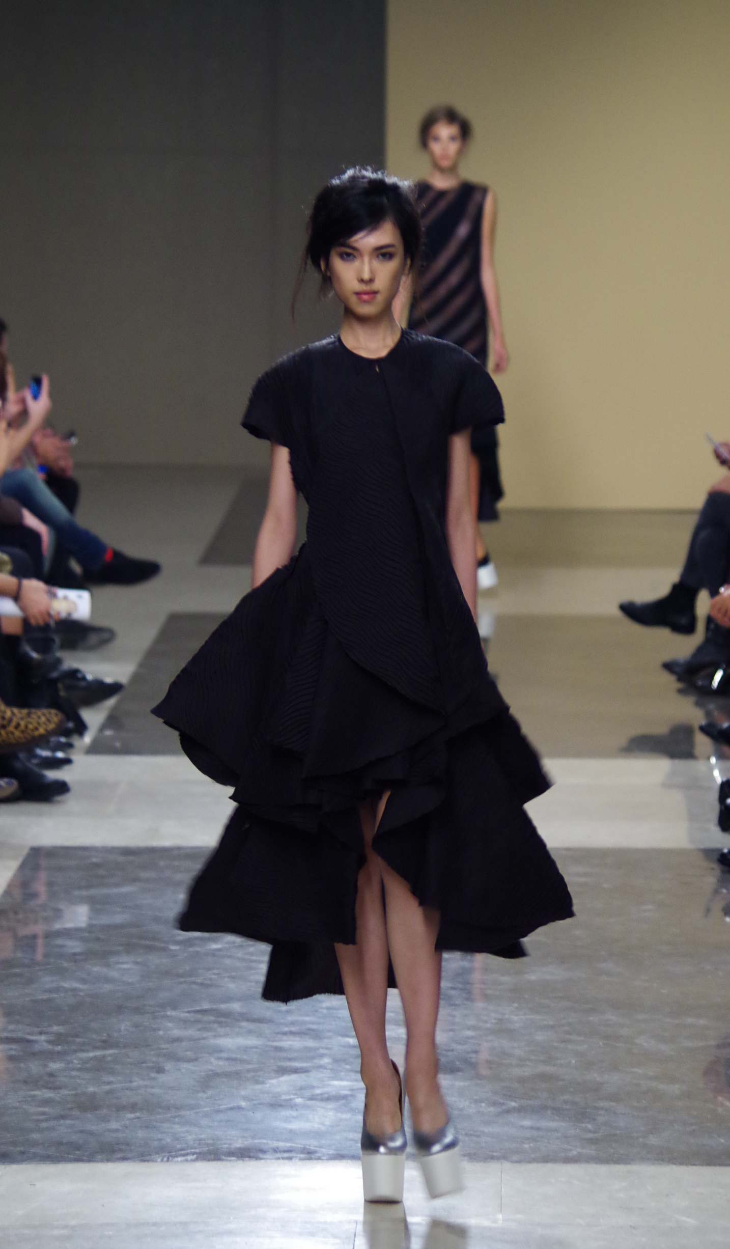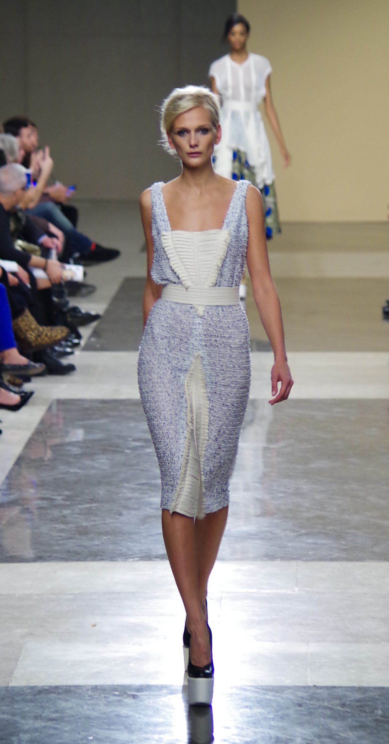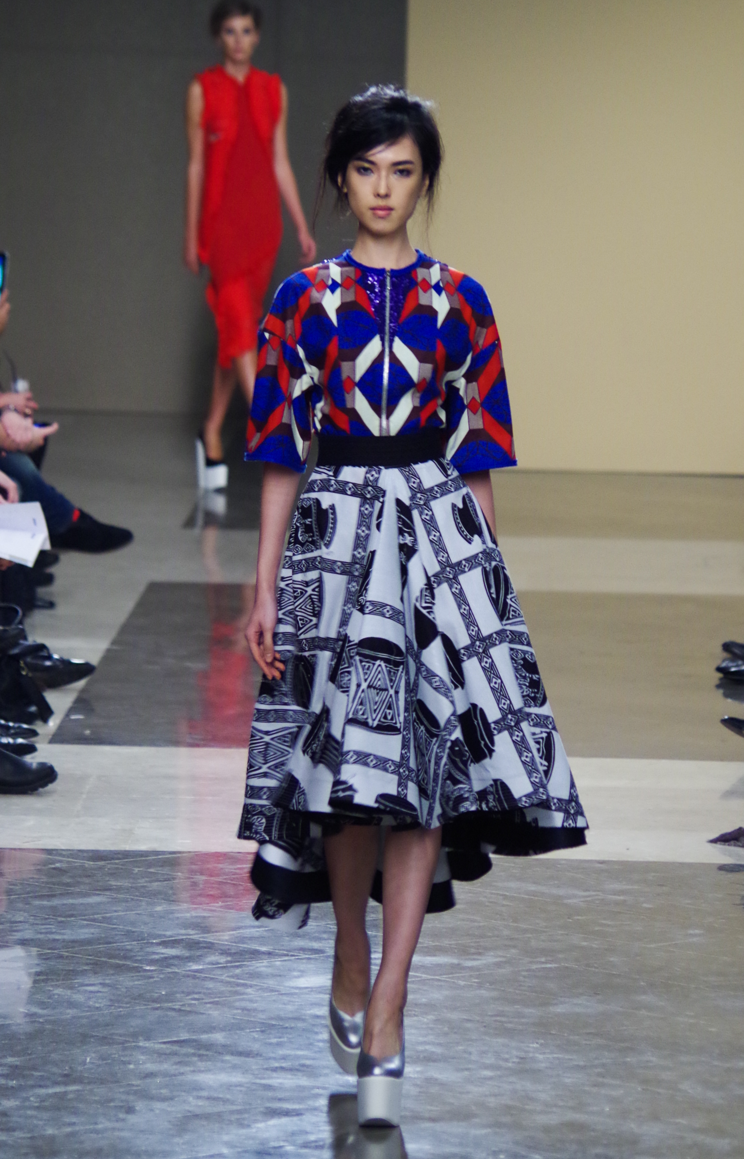 Une collection ultra-féminine jouant sur les matières, les lacets, les broderies, les vêtements déchirés. Des silhouettes modernes qui s’illuminent au grès des couleurs et des imprimés d’inspiration amérindienne pour finir sur un élan de noir.