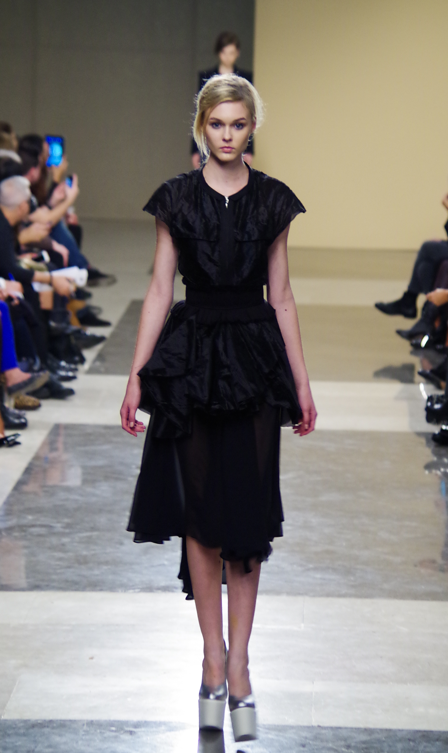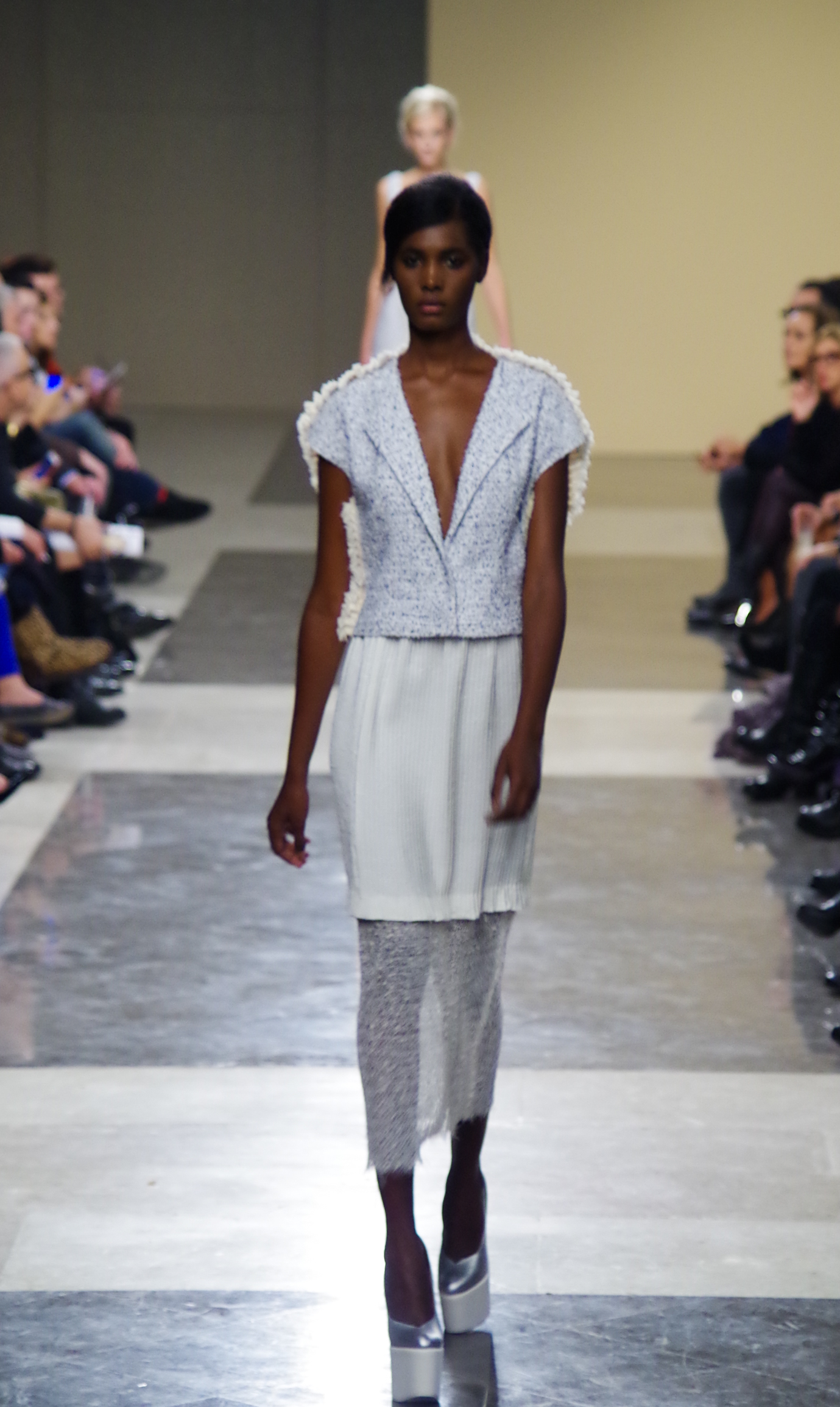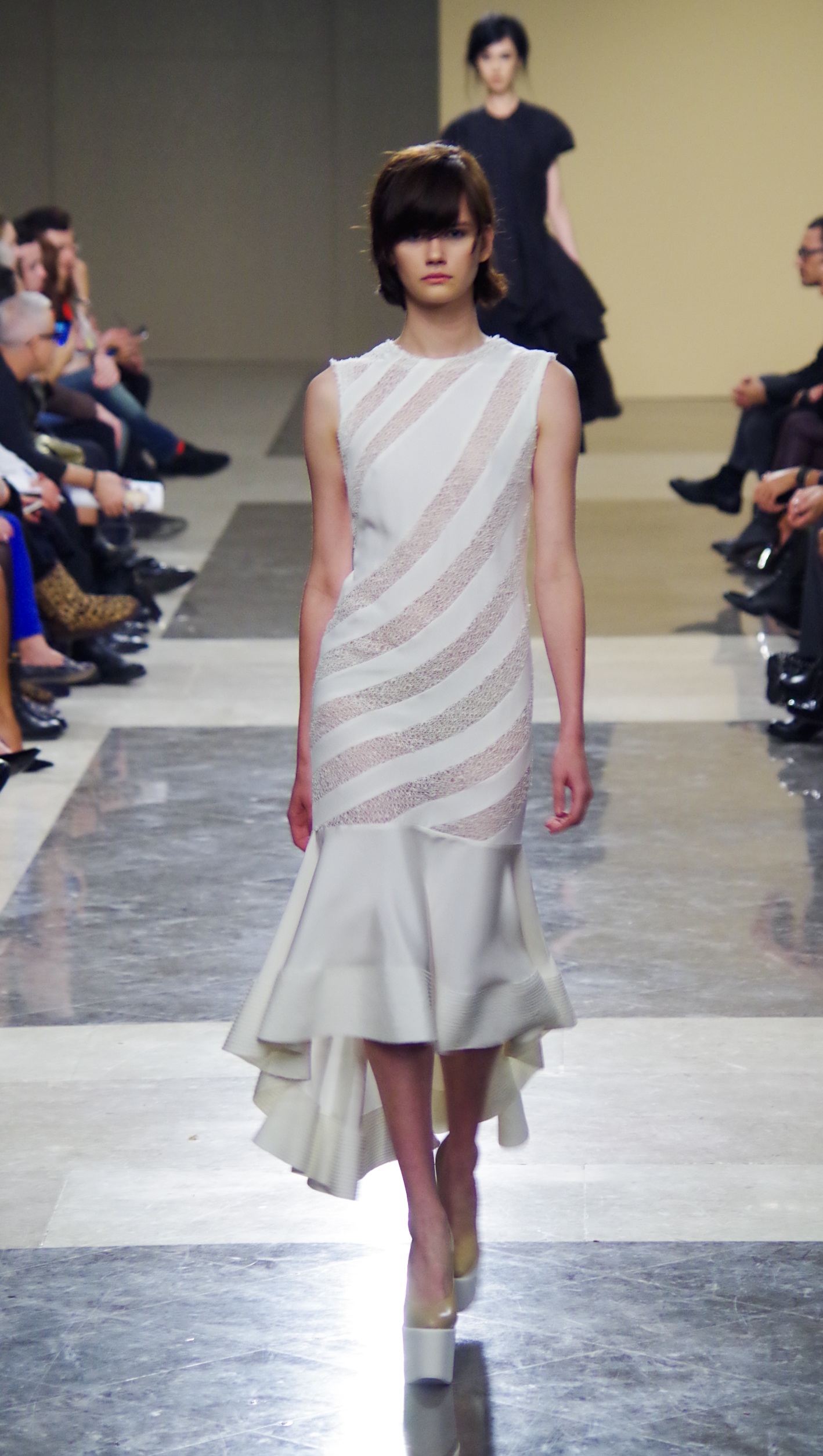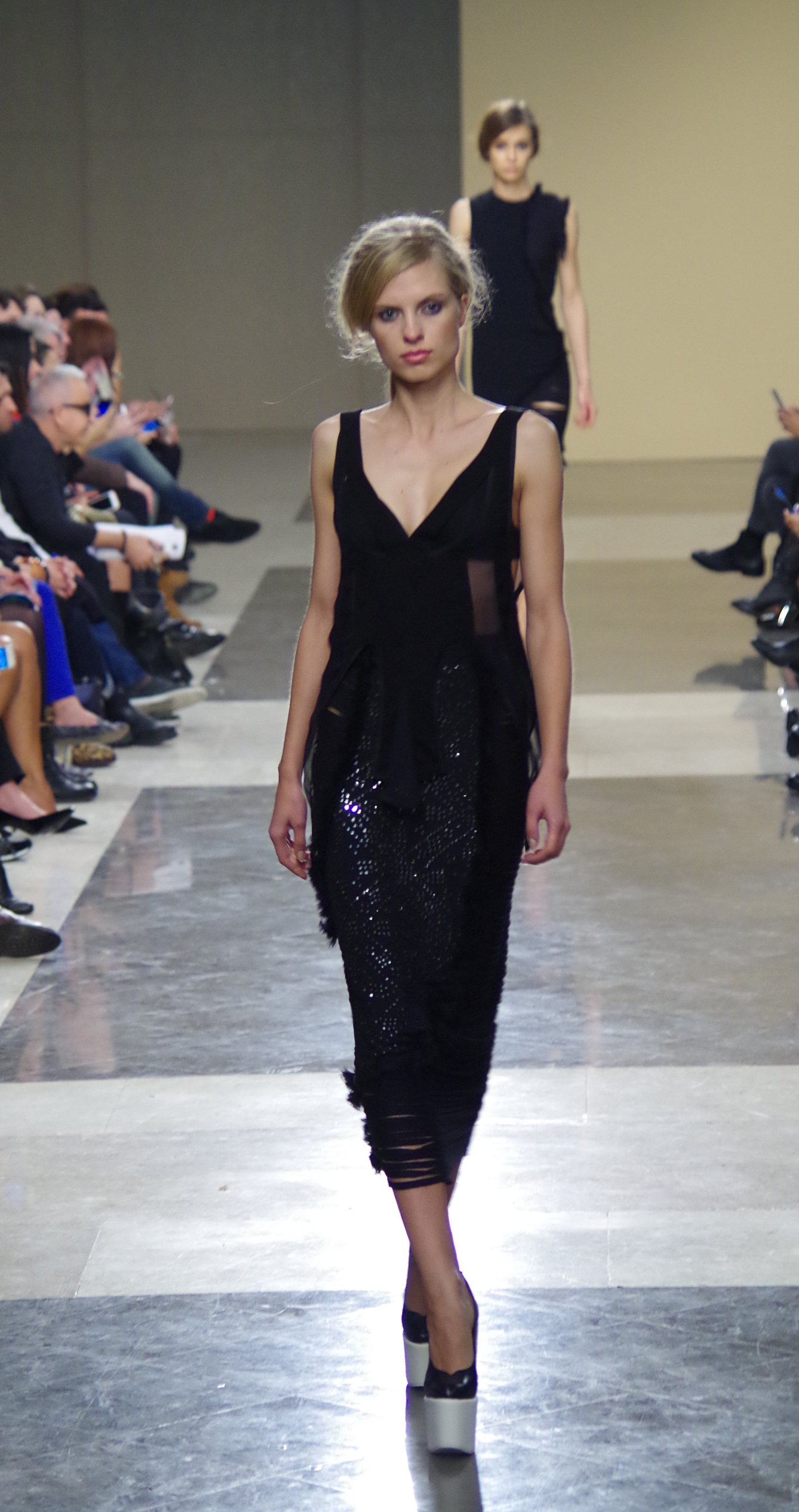 Une collection ultra-féminine jouant sur les matières, les lacets, les broderies, les vêtements déchirés. Des silhouettes modernes qui s’illuminent au grès des couleurs et des imprimés d’inspiration amérindienne pour finir sur un élan de noir.