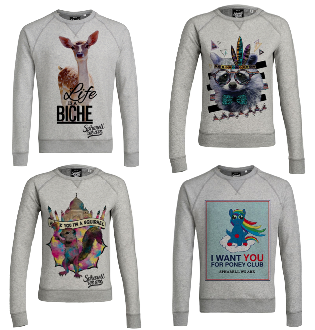 Le sweat s’imprime chez Spharell We Are avec la collection « Sweet Sweat ». La nature reprends ses droits. Et il faudra bel et bien compter sur la biche, le raton-laveur, lʼécureuil ou le poney pour être «IN» au coin du feu.