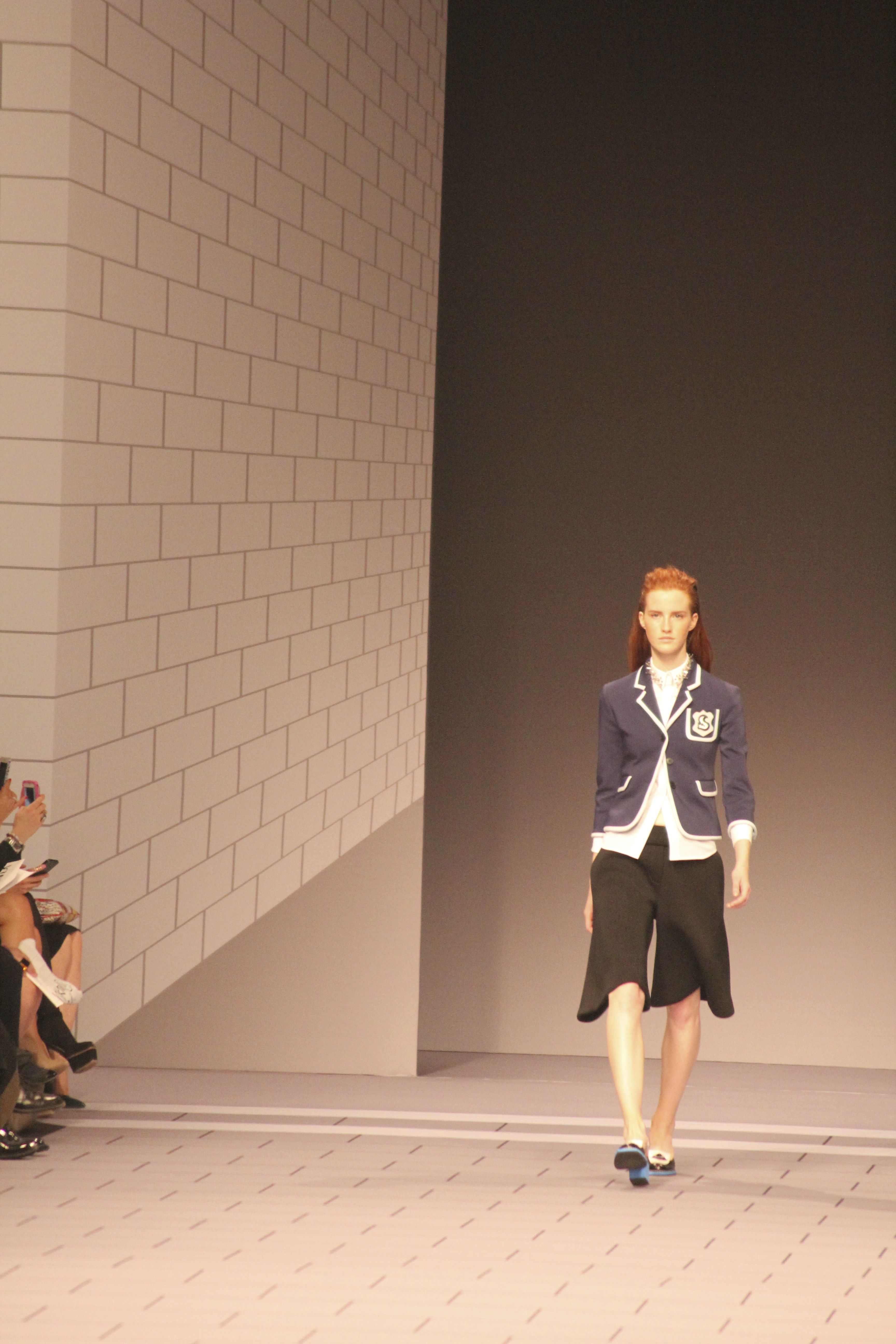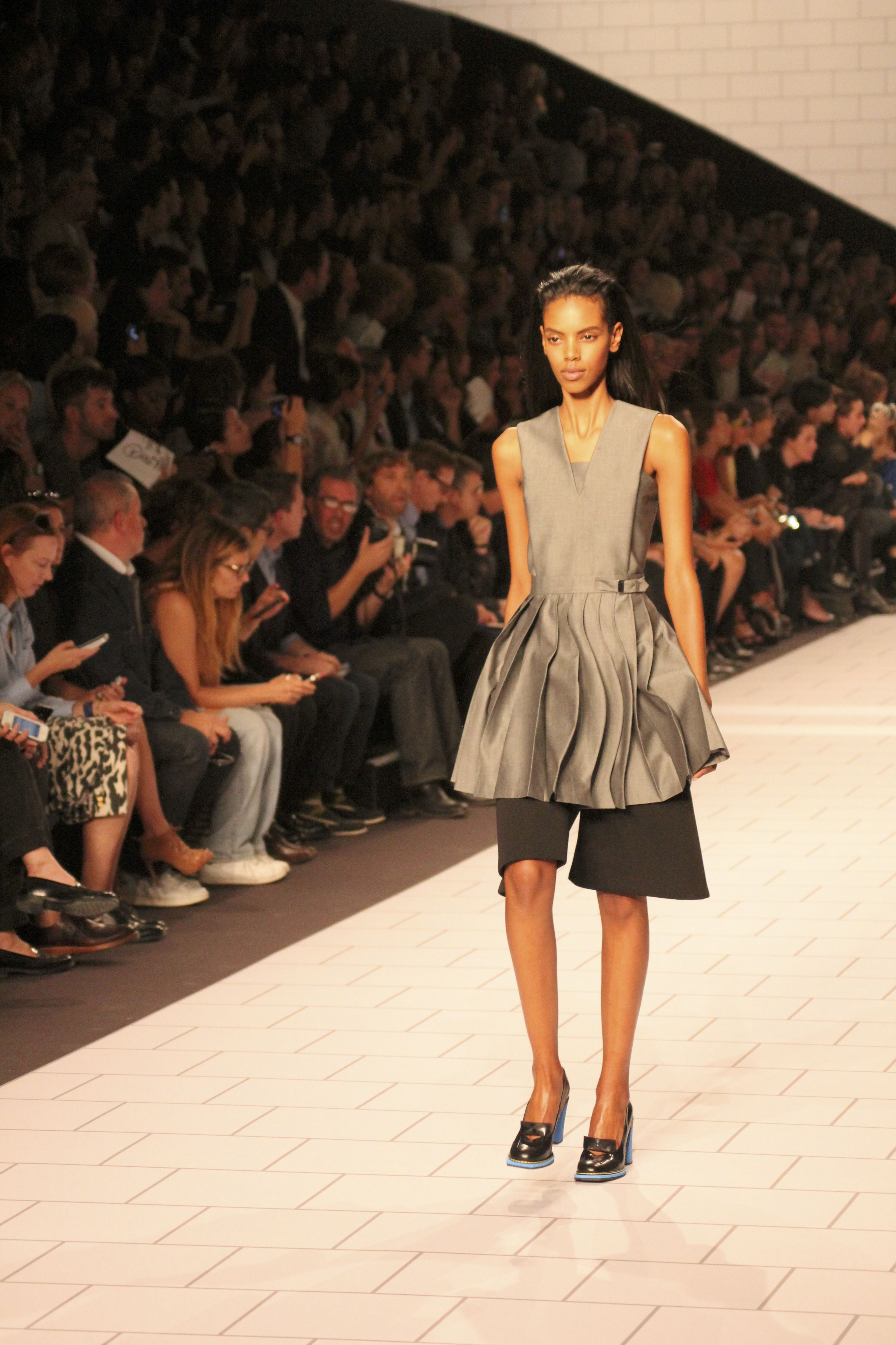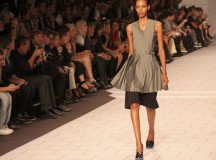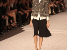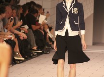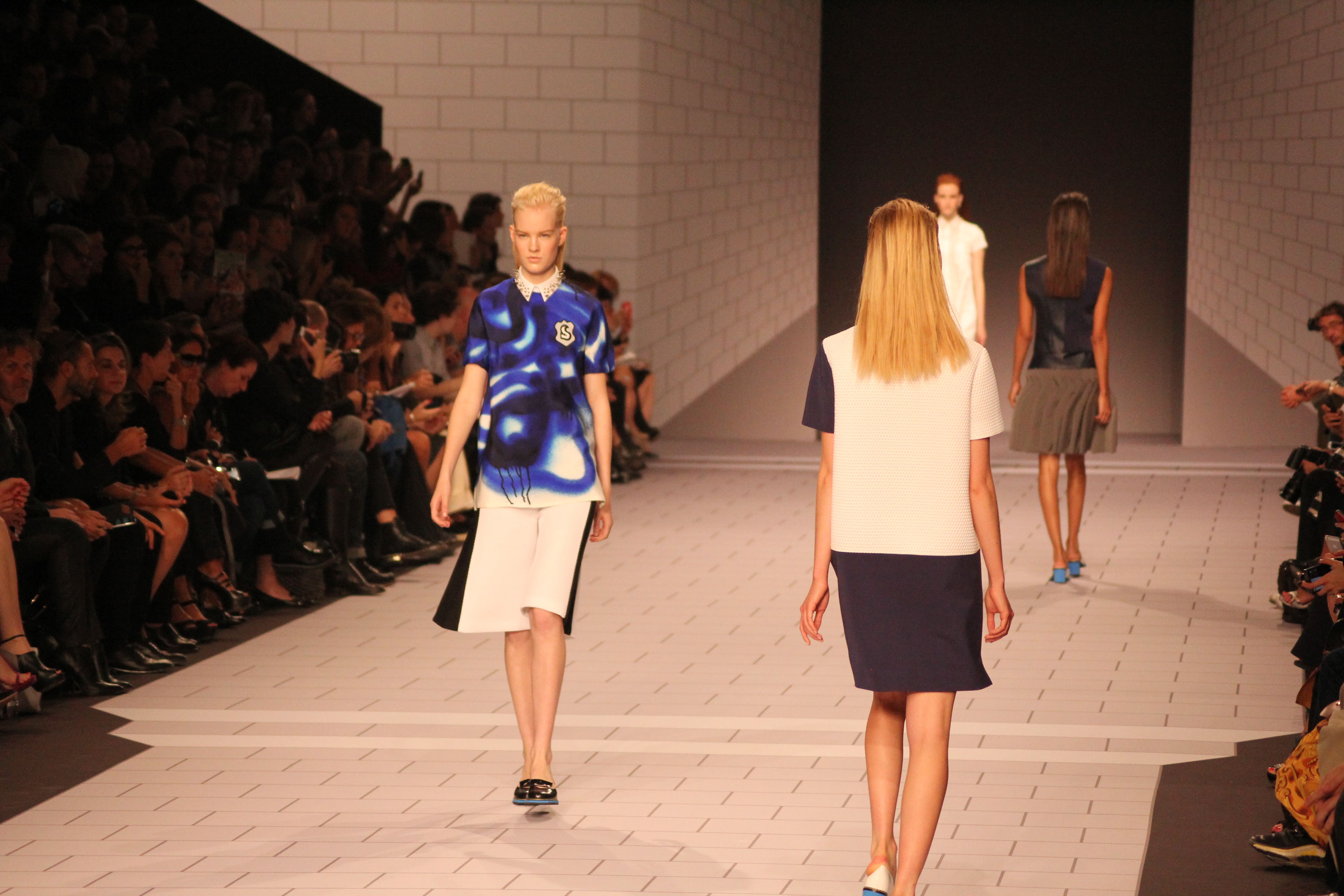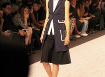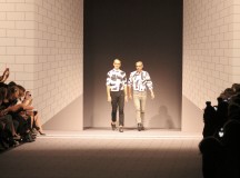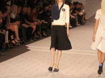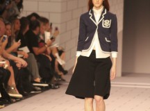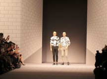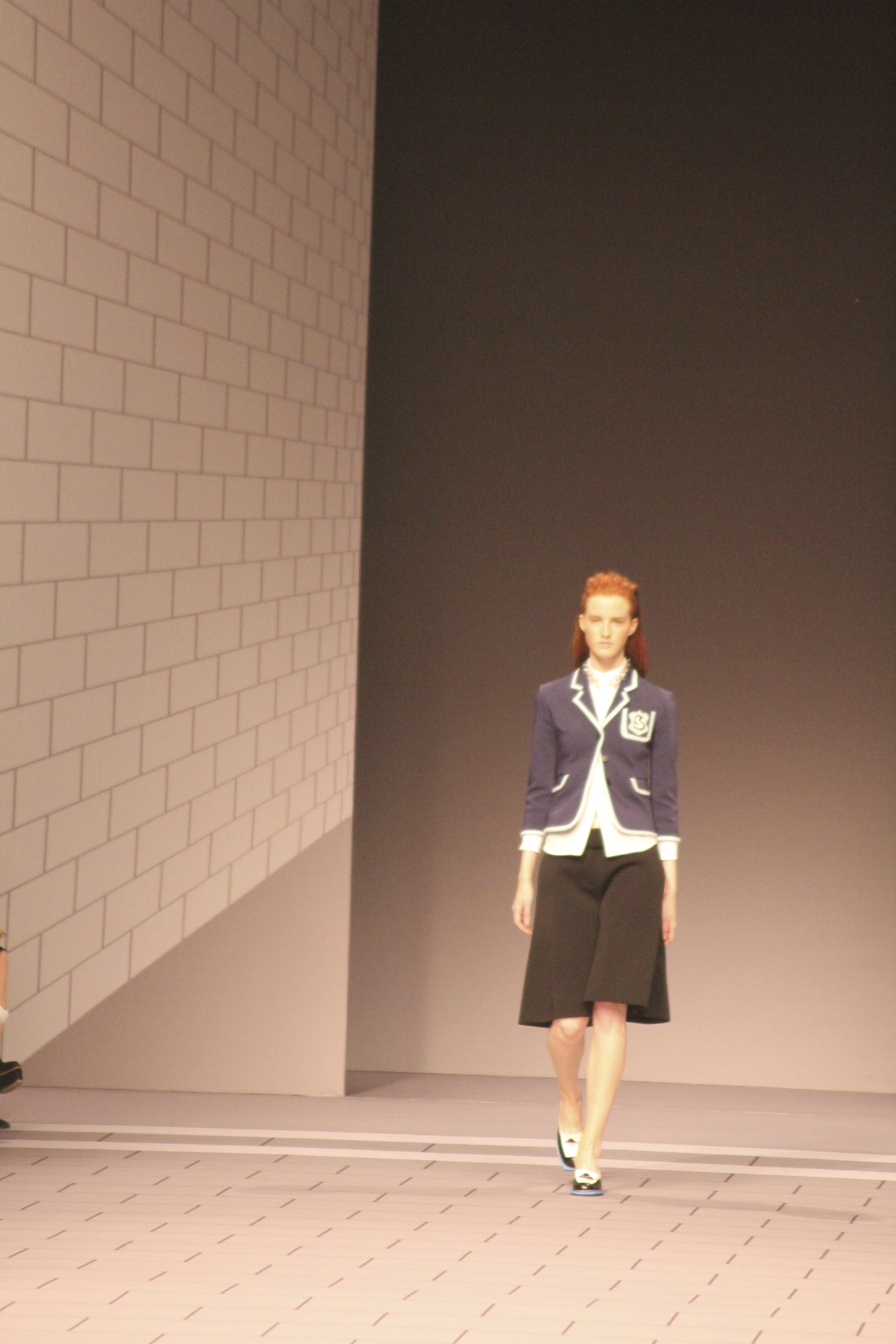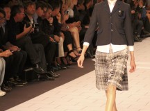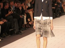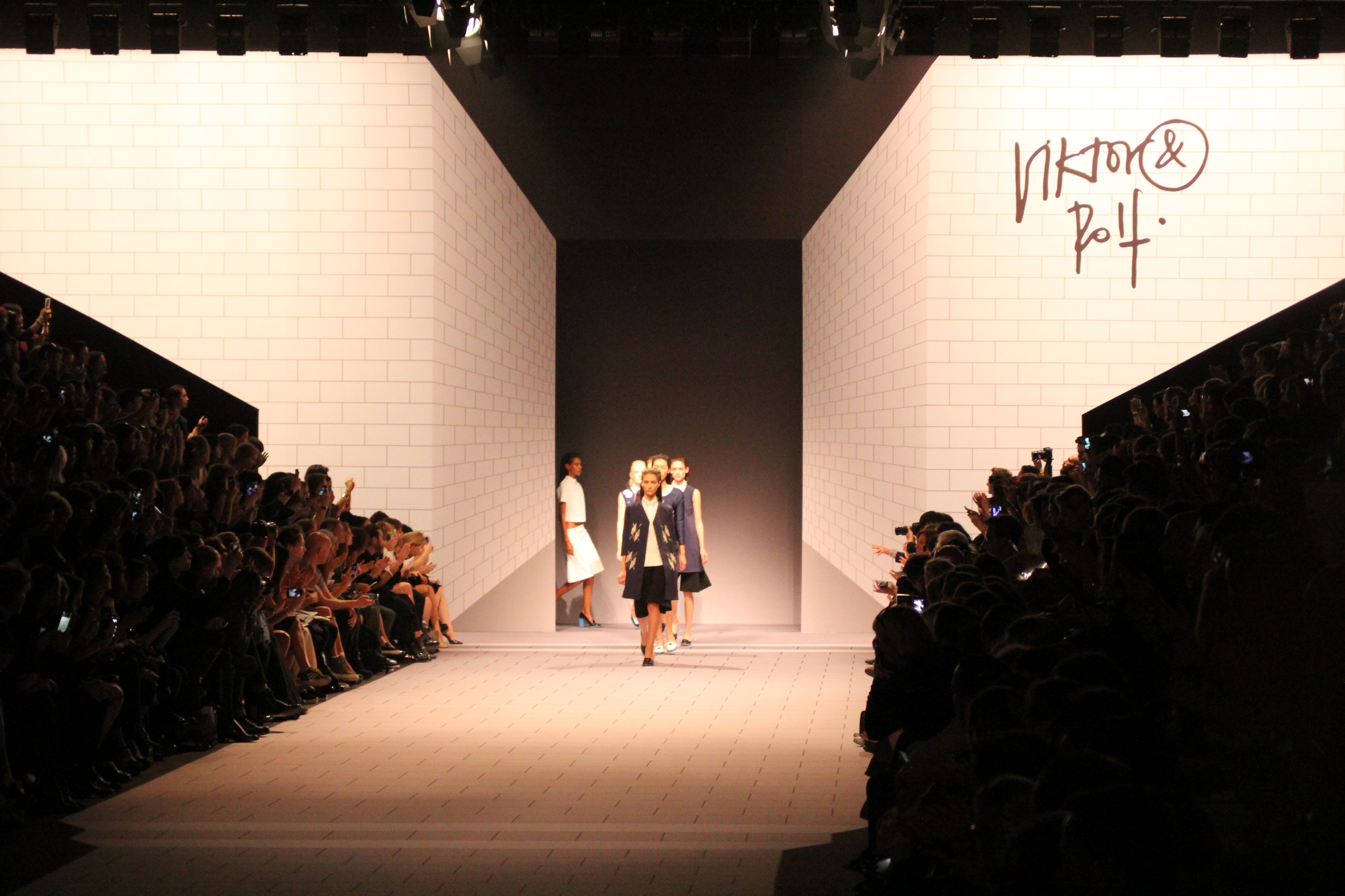 Viktor & Rolf présentaient aux tuileries leurs collections printemps été 2014. Une collection inspirée par les uniformes. Empreinte de rigueur qu’elle oppose à la rébellion, cette collection faisait défiler des jeunes écolières punk au son de « the wall » des pink floyd. Vestes preppy, jupes kilts et jupes culottes, blasers, ecussons en gris, noirs, bleux foncés. Quel show !