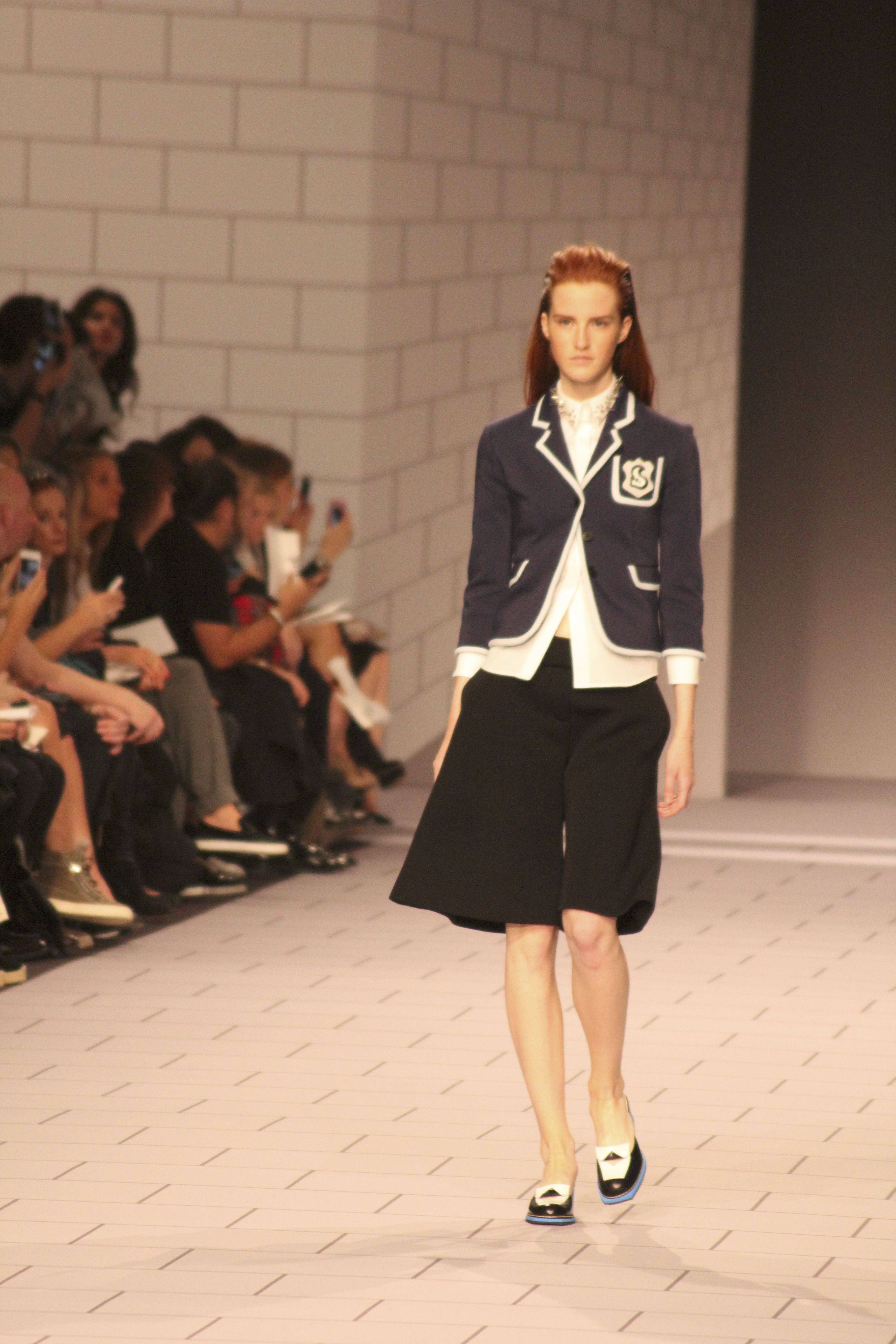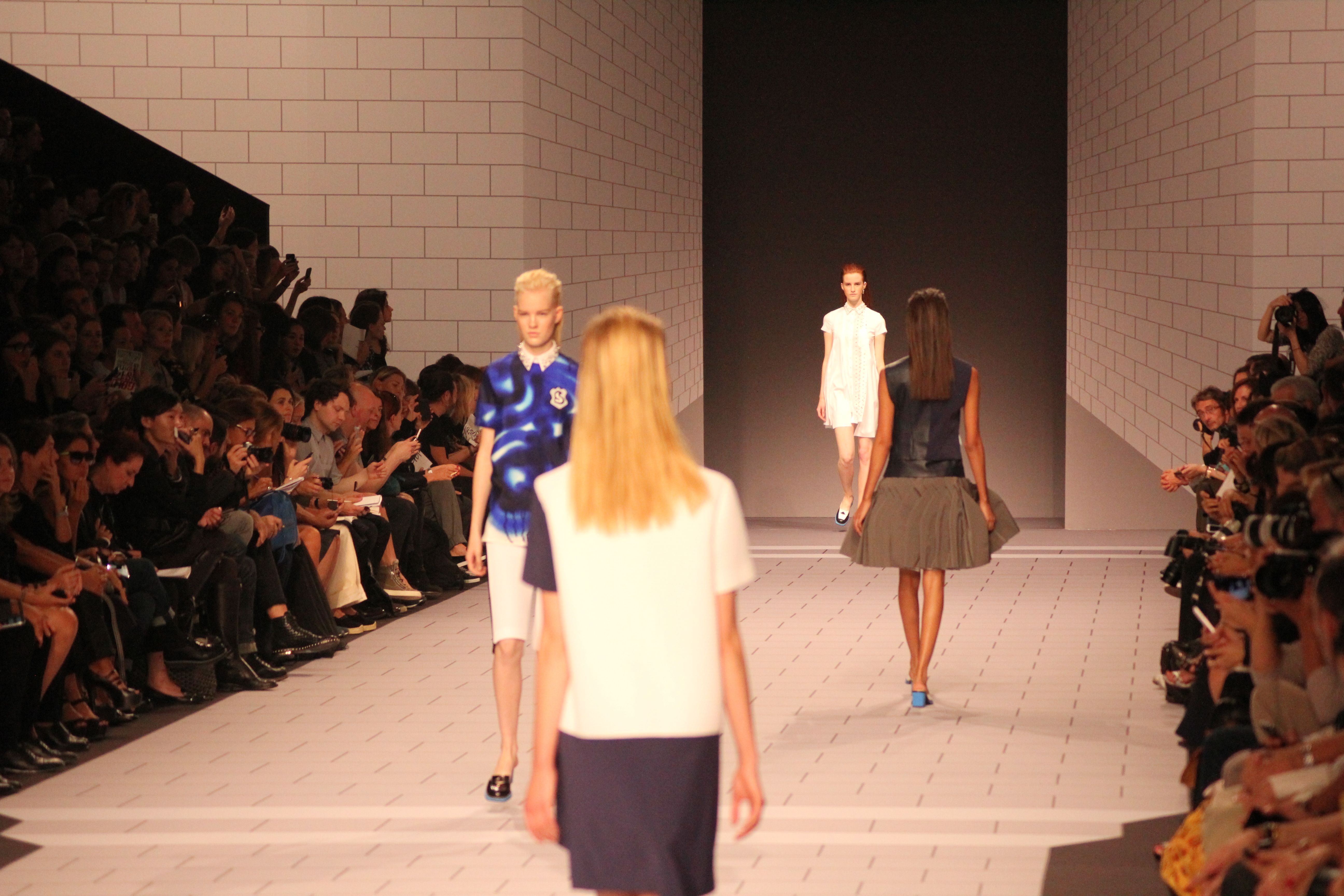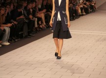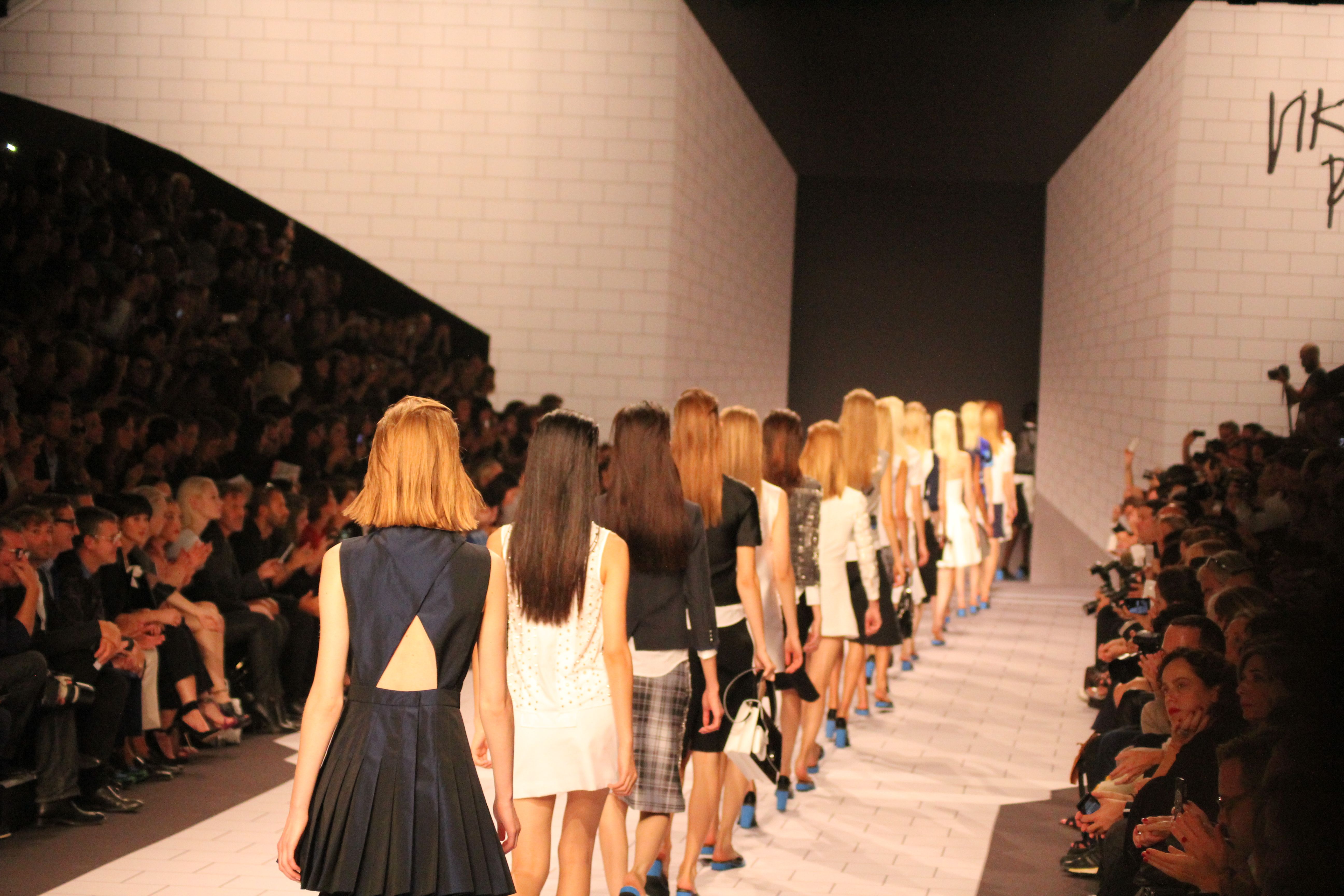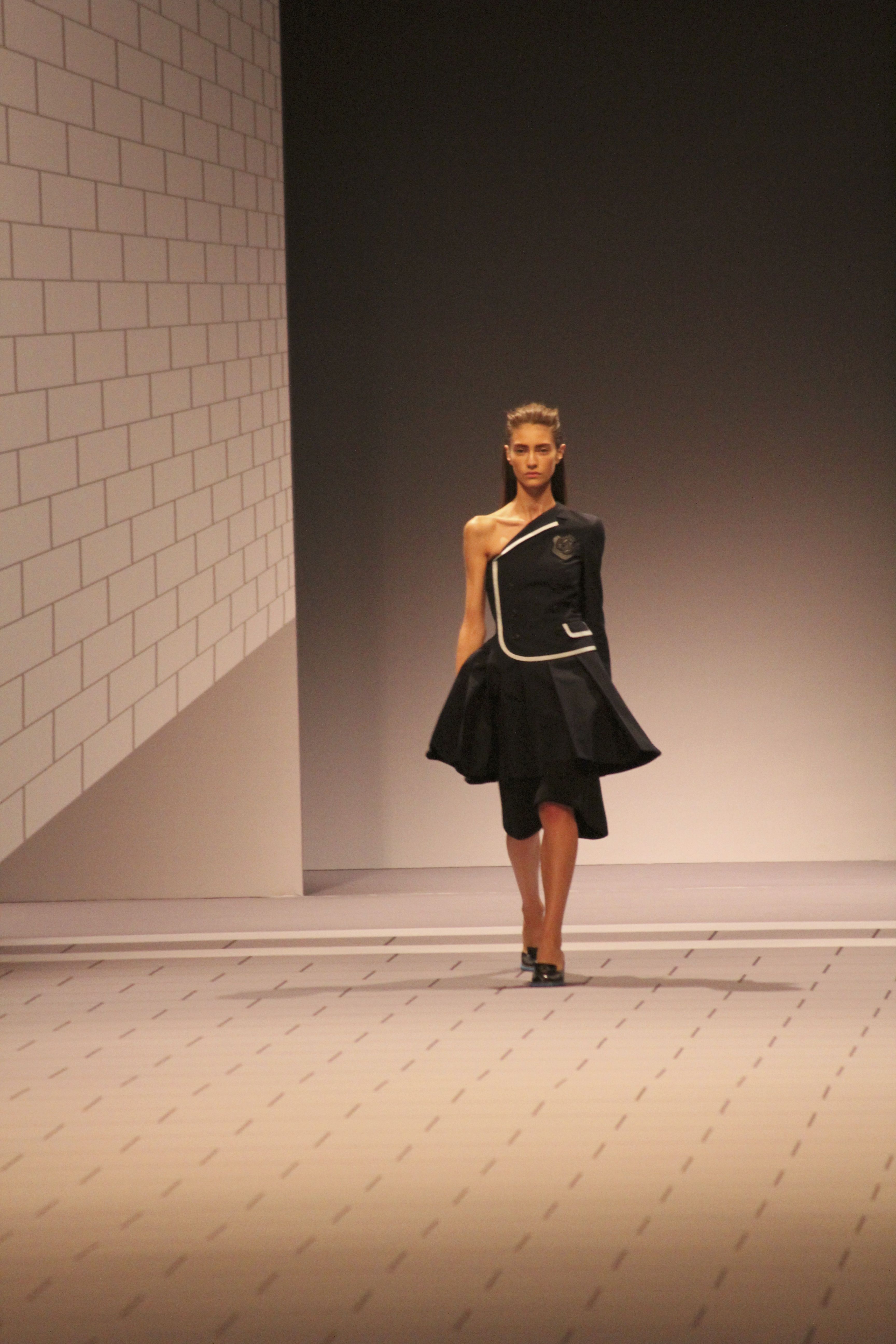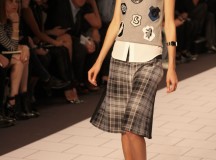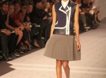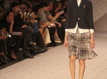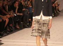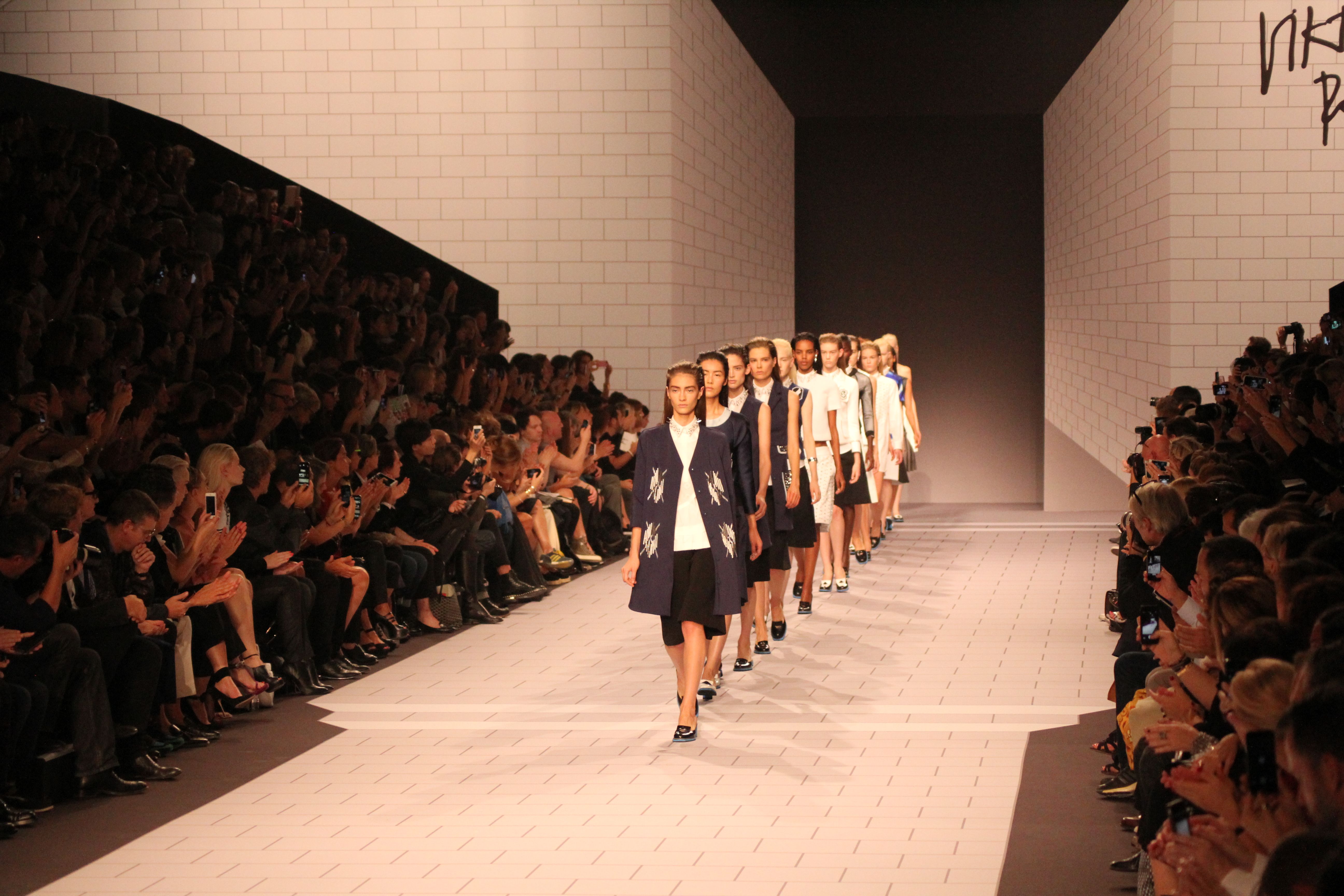 Viktor & Rolf présentaient aux tuileries leurs collections printemps été 2014. Une collection inspirée par les uniformes. Empreinte de rigueur qu’elle oppose à la rébellion, cette collection faisait défiler des jeunes écolières punk au son de « the wall » des pink floyd. Vestes preppy, jupes kilts et jupes culottes, blasers, ecussons en gris, noirs, bleux foncés. Quel show !