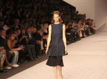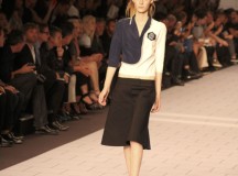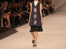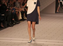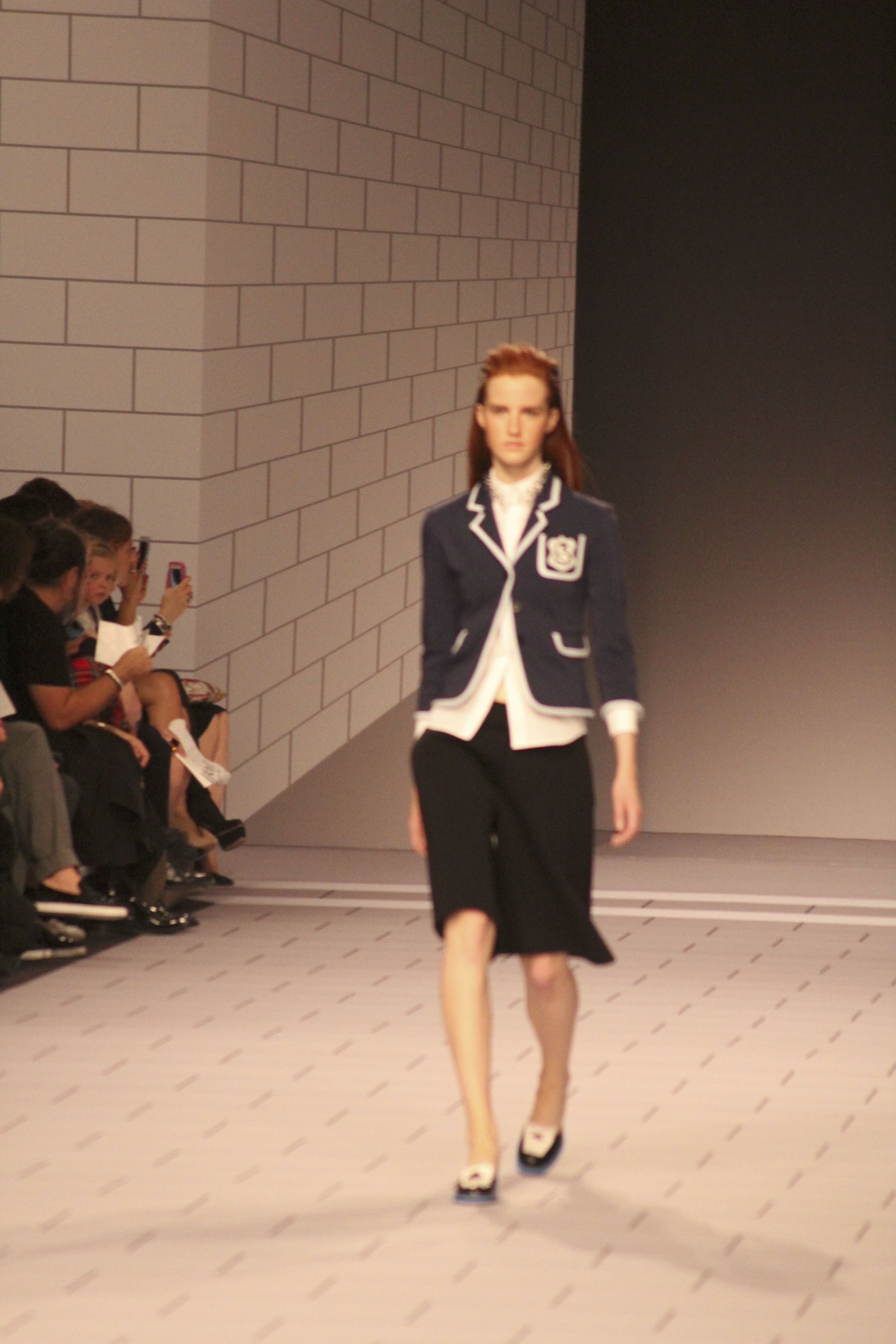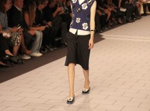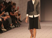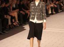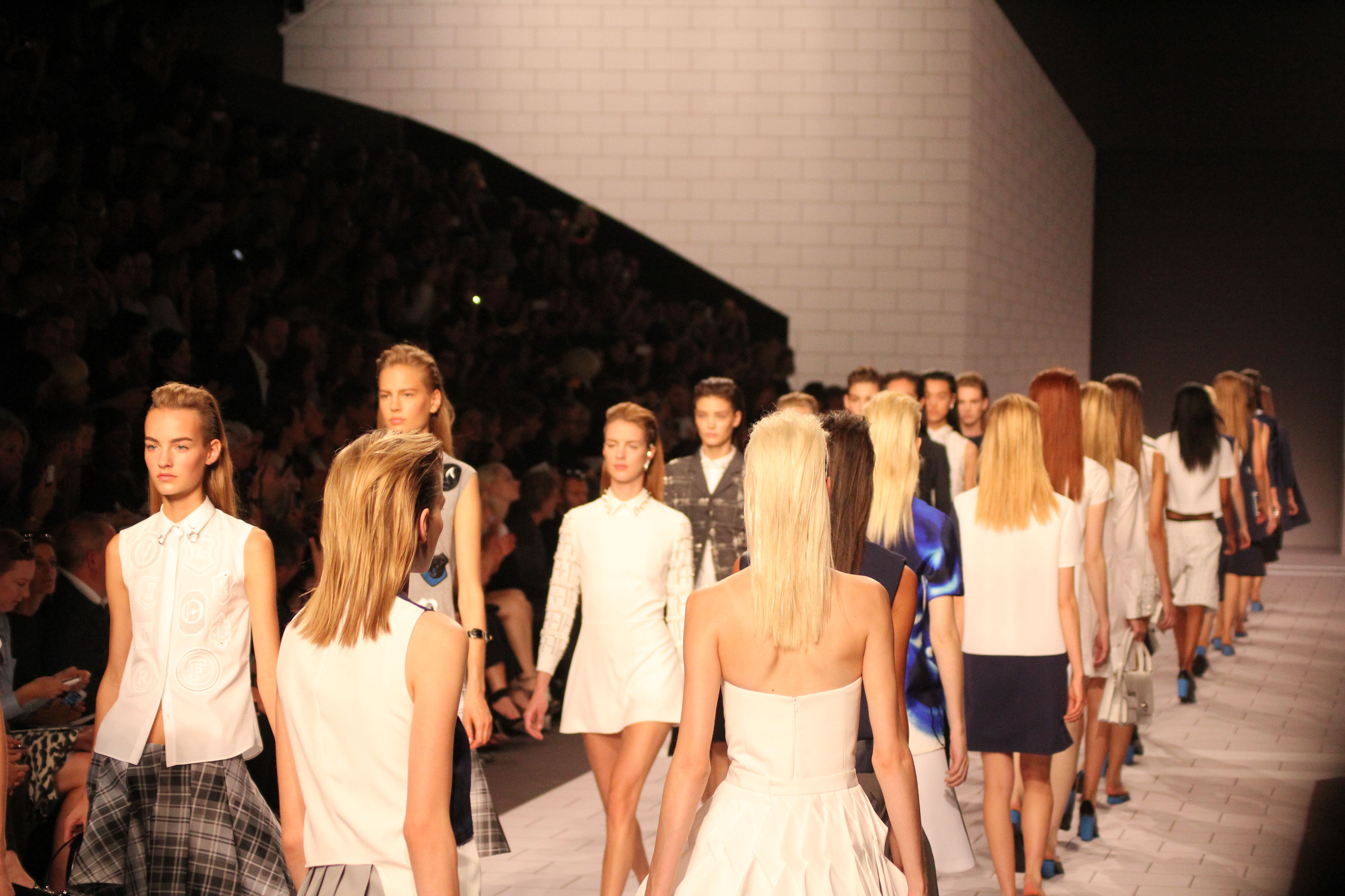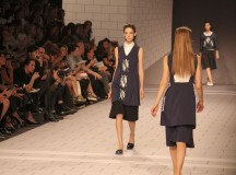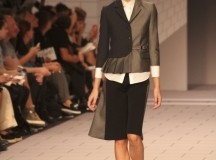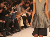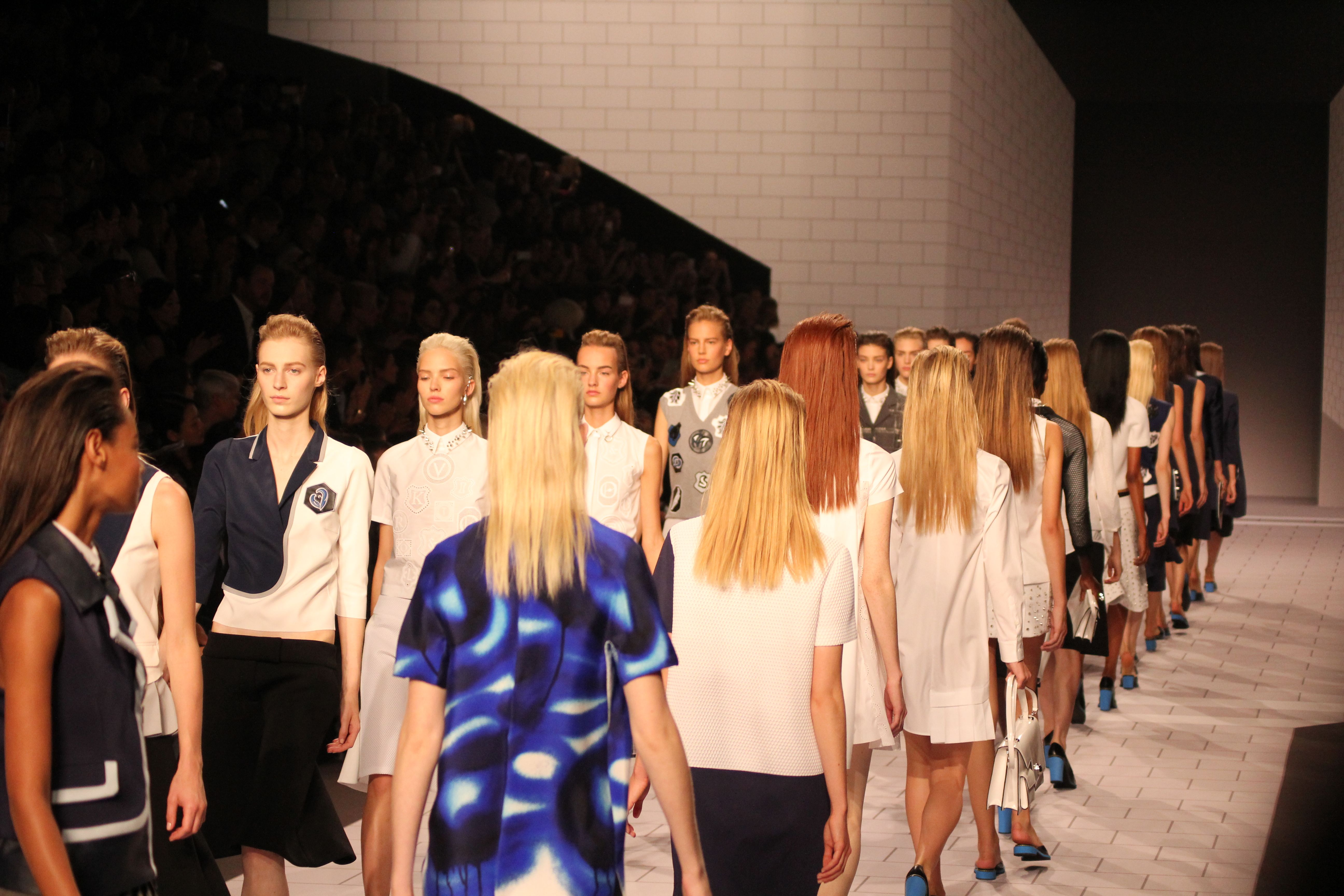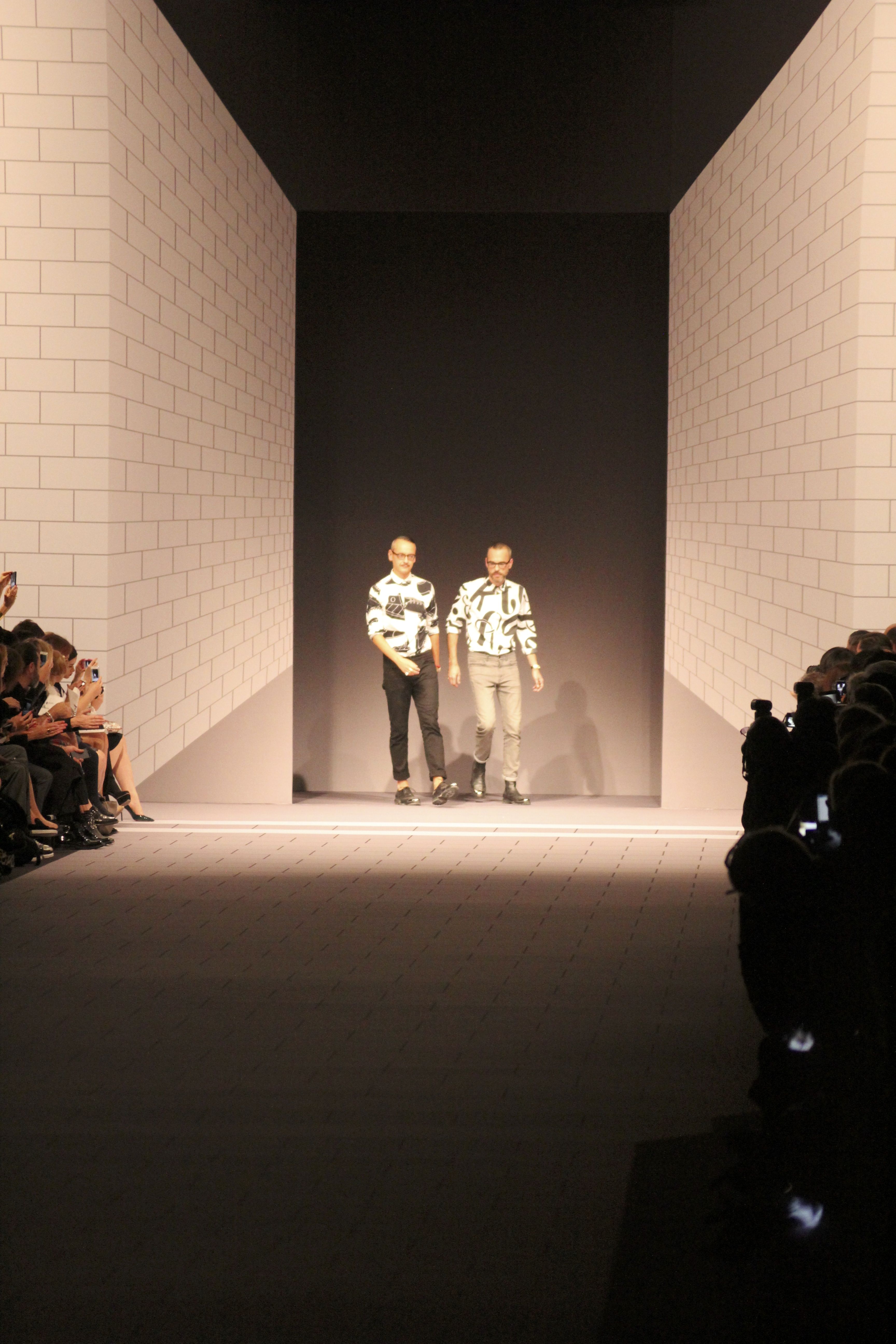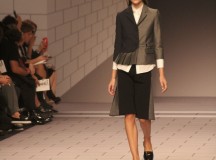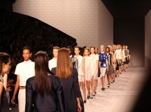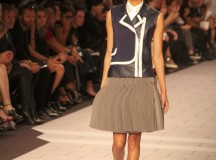 Viktor & Rolf présentaient aux tuileries leurs collections printemps été 2014. Une collection inspirée par les uniformes. Empreinte de rigueur qu’elle oppose à la rébellion, cette collection faisait défiler des jeunes écolières punk au son de « the wall » des pink floyd. Vestes preppy, jupes kilts et jupes culottes, blasers, ecussons en gris, noirs, bleux foncés. Quel show !
