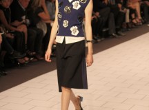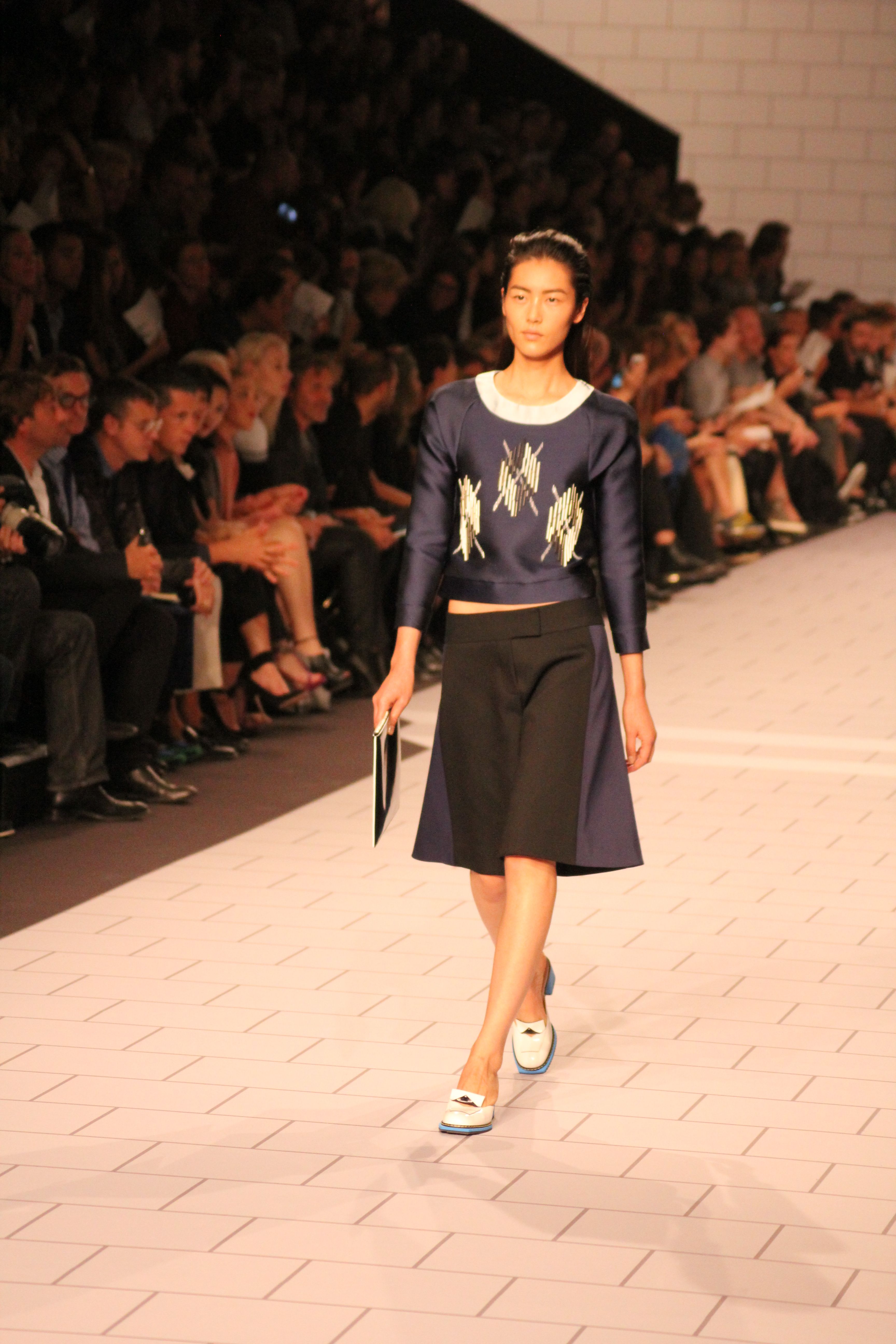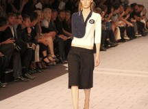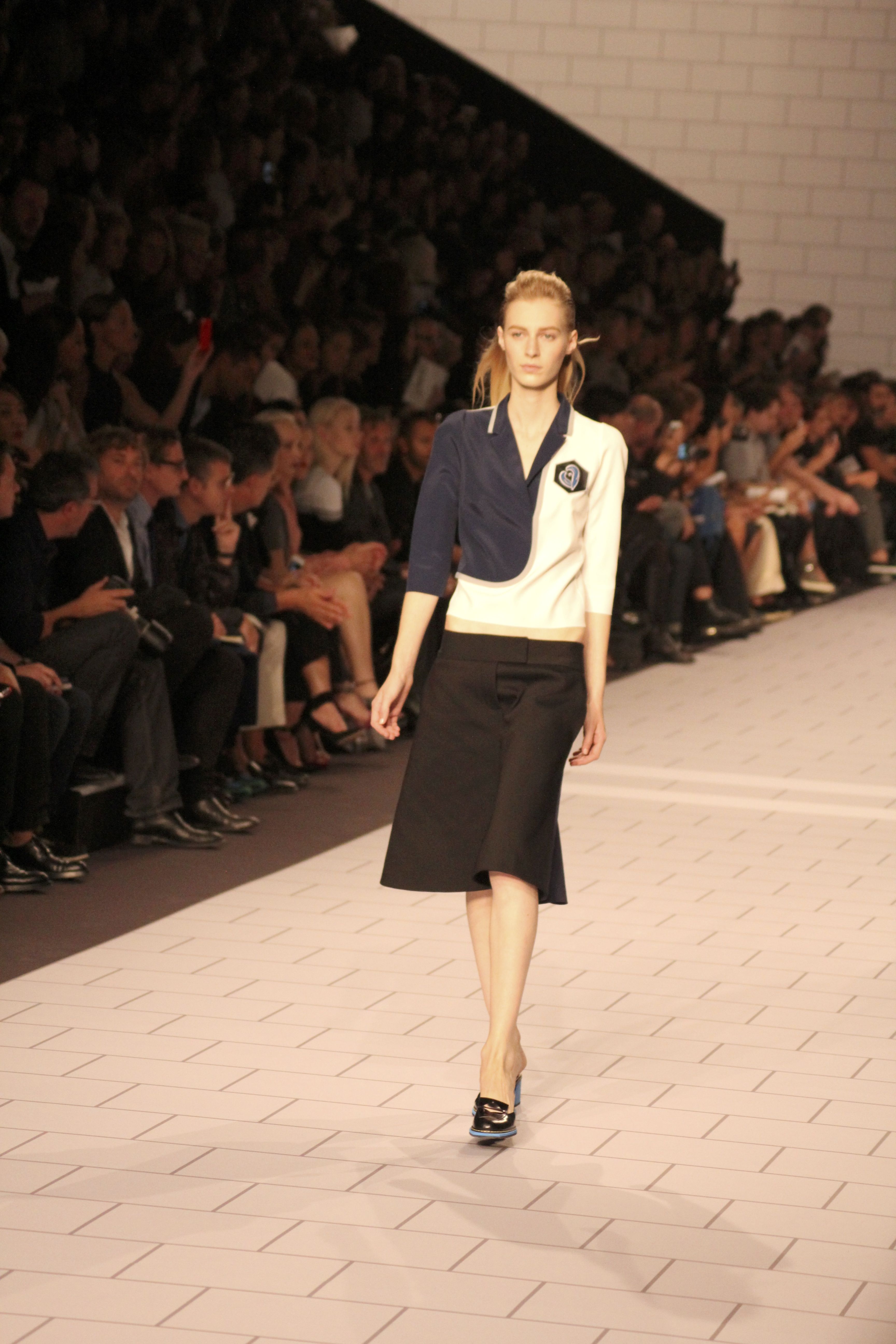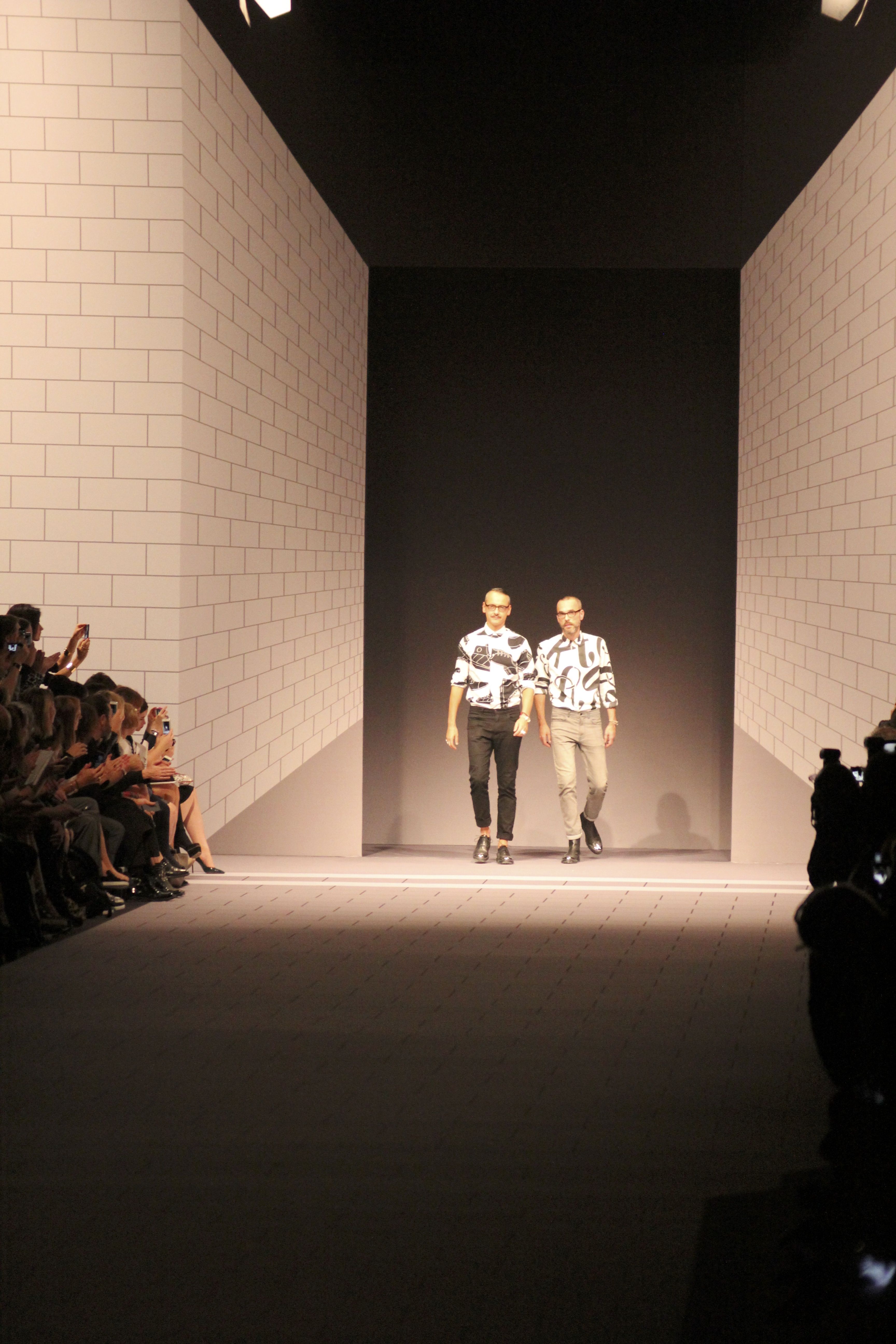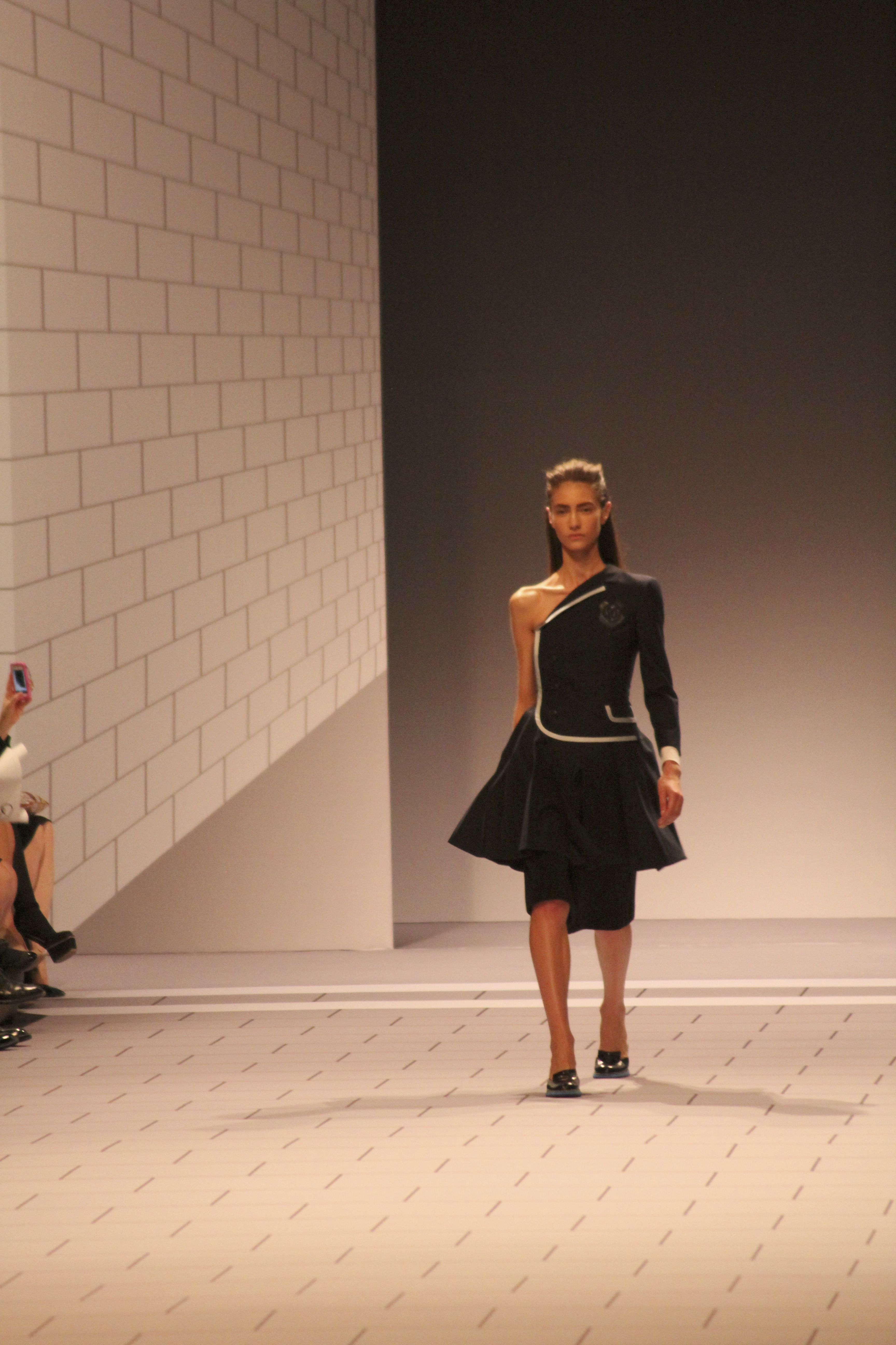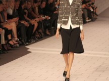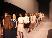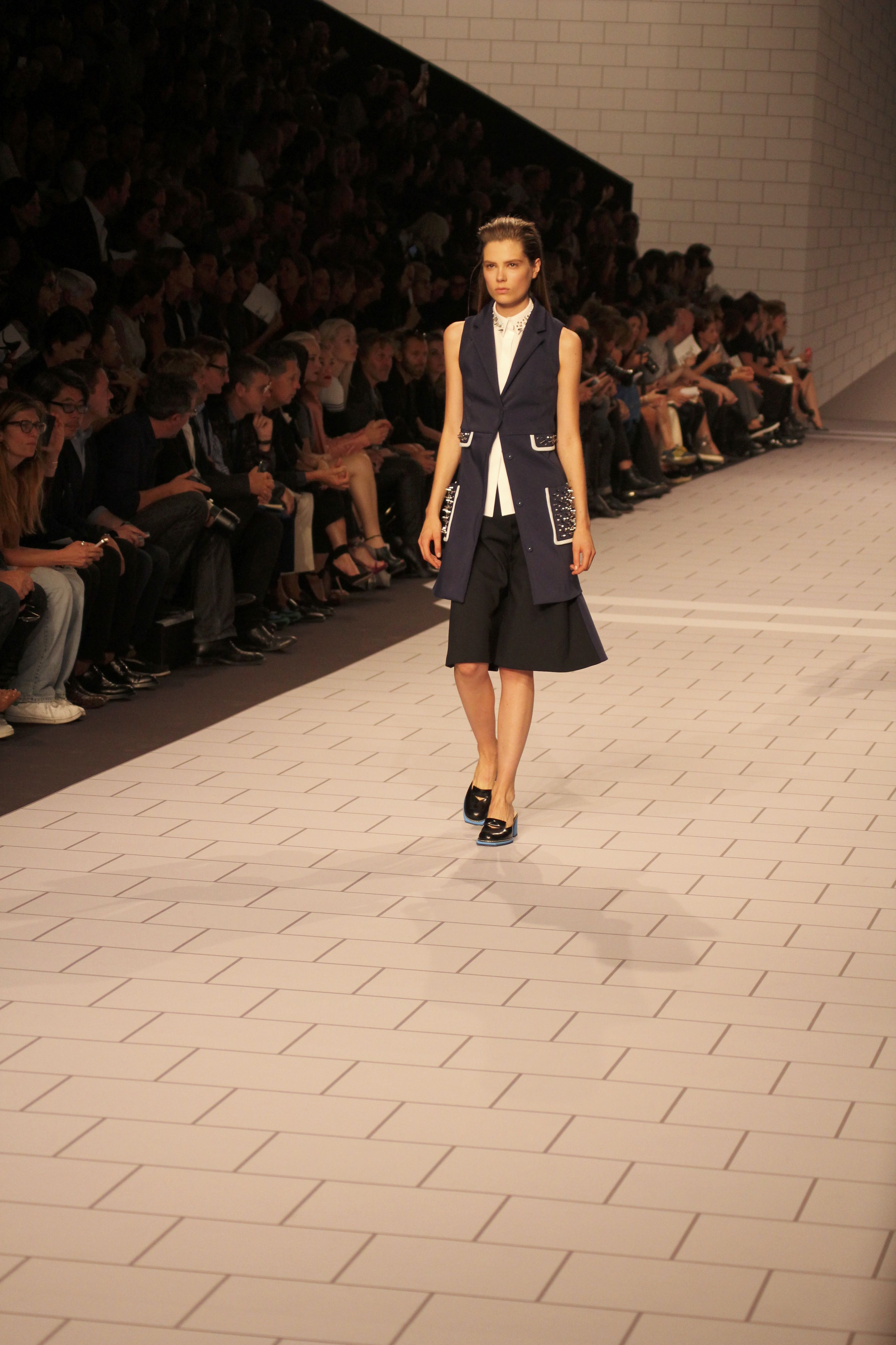 Viktor & Rolf présentaient aux tuileries leurs collections printemps été 2014. Une collection inspirée par les uniformes. Empreinte de rigueur qu’elle oppose à la rébellion, cette collection faisait défiler des jeunes écolières punk au son de « the wall » des pink floyd. Vestes preppy, jupes kilts et jupes culottes, blasers, ecussons en gris, noirs, bleux foncés. Quel show !