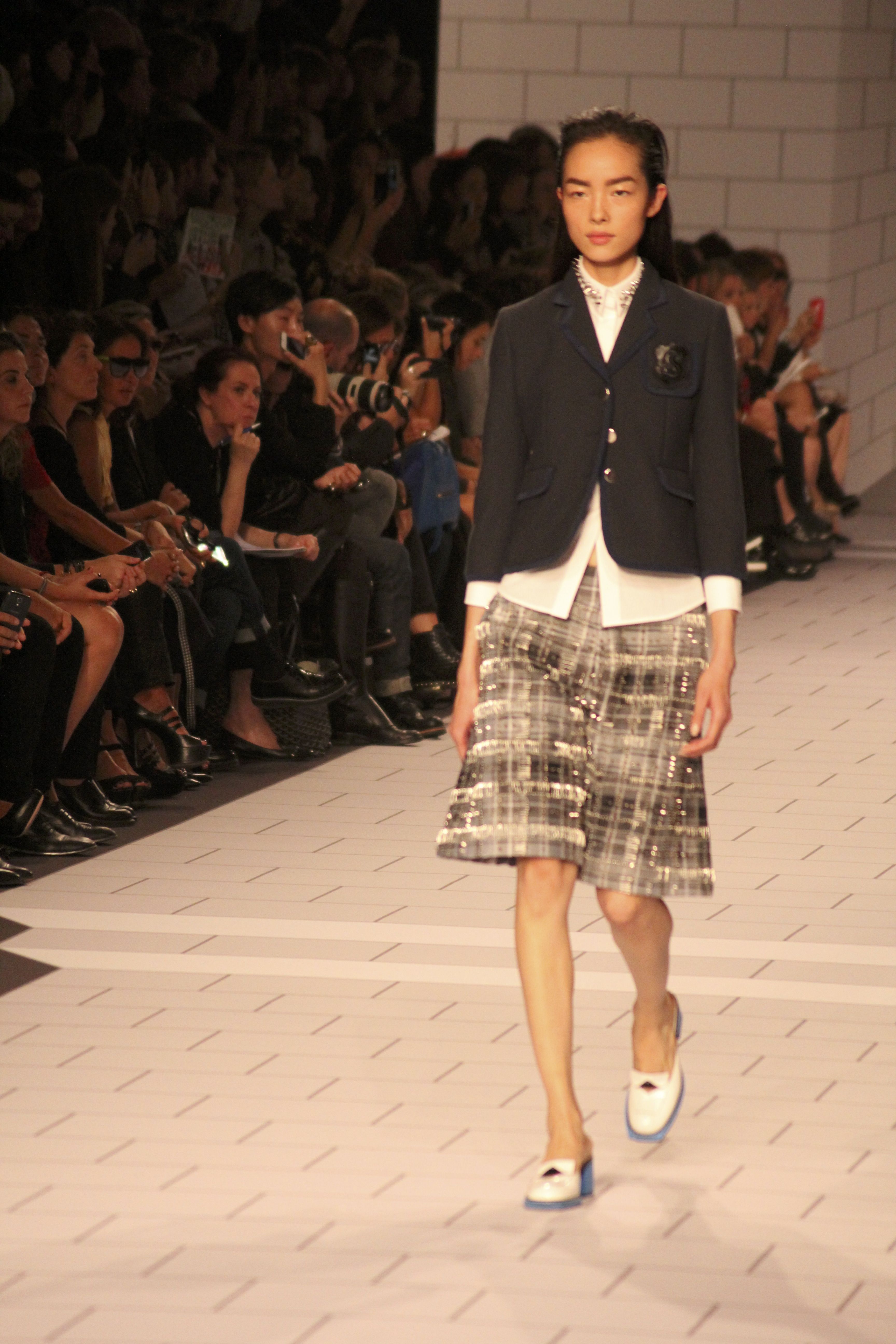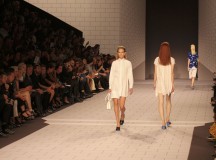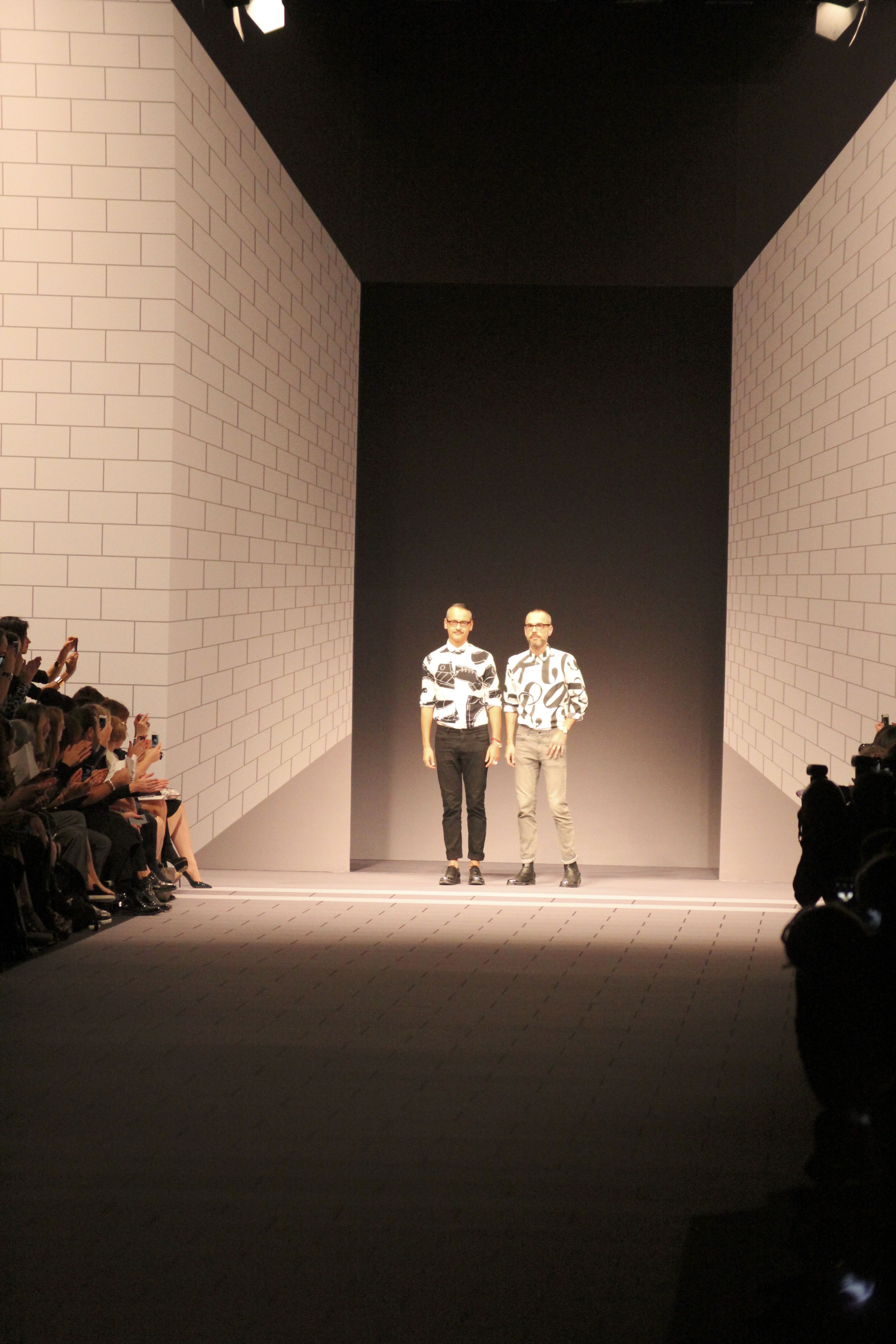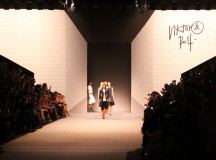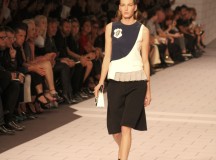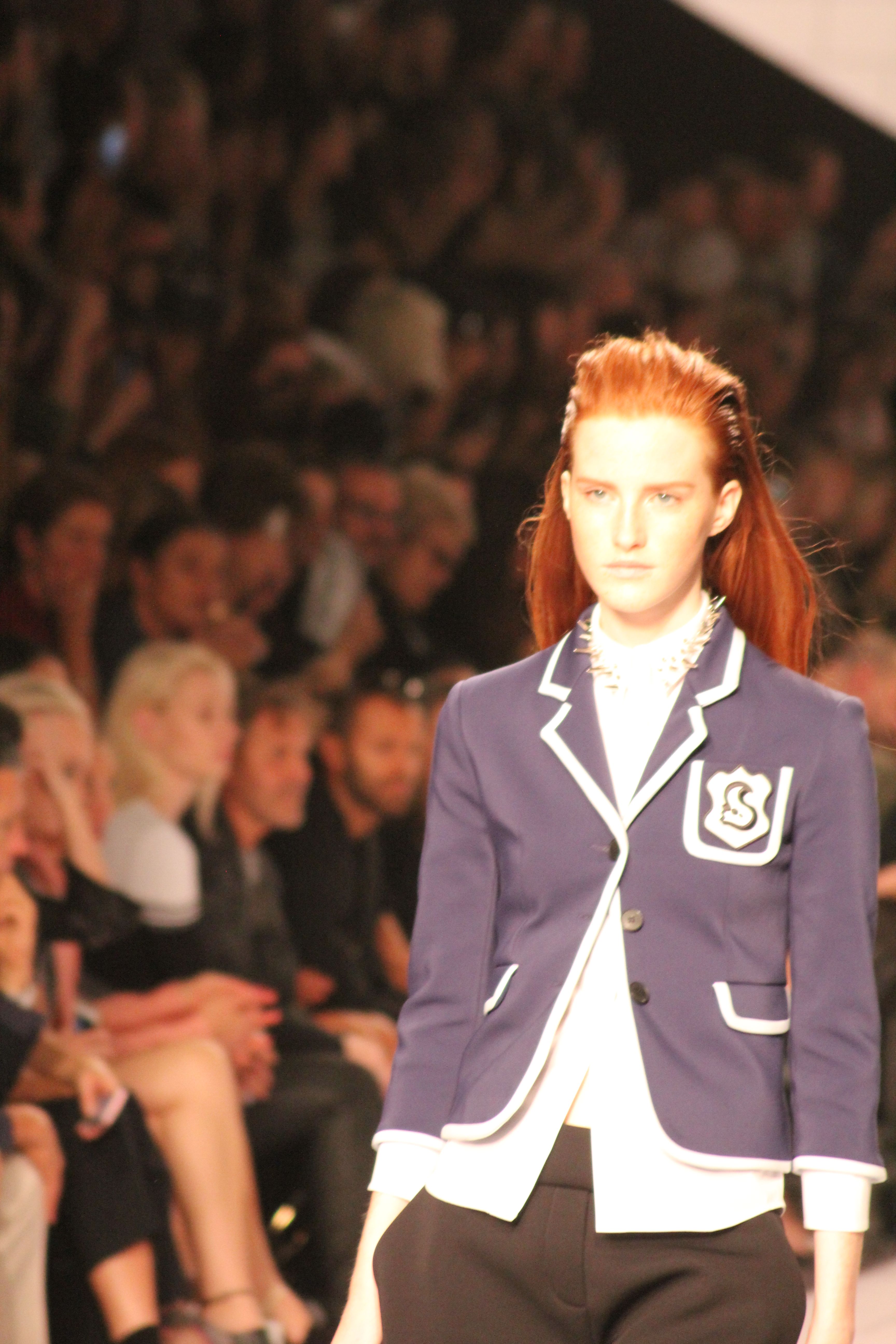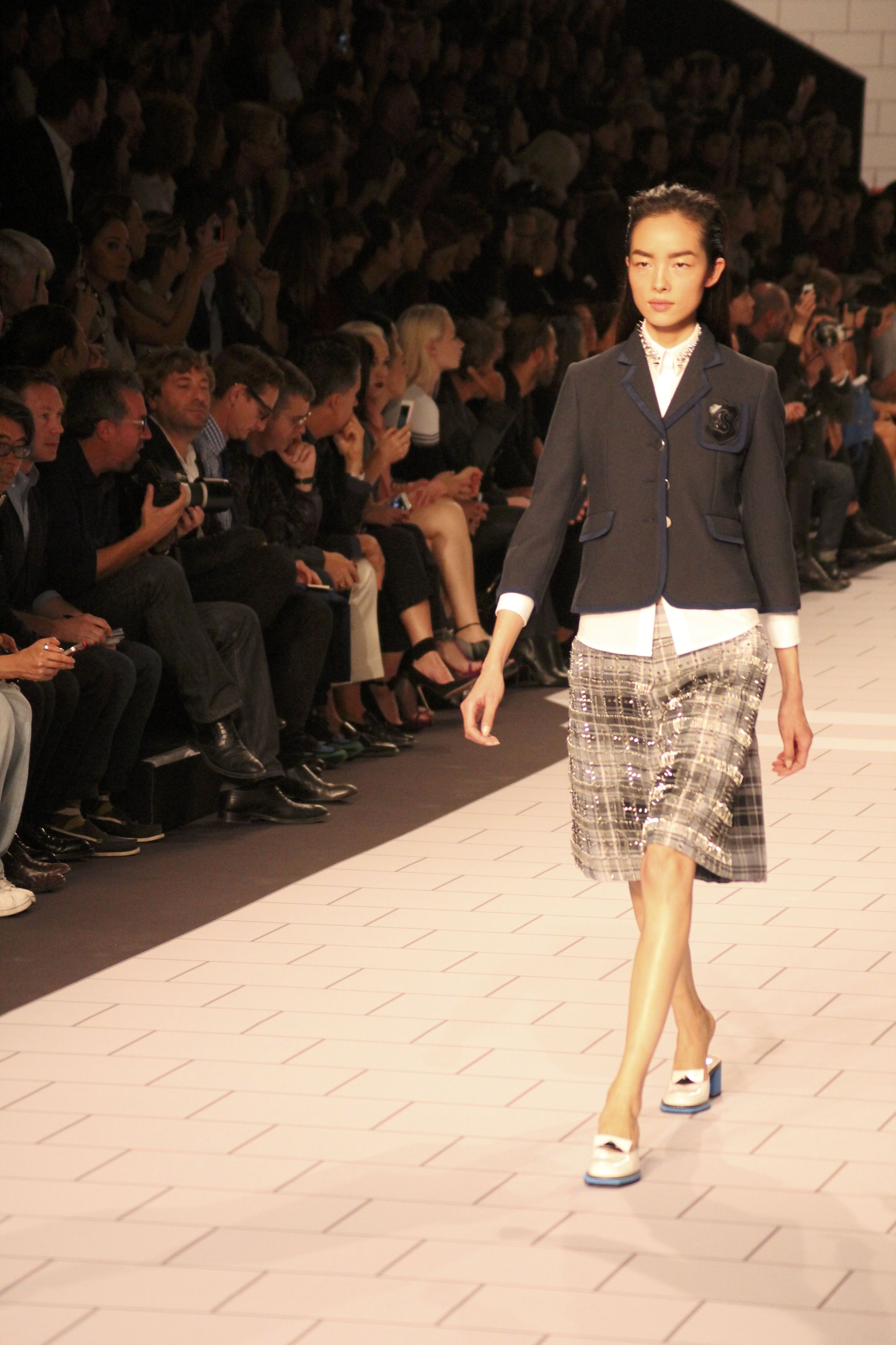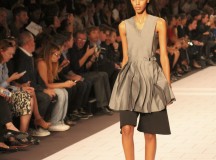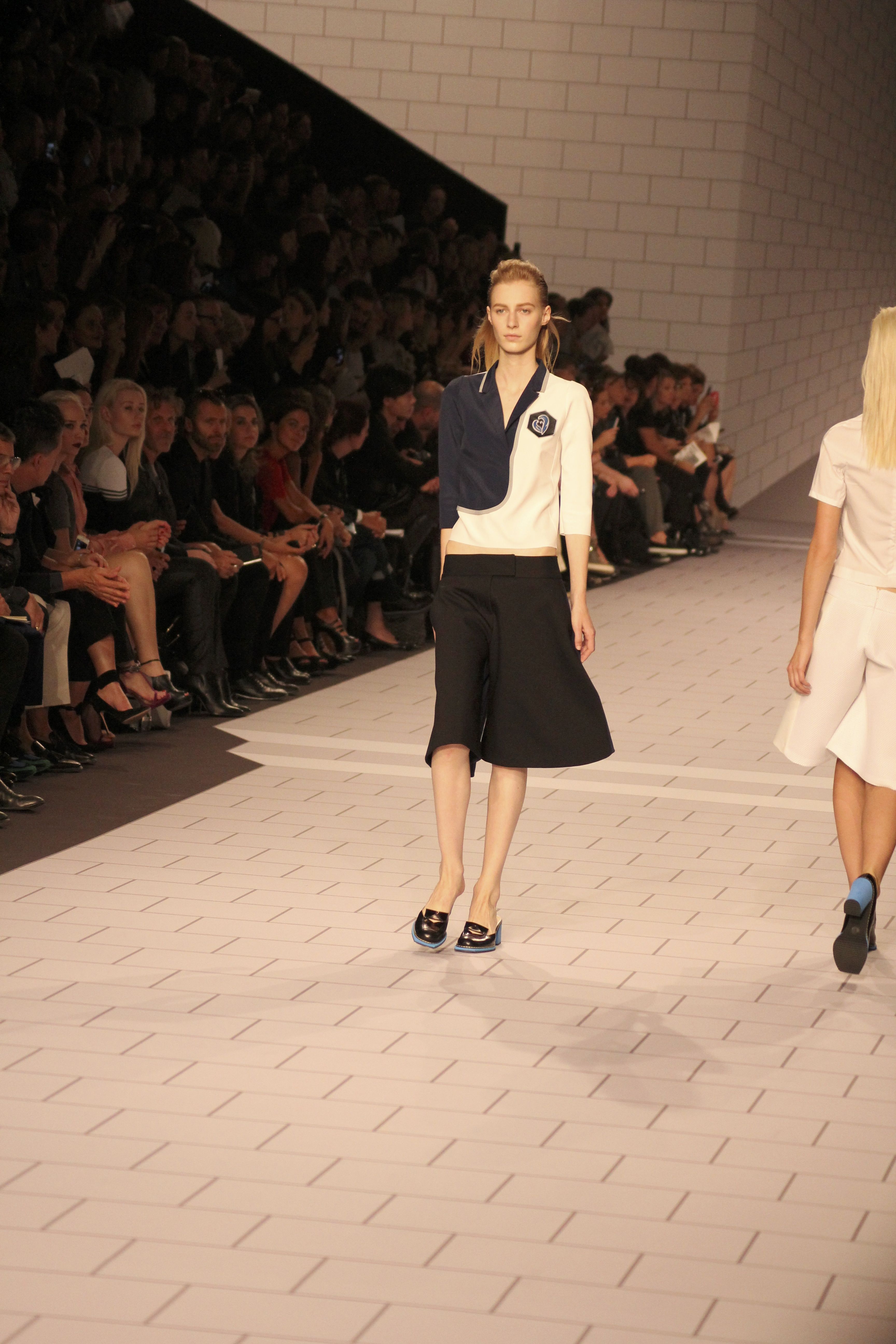 Viktor & Rolf présentaient aux tuileries leurs collections printemps été 2014. Une collection inspirée par les uniformes. Empreinte de rigueur qu’elle oppose à la rébellion, cette collection faisait défiler des jeunes écolières punk au son de « the wall » des pink floyd. Vestes preppy, jupes kilts et jupes culottes, blasers, ecussons en gris, noirs, bleux foncés. Quel show !