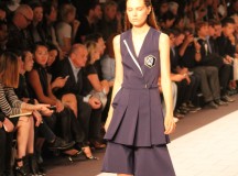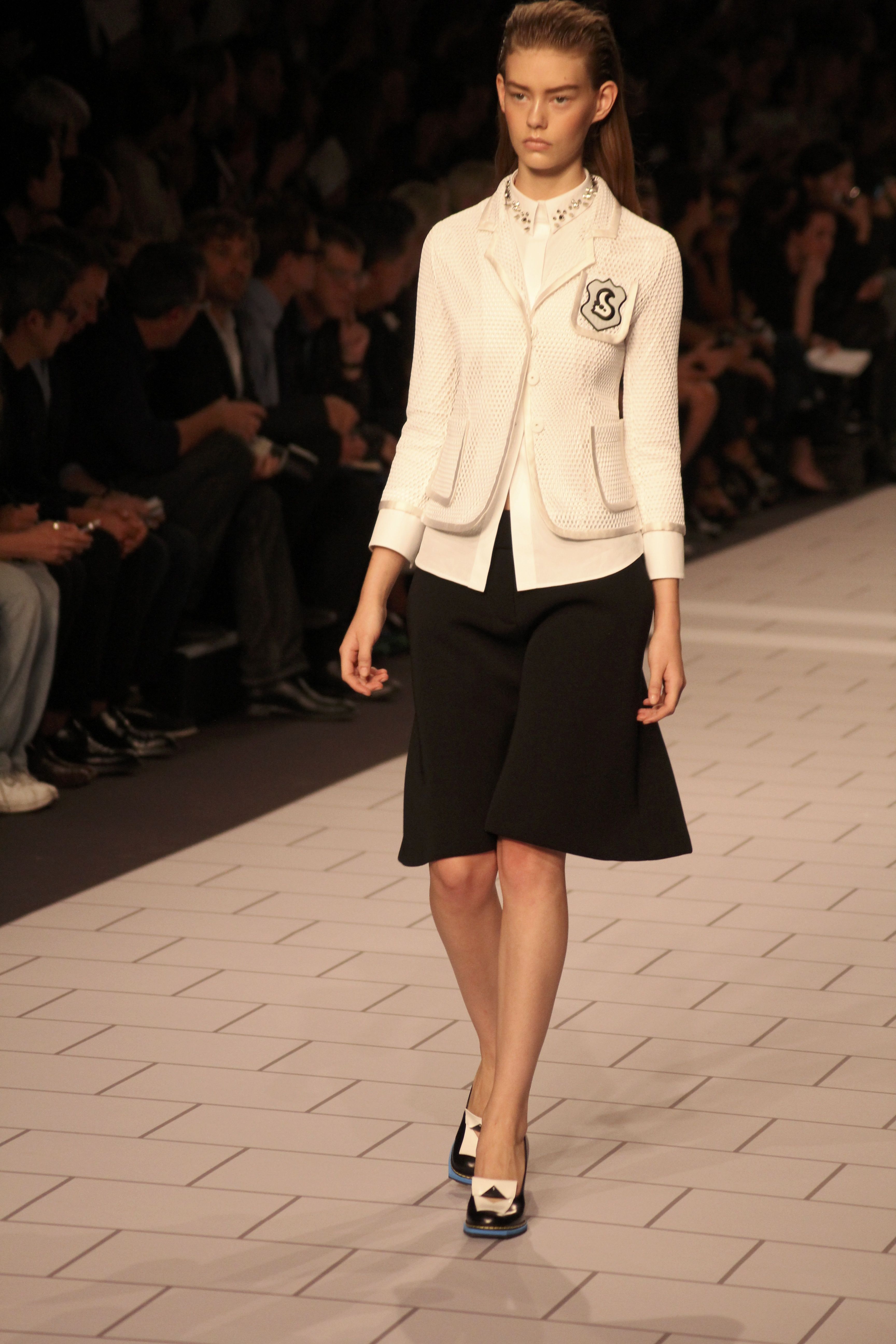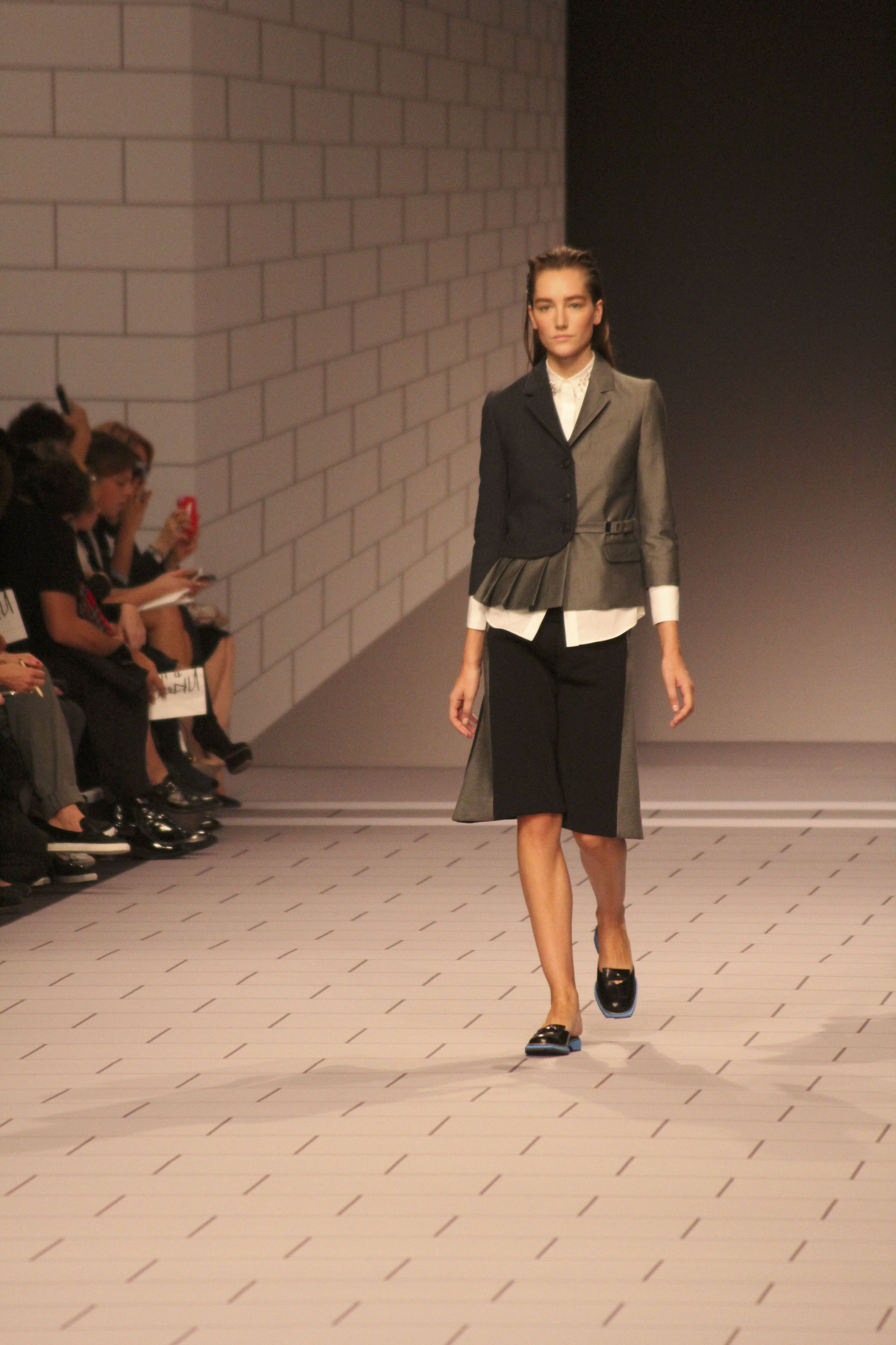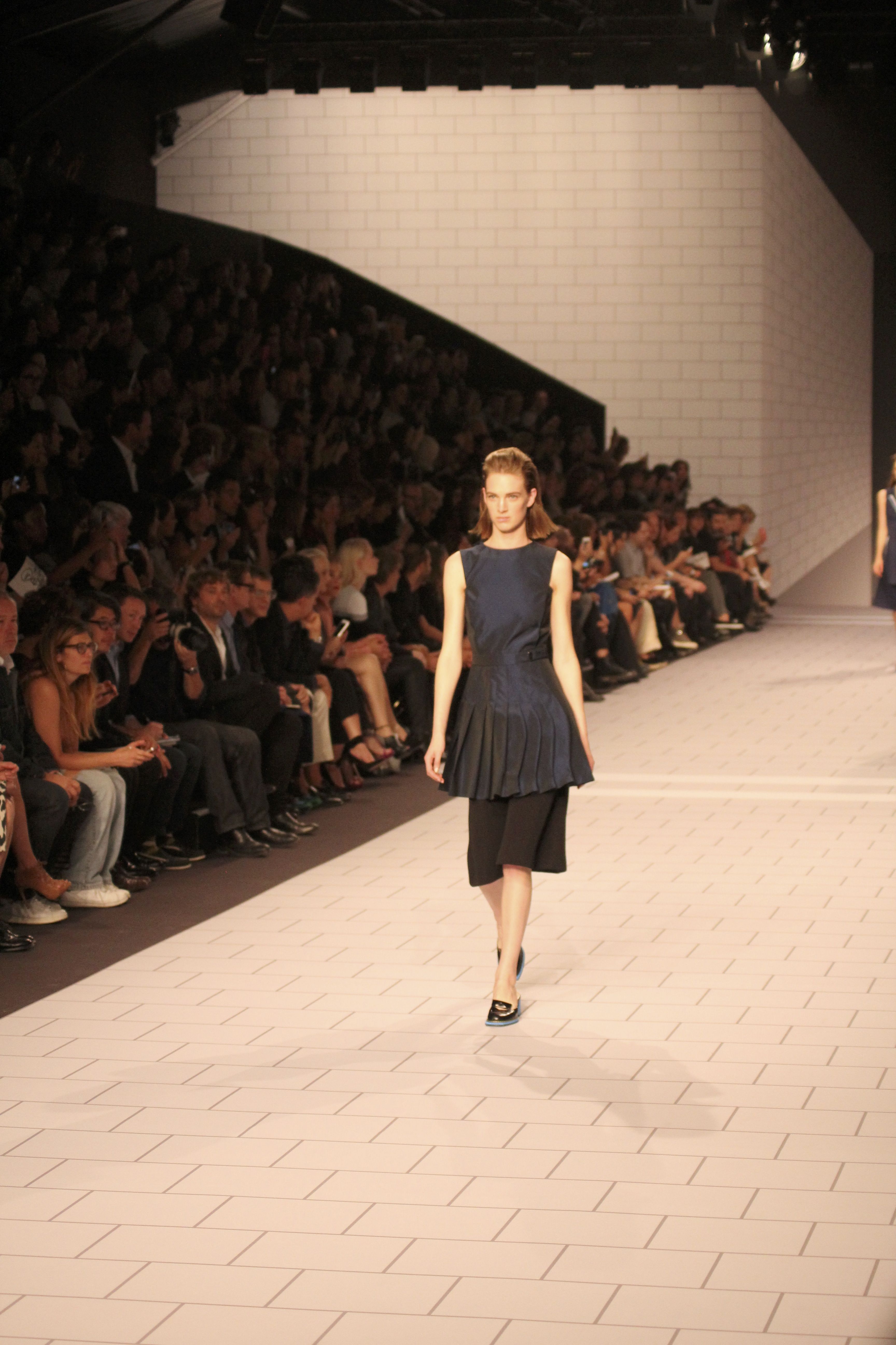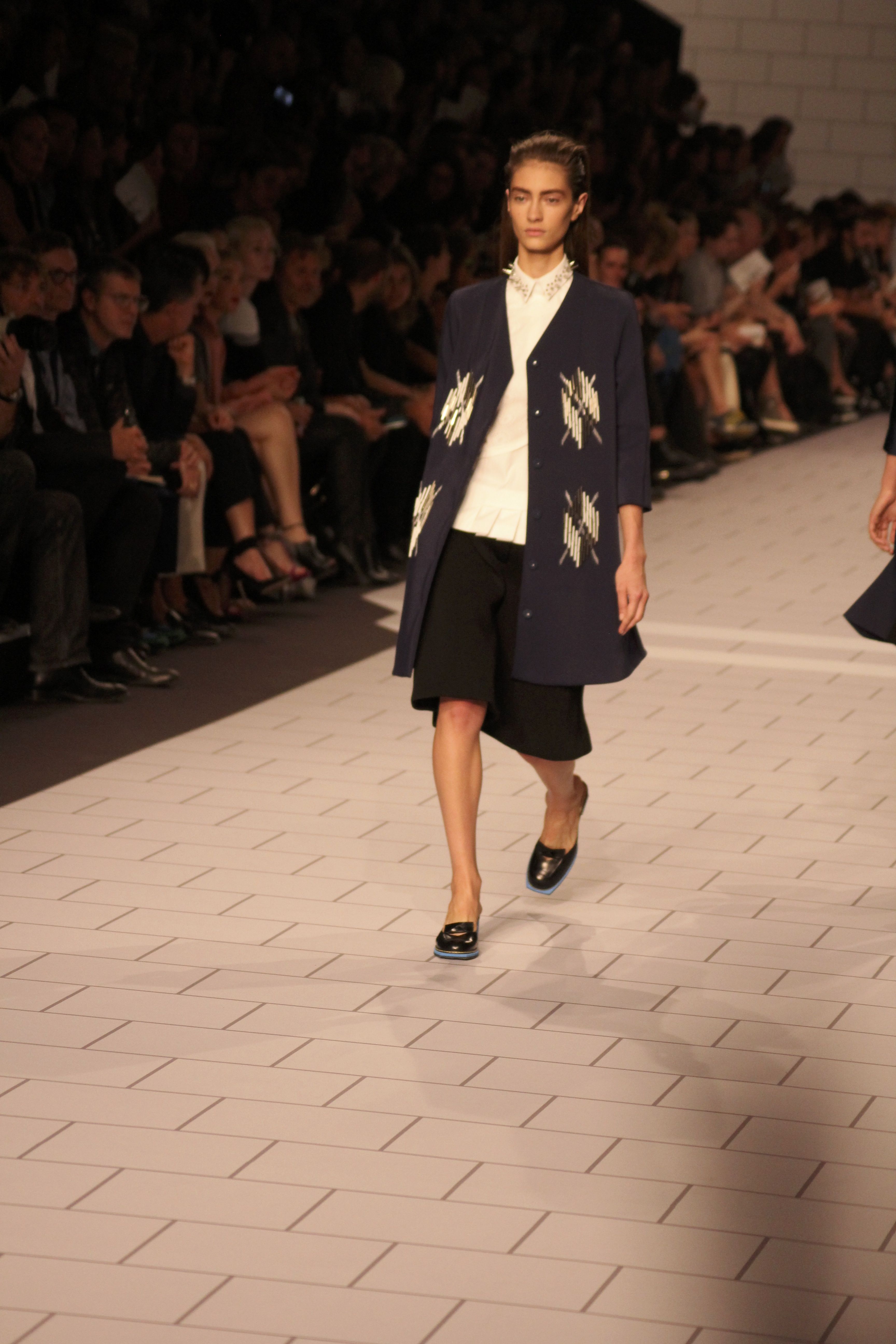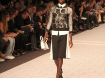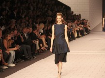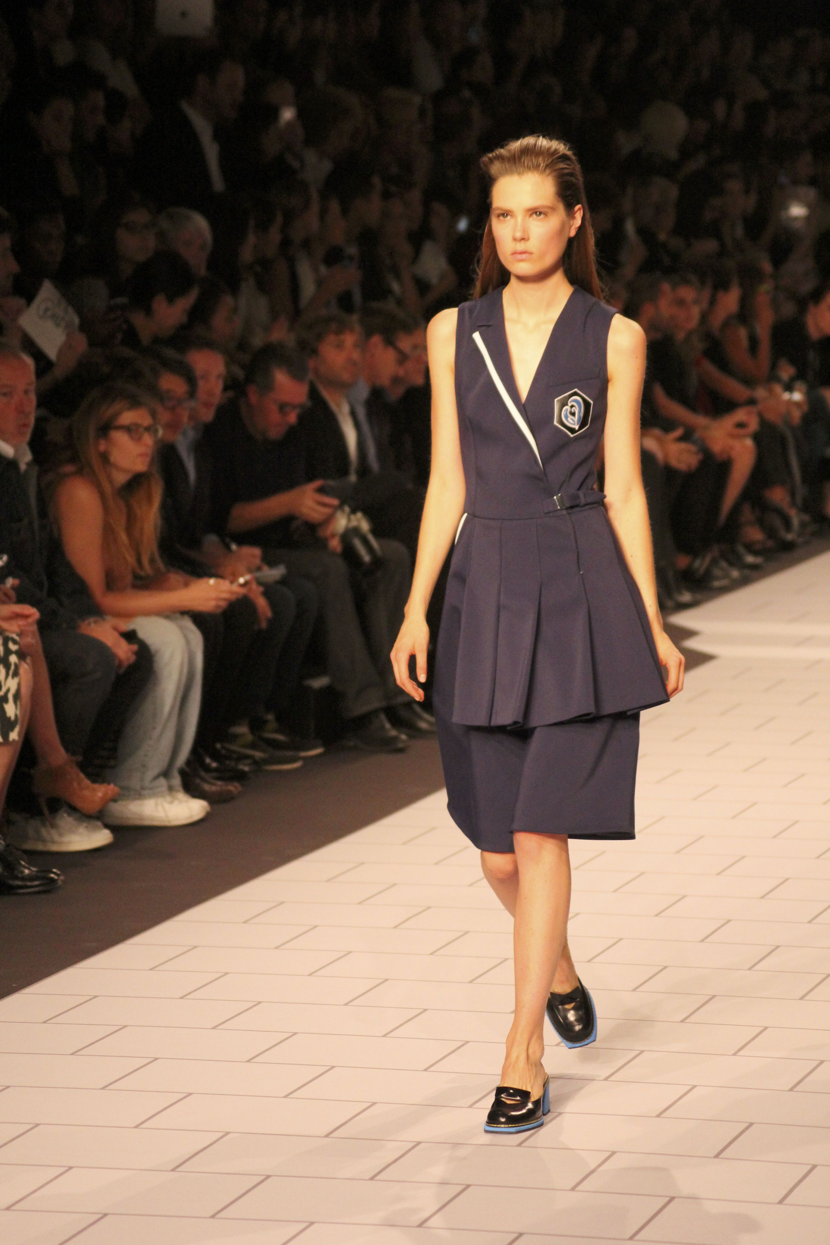 Viktor & Rolf présentaient aux tuileries leurs collections printemps été 2014. Une collection inspirée par les uniformes. Empreinte de rigueur qu’elle oppose à la rébellion, cette collection faisait défiler des jeunes écolières punk au son de « the wall » des pink floyd. Vestes preppy, jupes kilts et jupes culottes, blasers, ecussons en gris, noirs, bleux foncés. Quel show !