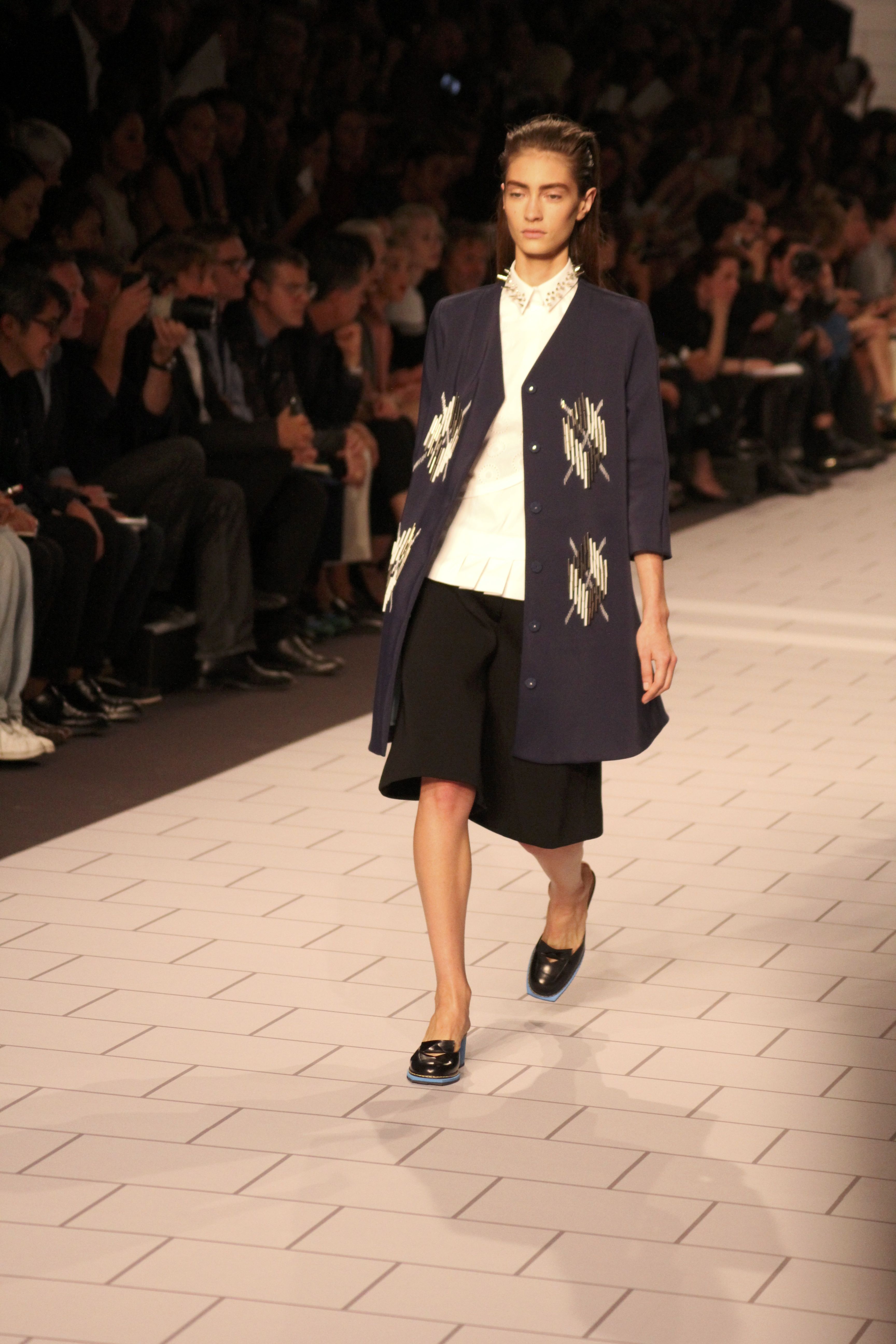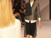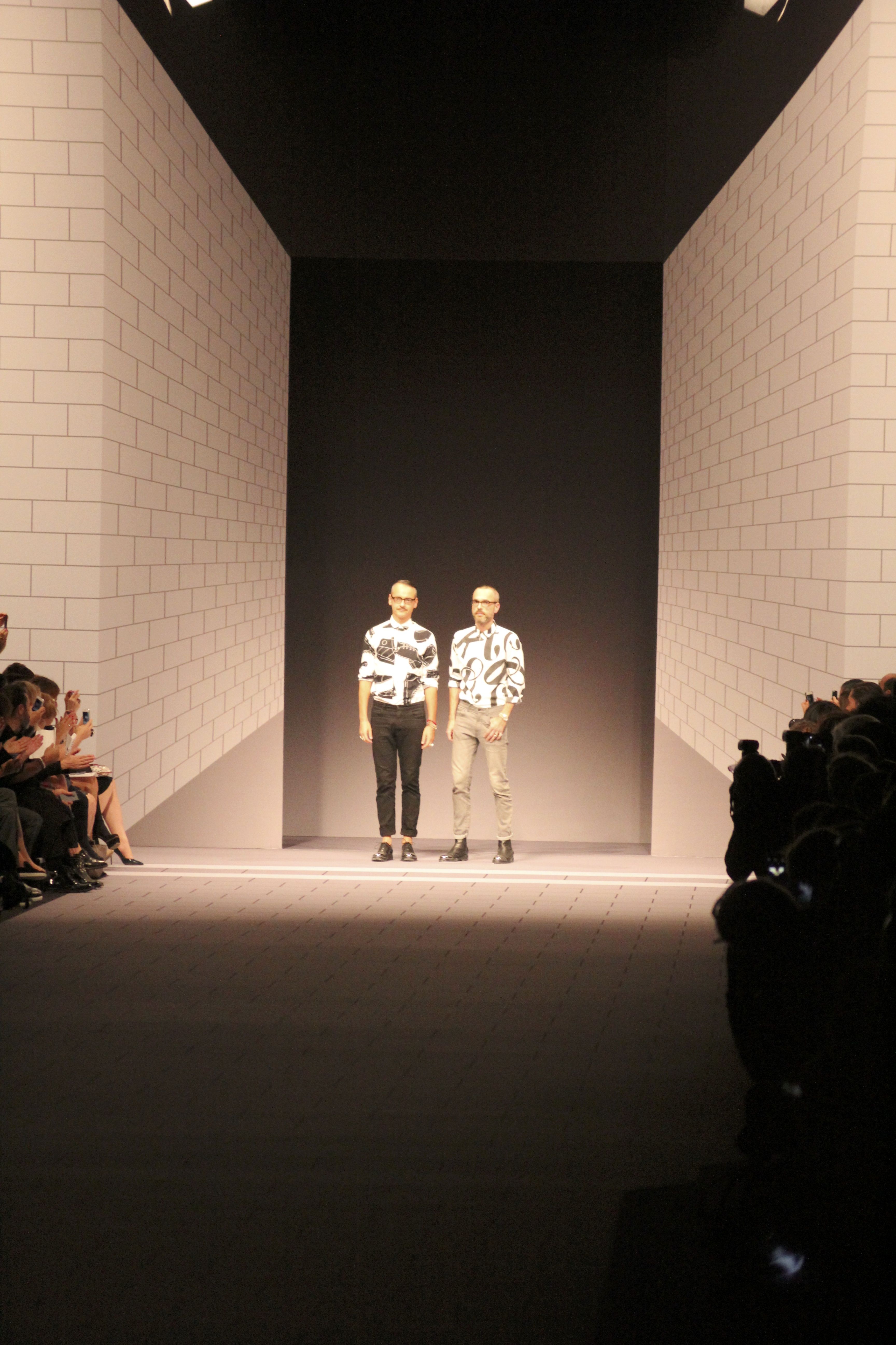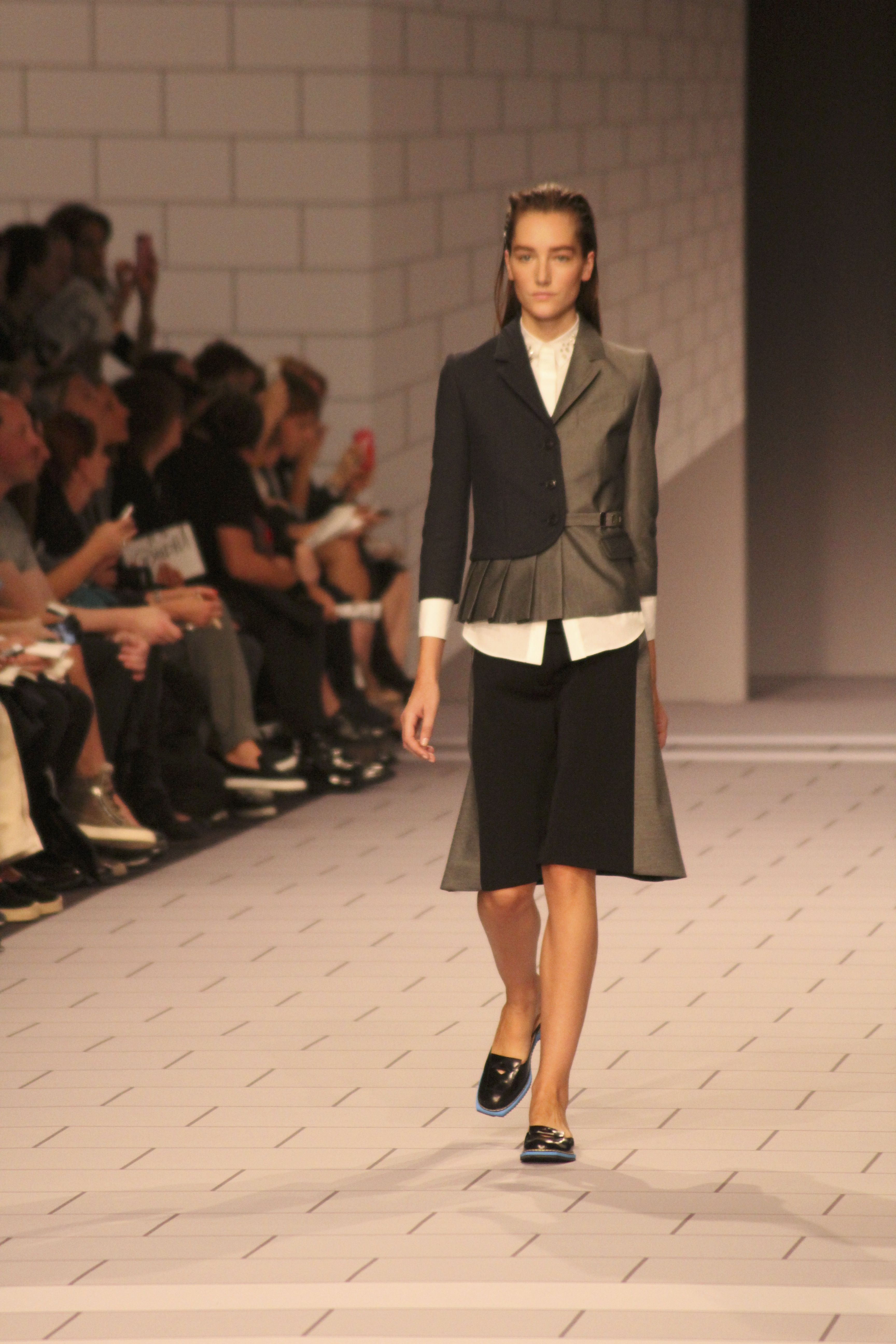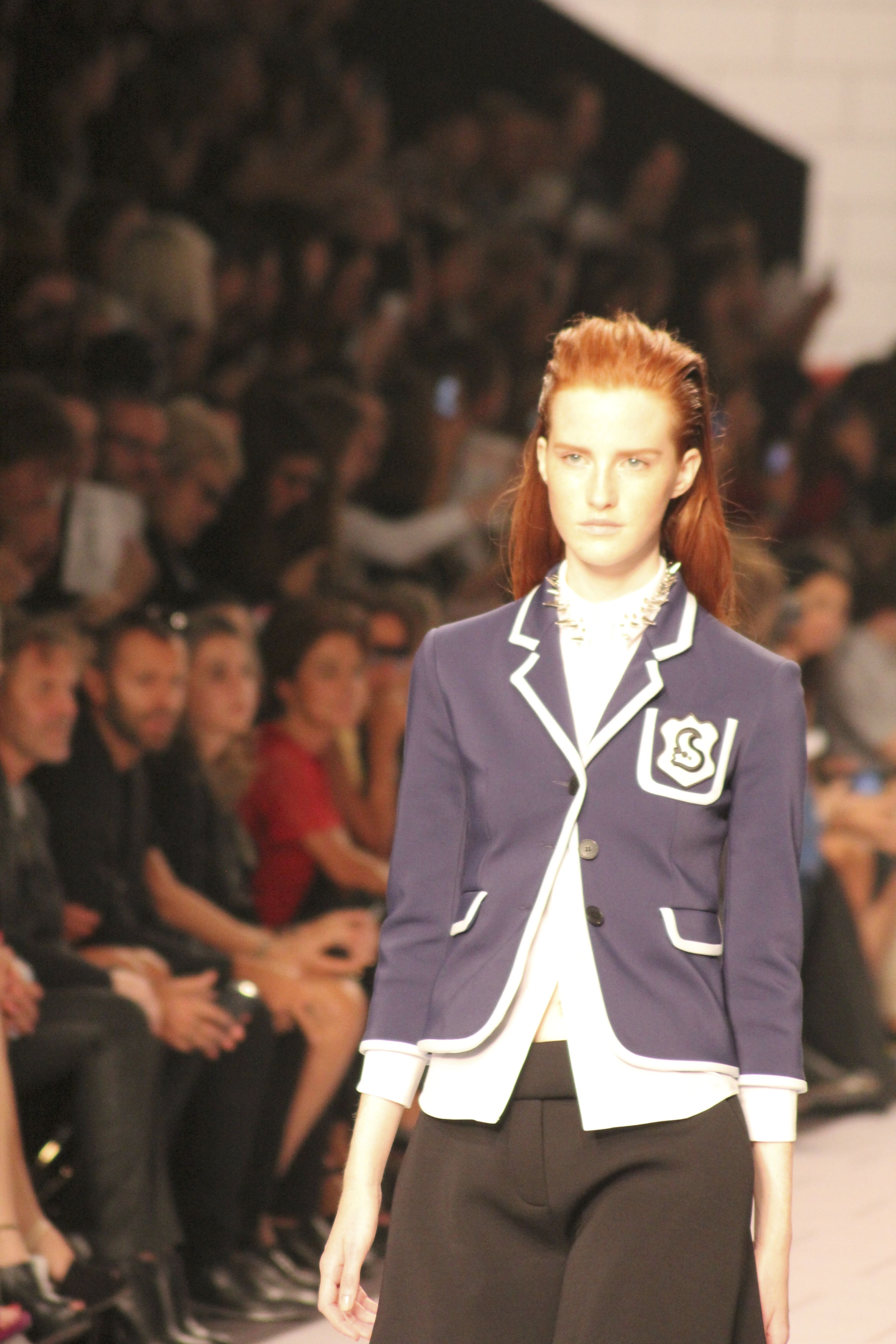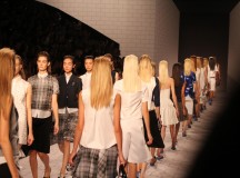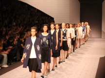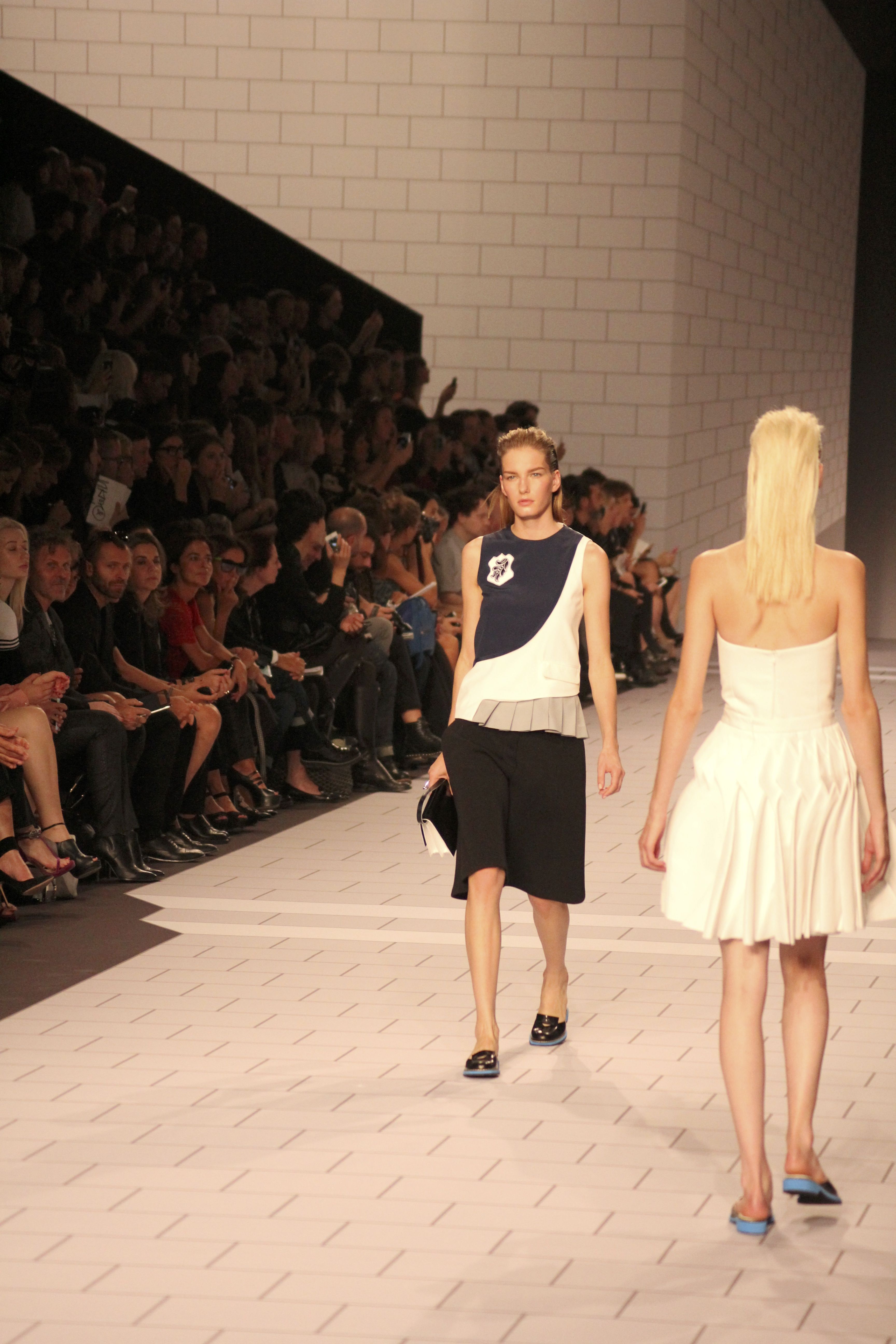 Viktor & Rolf présentaient aux tuileries leurs collections printemps été 2014. Une collection inspirée par les uniformes. Empreinte de rigueur qu’elle oppose à la rébellion, cette collection faisait défiler des jeunes écolières punk au son de « the wall » des pink floyd. Vestes preppy, jupes kilts et jupes culottes, blasers, ecussons en gris, noirs, bleux foncés. Quel show !