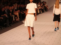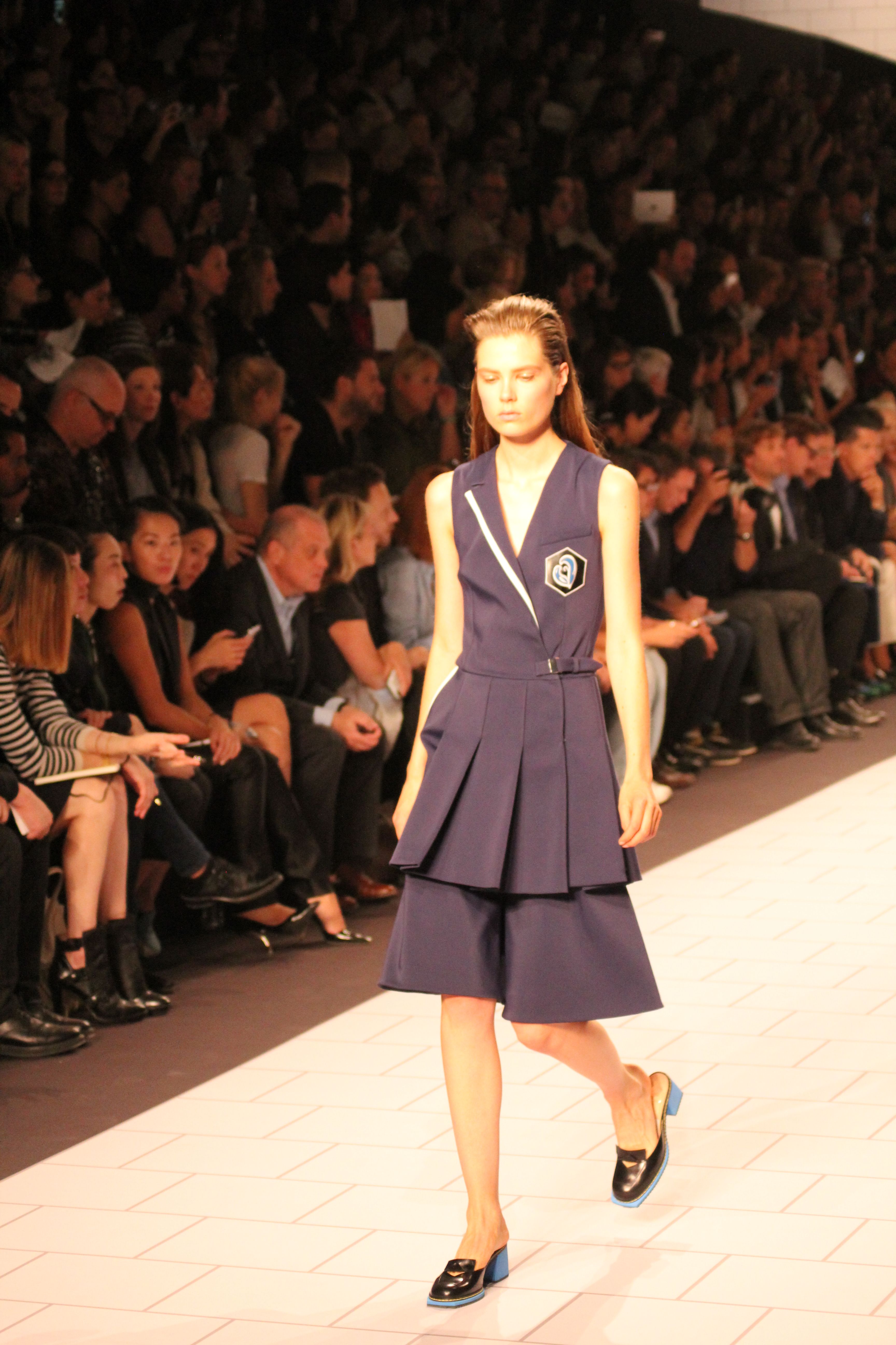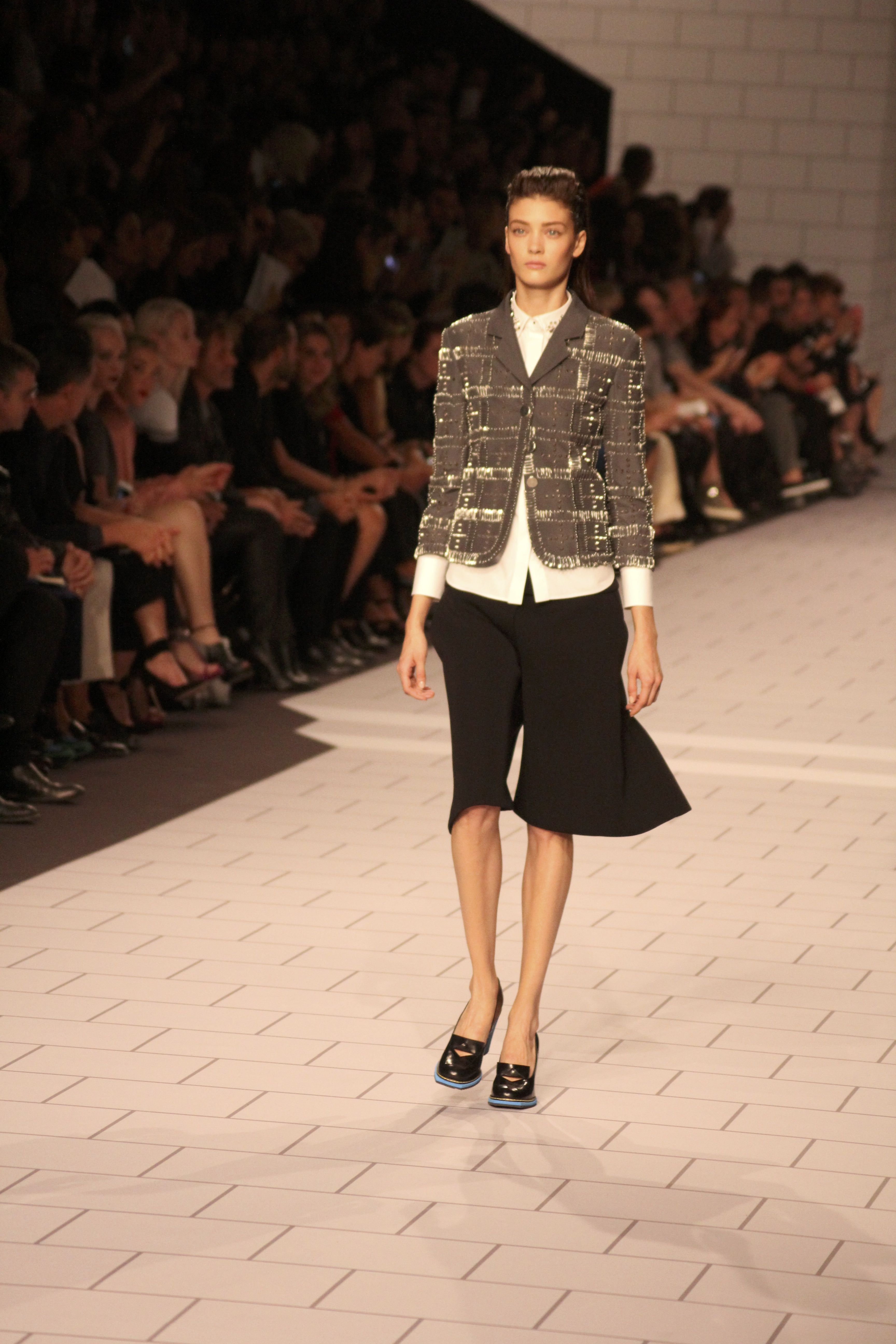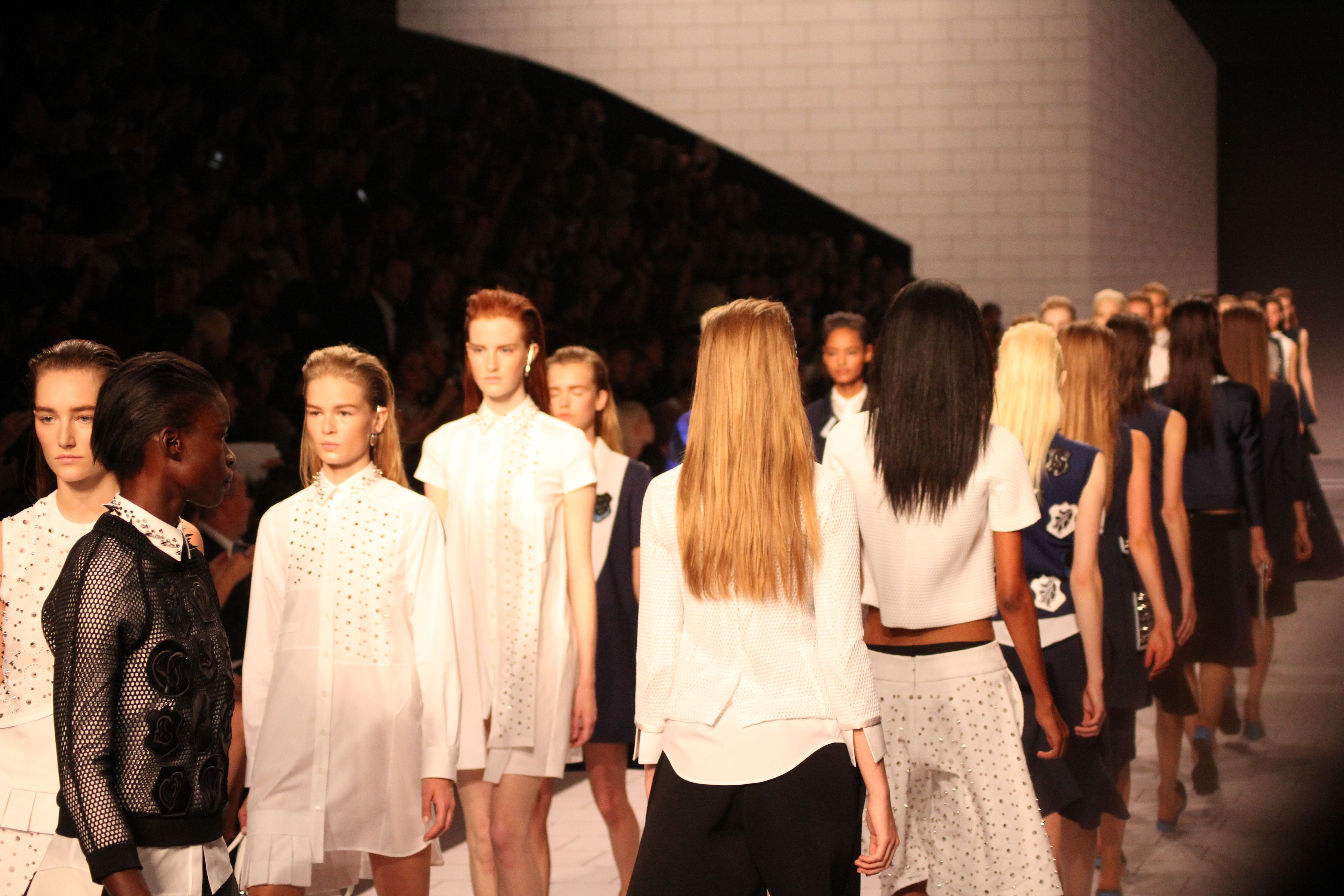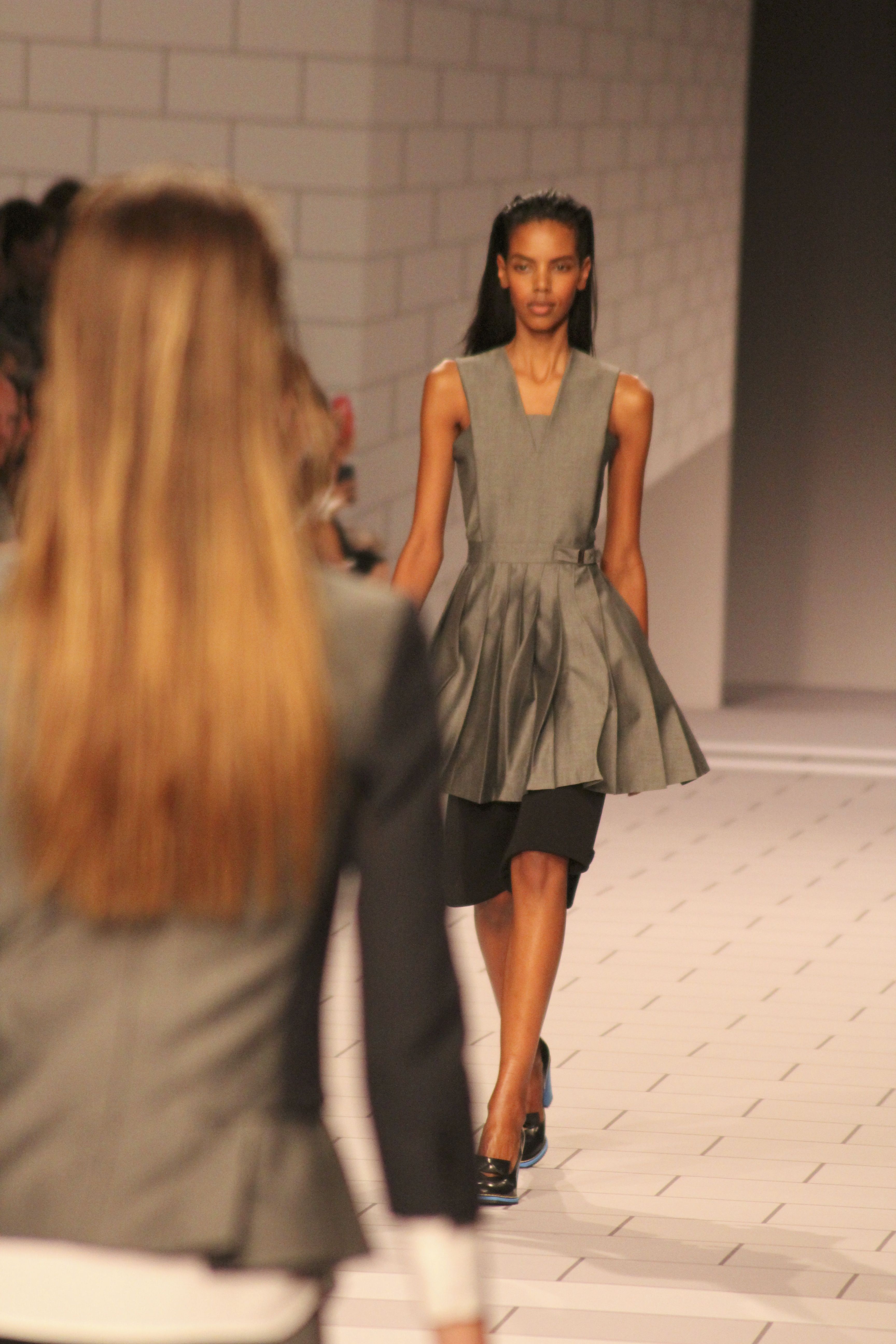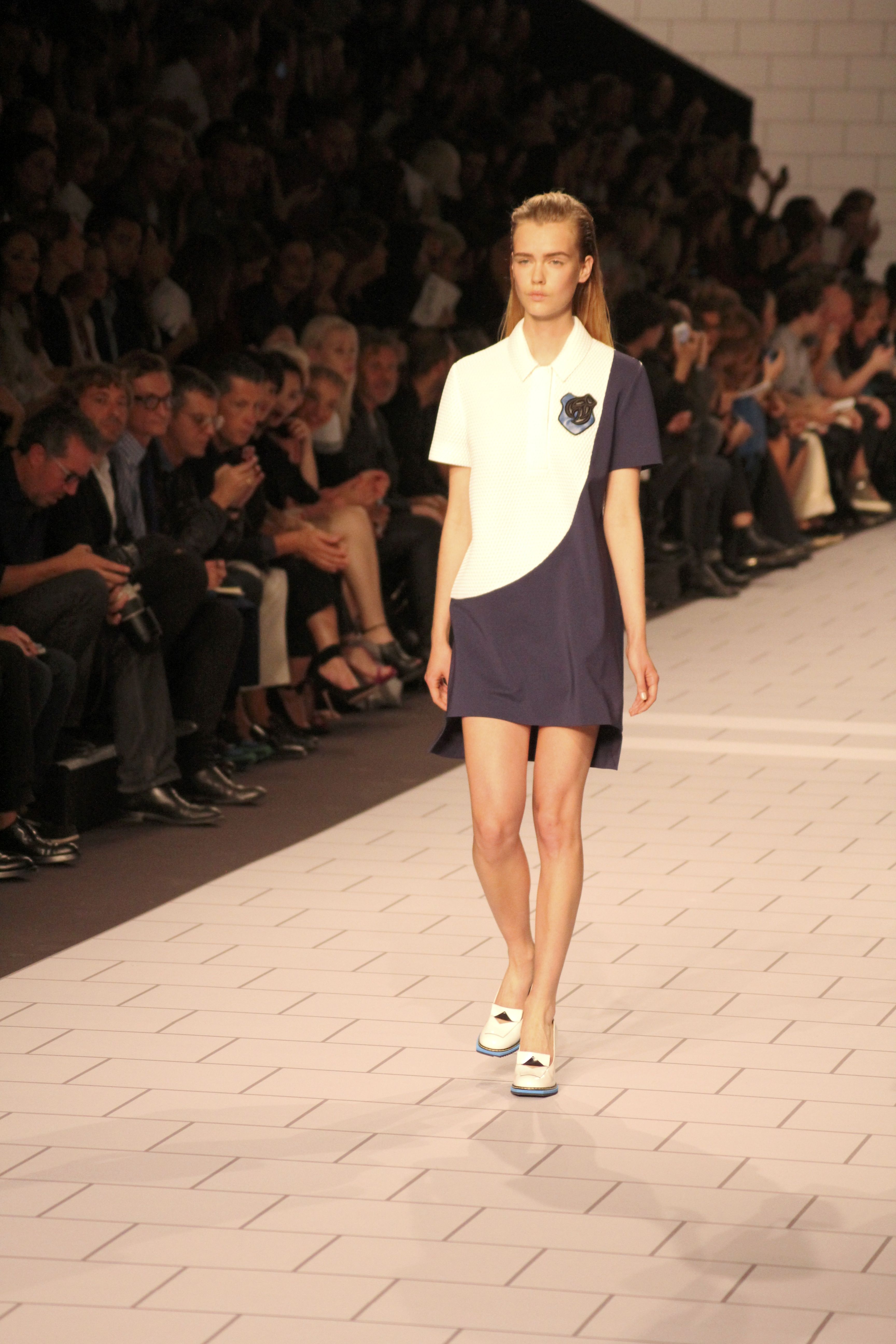 Viktor & Rolf présentaient aux tuileries leurs collections printemps été 2014. Une collection inspirée par les uniformes. Empreinte de rigueur qu’elle oppose à la rébellion, cette collection faisait défiler des jeunes écolières punk au son de « the wall » des pink floyd. Vestes preppy, jupes kilts et jupes culottes, blasers, ecussons en gris, noirs, bleux foncés. Quel show !