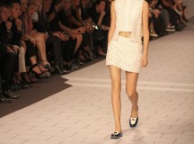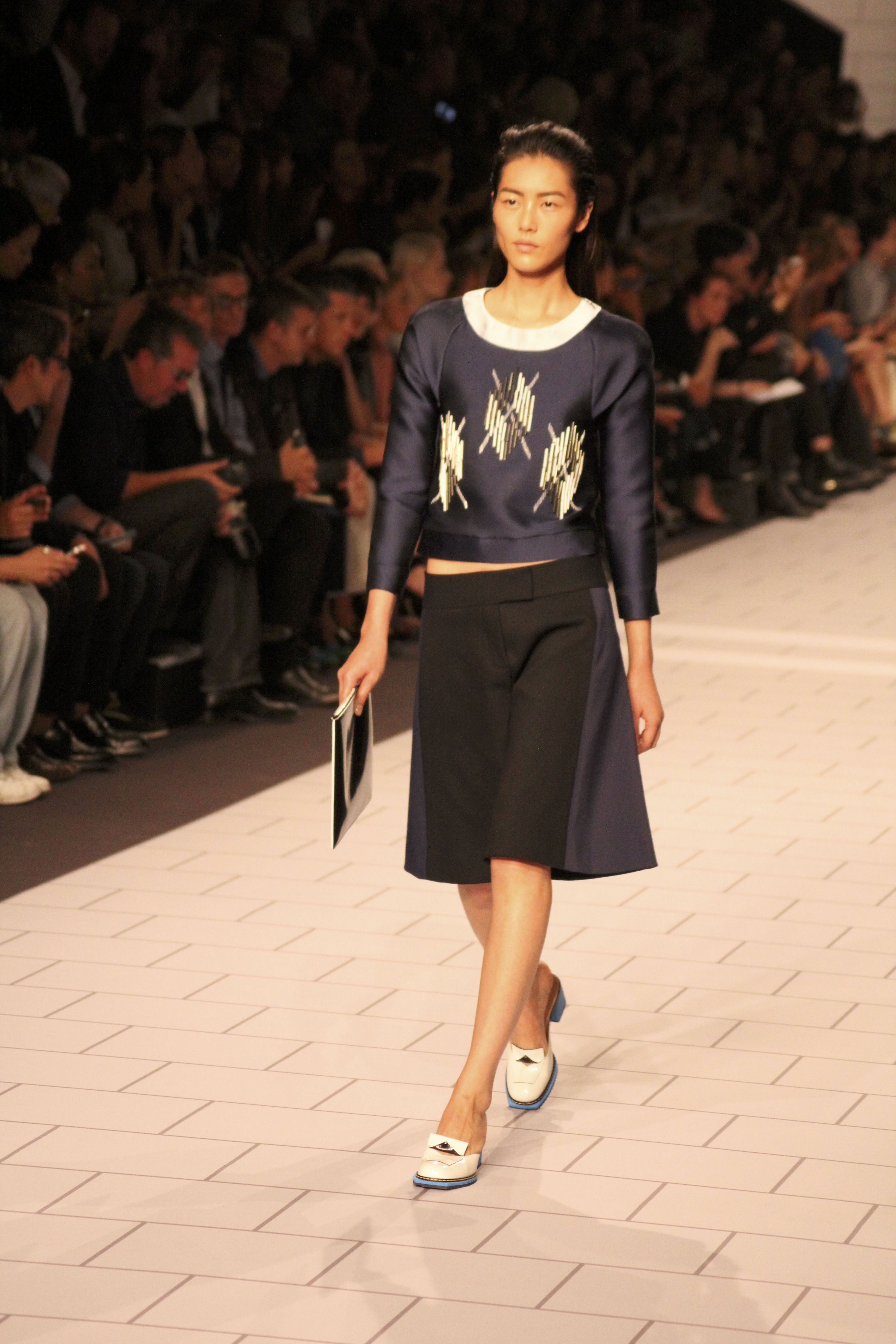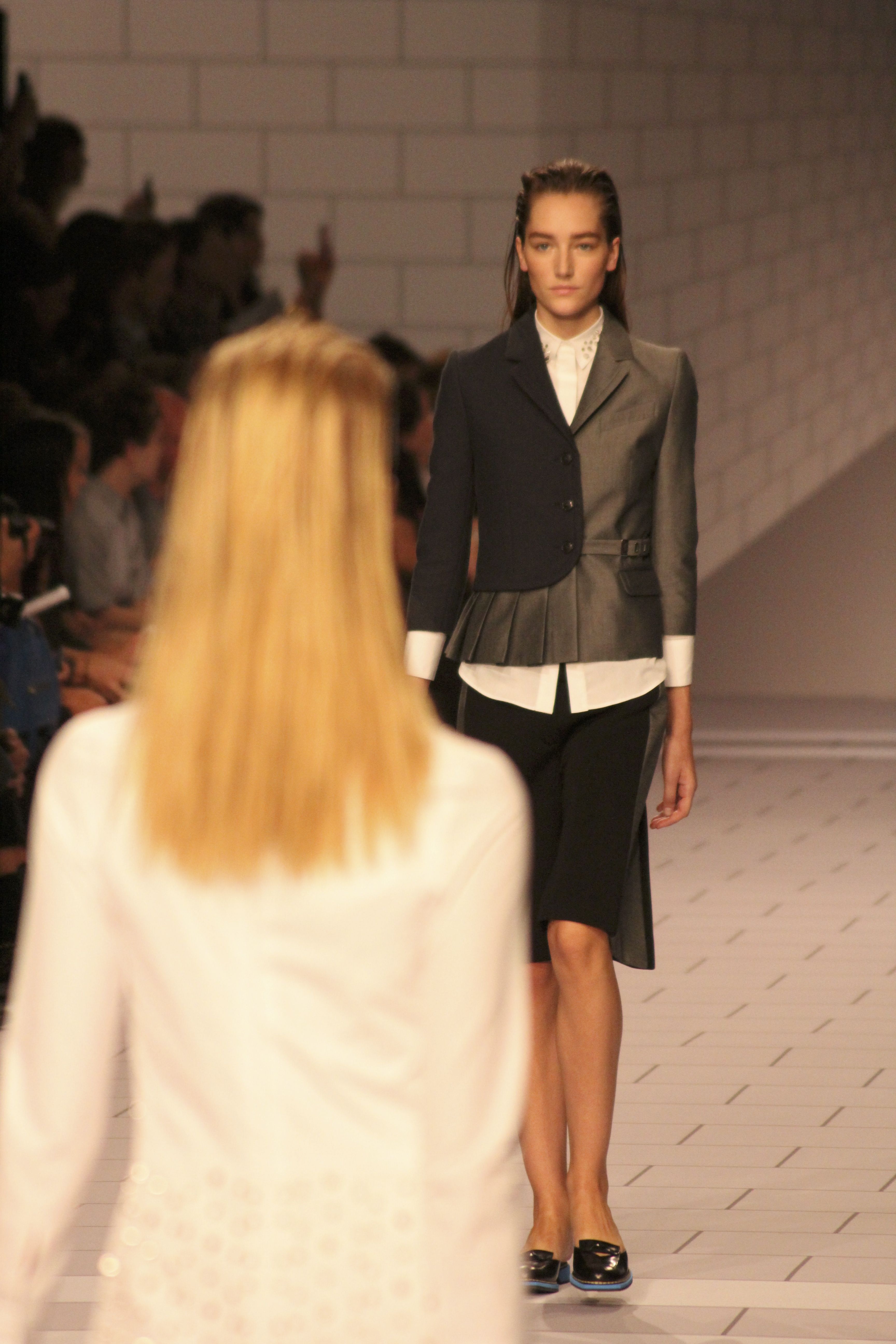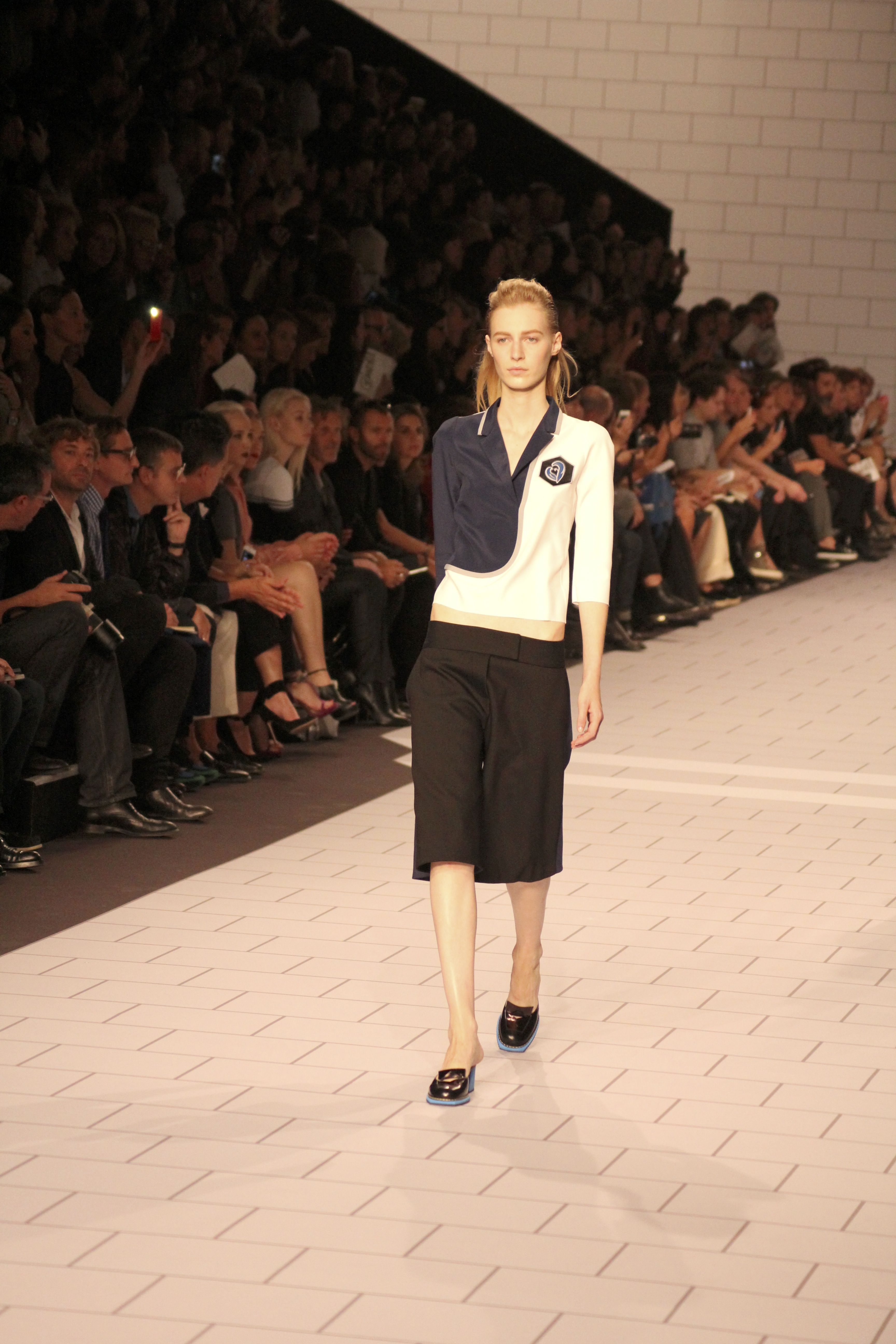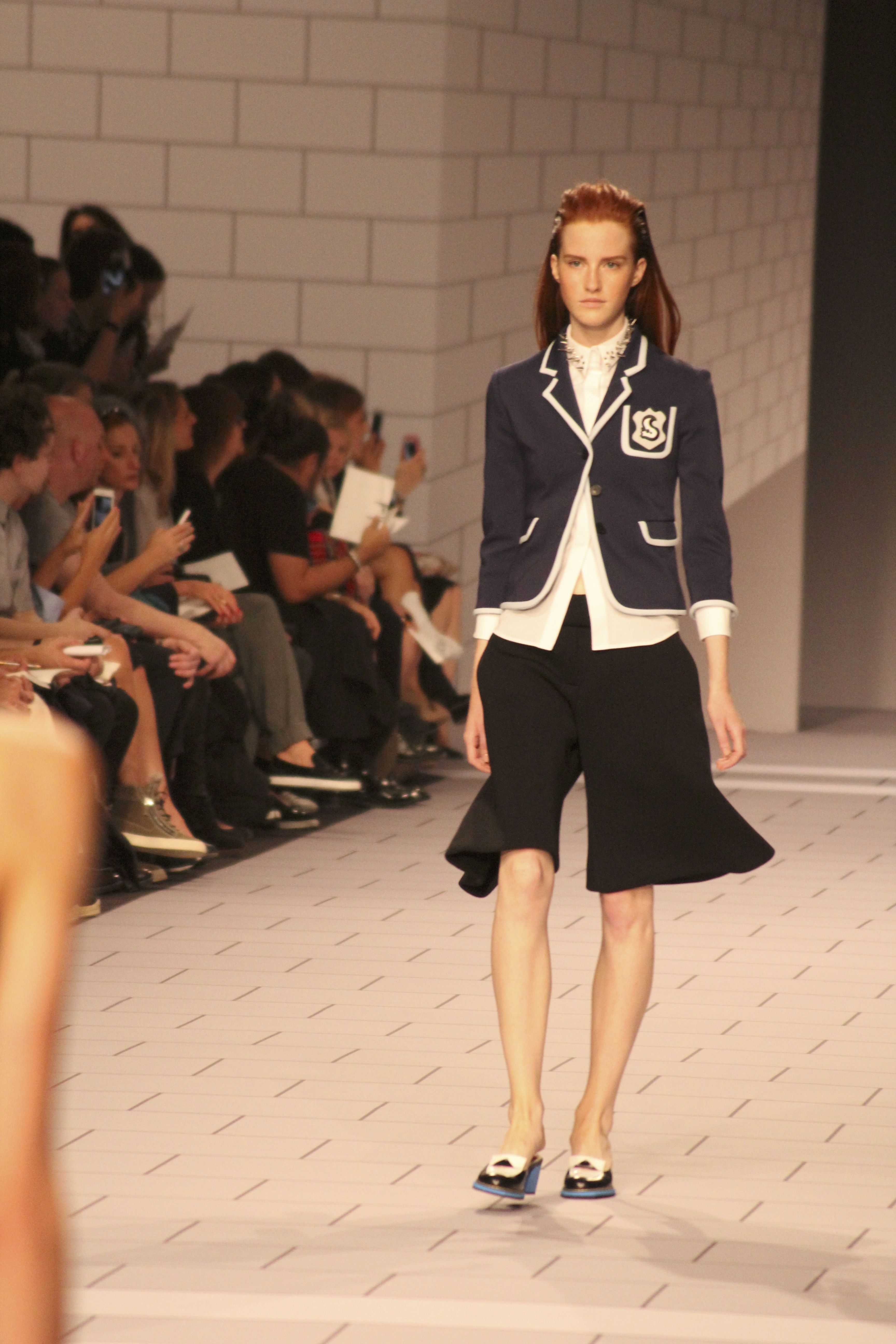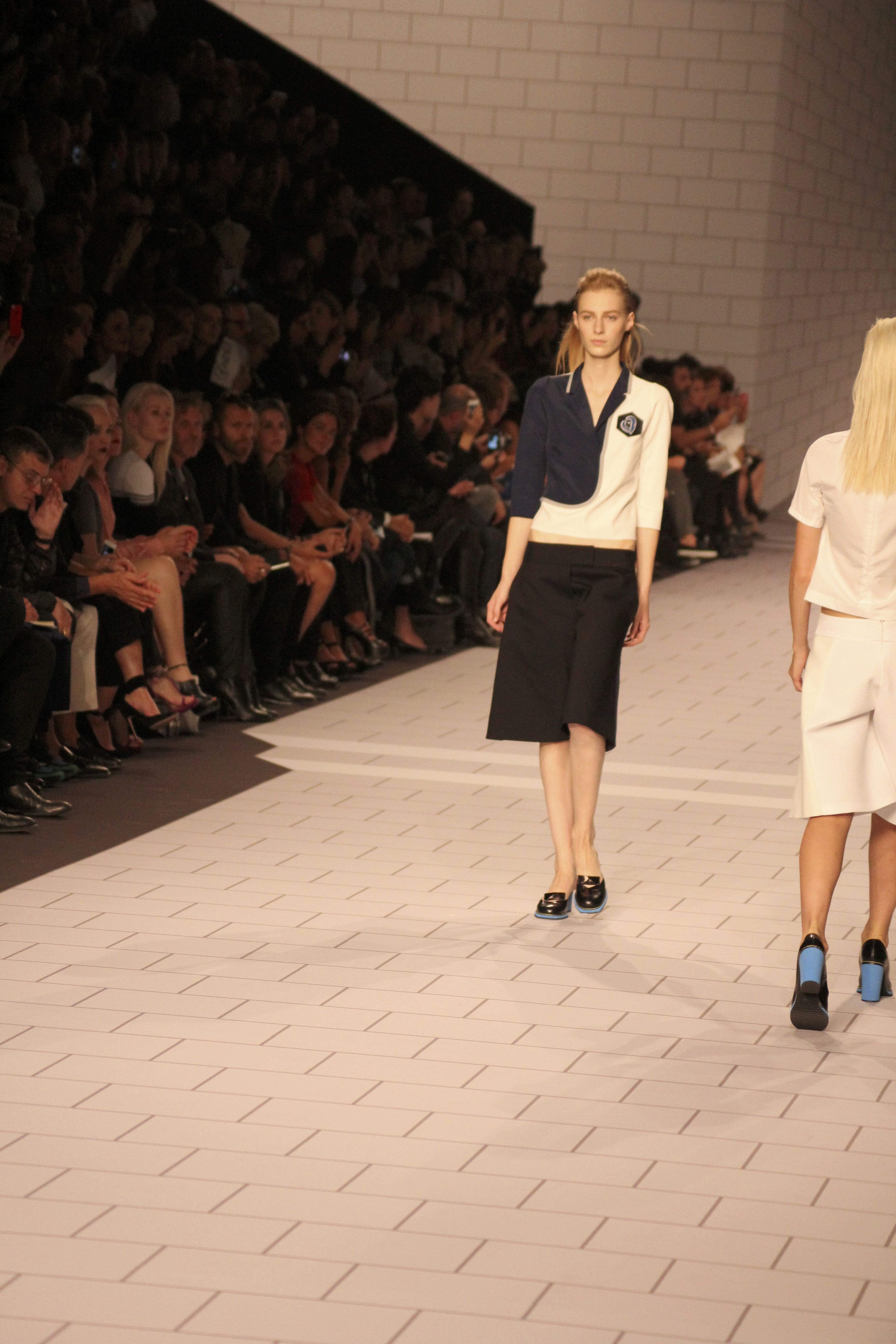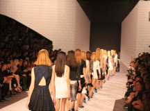 Viktor & Rolf présentaient aux tuileries leurs collections printemps été 2014. Une collection inspirée par les uniformes. Empreinte de rigueur qu’elle oppose à la rébellion, cette collection faisait défiler des jeunes écolières punk au son de « the wall » des pink floyd. Vestes preppy, jupes kilts et jupes culottes, blasers, ecussons en gris, noirs, bleux foncés. Quel show !