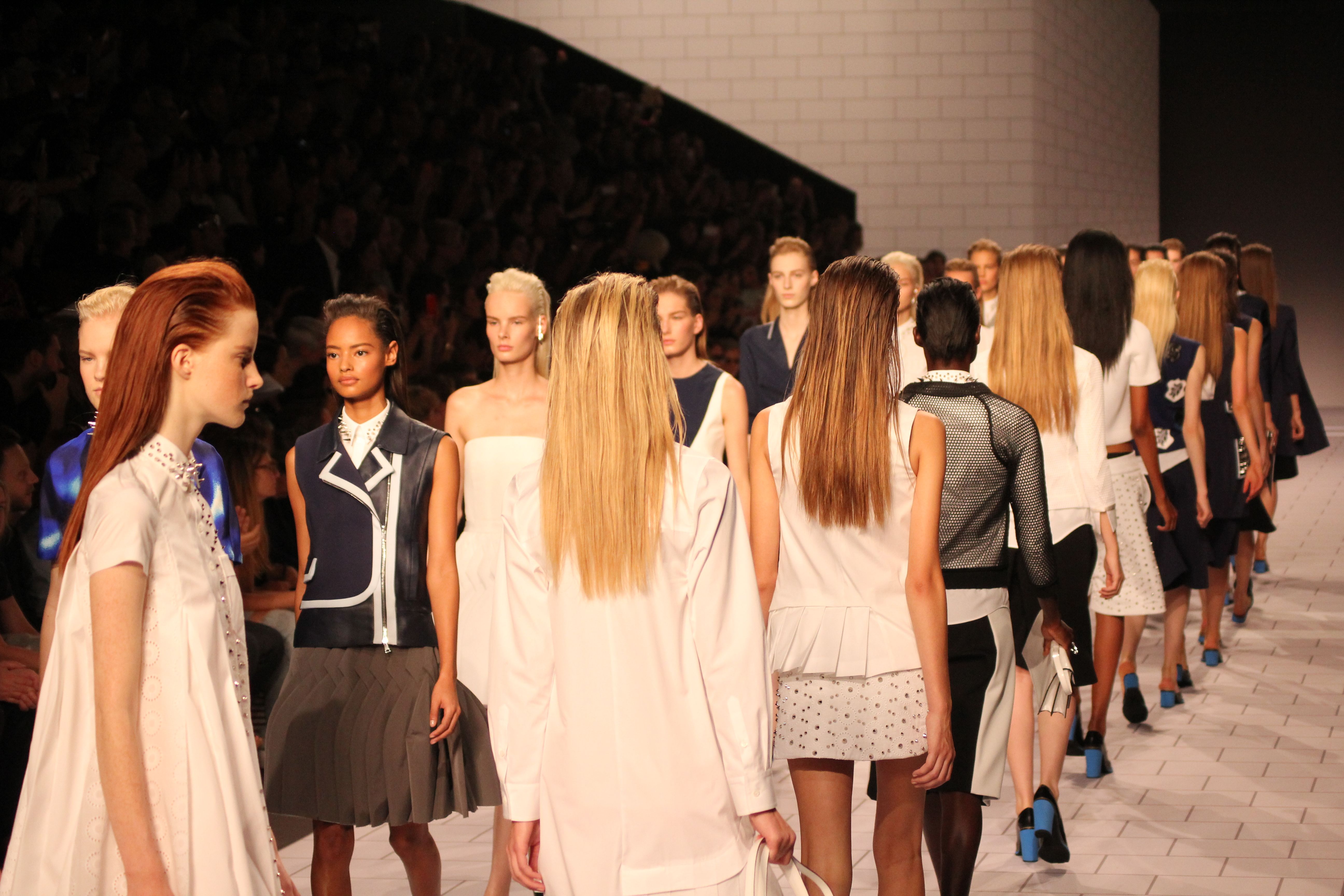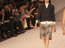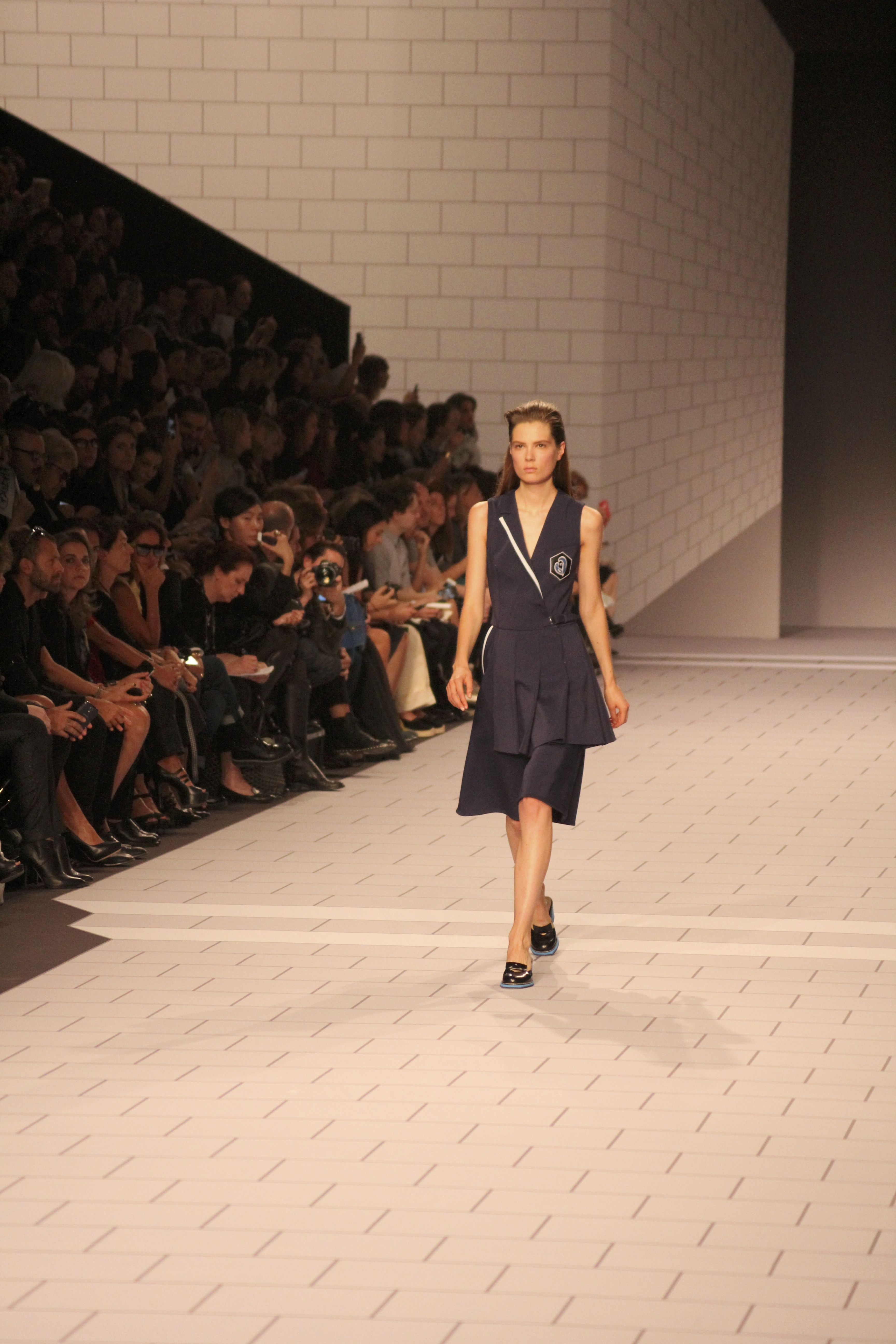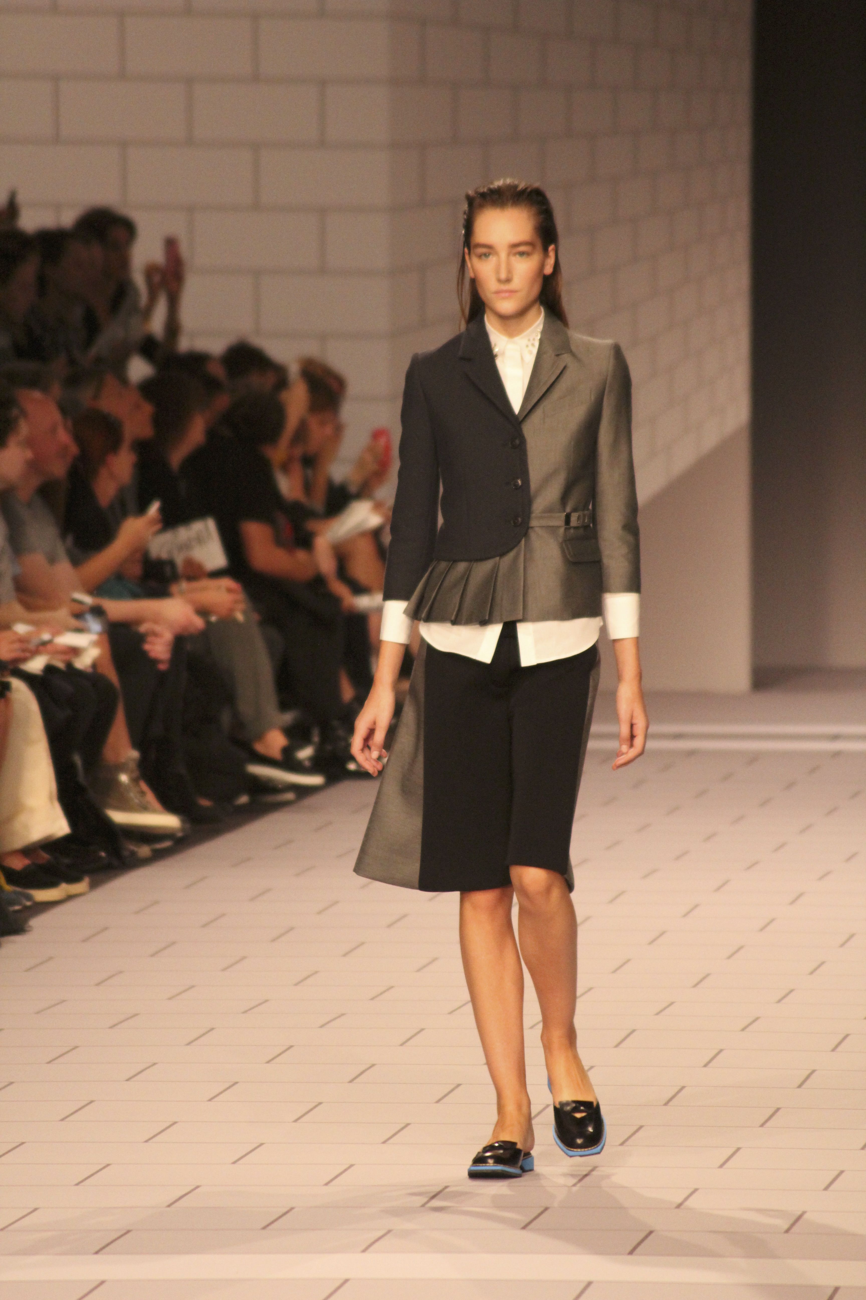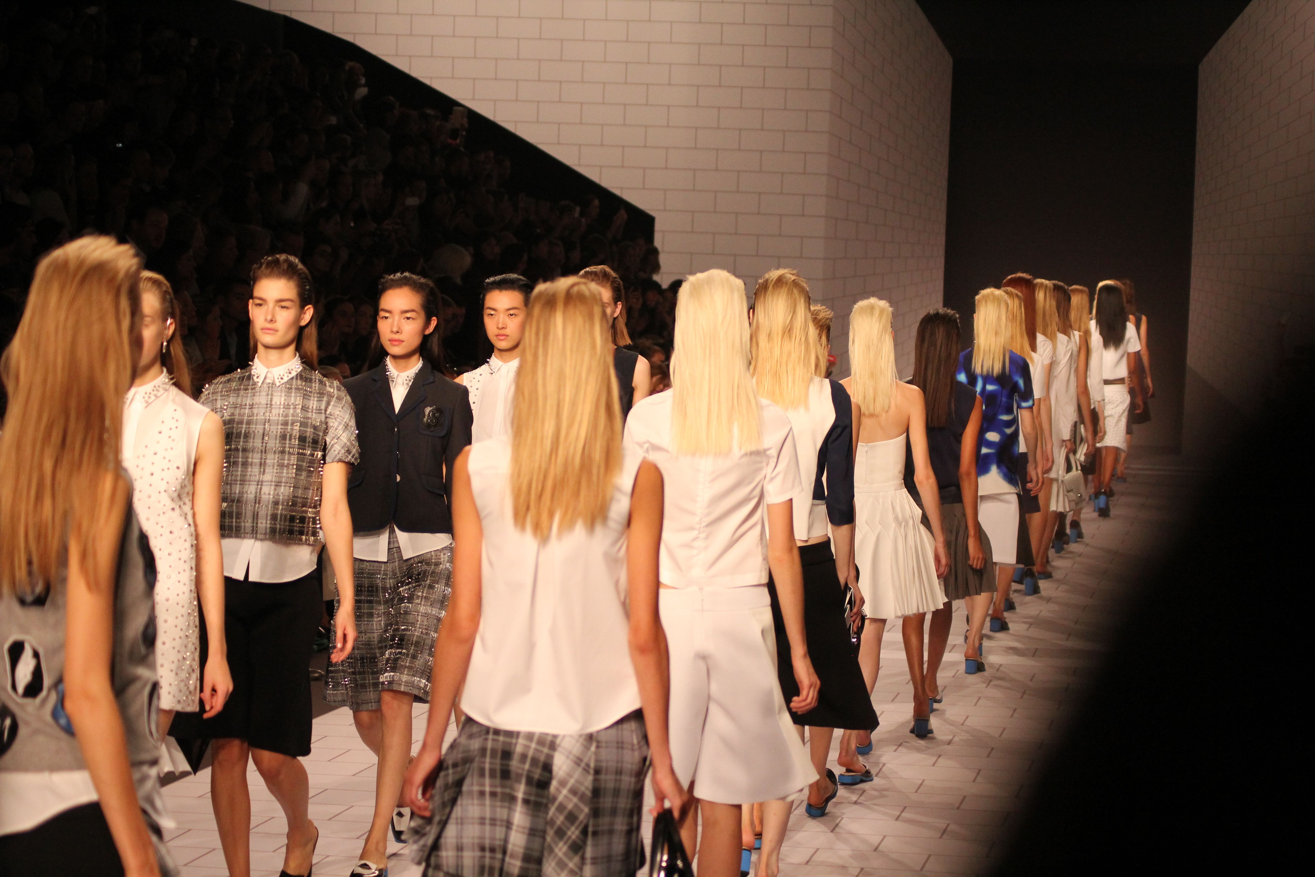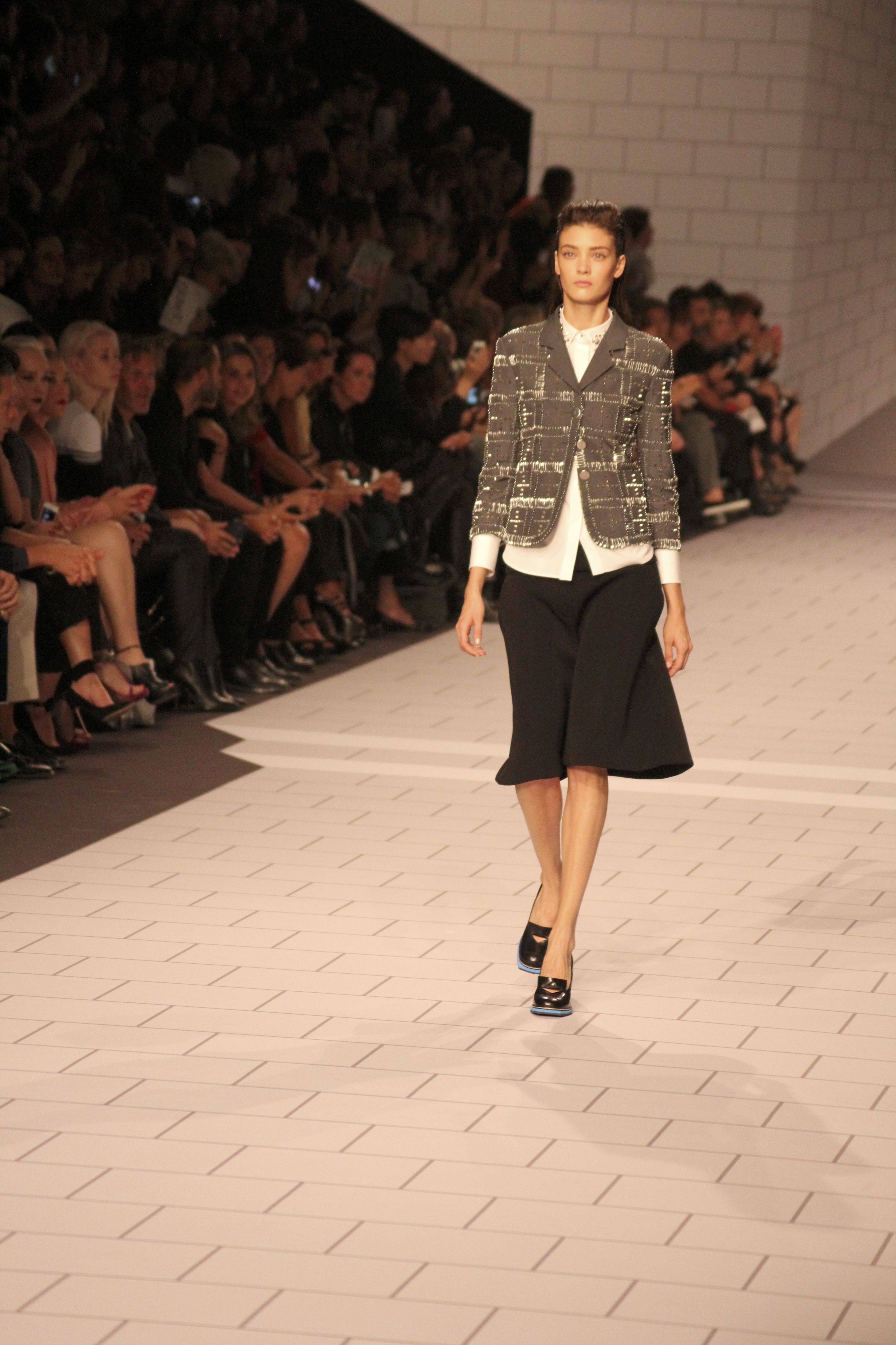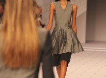 Viktor & Rolf présentaient aux tuileries leurs collections printemps été 2014. Une collection inspirée par les uniformes. Empreinte de rigueur qu’elle oppose à la rébellion, cette collection faisait défiler des jeunes écolières punk au son de « the wall » des pink floyd. Vestes preppy, jupes kilts et jupes culottes, blasers, ecussons en gris, noirs, bleux foncés. Quel show !