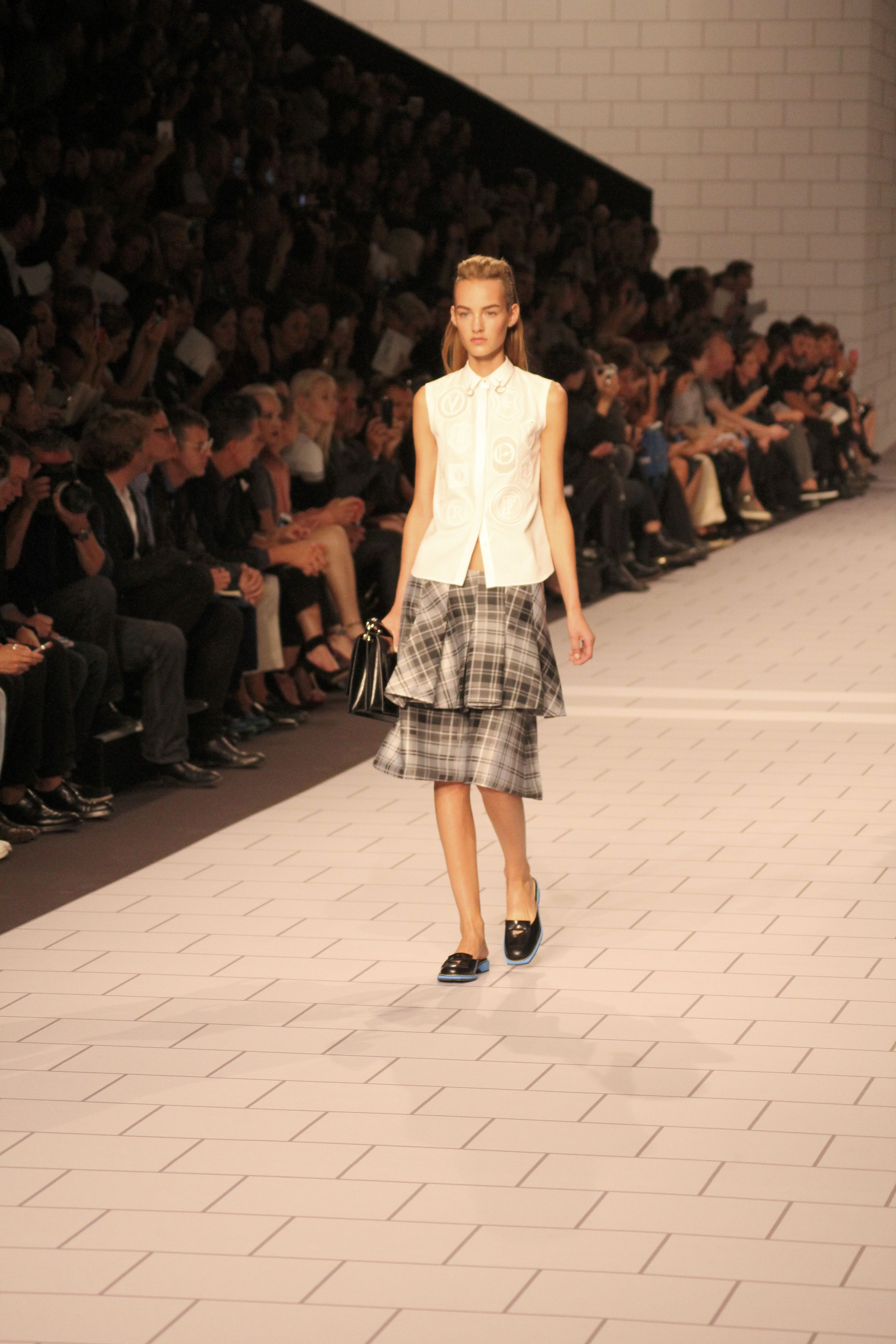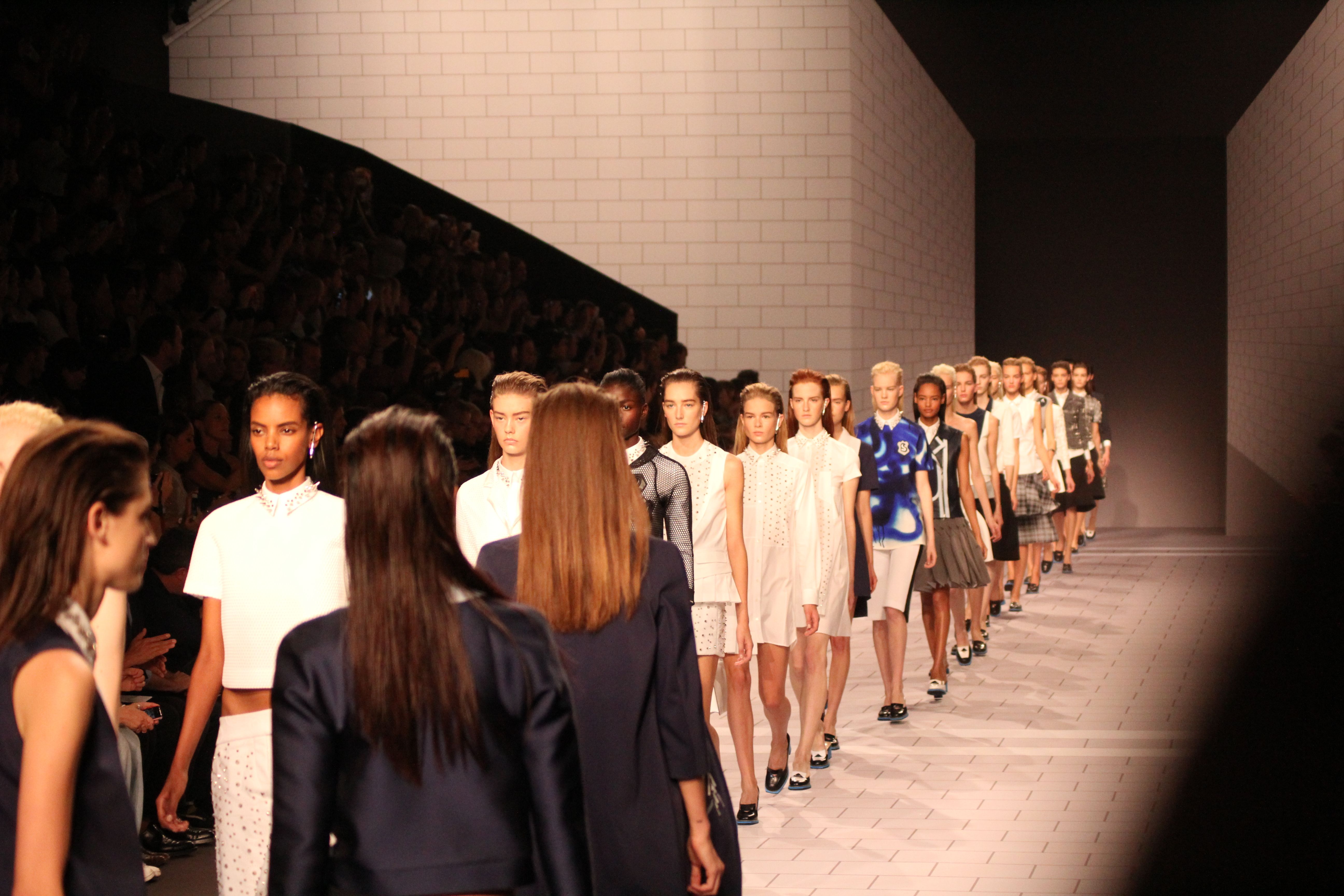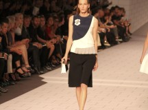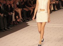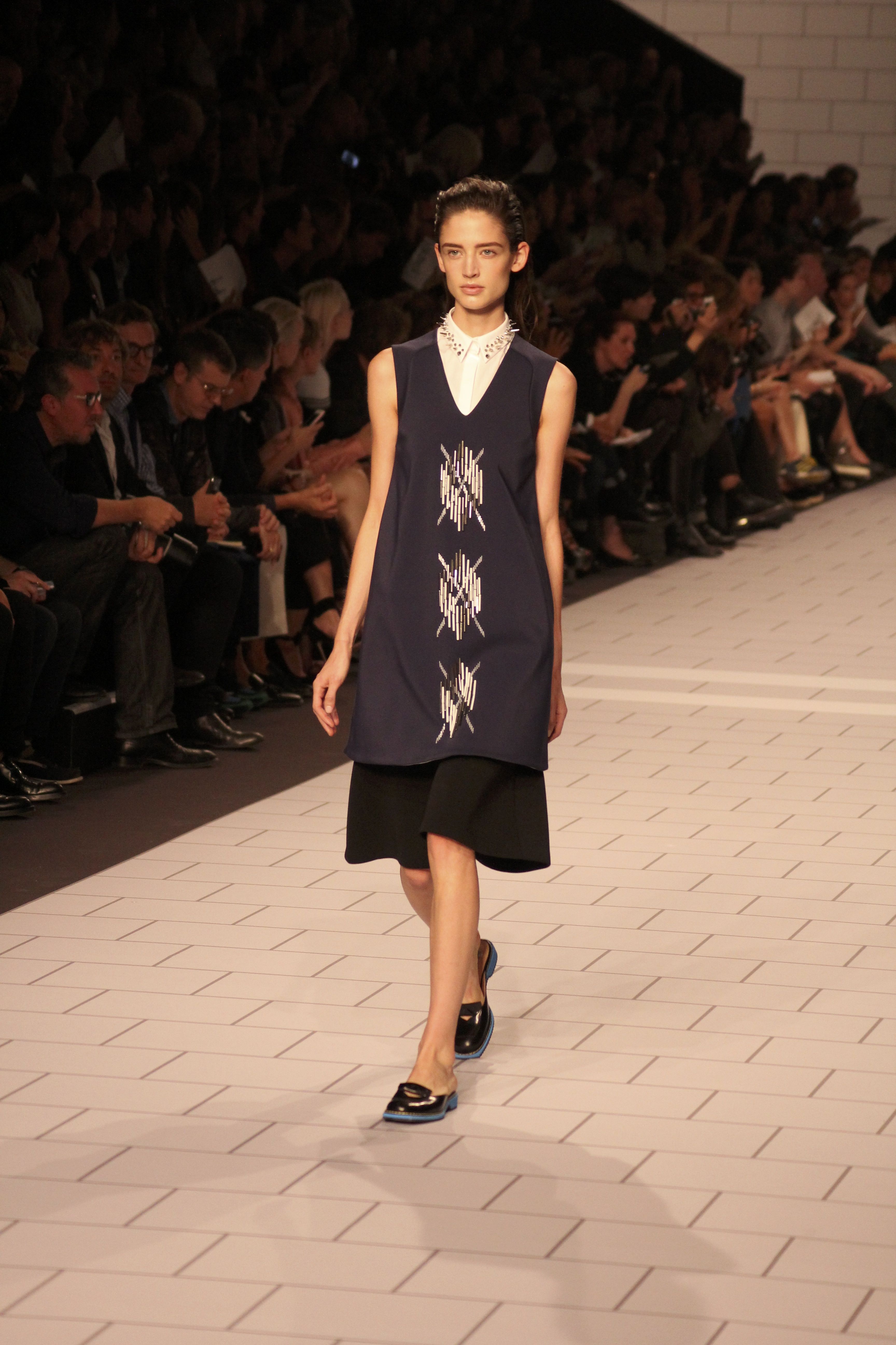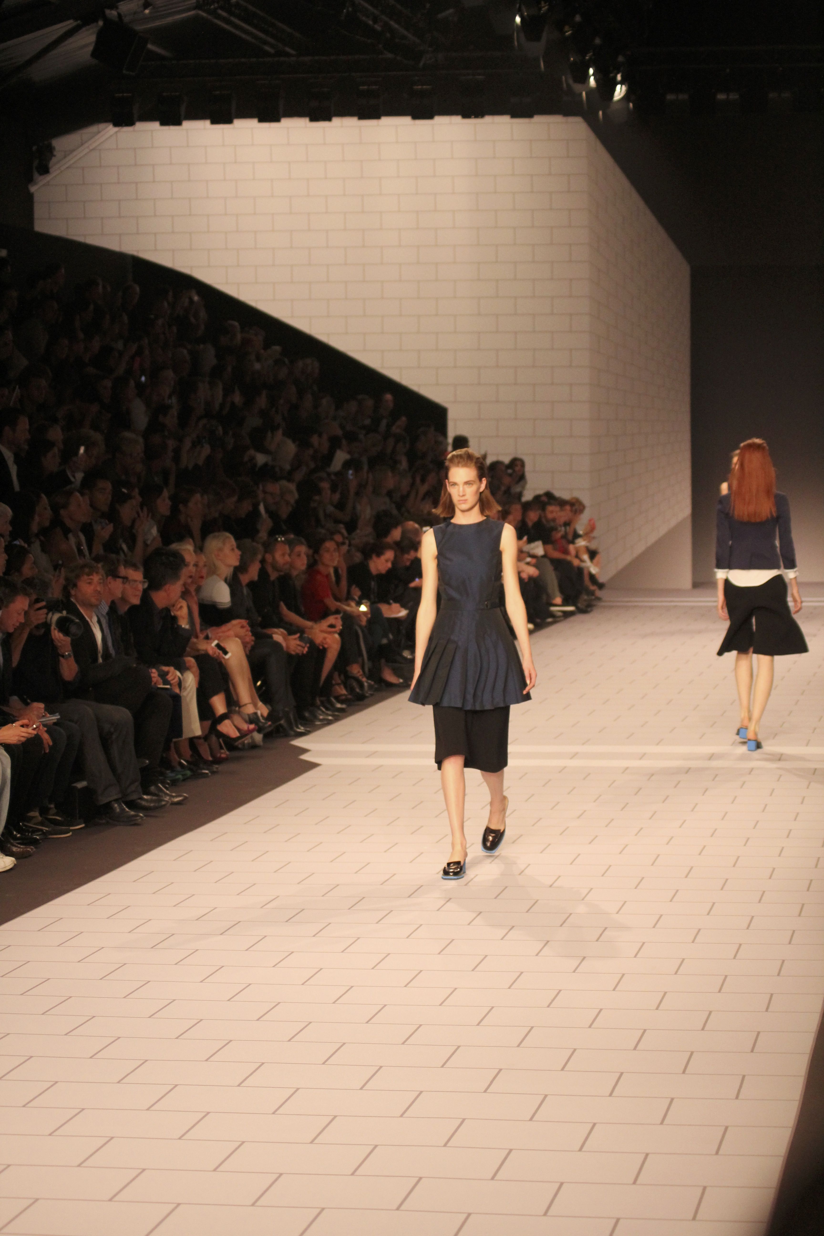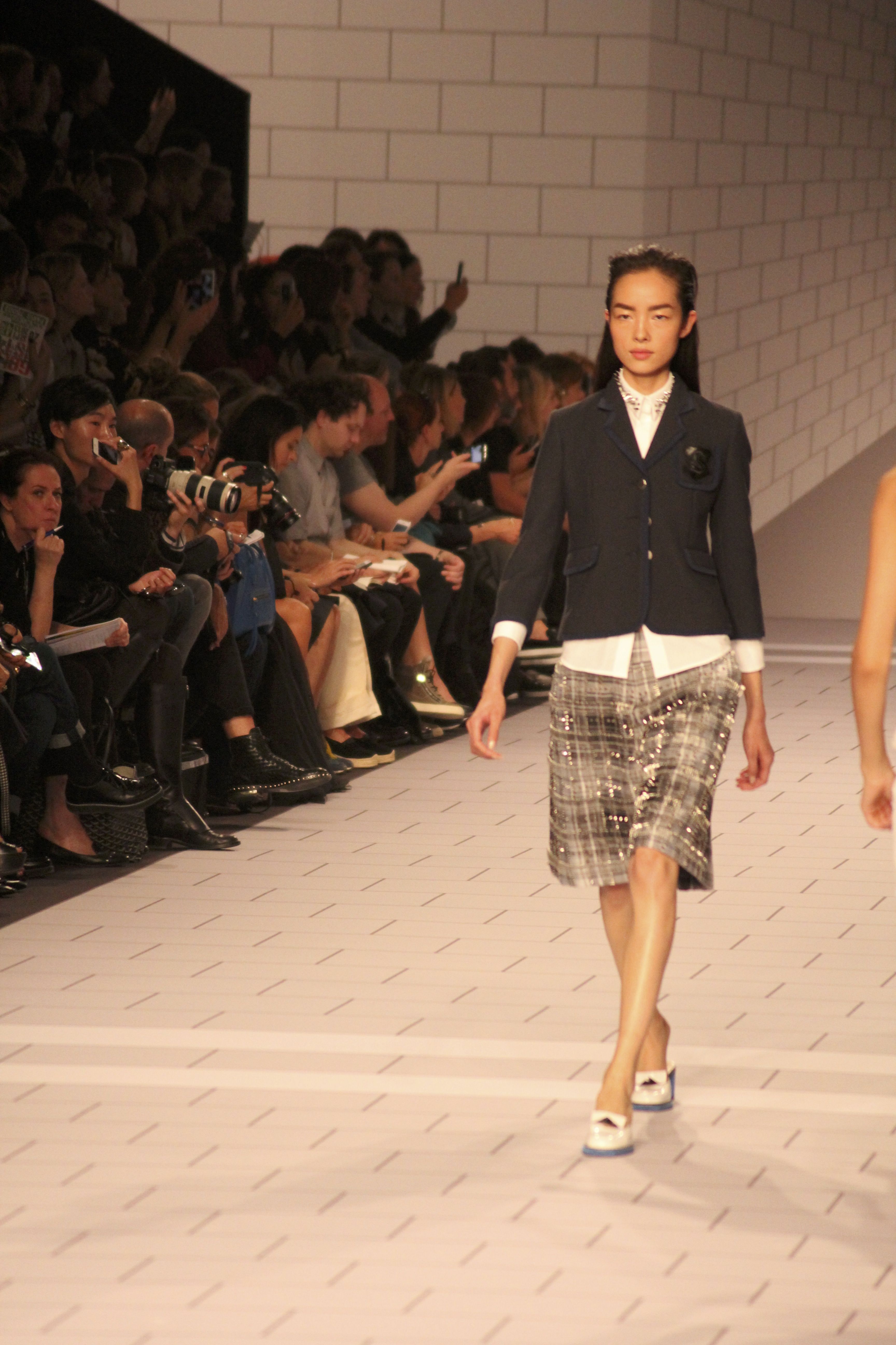 Viktor & Rolf présentaient aux tuileries leurs collections printemps été 2014. Une collection inspirée par les uniformes. Empreinte de rigueur qu’elle oppose à la rébellion, cette collection faisait défiler des jeunes écolières punk au son de « the wall » des pink floyd. Vestes preppy, jupes kilts et jupes culottes, blasers, ecussons en gris, noirs, bleux foncés. Quel show !