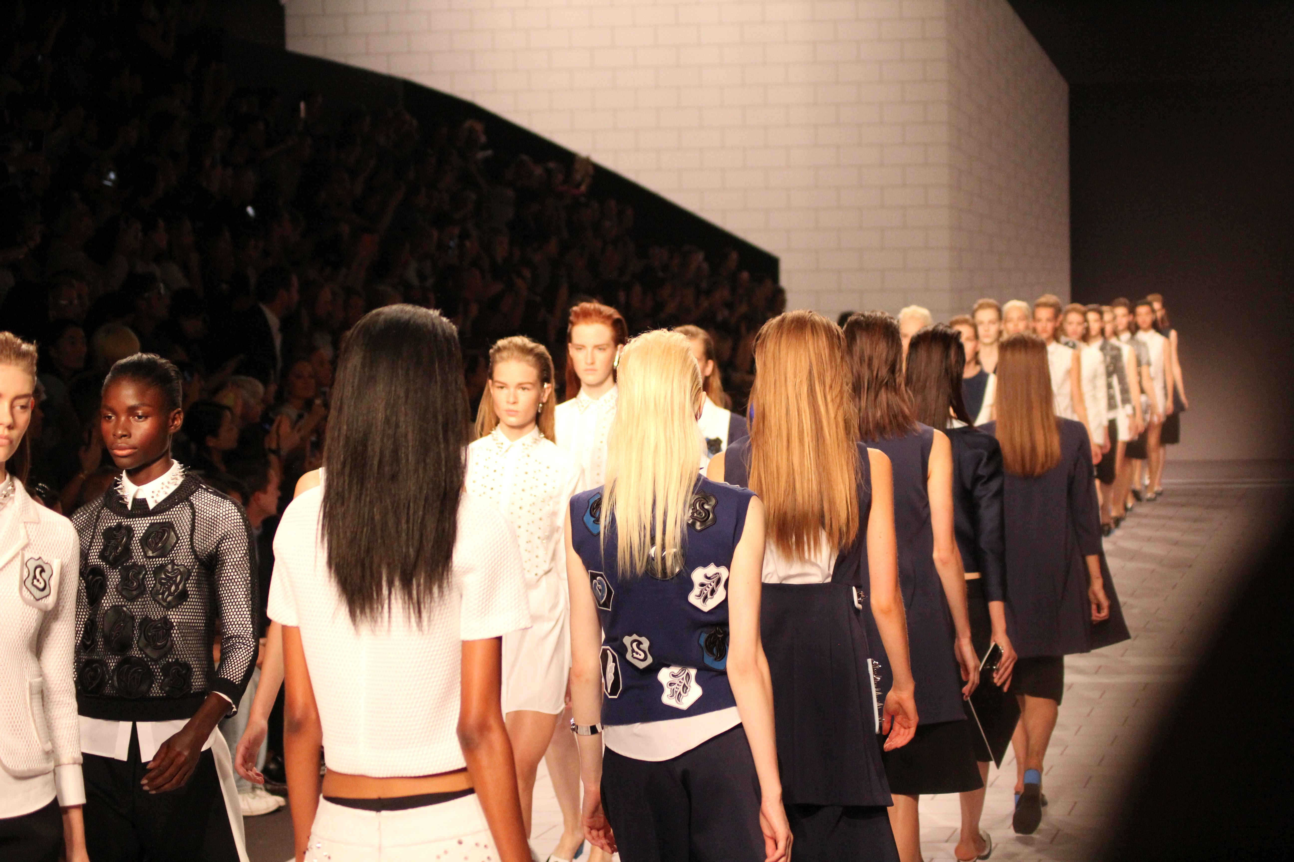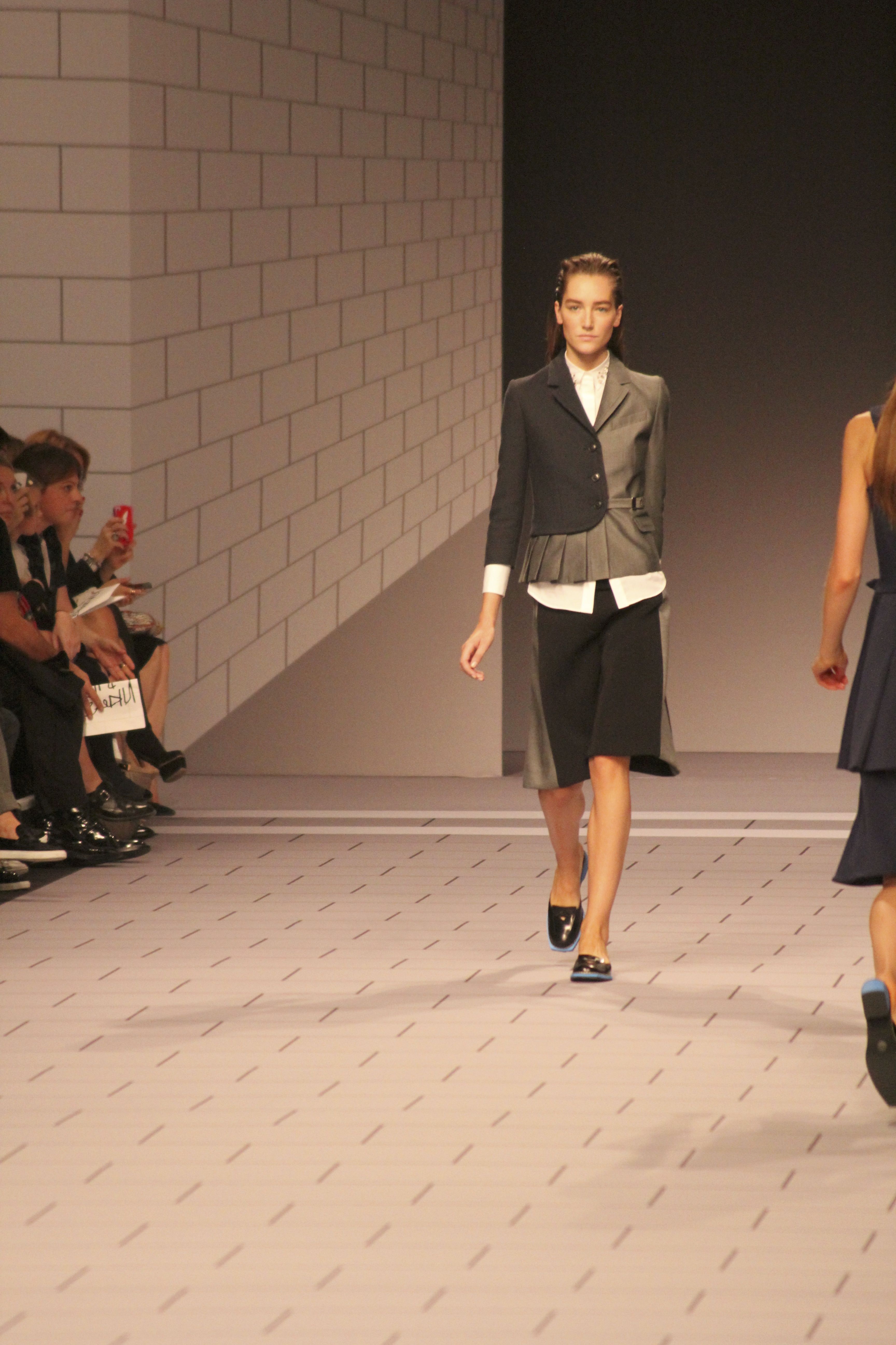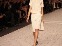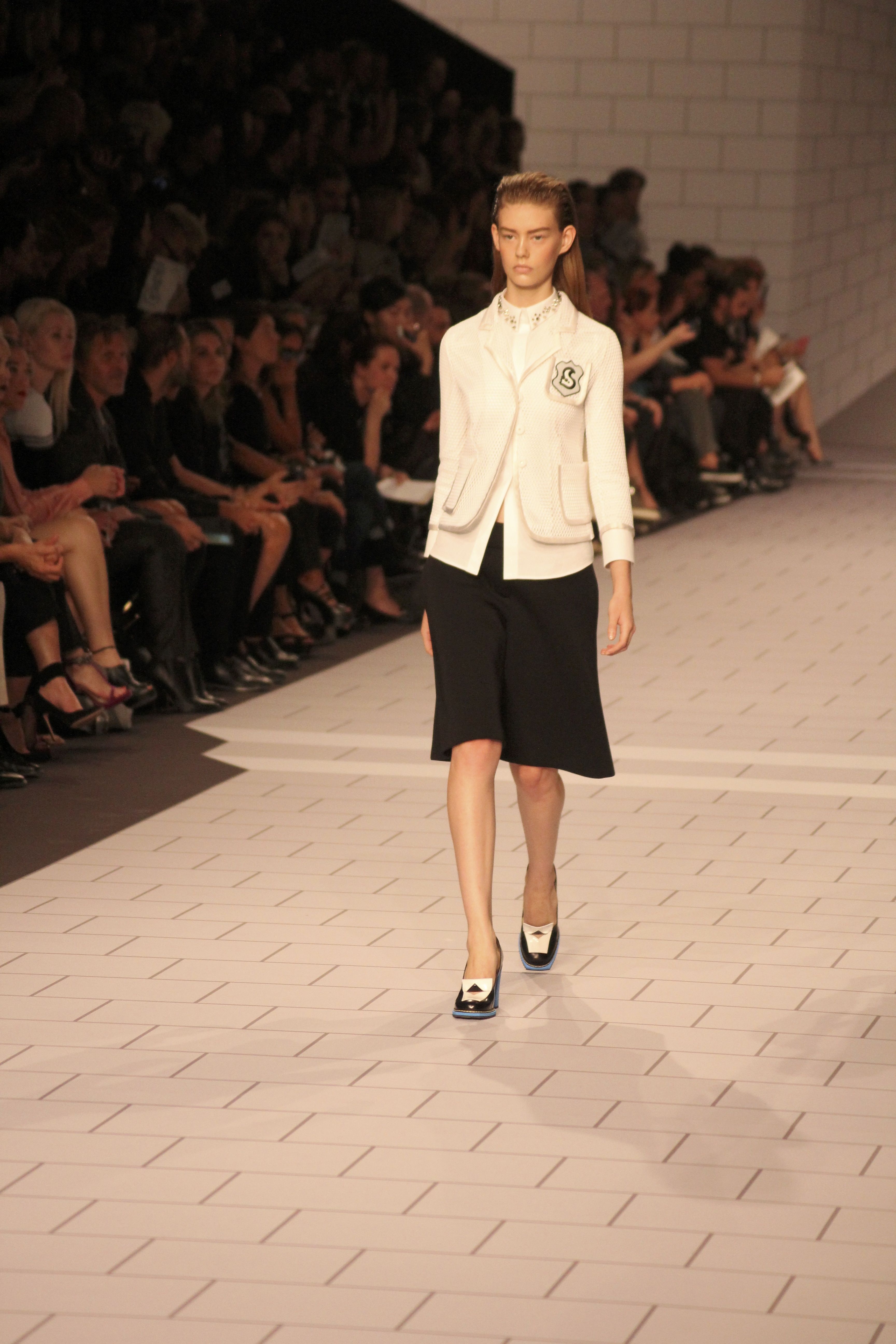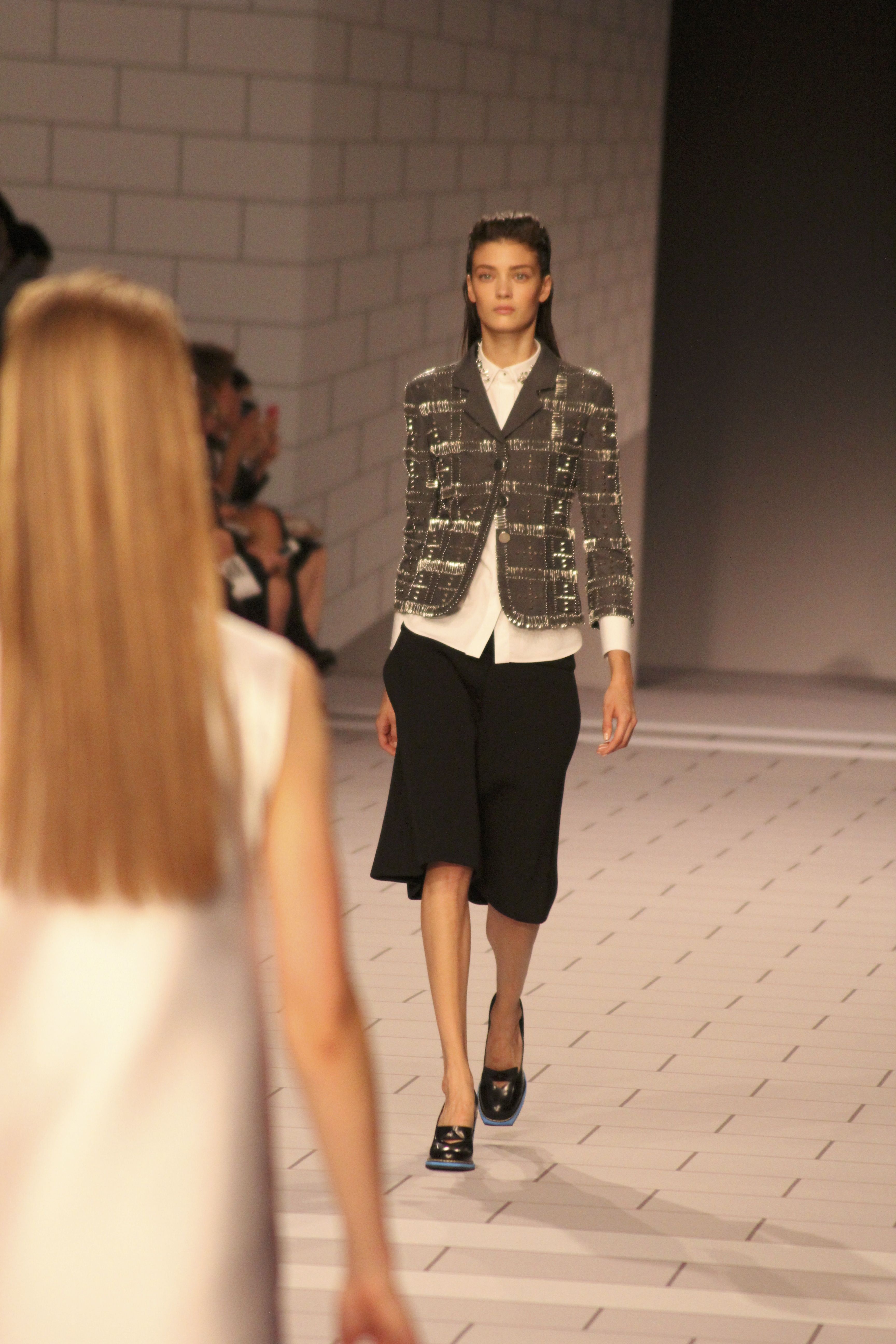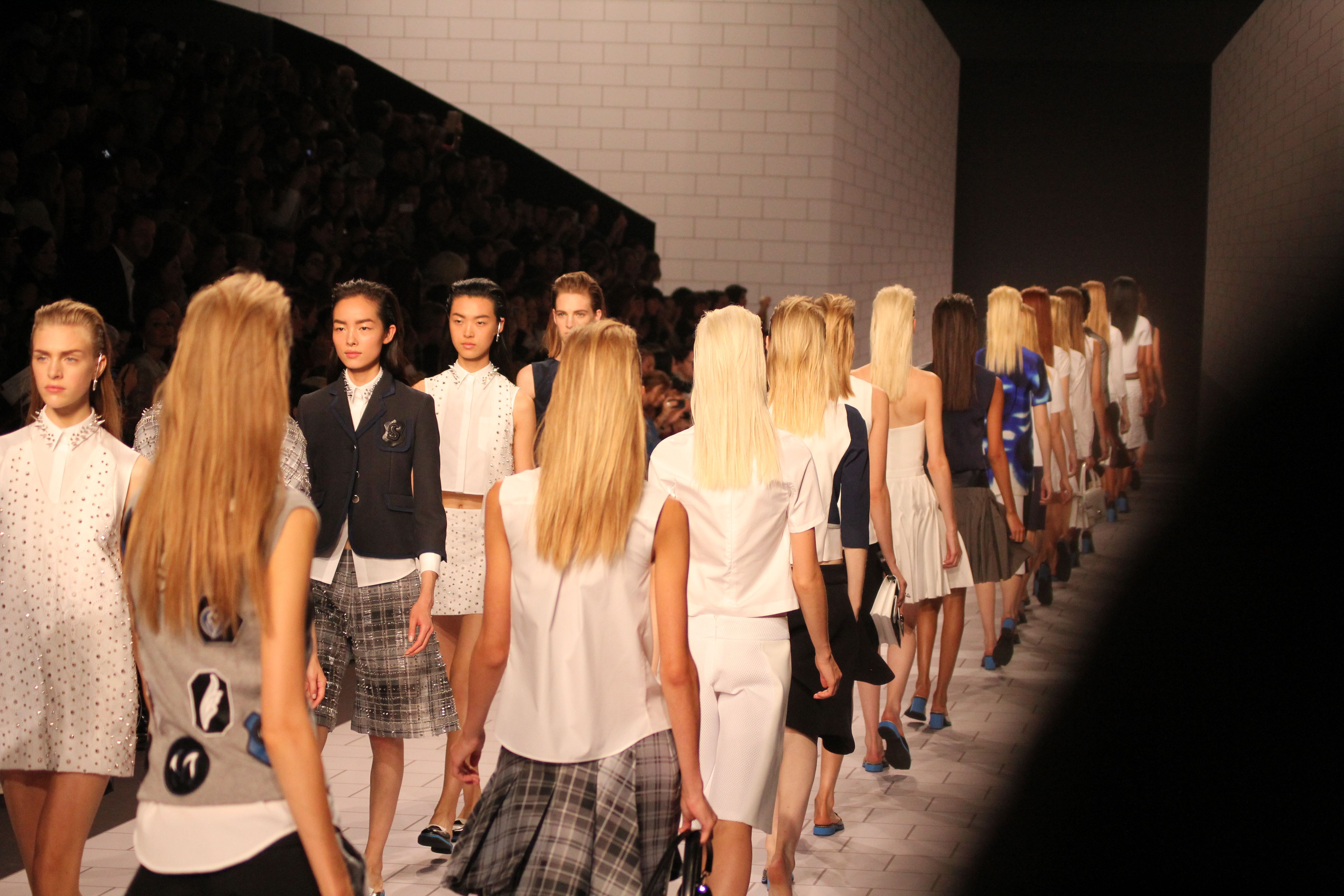 Viktor & Rolf présentaient aux tuileries leurs collections printemps été 2014. Une collection inspirée par les uniformes. Empreinte de rigueur qu’elle oppose à la rébellion, cette collection faisait défiler des jeunes écolières punk au son de « the wall » des pink floyd. Vestes preppy, jupes kilts et jupes culottes, blasers, ecussons en gris, noirs, bleux foncés. Quel show !