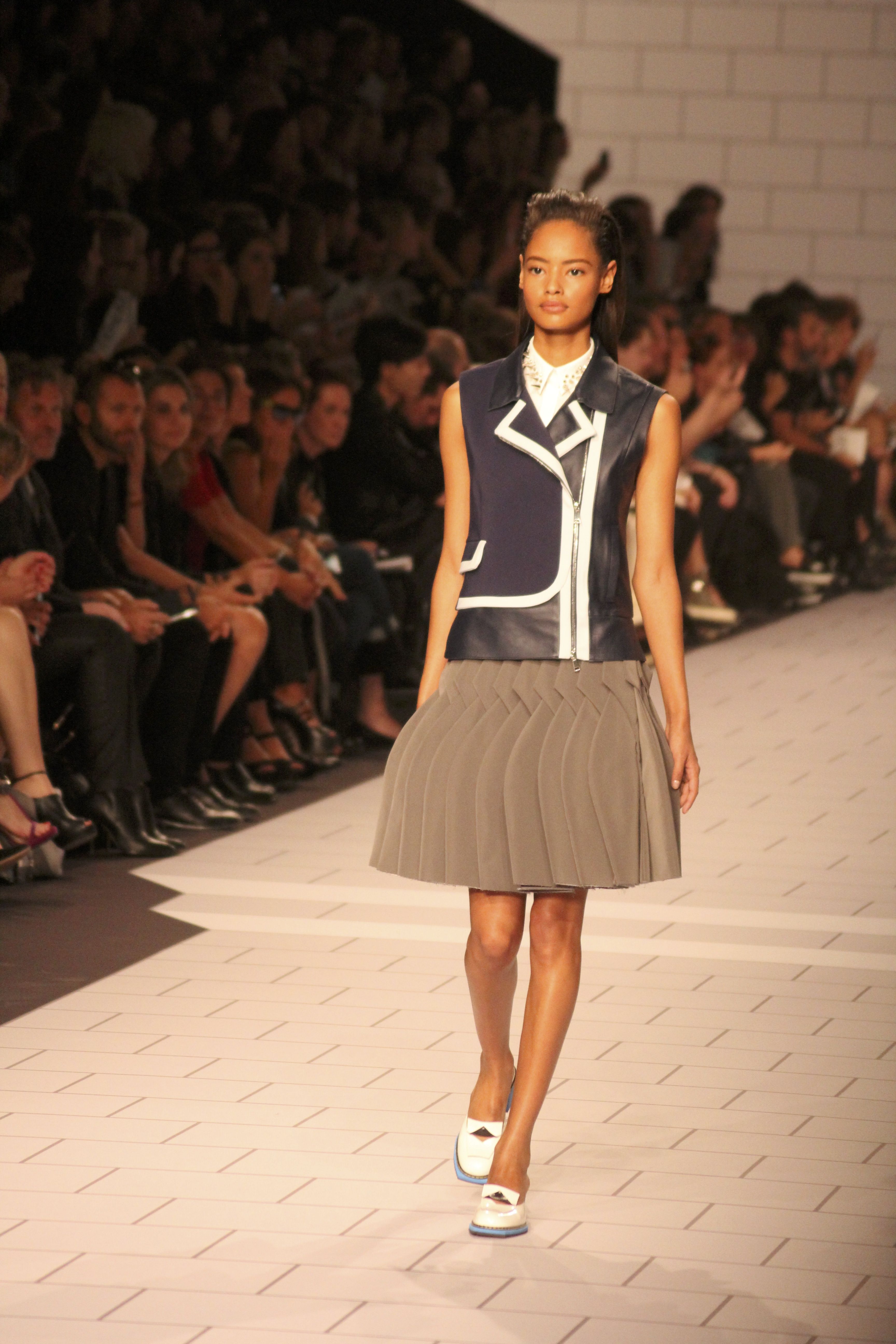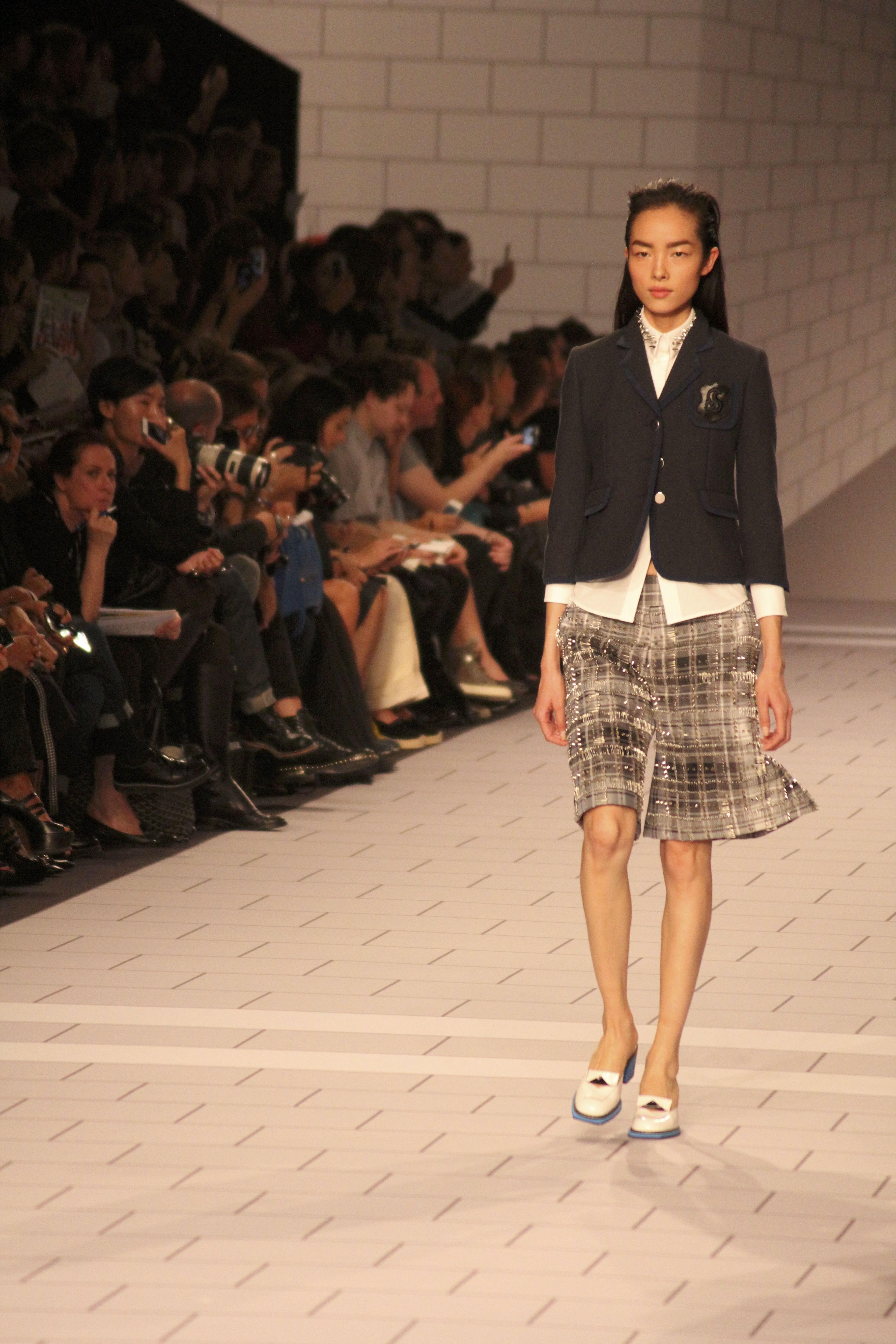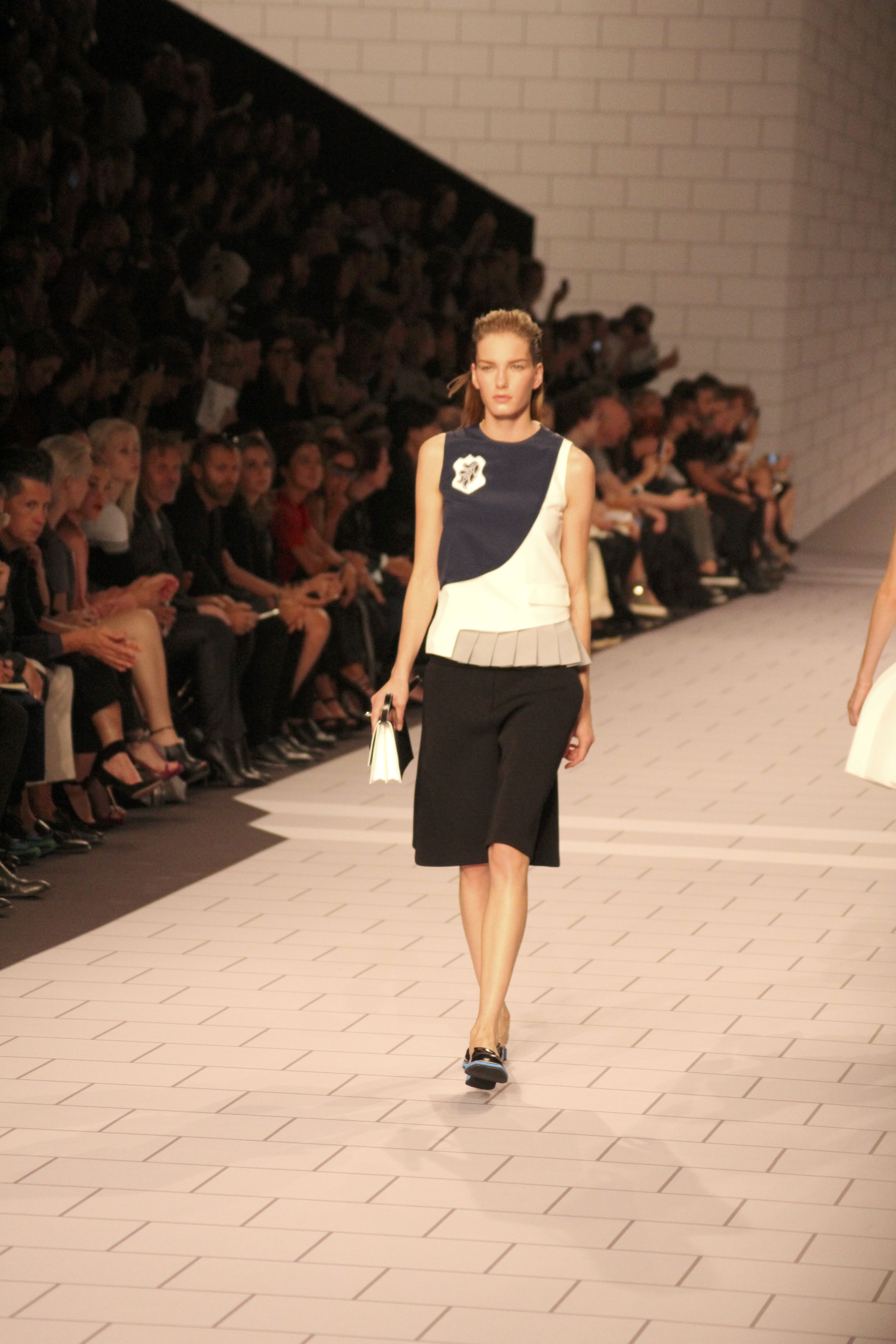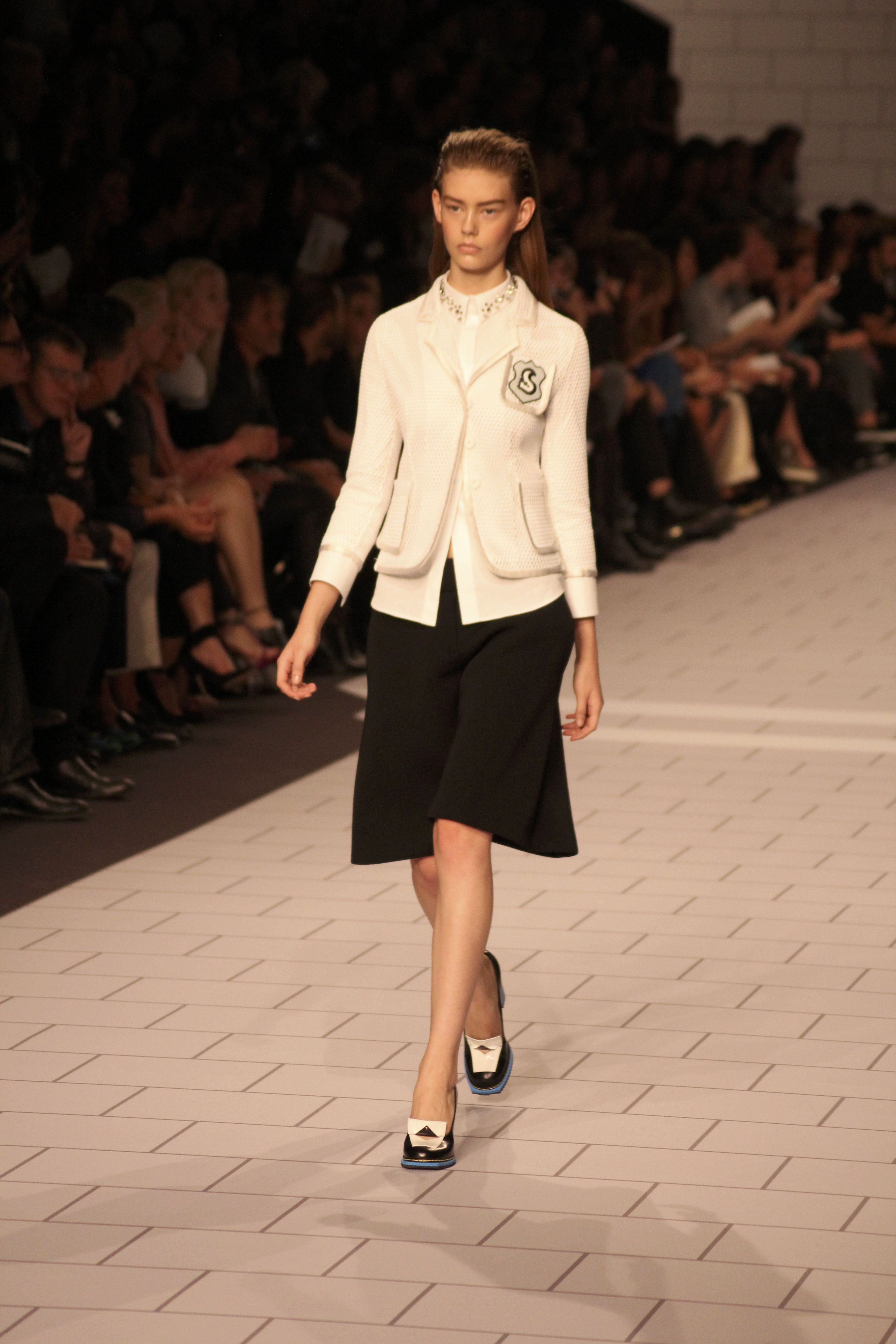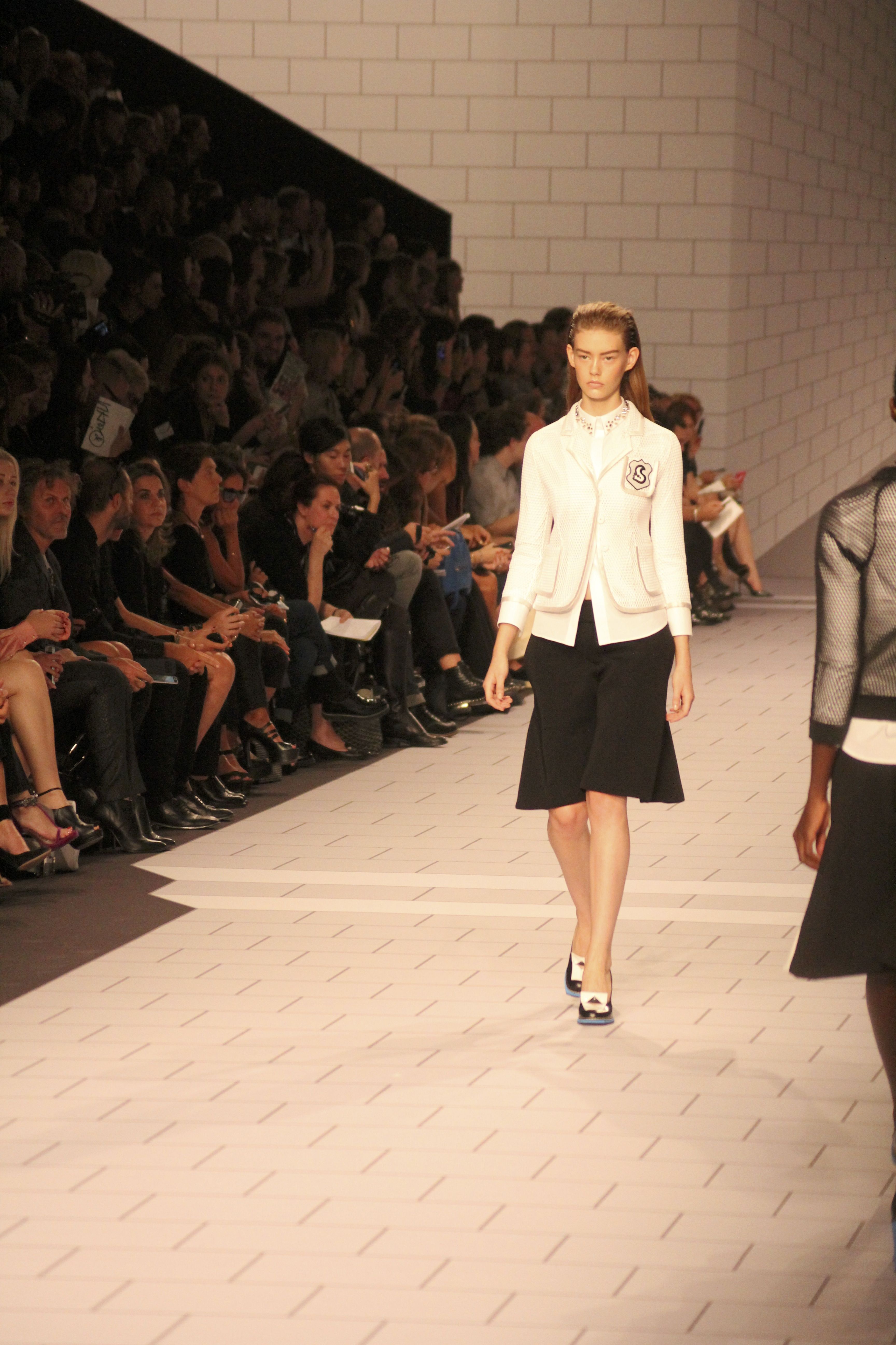 Viktor & Rolf présentaient aux tuileries leurs collections printemps été 2014. Une collection inspirée par les uniformes. Empreinte de rigueur qu’elle oppose à la rébellion, cette collection faisait défiler des jeunes écolières punk au son de « the wall » des pink floyd. Vestes preppy, jupes kilts et jupes culottes, blasers, ecussons en gris, noirs, bleux foncés. Quel show !