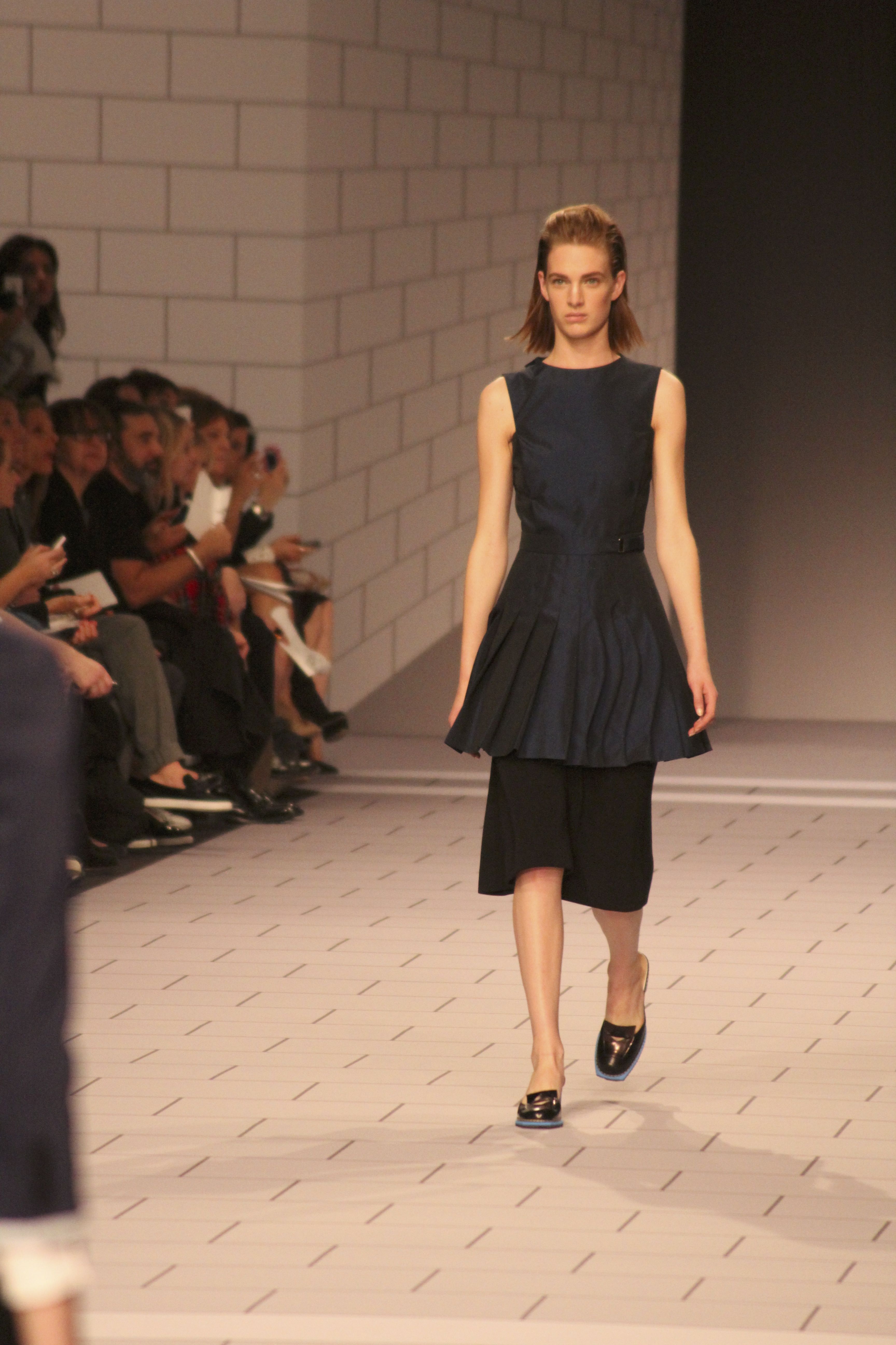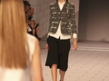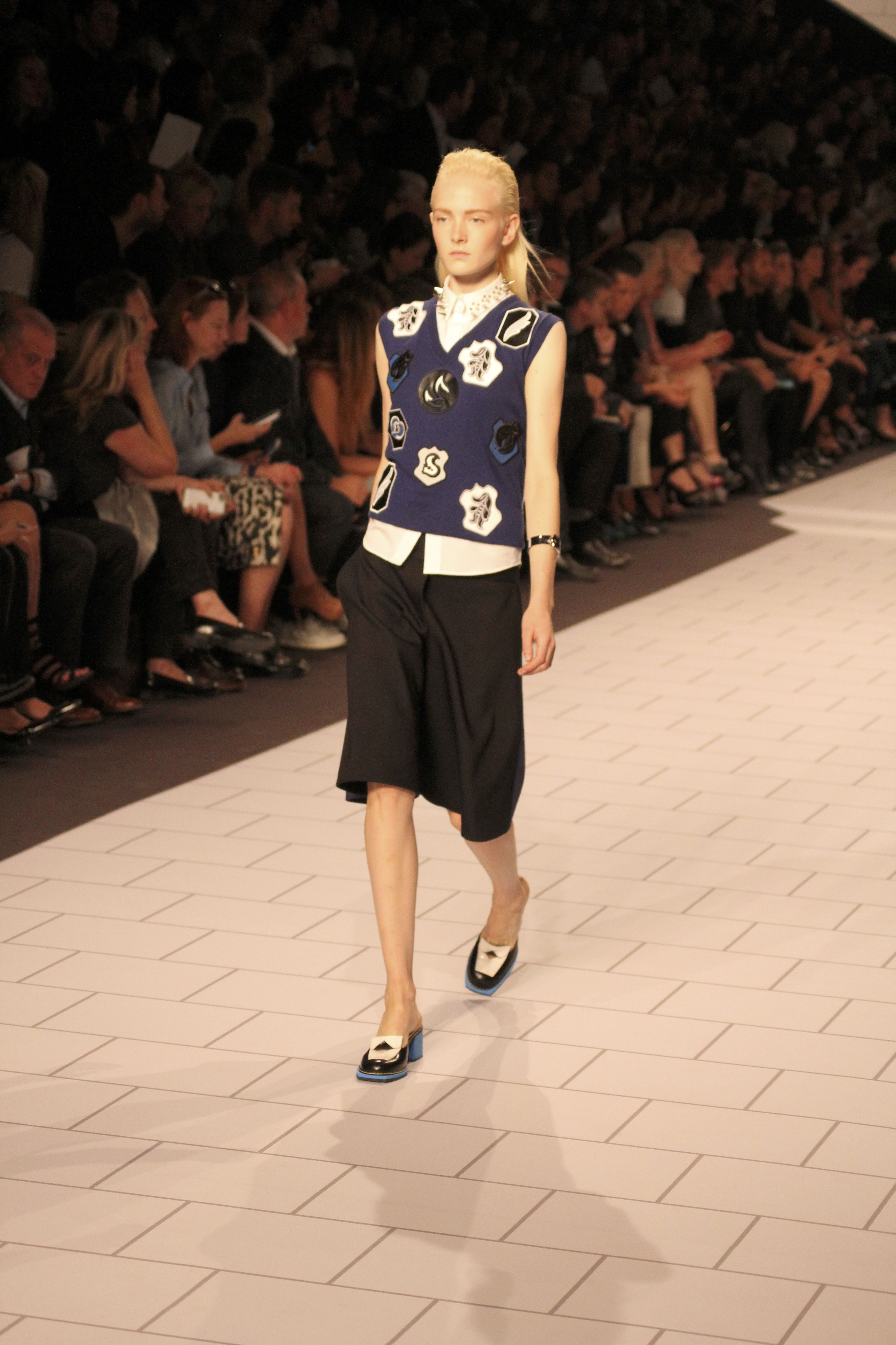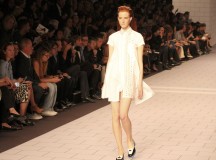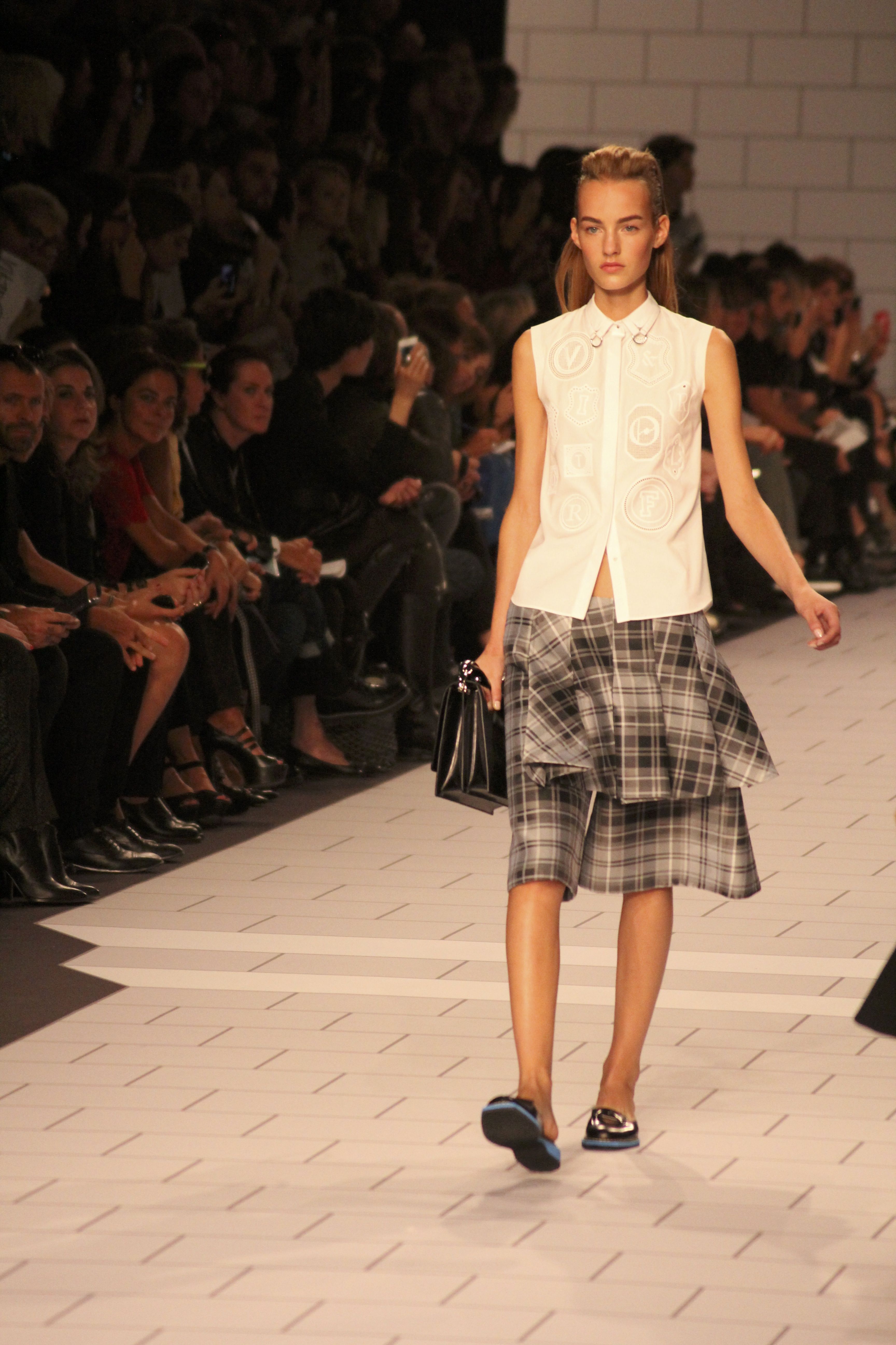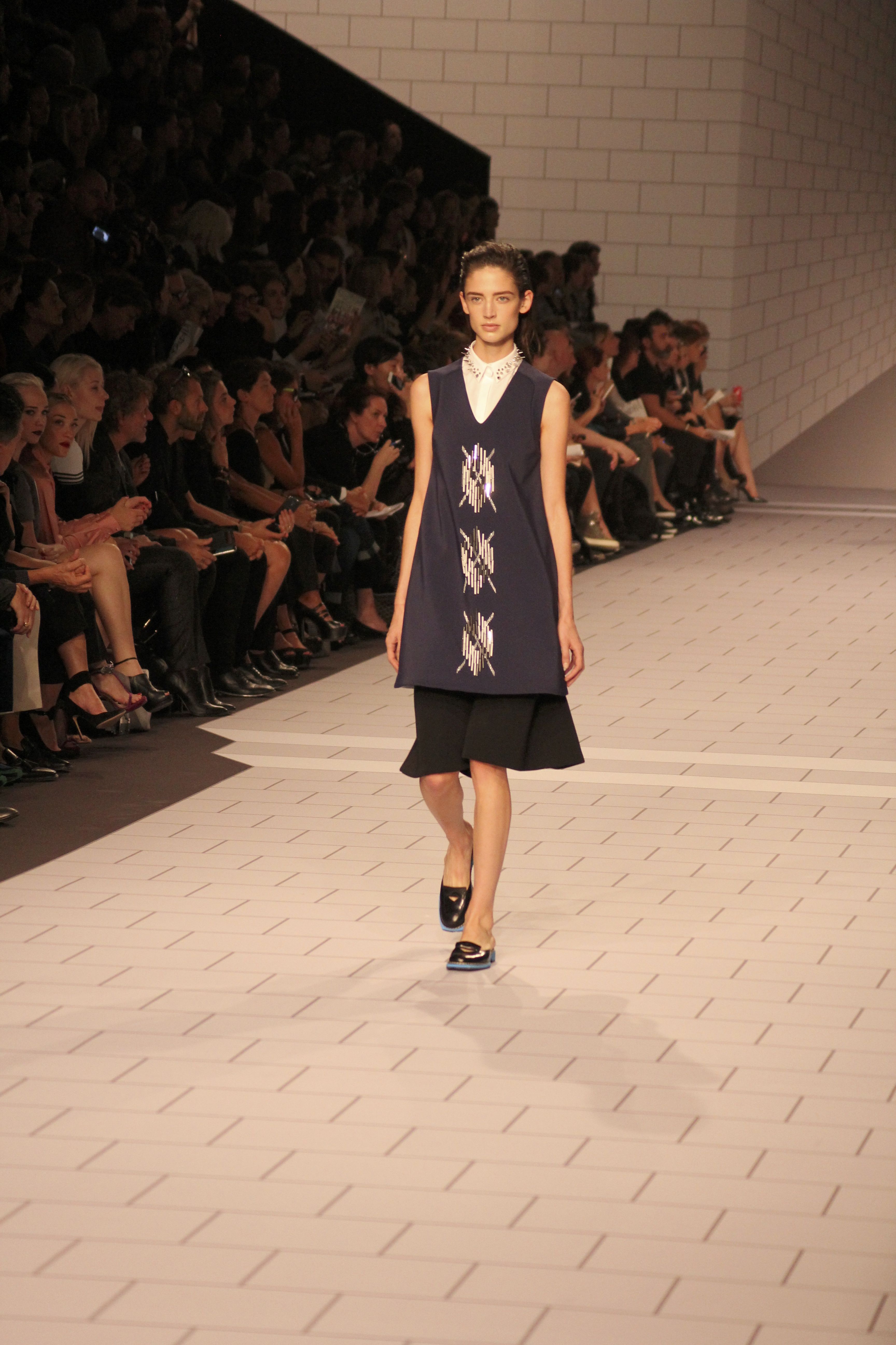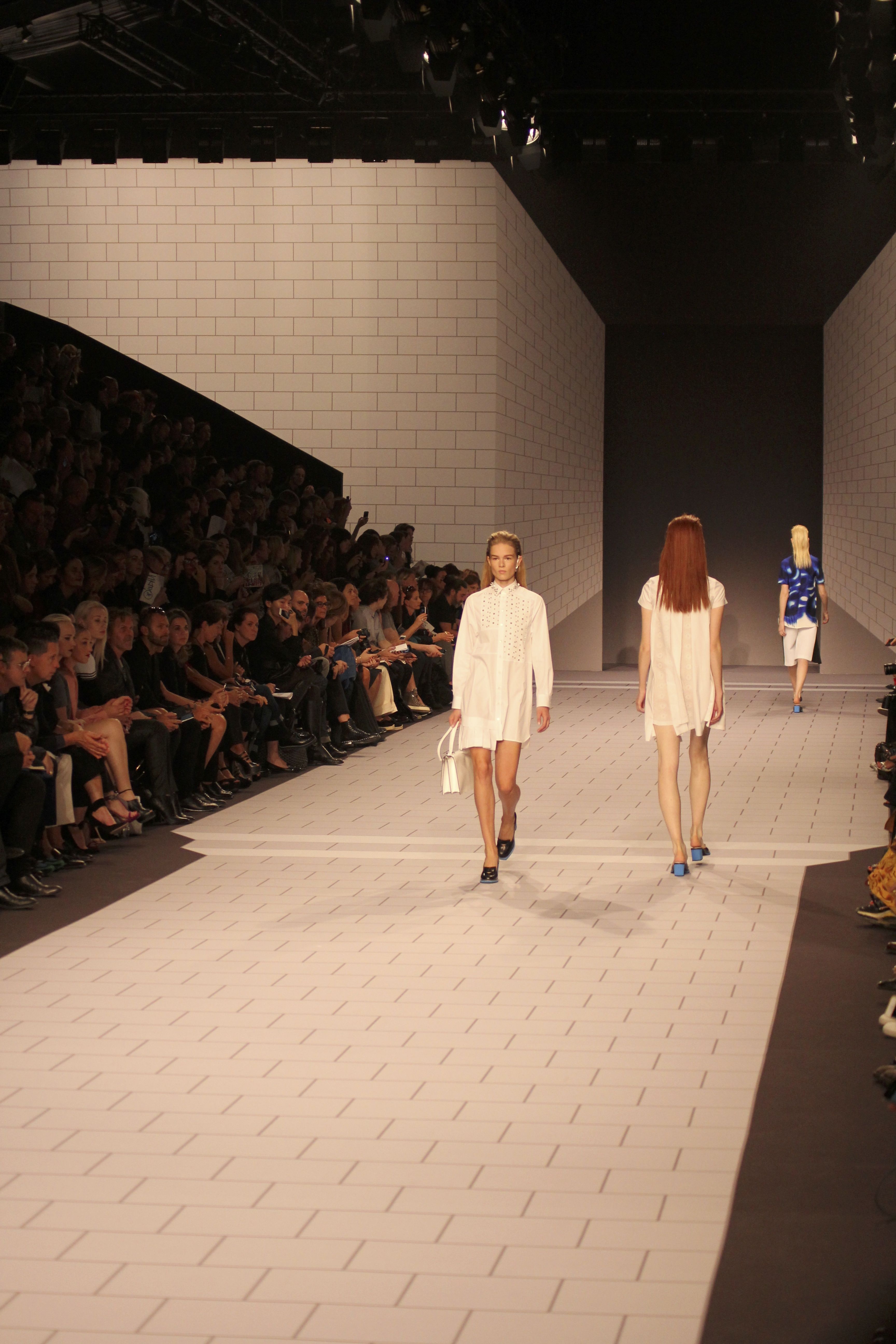 Viktor & Rolf présentaient aux tuileries leurs collections printemps été 2014. Une collection inspirée par les uniformes. Empreinte de rigueur qu’elle oppose à la rébellion, cette collection faisait défiler des jeunes écolières punk au son de « the wall » des pink floyd. Vestes preppy, jupes kilts et jupes culottes, blasers, ecussons en gris, noirs, bleux foncés. Quel show !