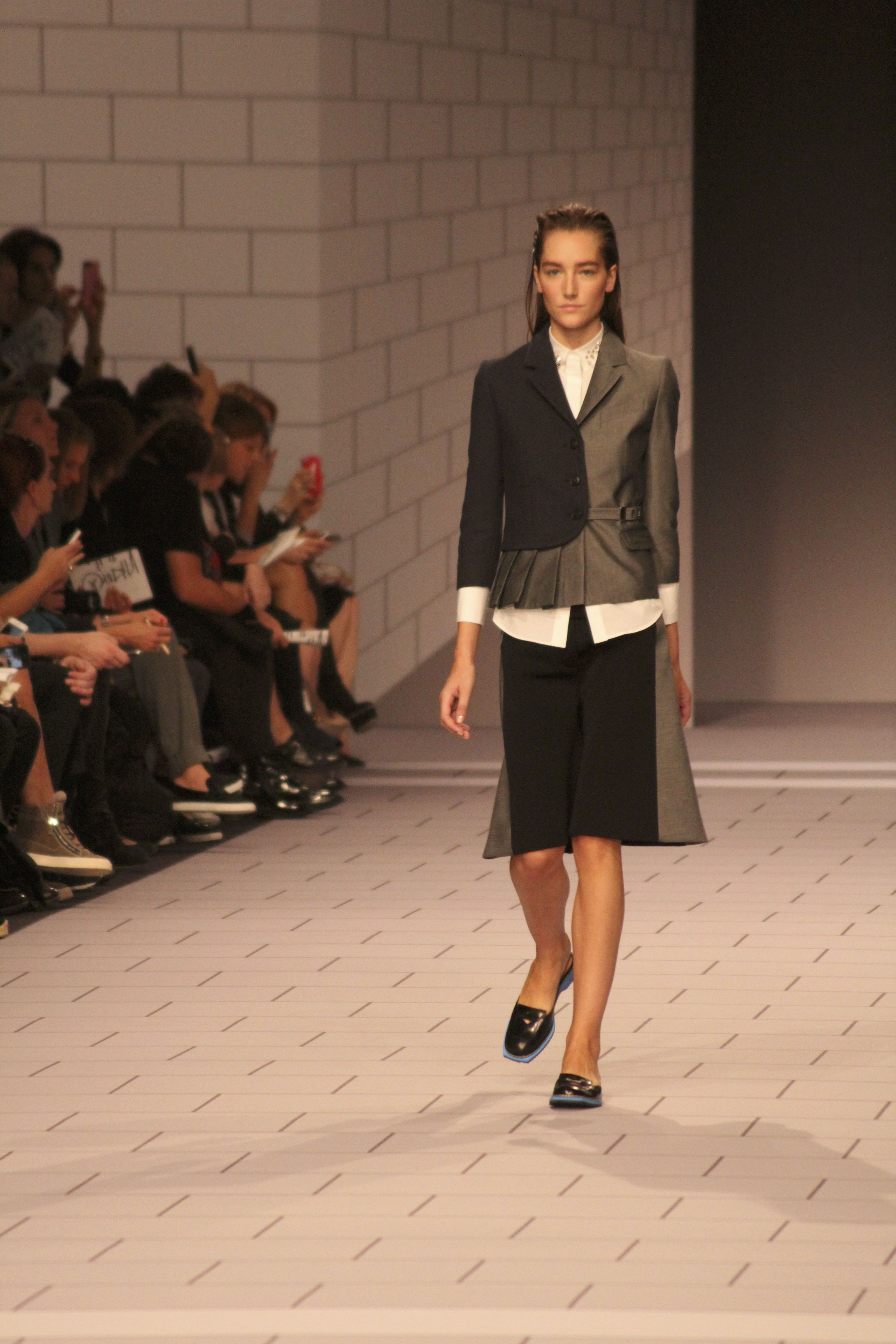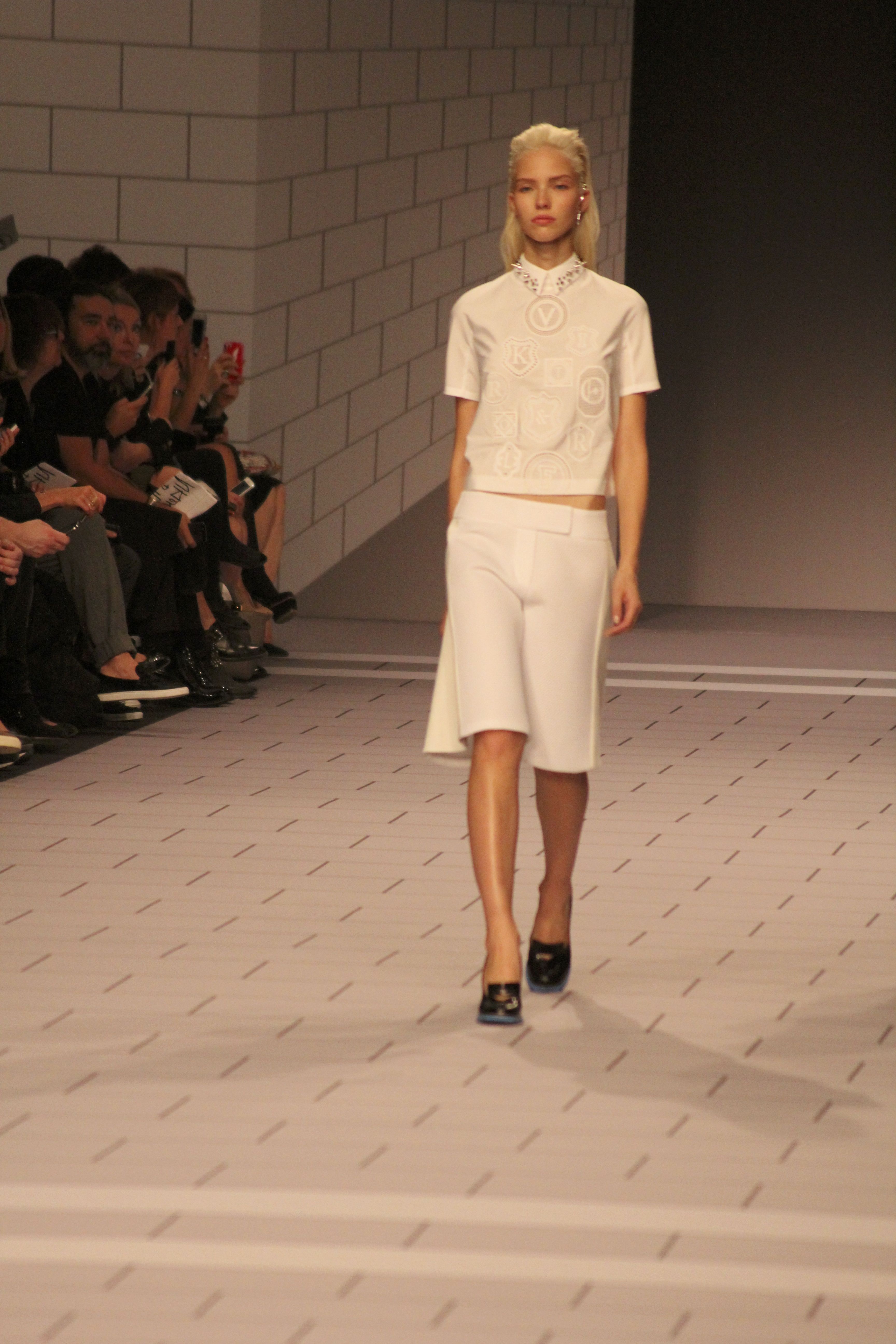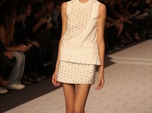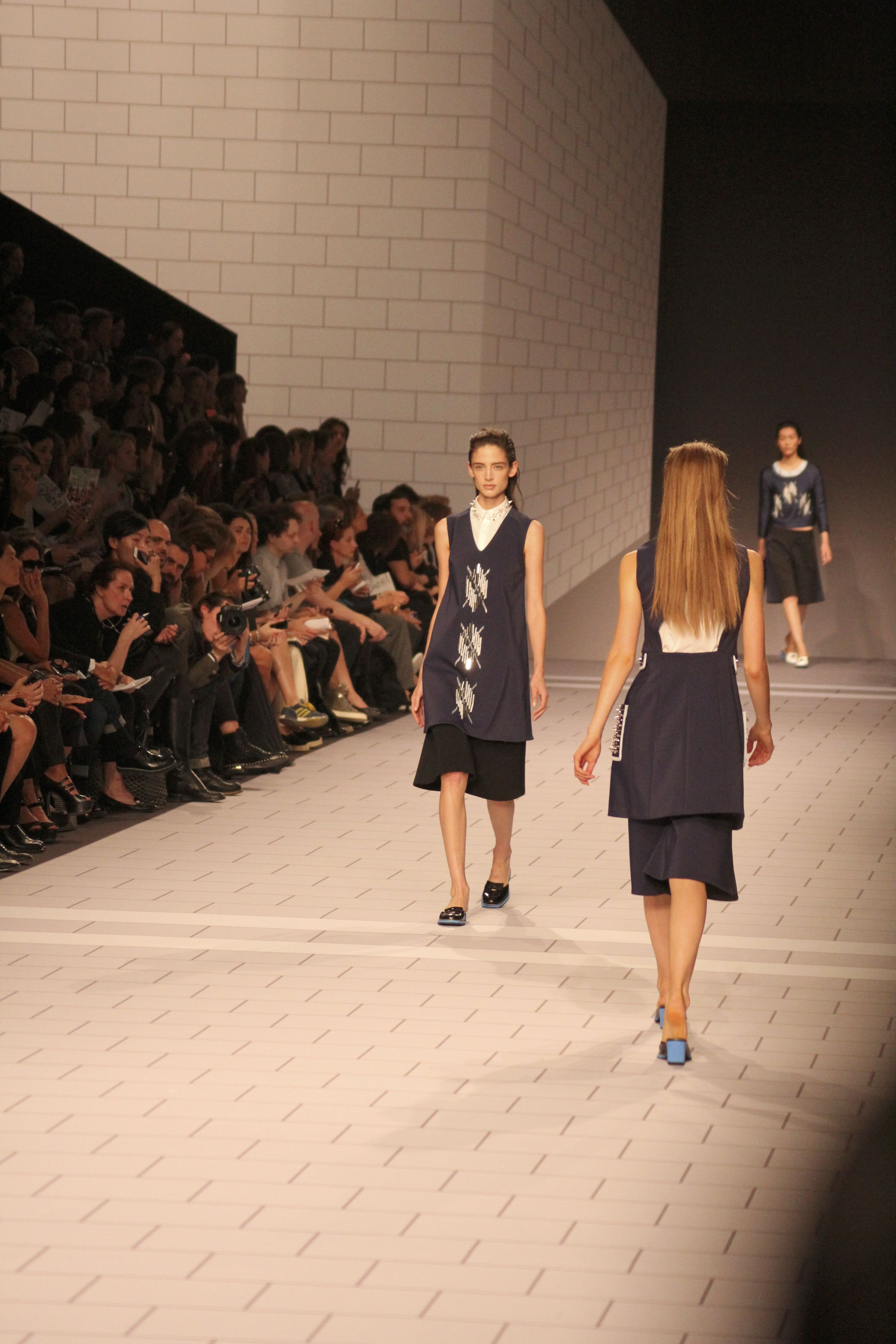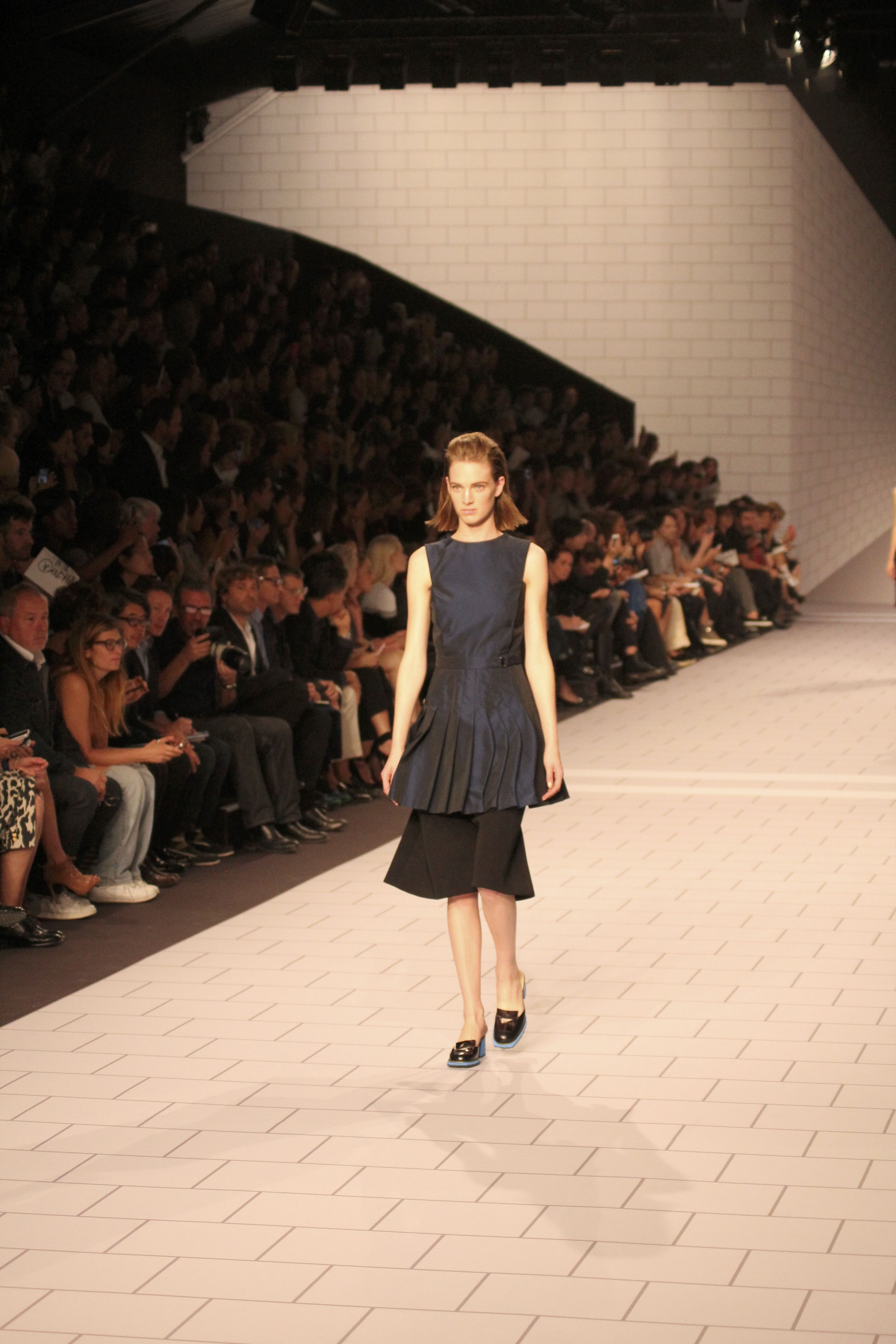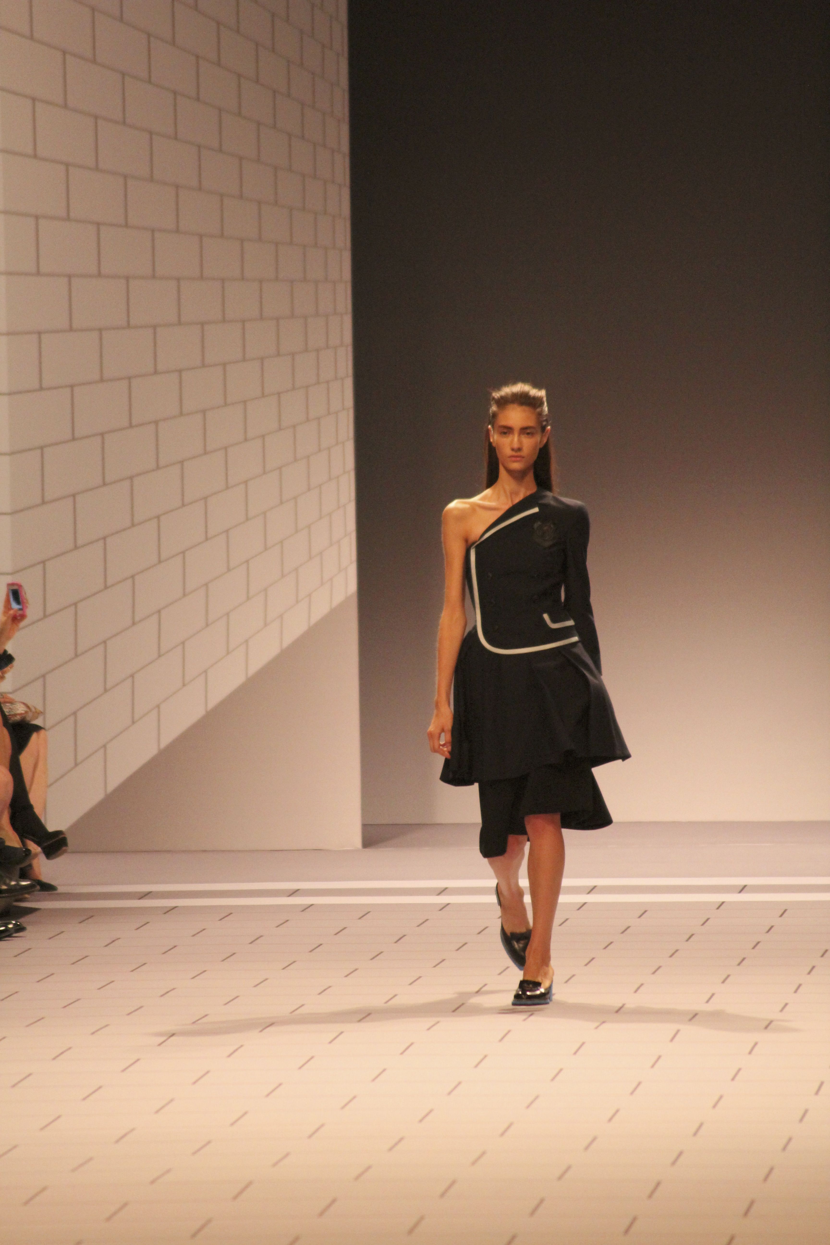 Viktor & Rolf présentaient aux tuileries leurs collections printemps été 2014. Une collection inspirée par les uniformes. Empreinte de rigueur qu’elle oppose à la rébellion, cette collection faisait défiler des jeunes écolières punk au son de « the wall » des pink floyd. Vestes preppy, jupes kilts et jupes culottes, blasers, ecussons en gris, noirs, bleux foncés. Quel show !