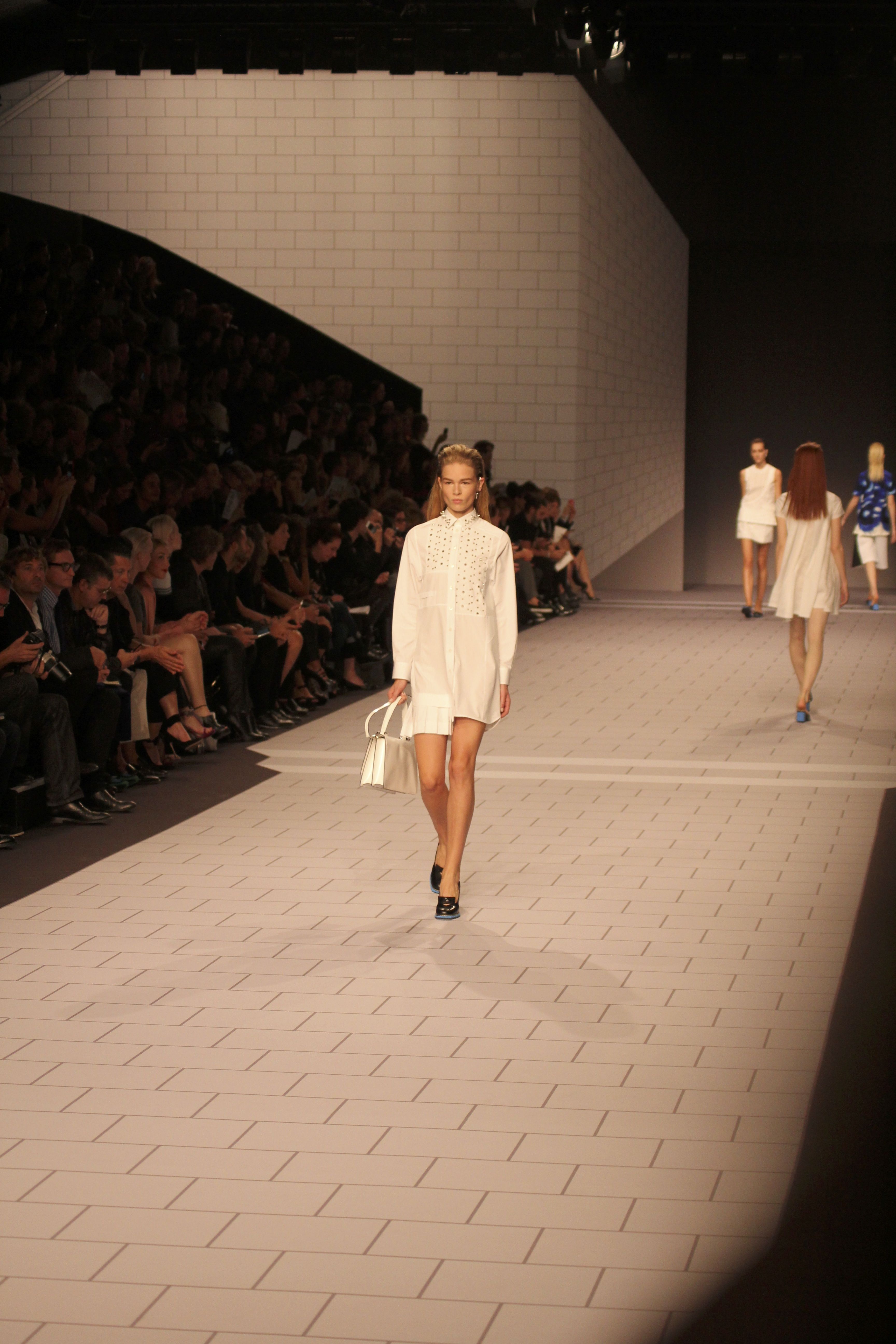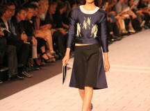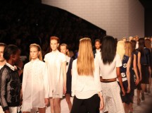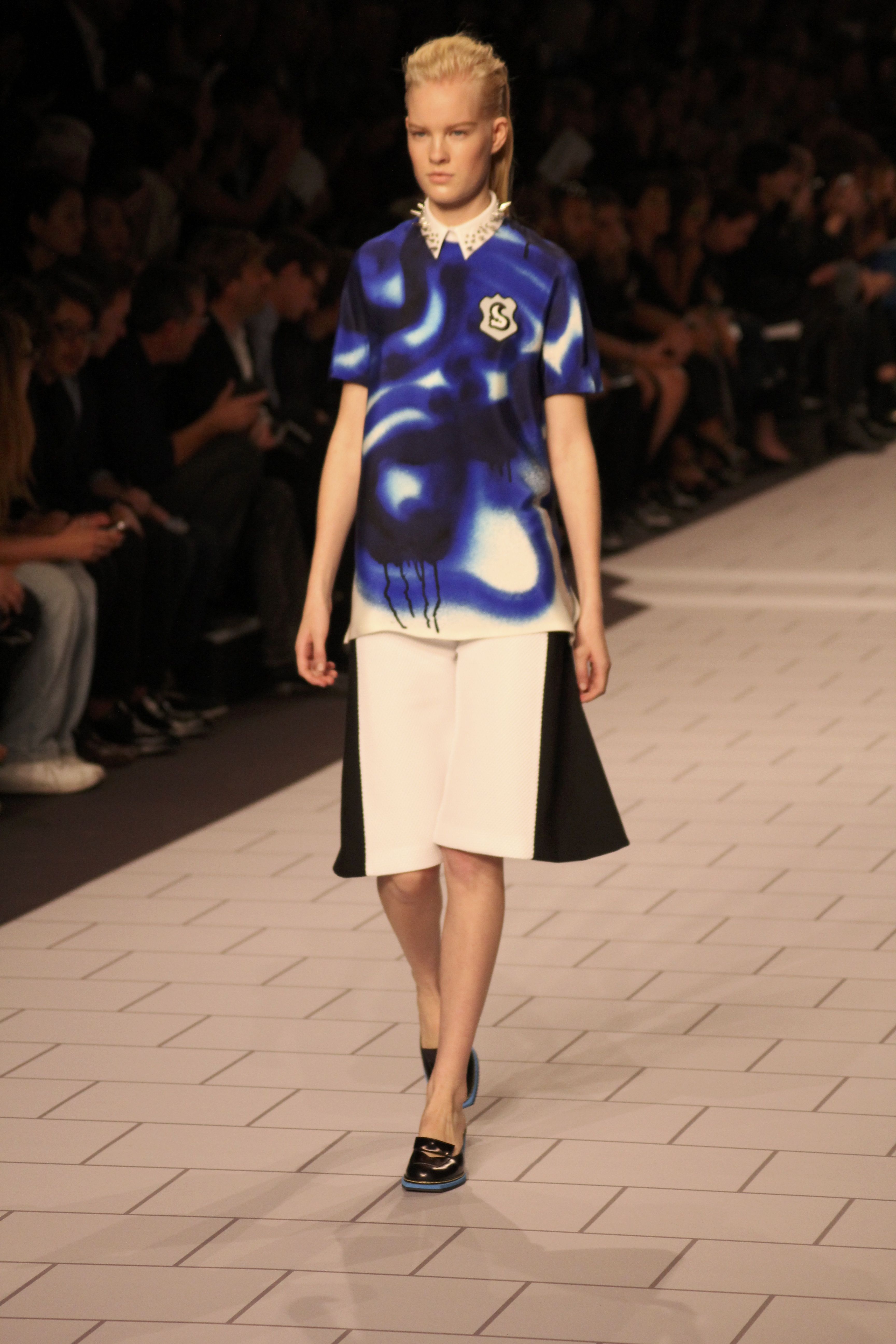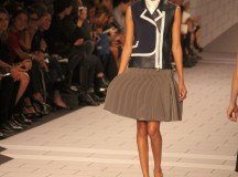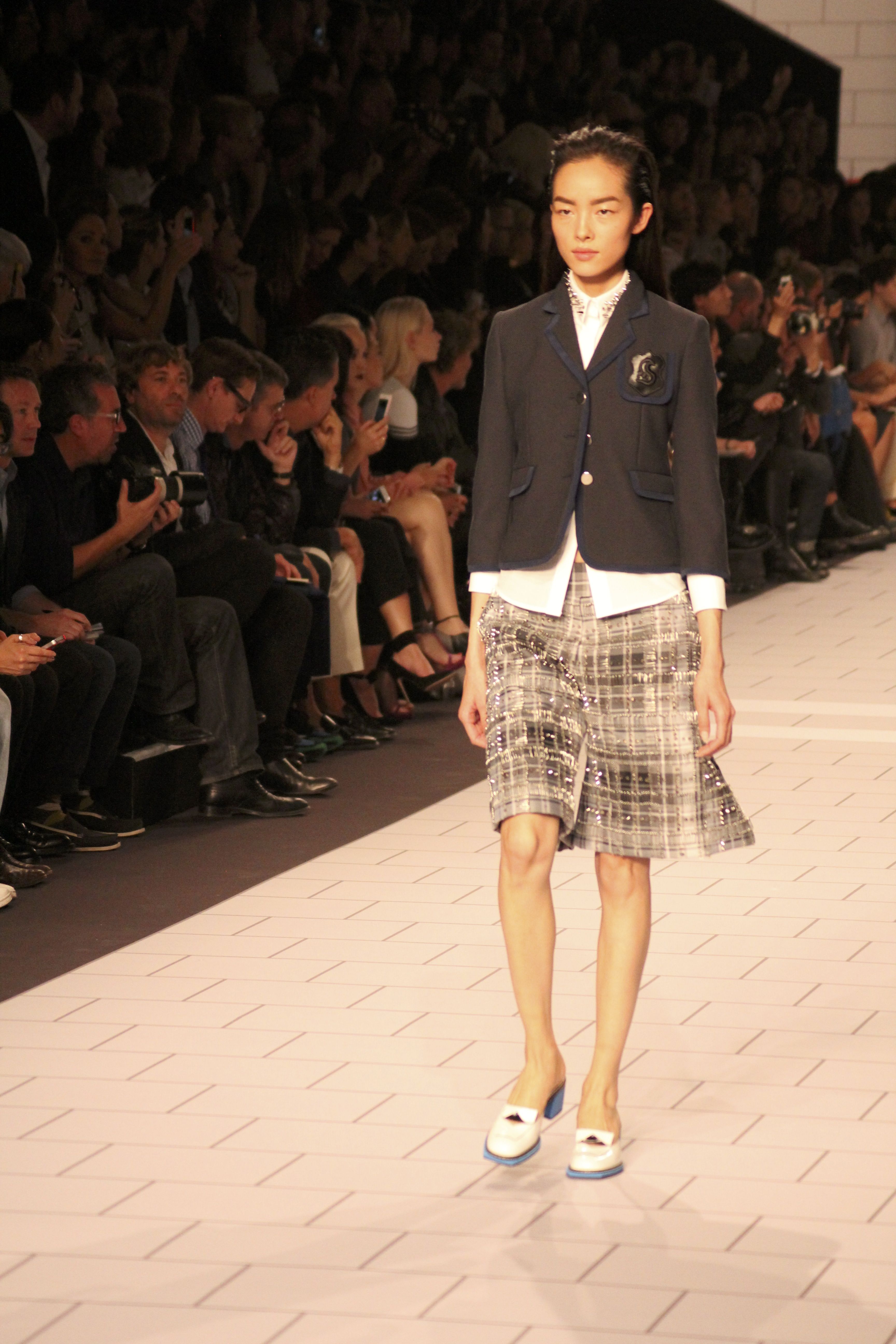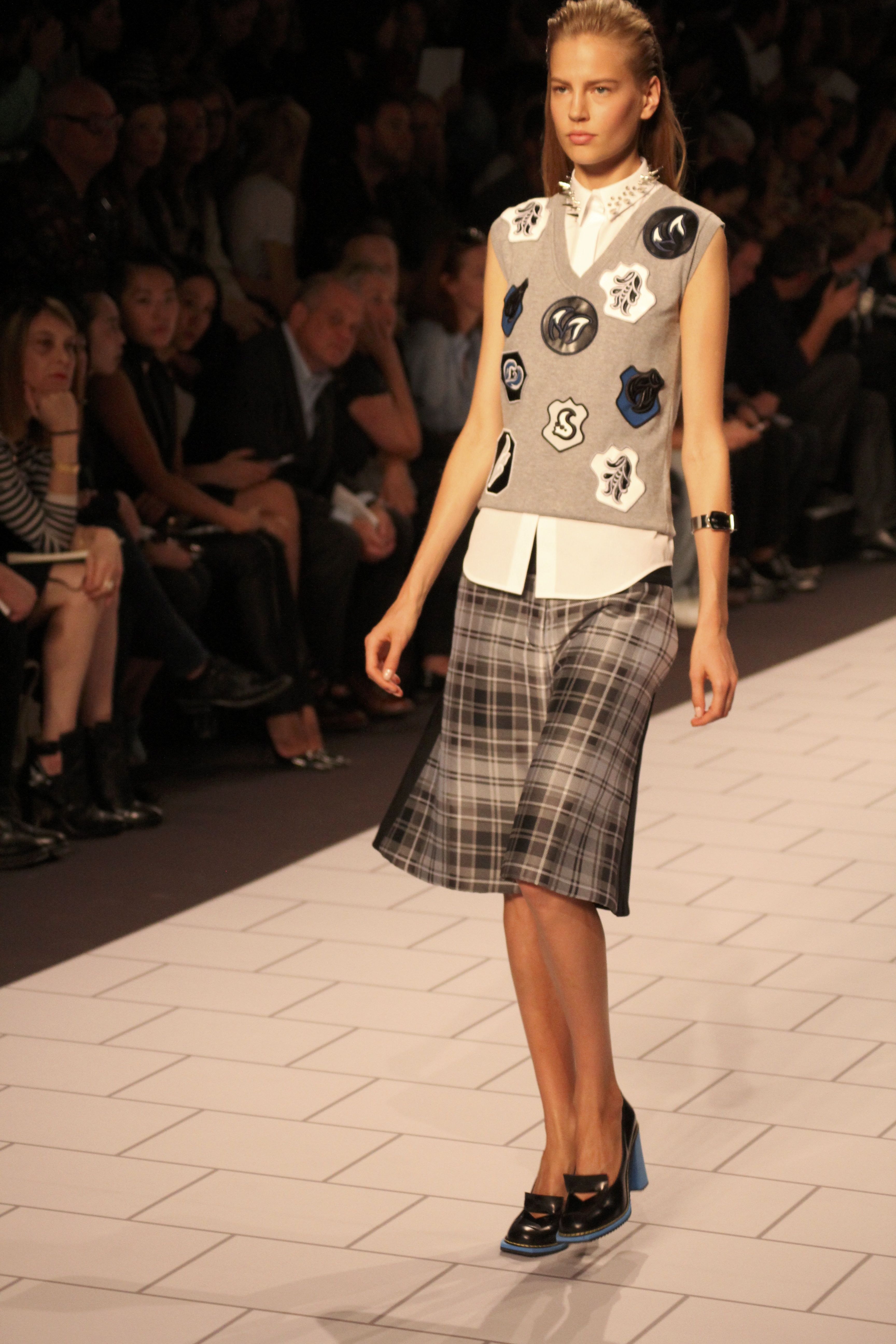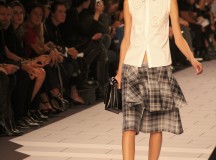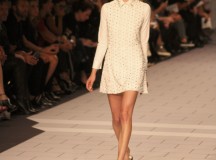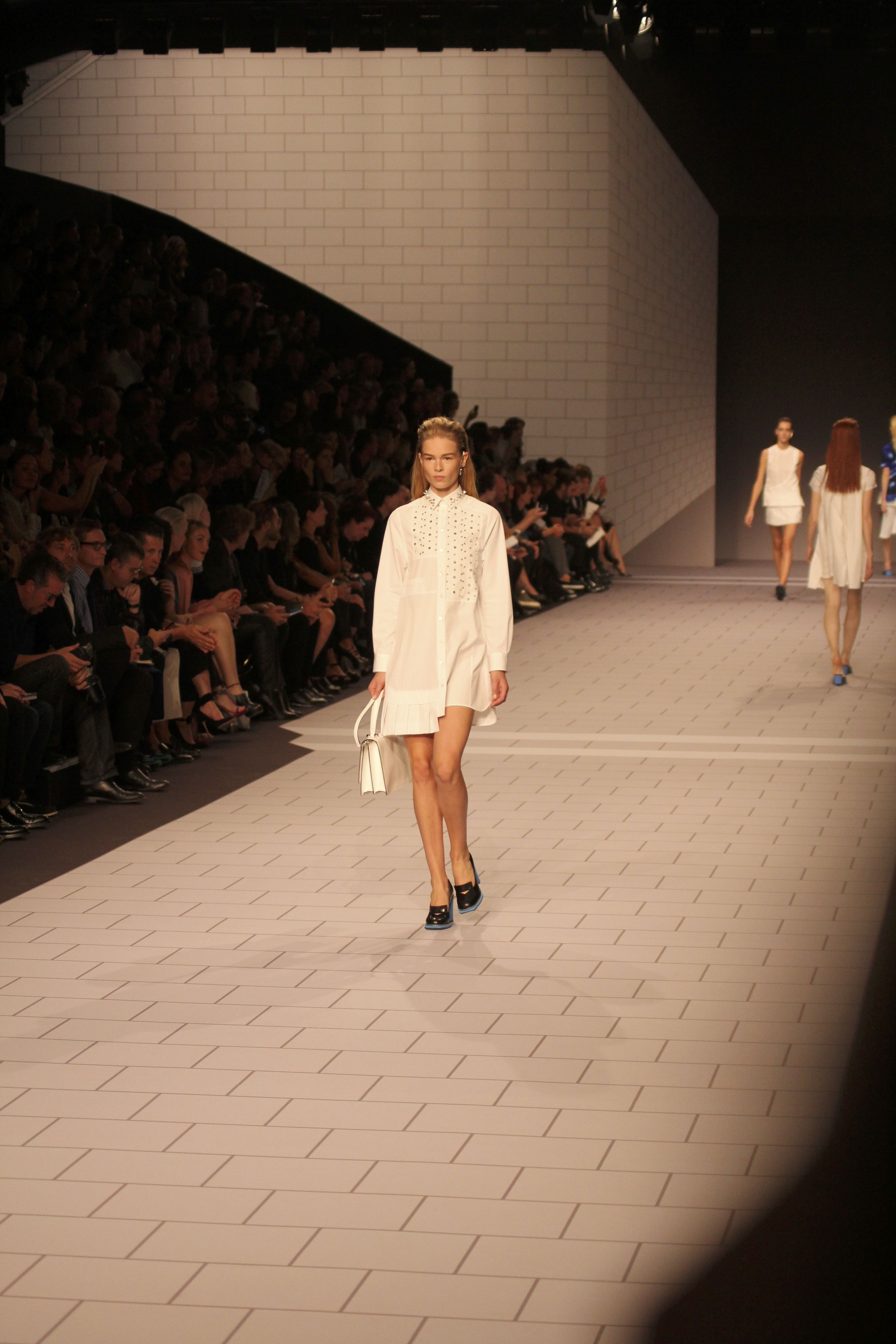Viktor & Rolf présentaient aux tuileries leurs collections printemps été 2014. Une collection inspirée par les uniformes. Empreinte de rigueur qu’elle oppose à la rébellion, cette collection faisait défiler des jeunes écolières punk au son de « the wall » des pink floyd. Vestes preppy, jupes kilts et jupes culottes, blasers, ecussons en gris, noirs, bleux foncés. Quel show !