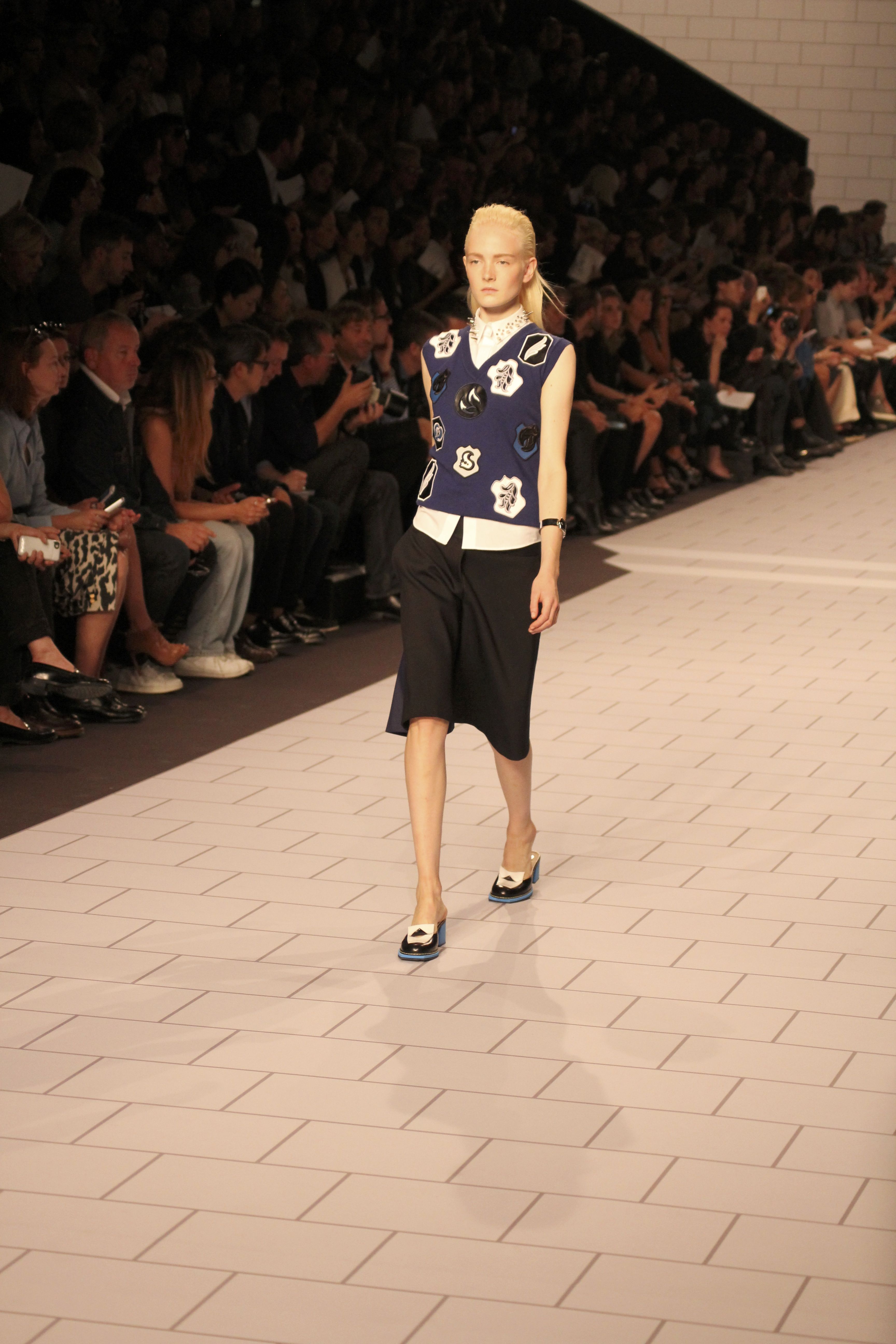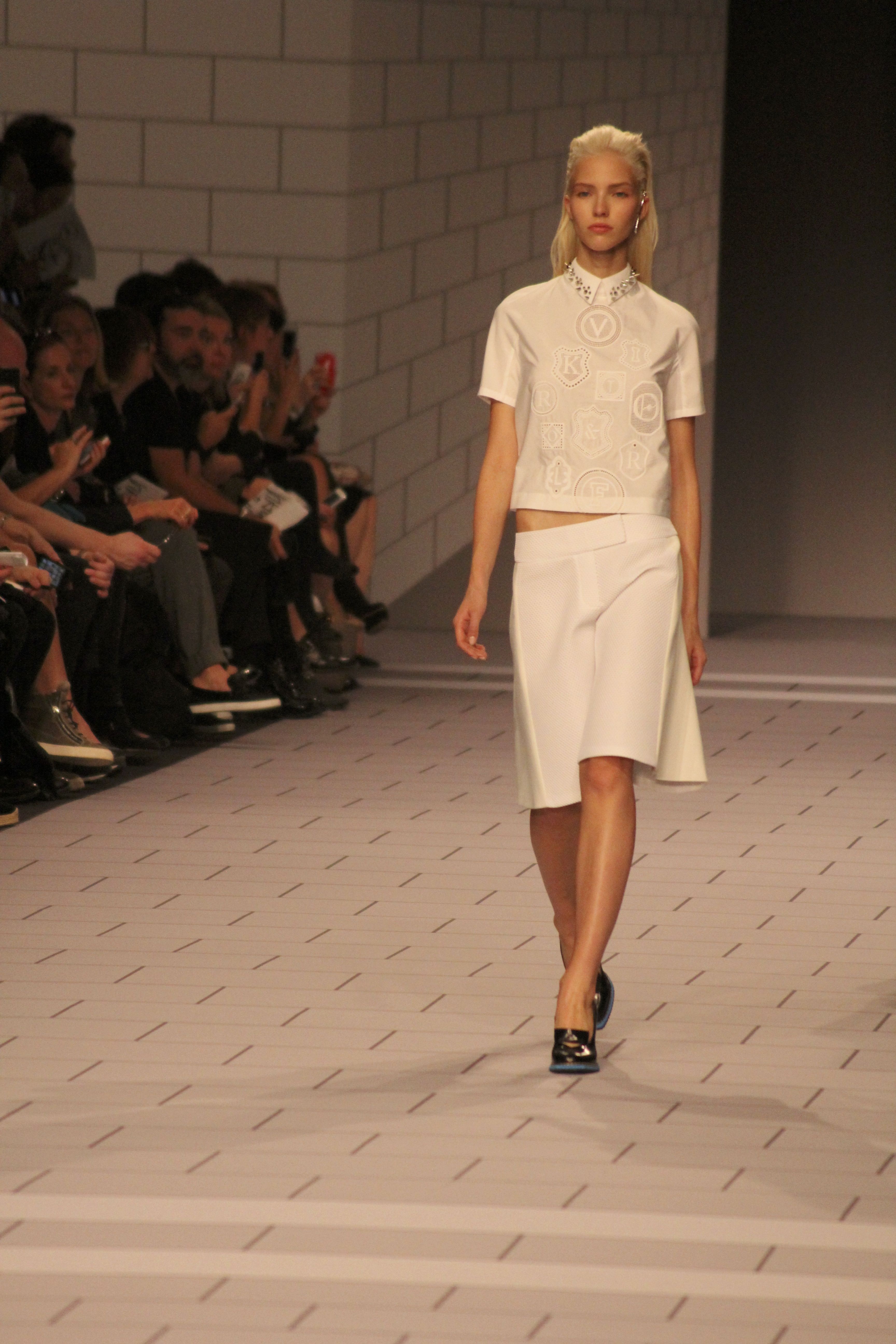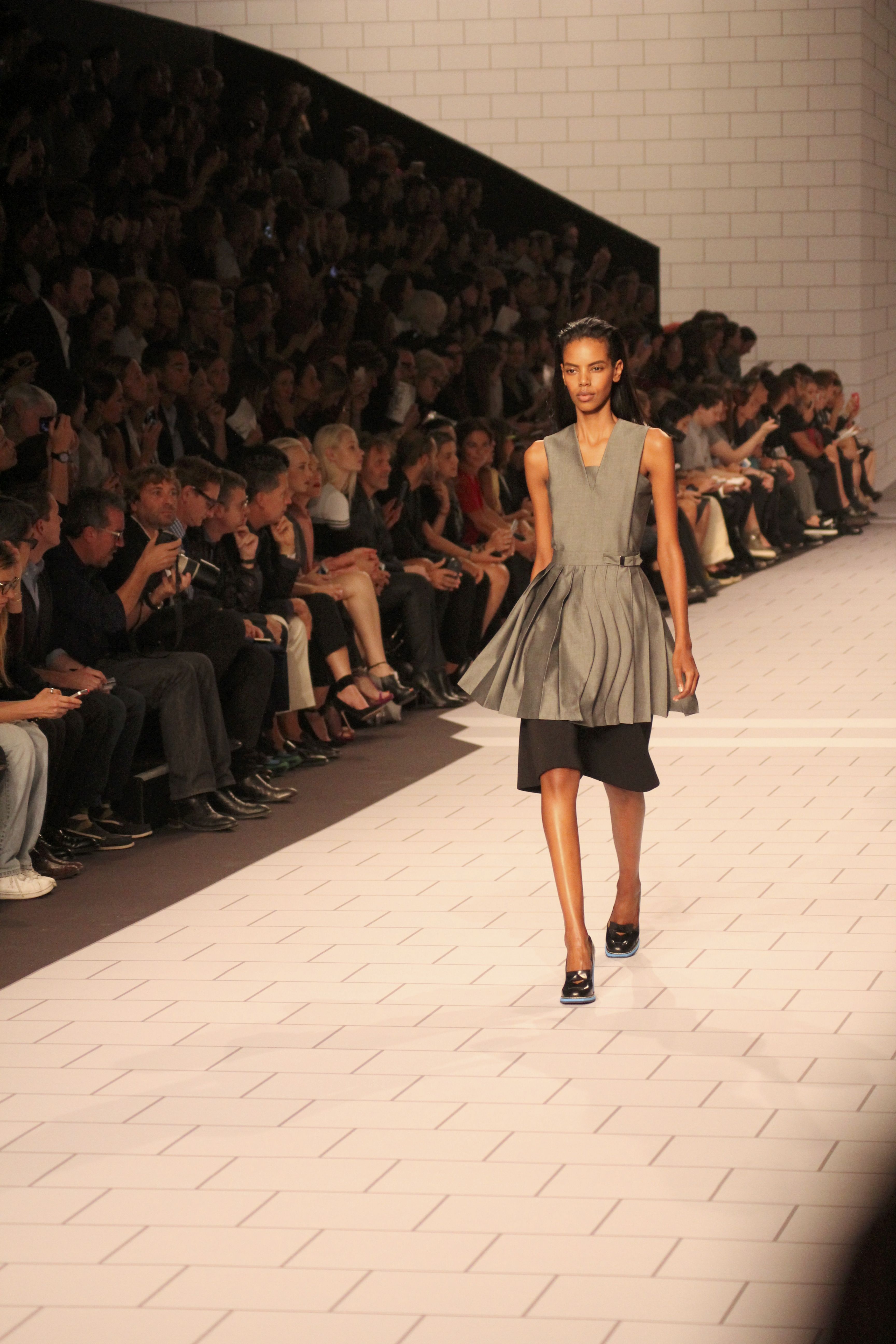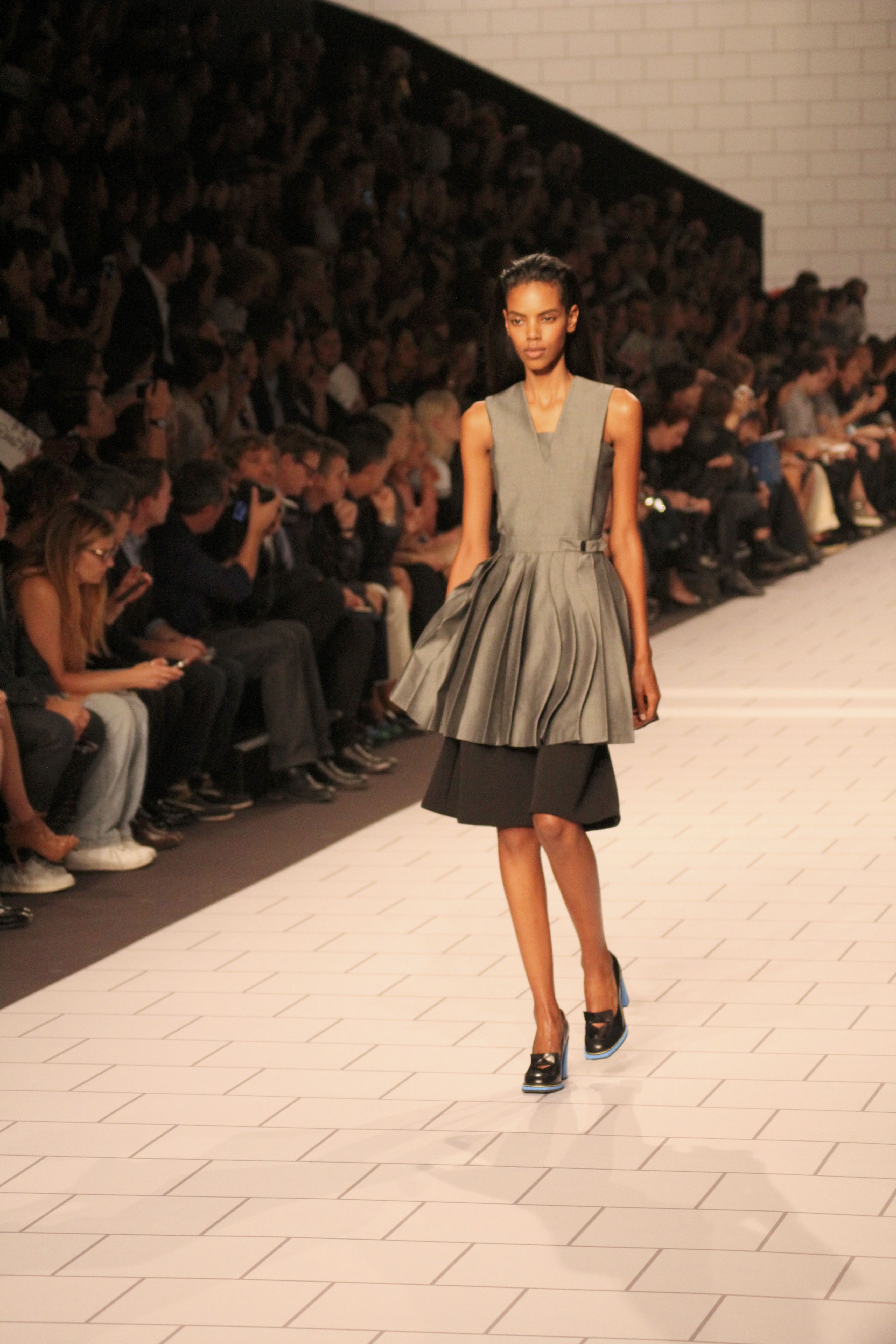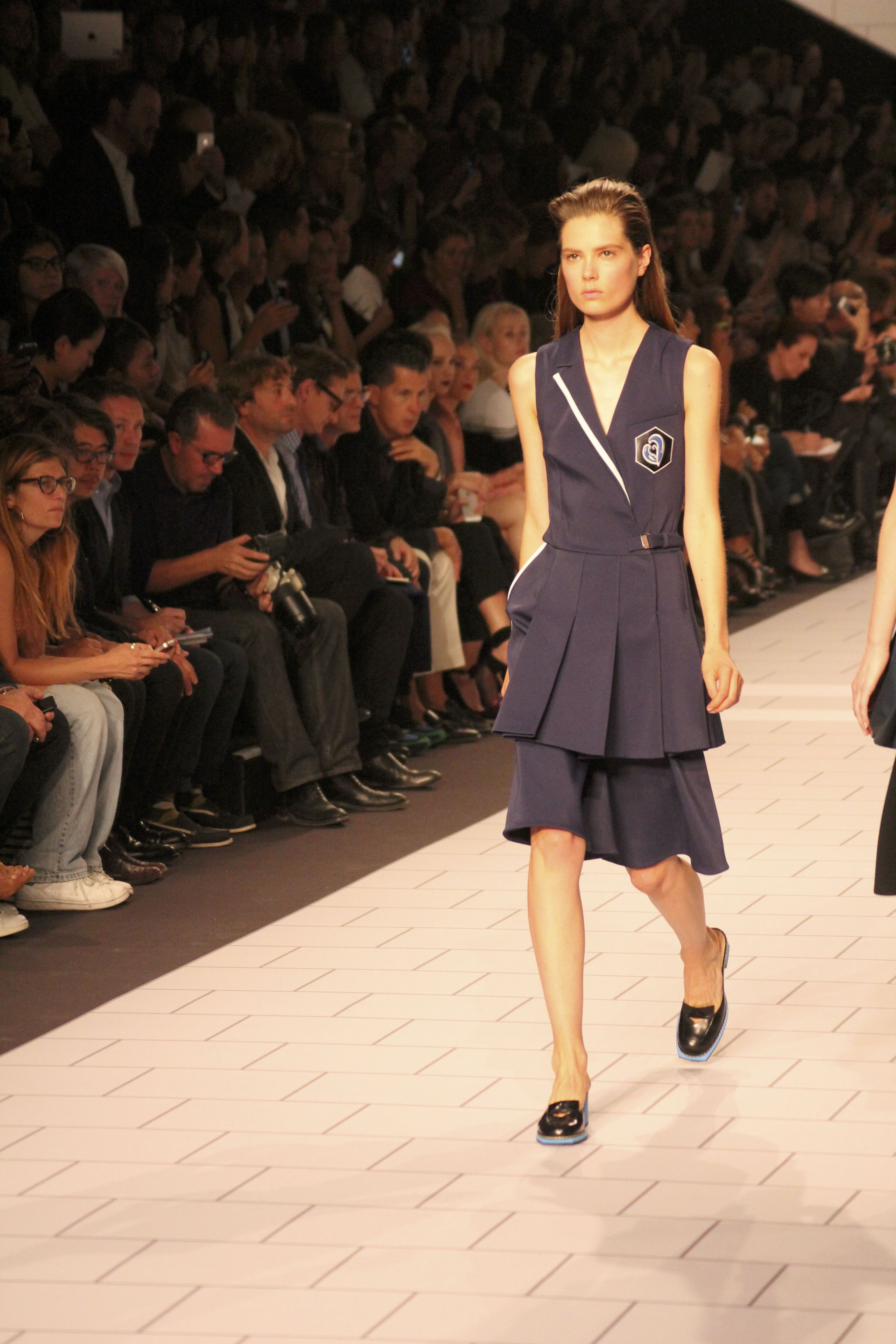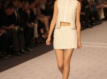 Viktor & Rolf présentaient aux tuileries leurs collections printemps été 2014. Une collection inspirée par les uniformes. Empreinte de rigueur qu’elle oppose à la rébellion, cette collection faisait défiler des jeunes écolières punk au son de « the wall » des pink floyd. Vestes preppy, jupes kilts et jupes culottes, blasers, ecussons en gris, noirs, bleux foncés. Quel show !