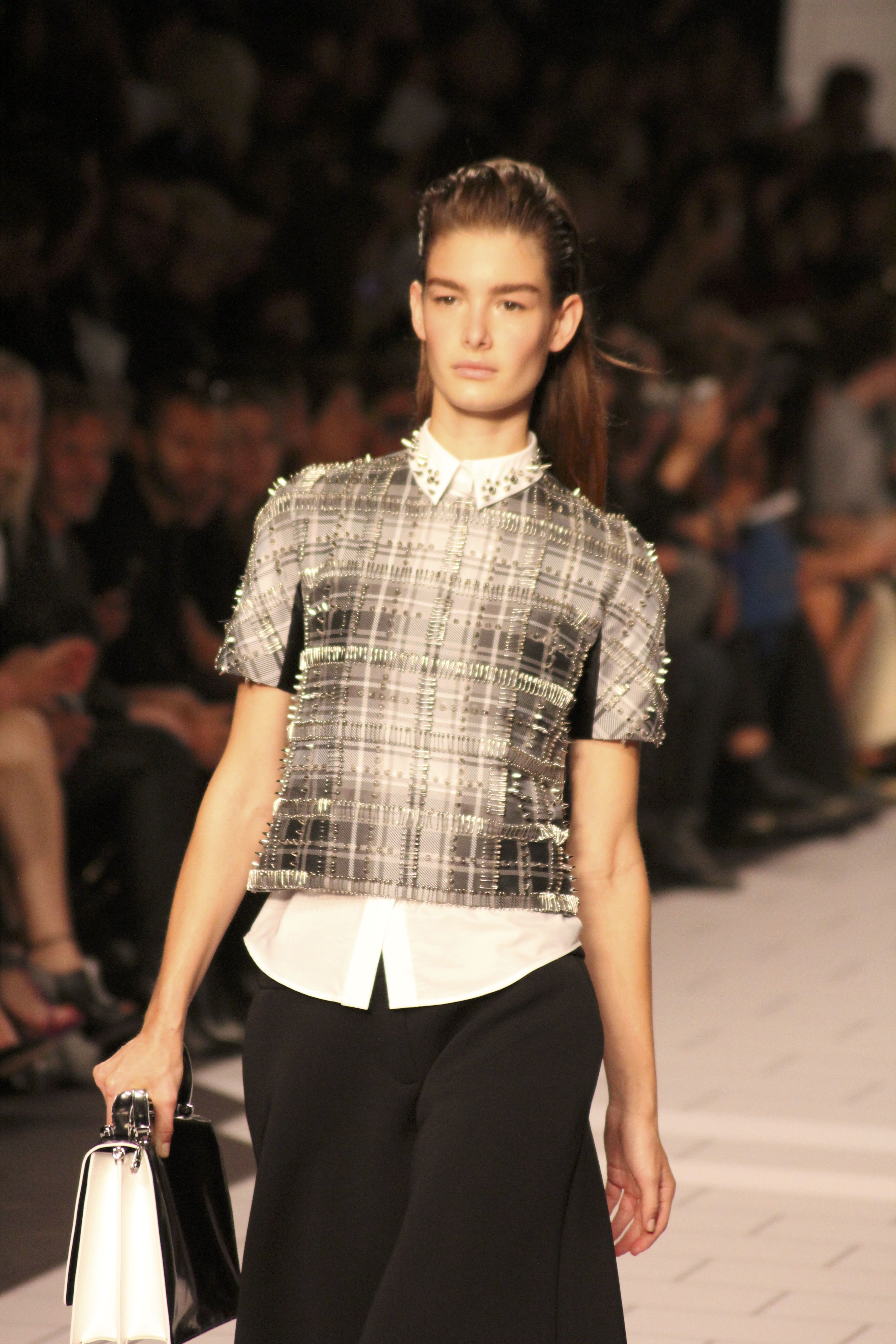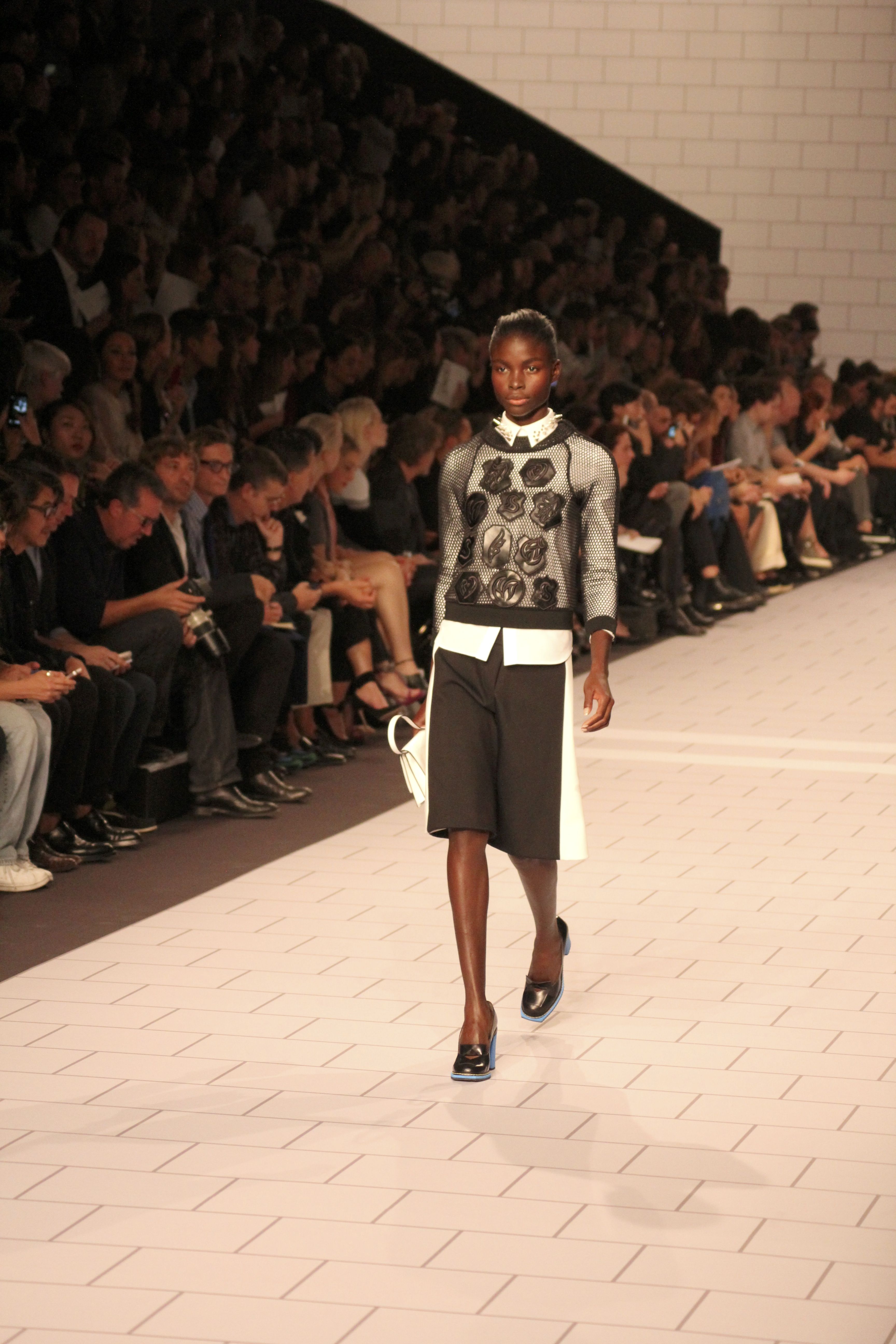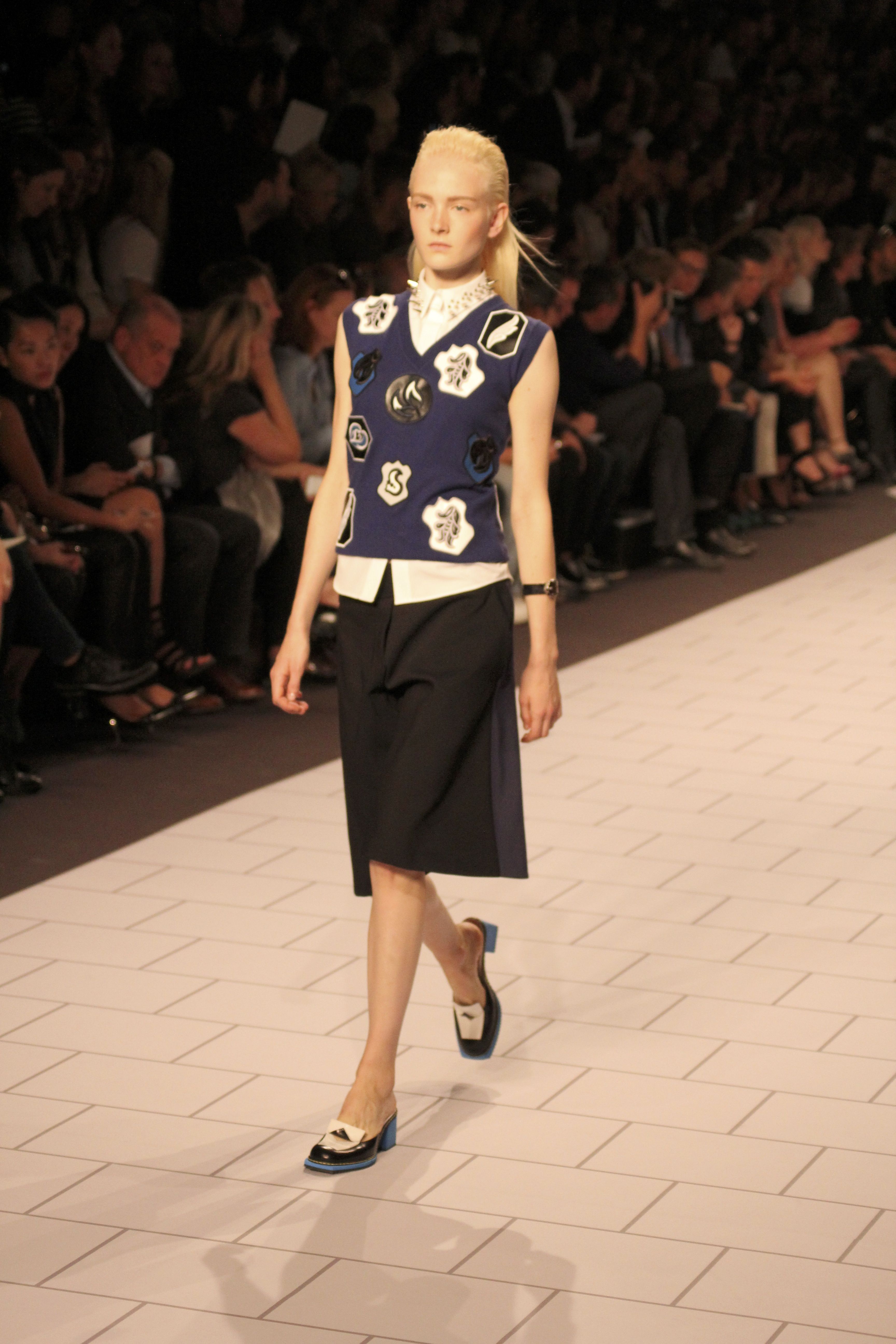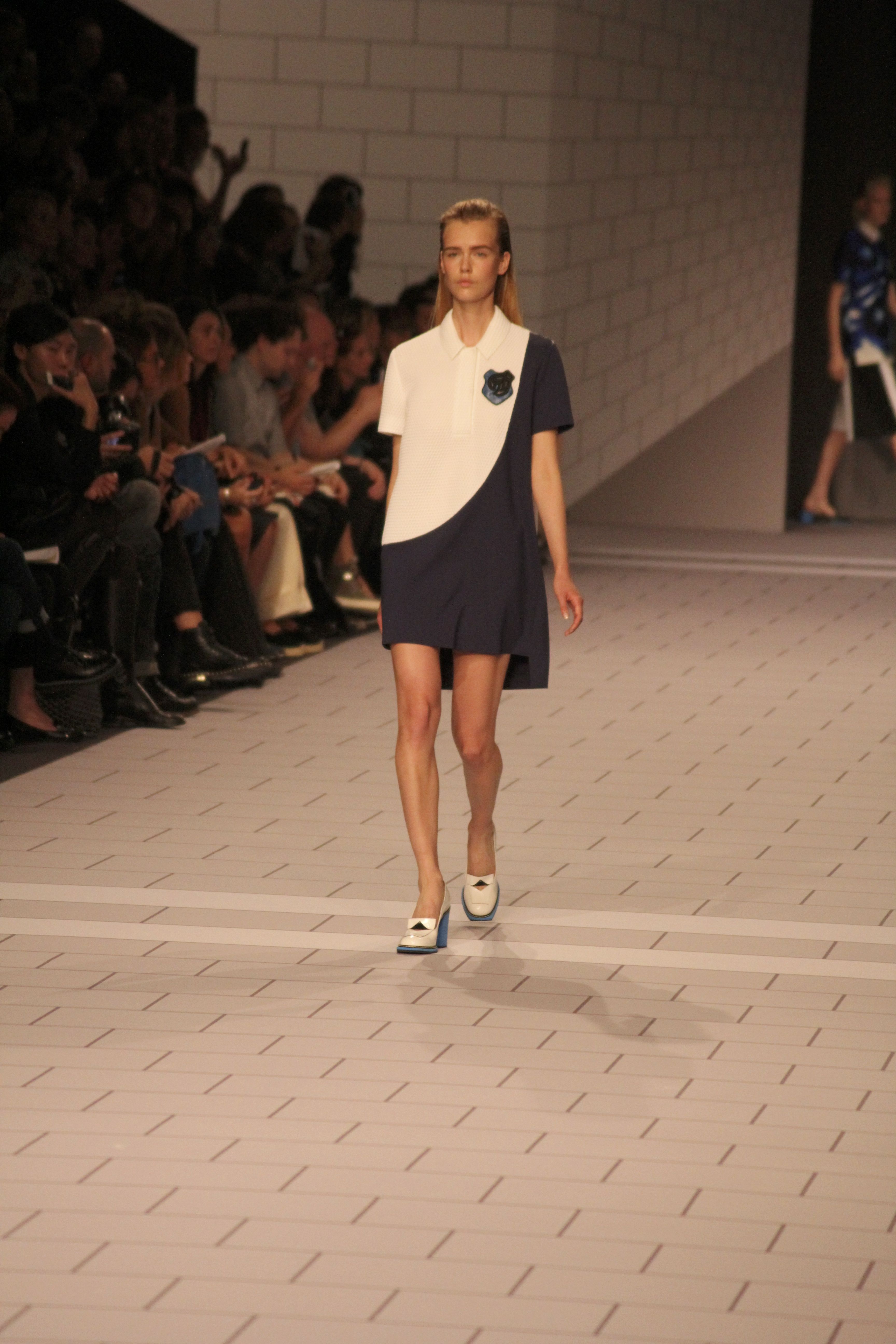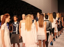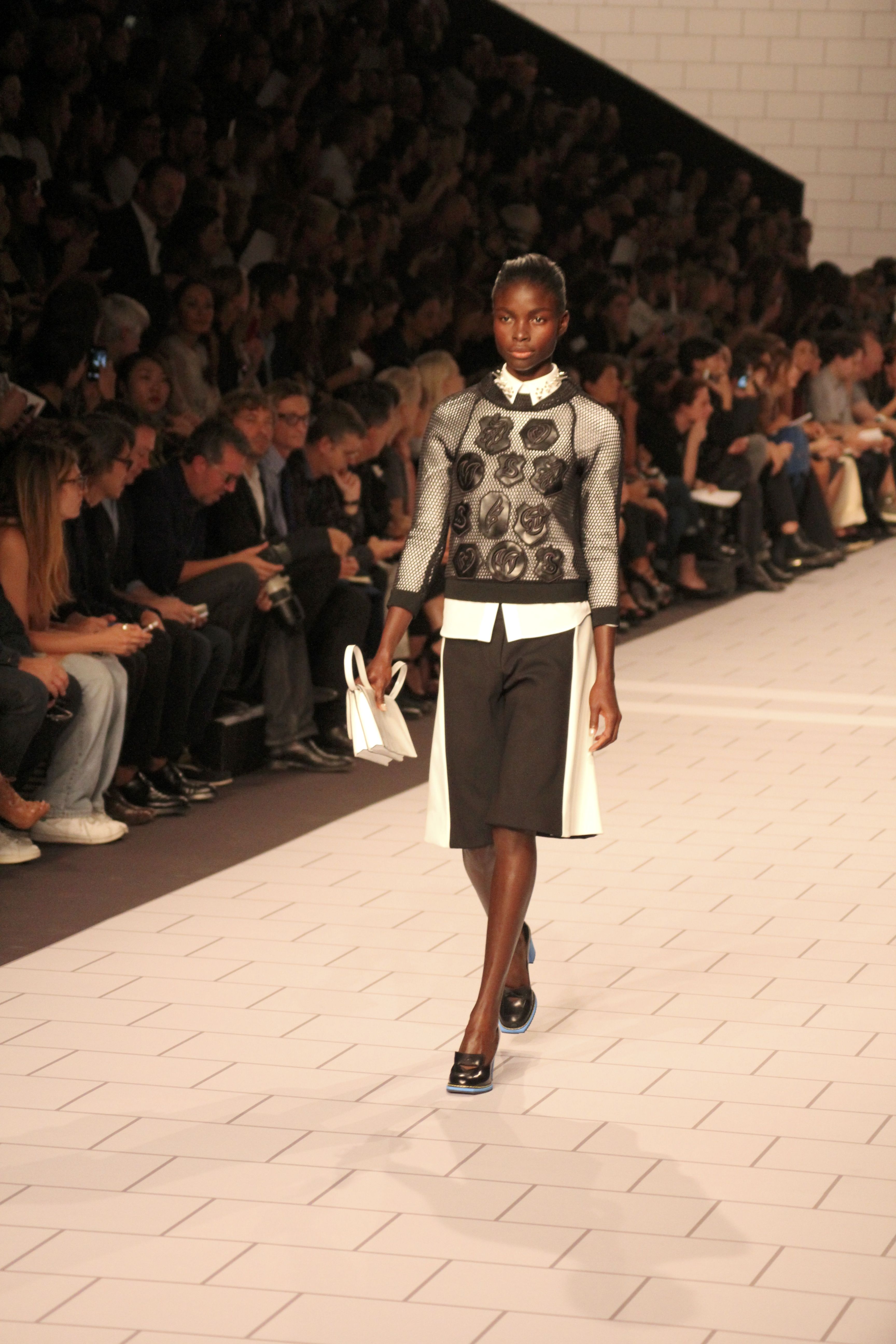 Viktor & Rolf présentaient aux tuileries leurs collections printemps été 2014. Une collection inspirée par les uniformes. Empreinte de rigueur qu’elle oppose à la rébellion, cette collection faisait défiler des jeunes écolières punk au son de « the wall » des pink floyd. Vestes preppy, jupes kilts et jupes culottes, blasers, ecussons en gris, noirs, bleux foncés. Quel show !