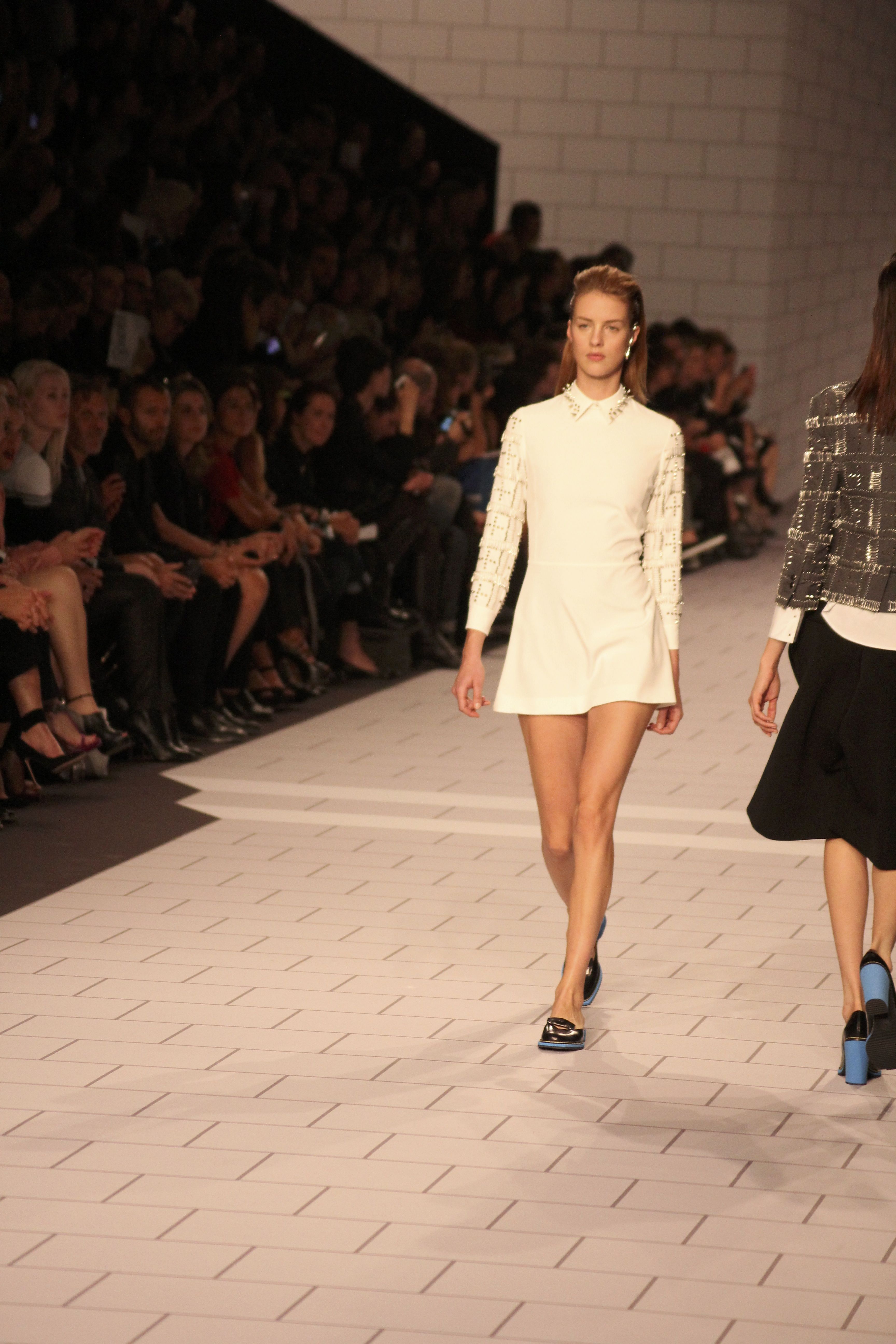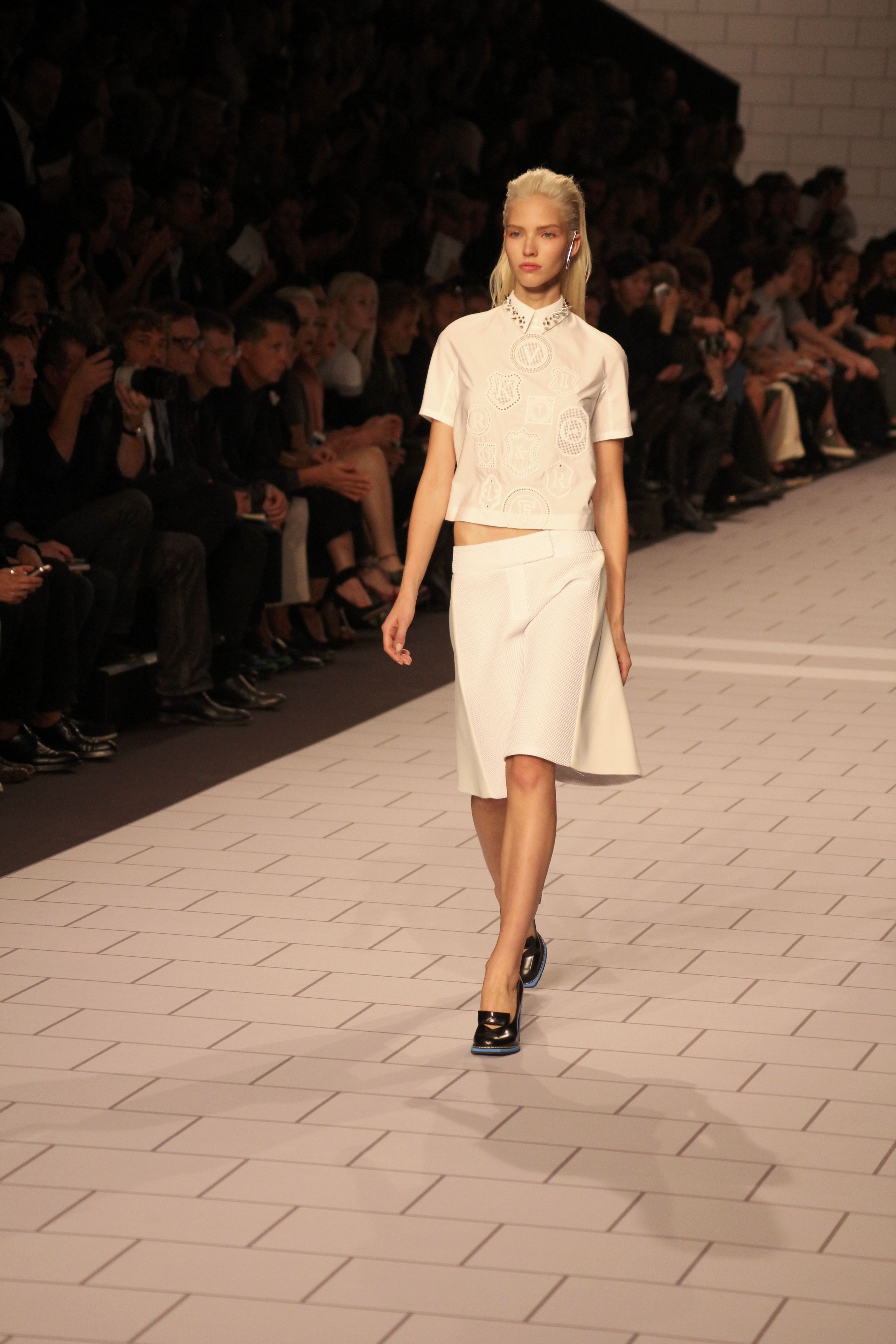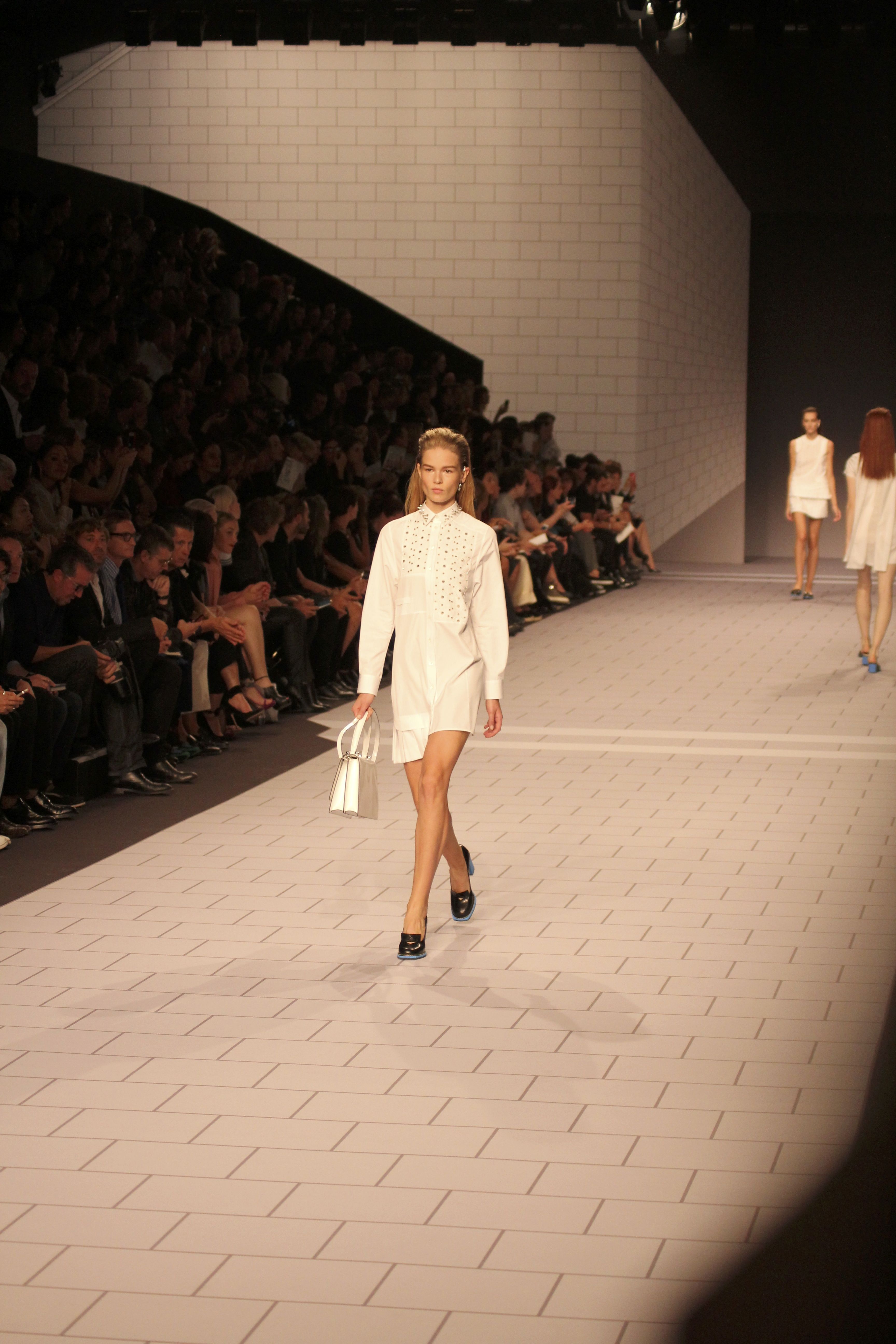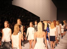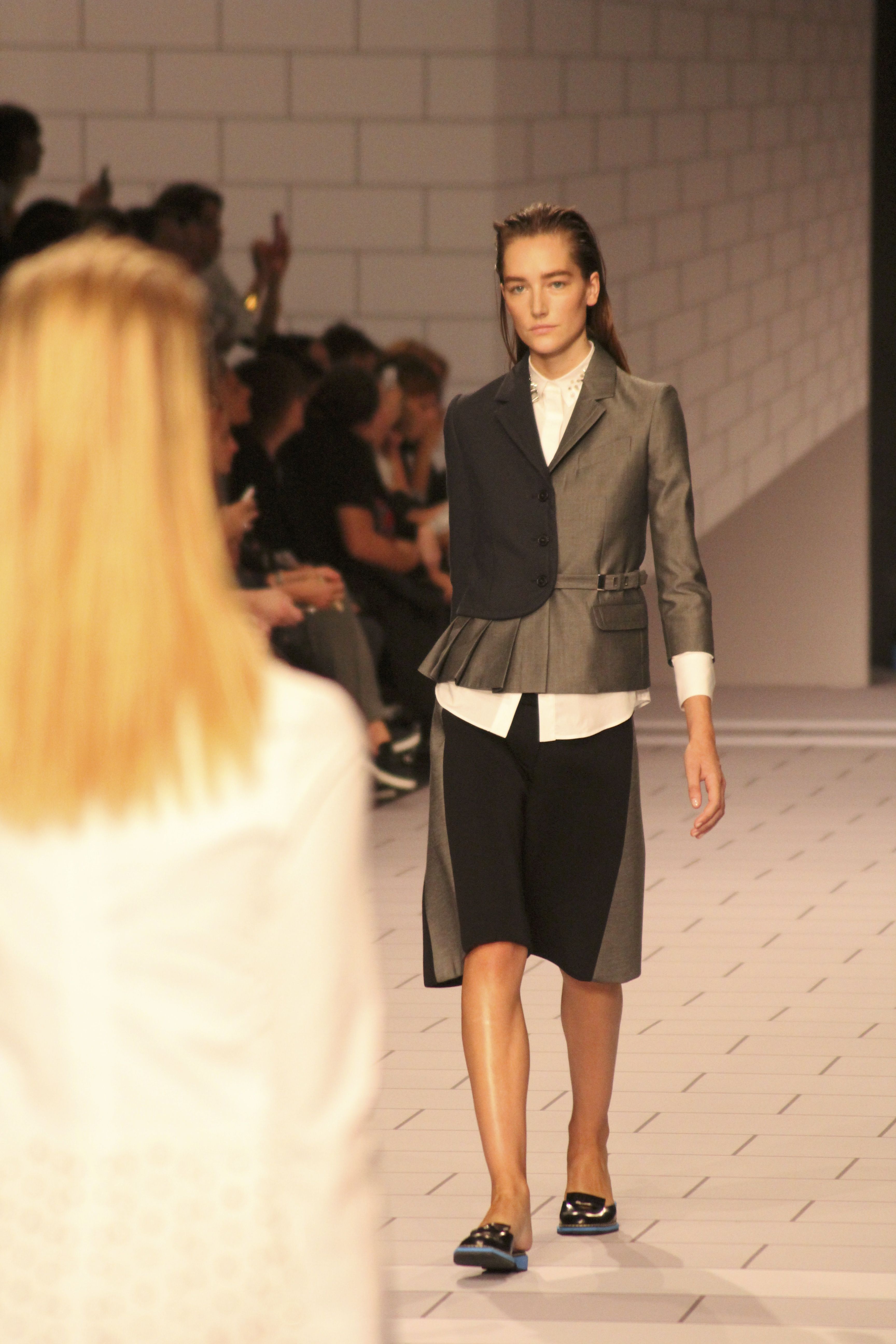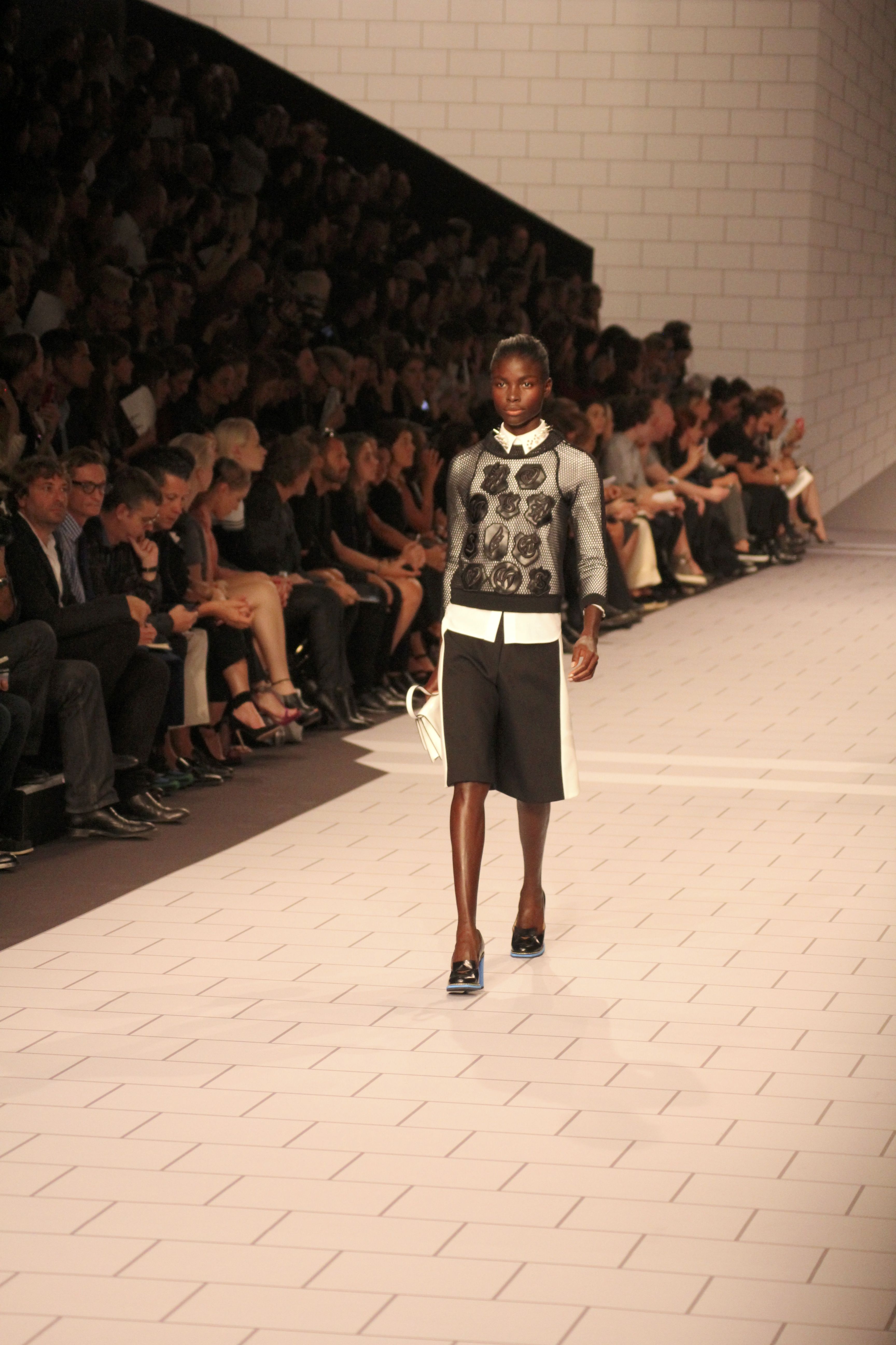 Viktor & Rolf présentaient aux tuileries leurs collections printemps été 2014. Une collection inspirée par les uniformes. Empreinte de rigueur qu’elle oppose à la rébellion, cette collection faisait défiler des jeunes écolières punk au son de « the wall » des pink floyd. Vestes preppy, jupes kilts et jupes culottes, blasers, ecussons en gris, noirs, bleux foncés. Quel show !
