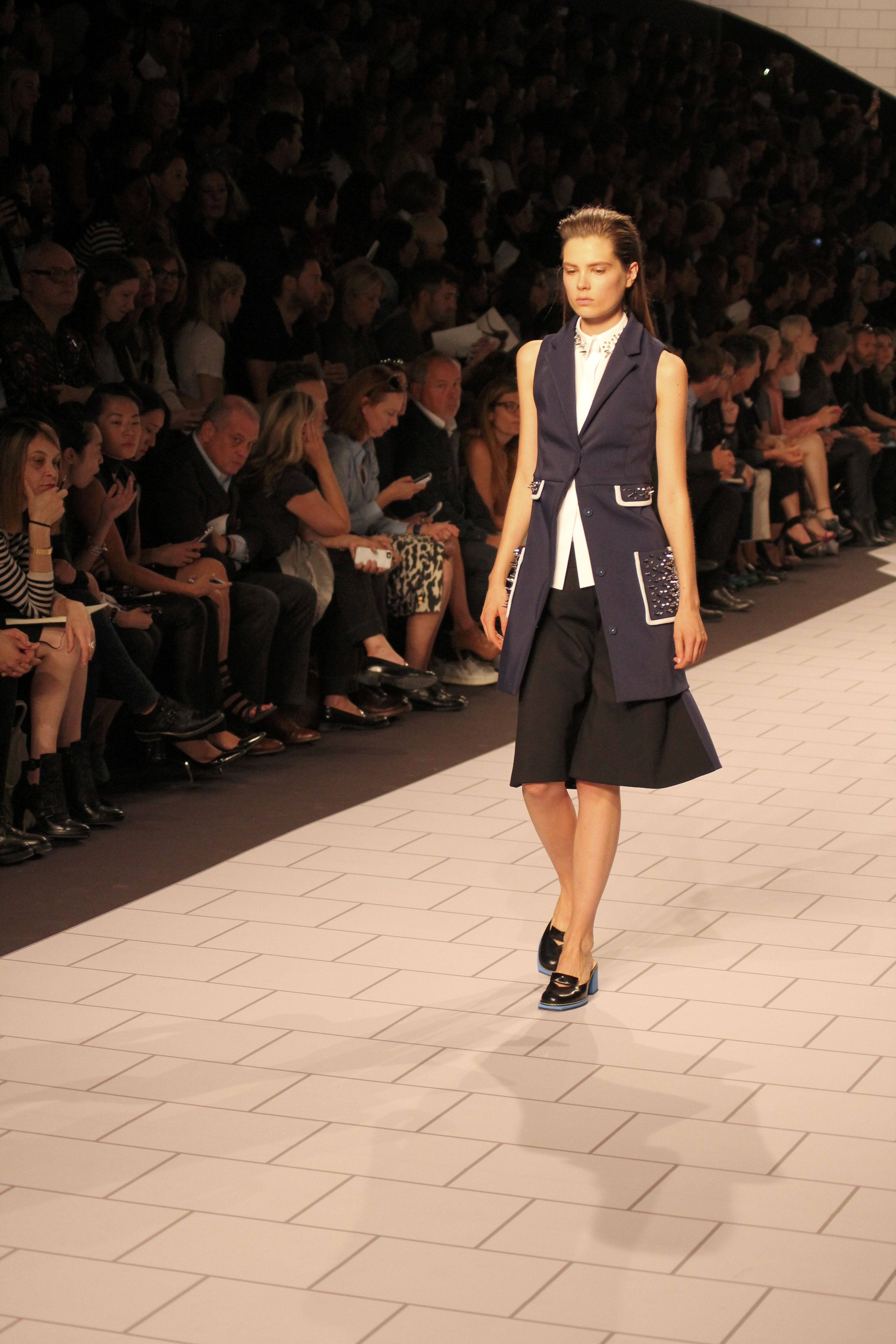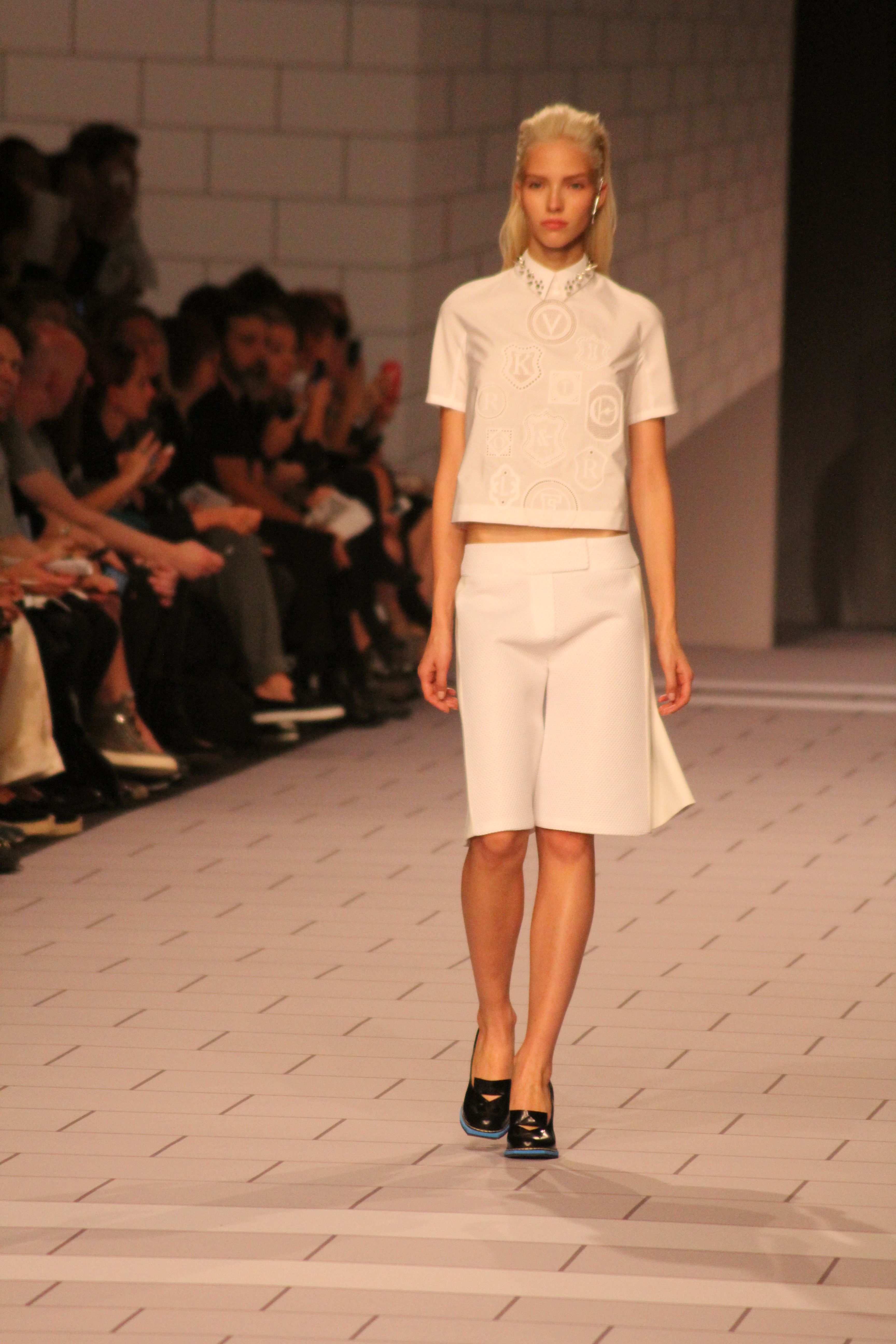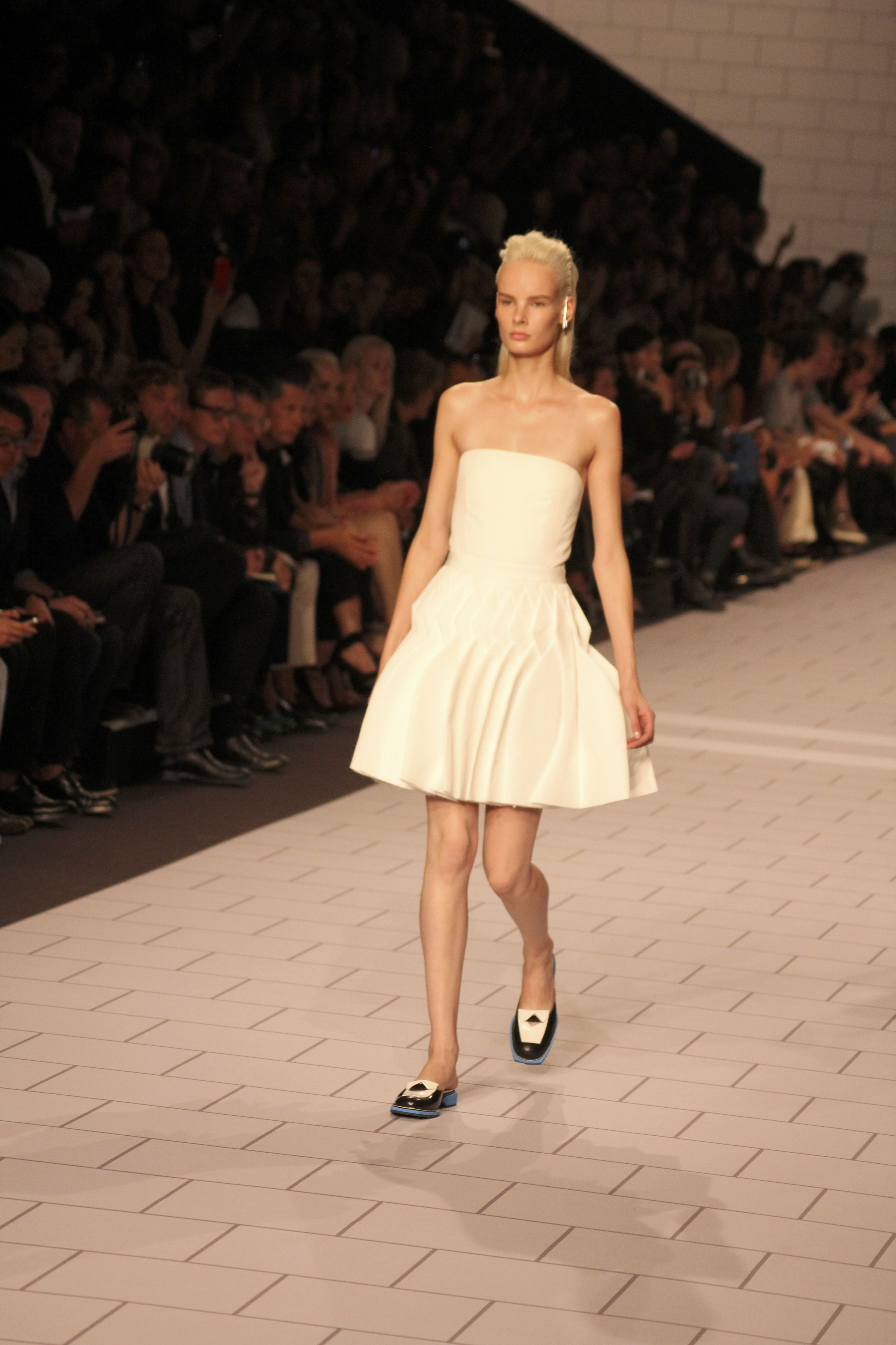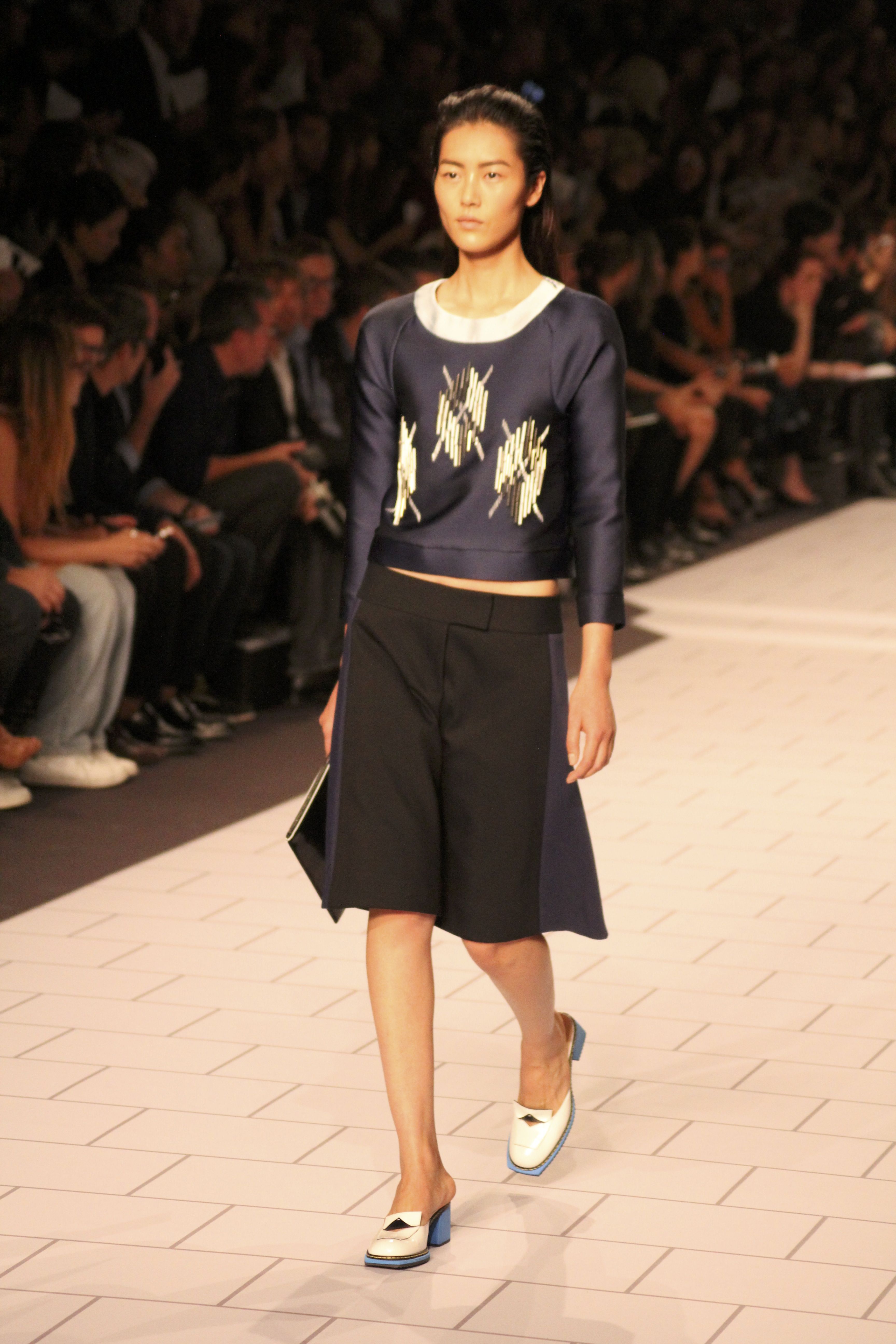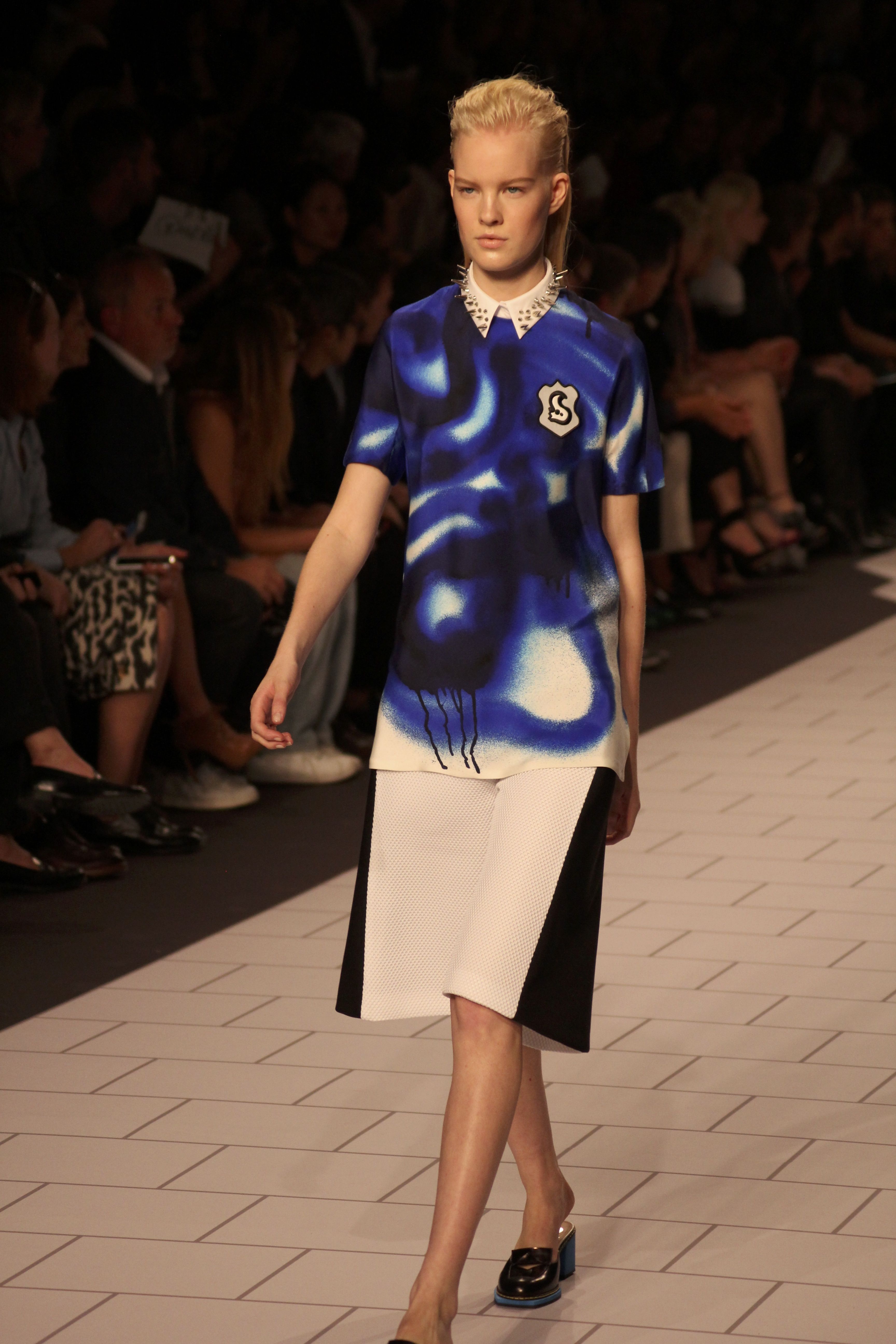 Viktor & Rolf présentaient aux tuileries leurs collections printemps été 2014. Une collection inspirée par les uniformes. Empreinte de rigueur qu’elle oppose à la rébellion, cette collection faisait défiler des jeunes écolières punk au son de « the wall » des pink floyd. Vestes preppy, jupes kilts et jupes culottes, blasers, ecussons en gris, noirs, bleux foncés. Quel show !