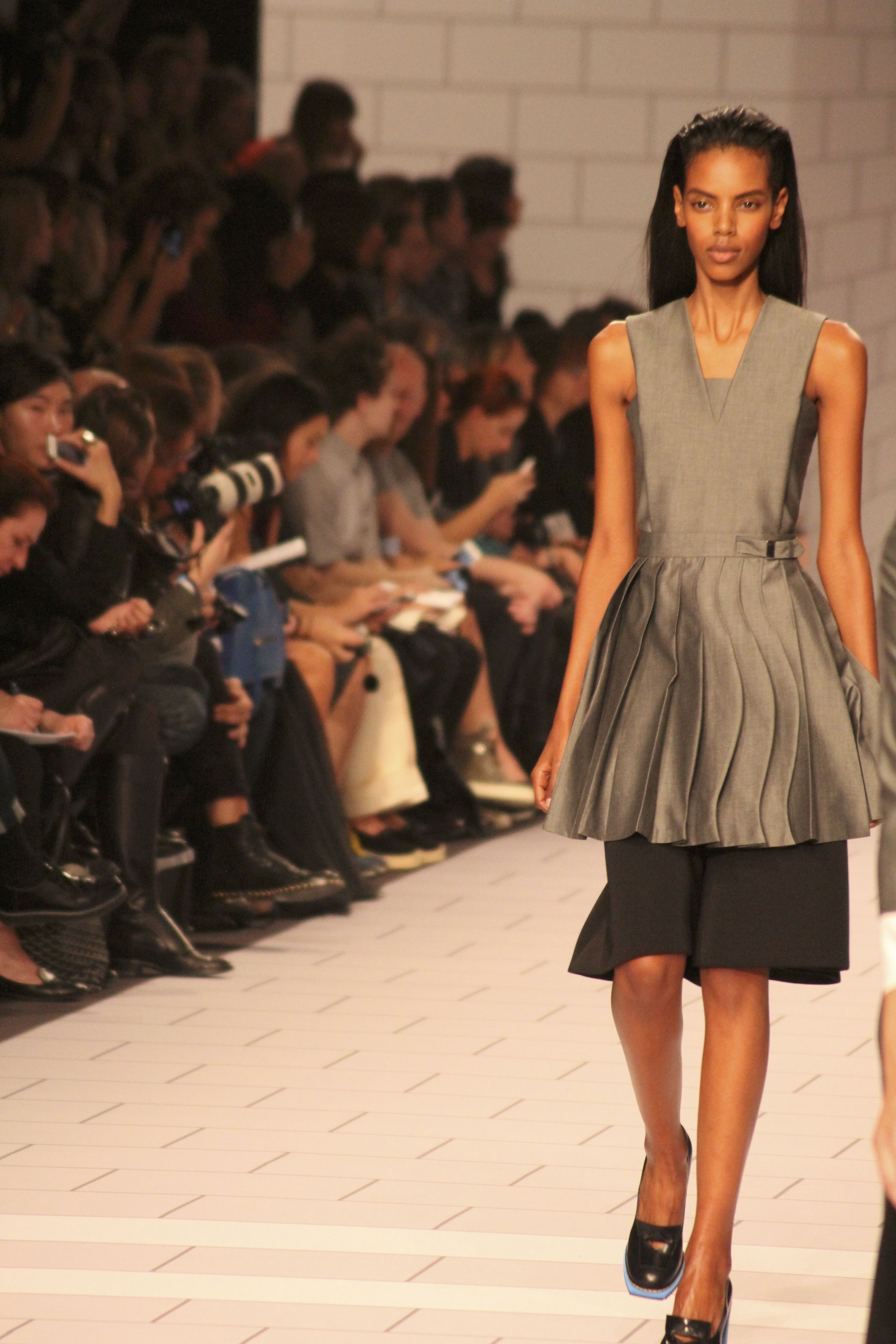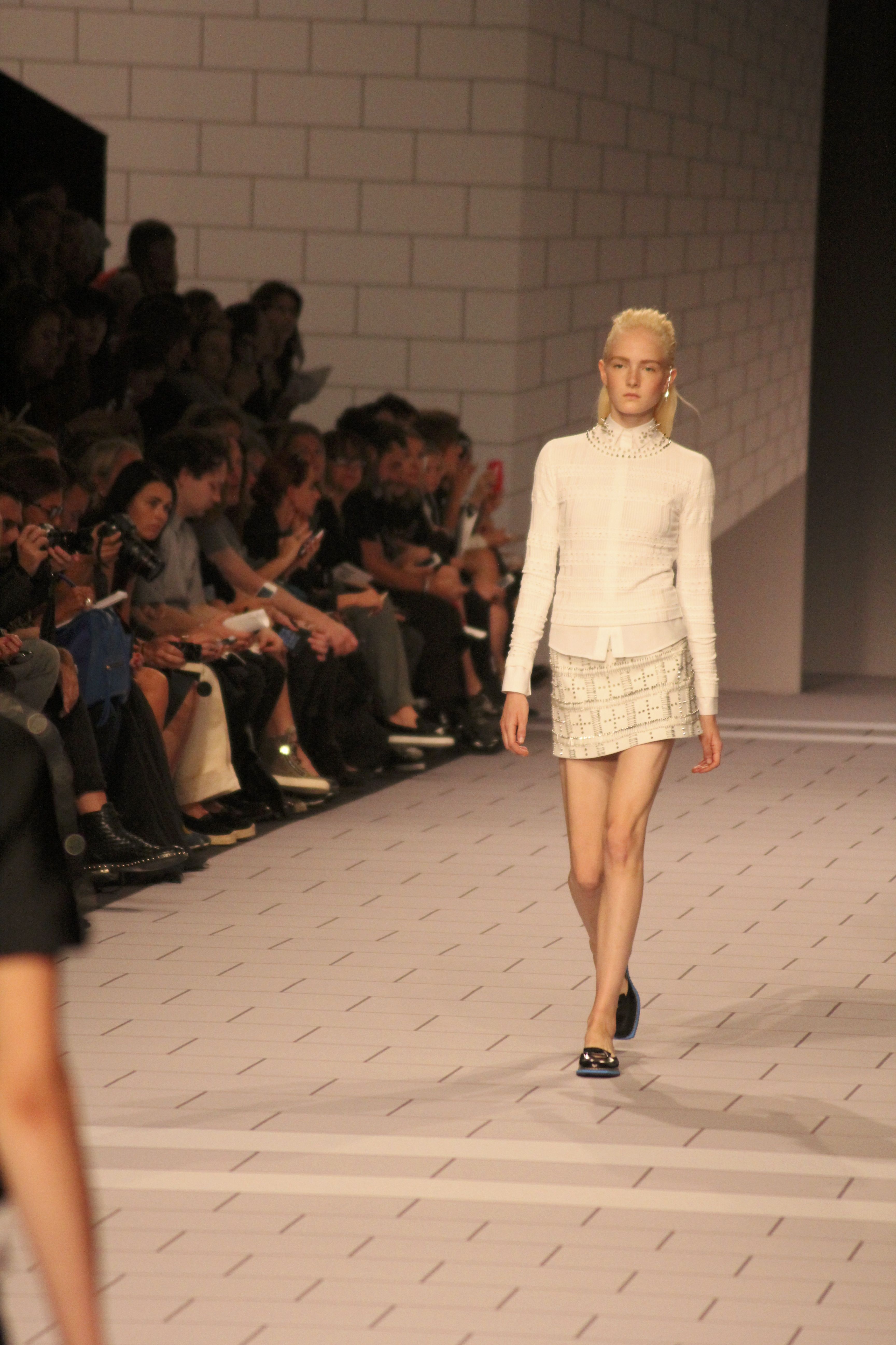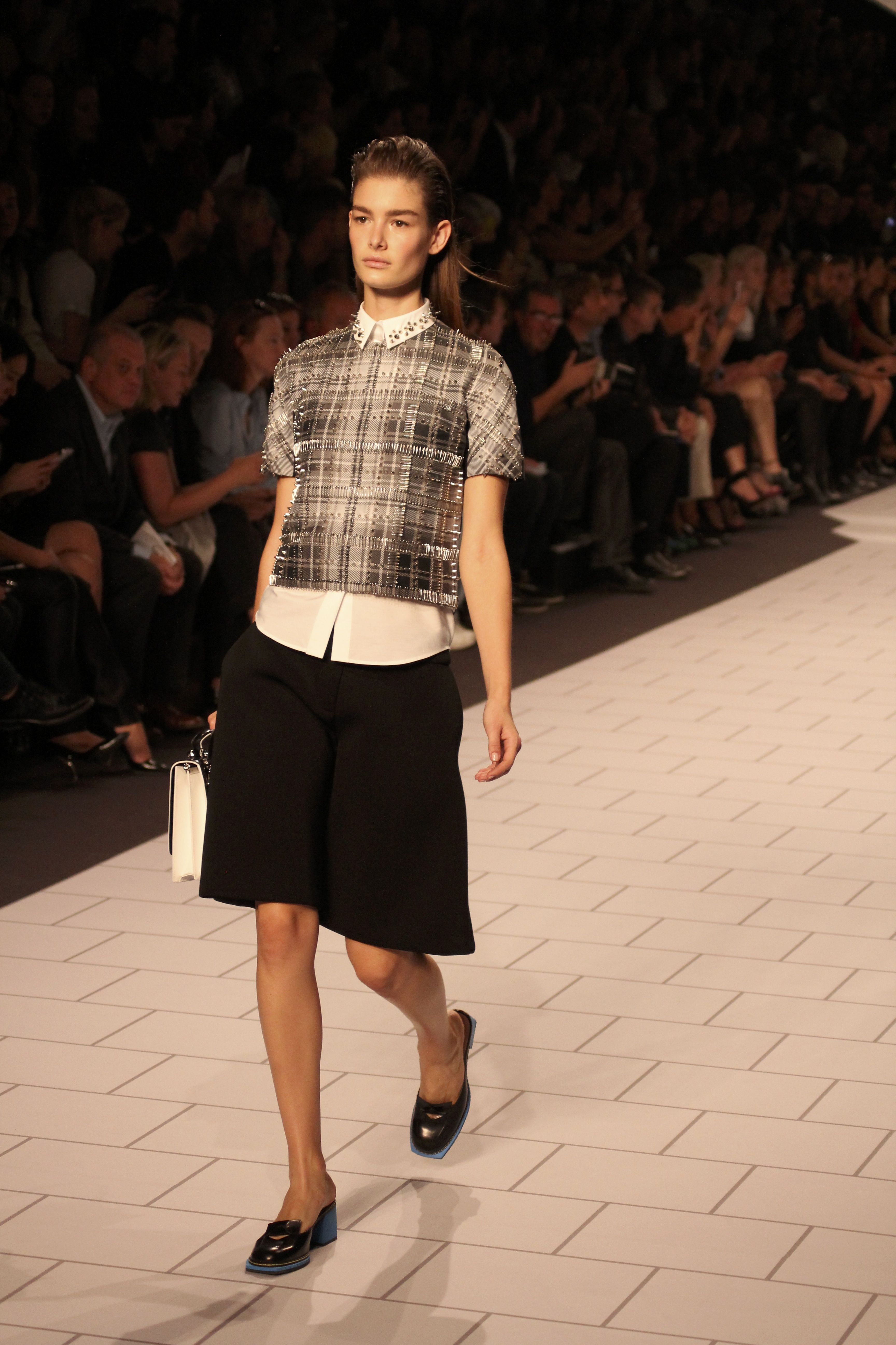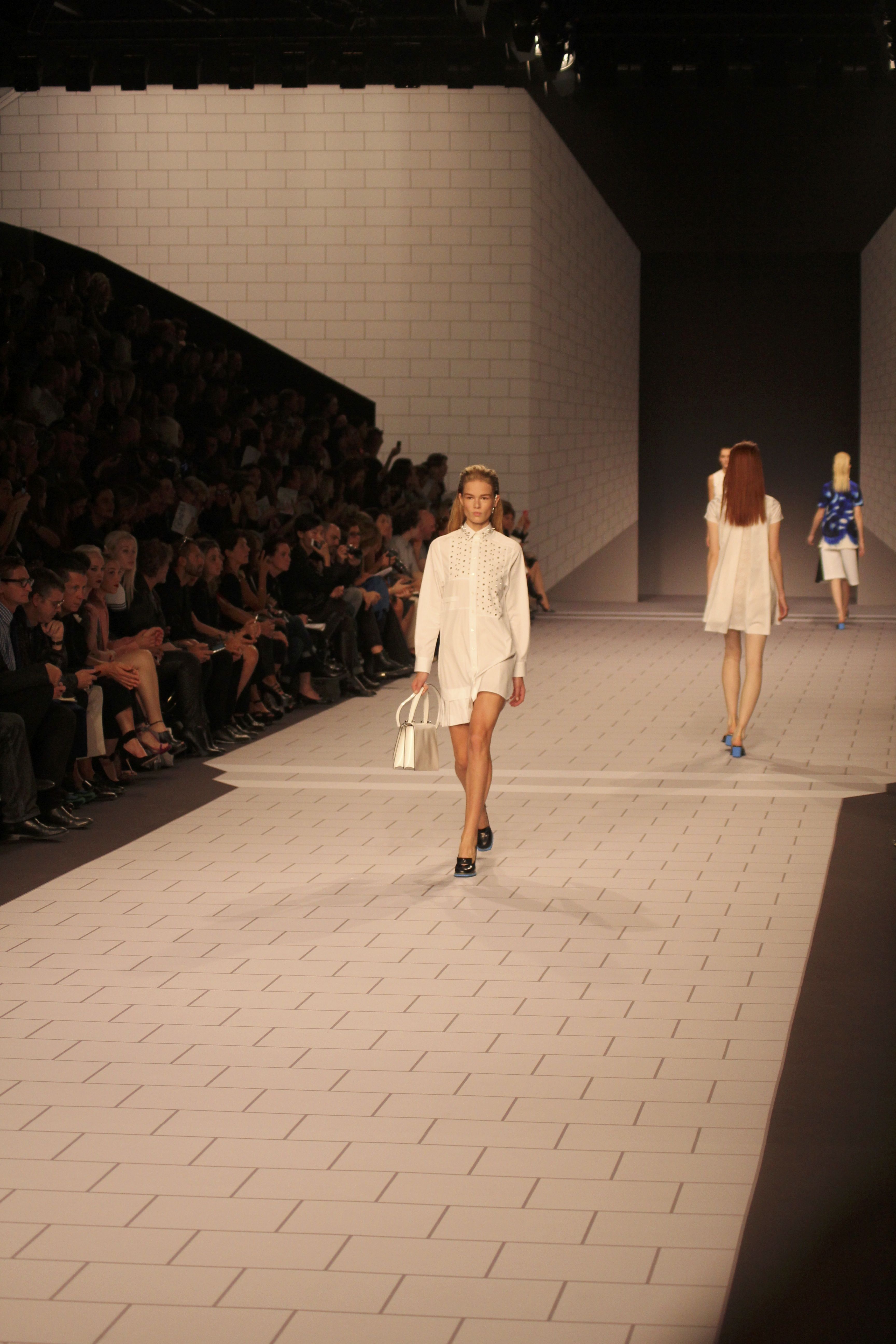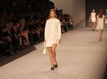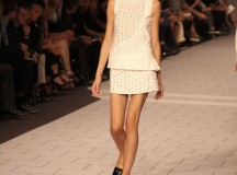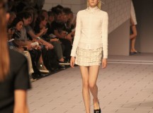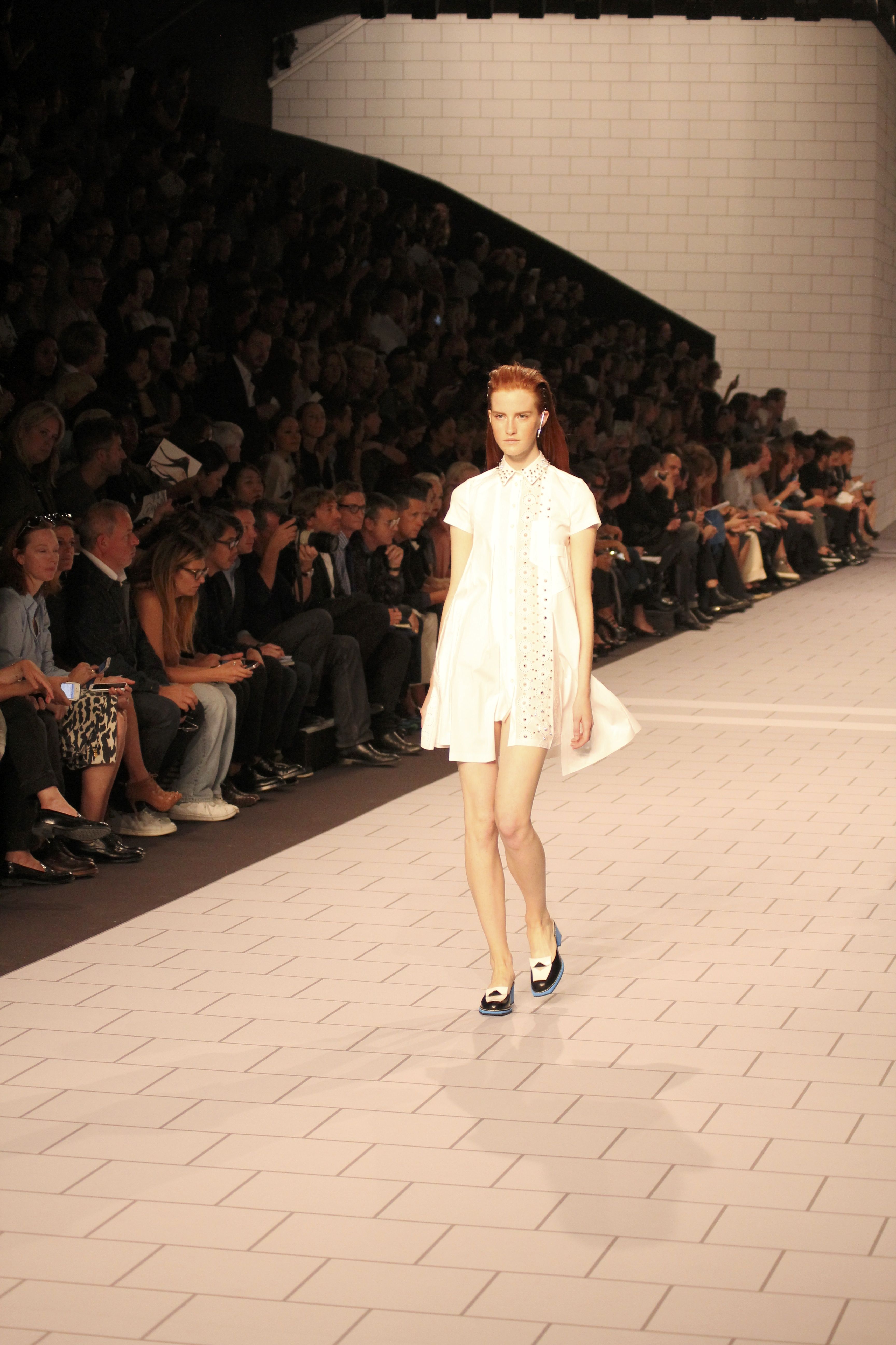 Viktor & Rolf présentaient aux tuileries leurs collections printemps été 2014. Une collection inspirée par les uniformes. Empreinte de rigueur qu’elle oppose à la rébellion, cette collection faisait défiler des jeunes écolières punk au son de « the wall » des pink floyd. Vestes preppy, jupes kilts et jupes culottes, blasers, ecussons en gris, noirs, bleux foncés. Quel show !