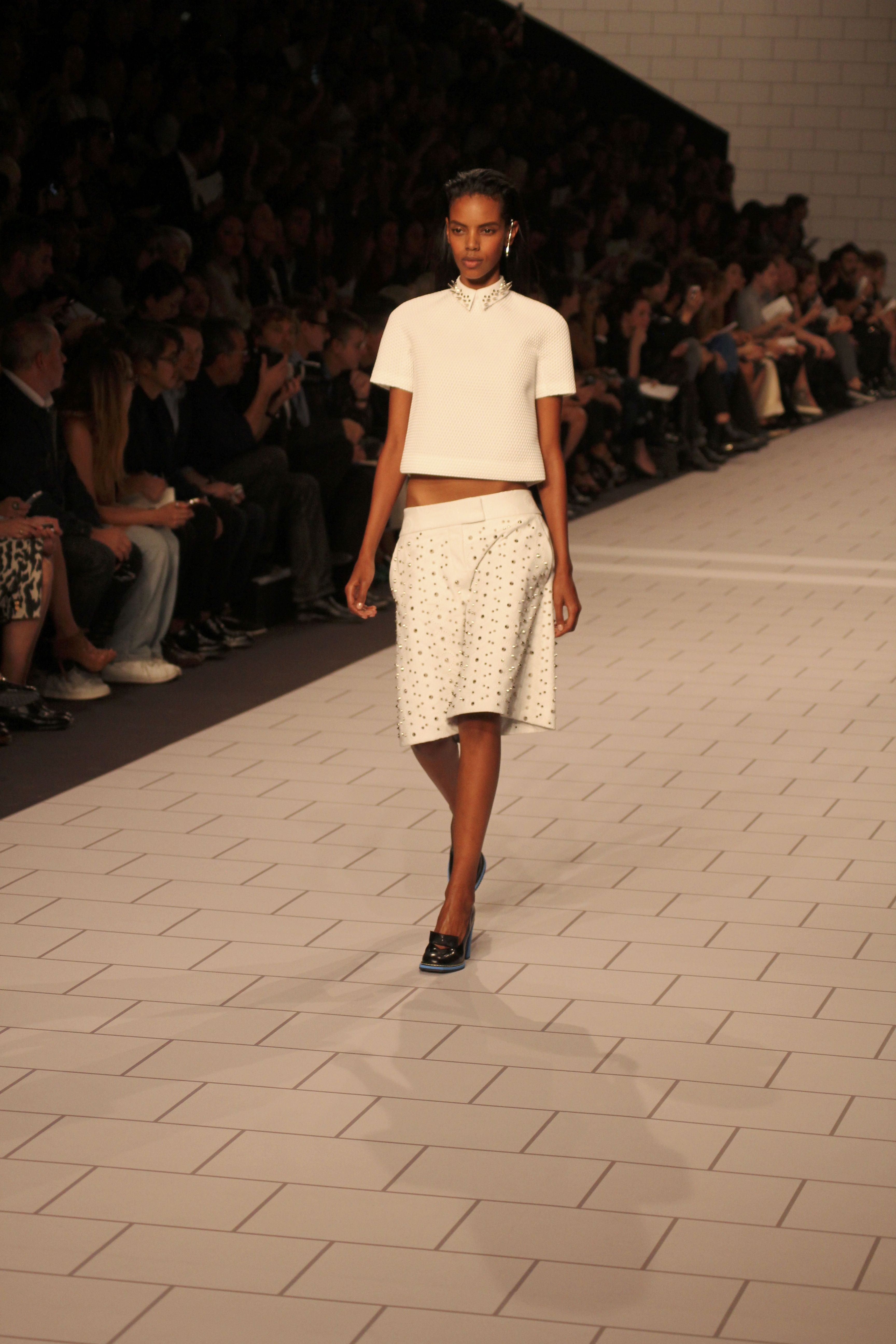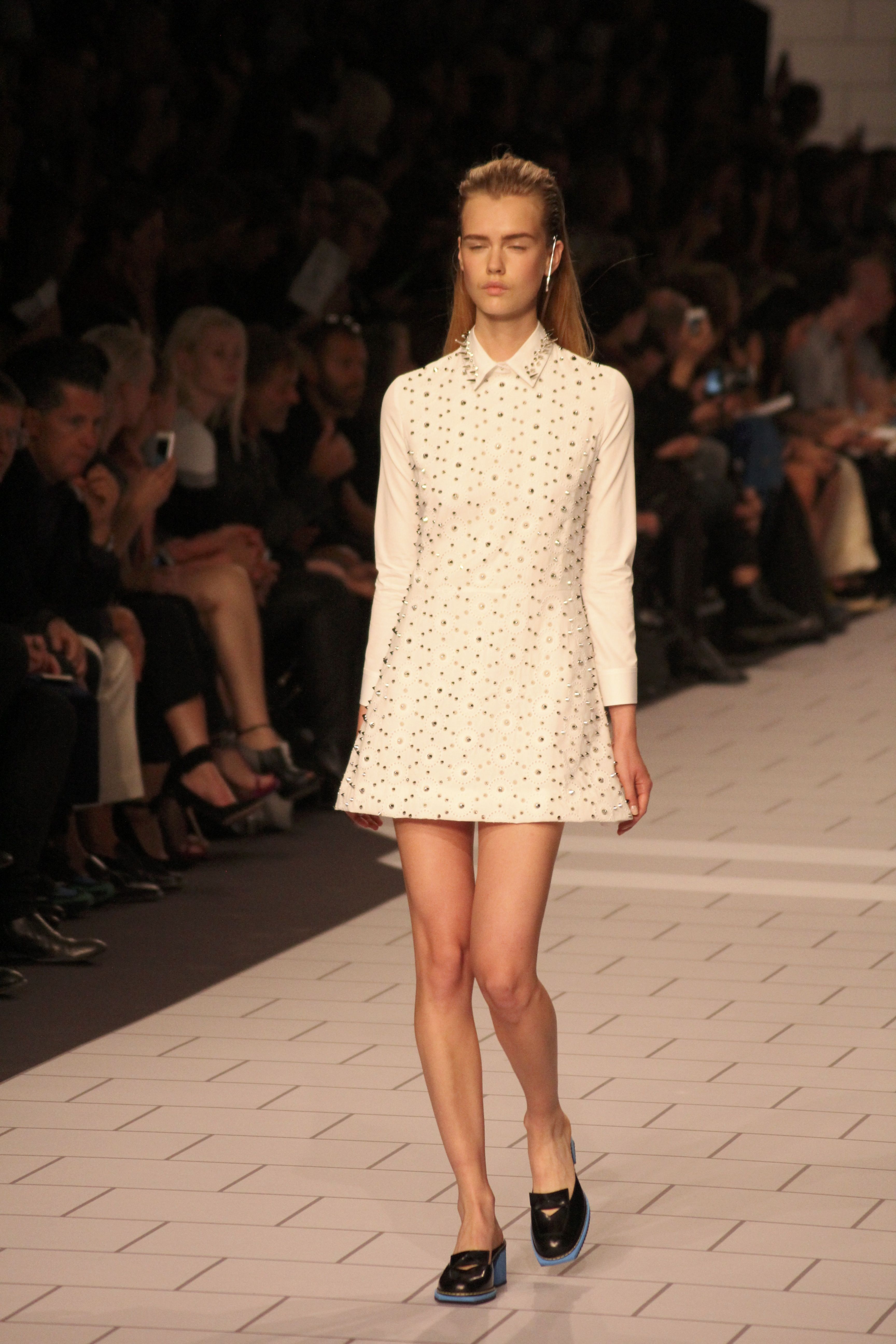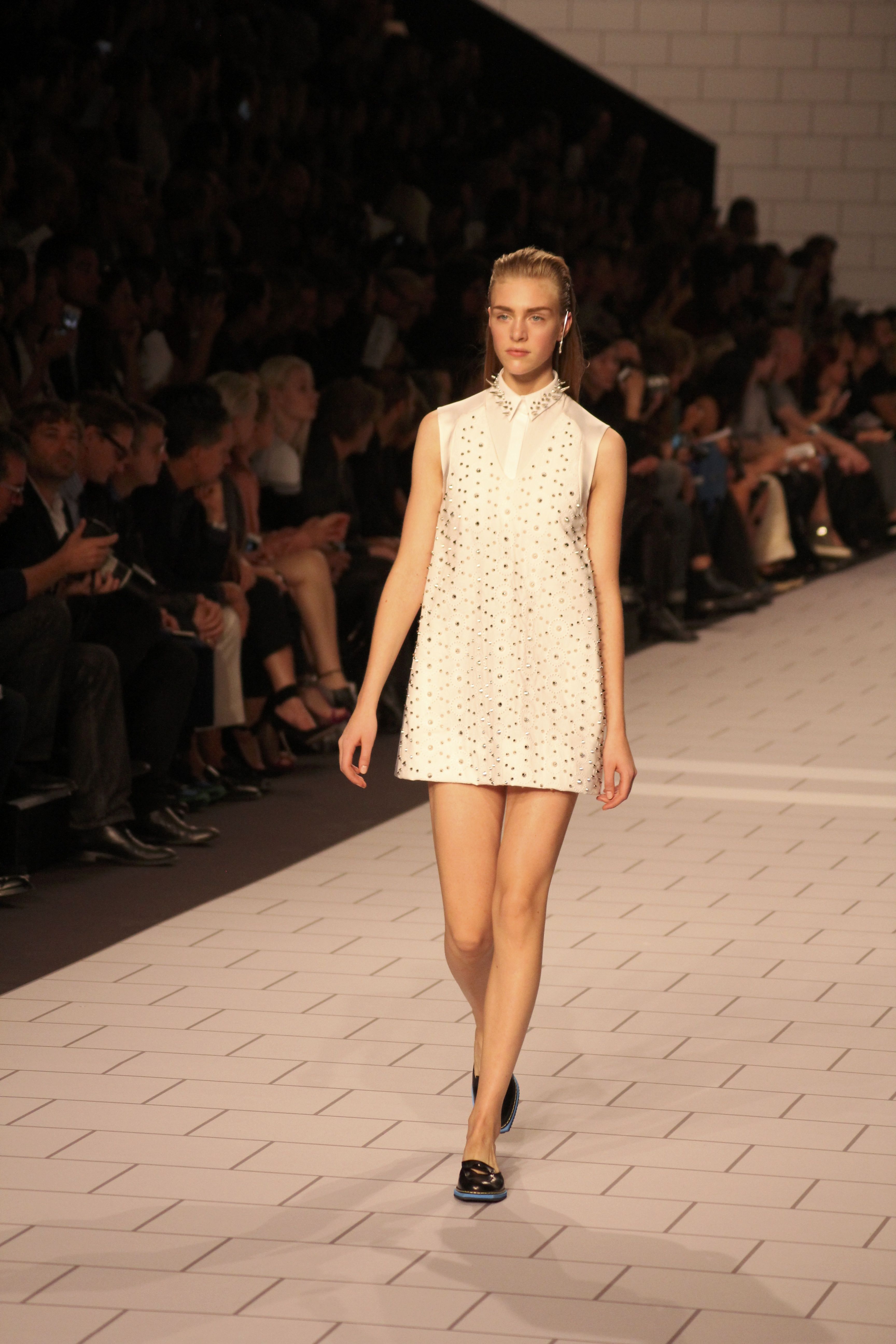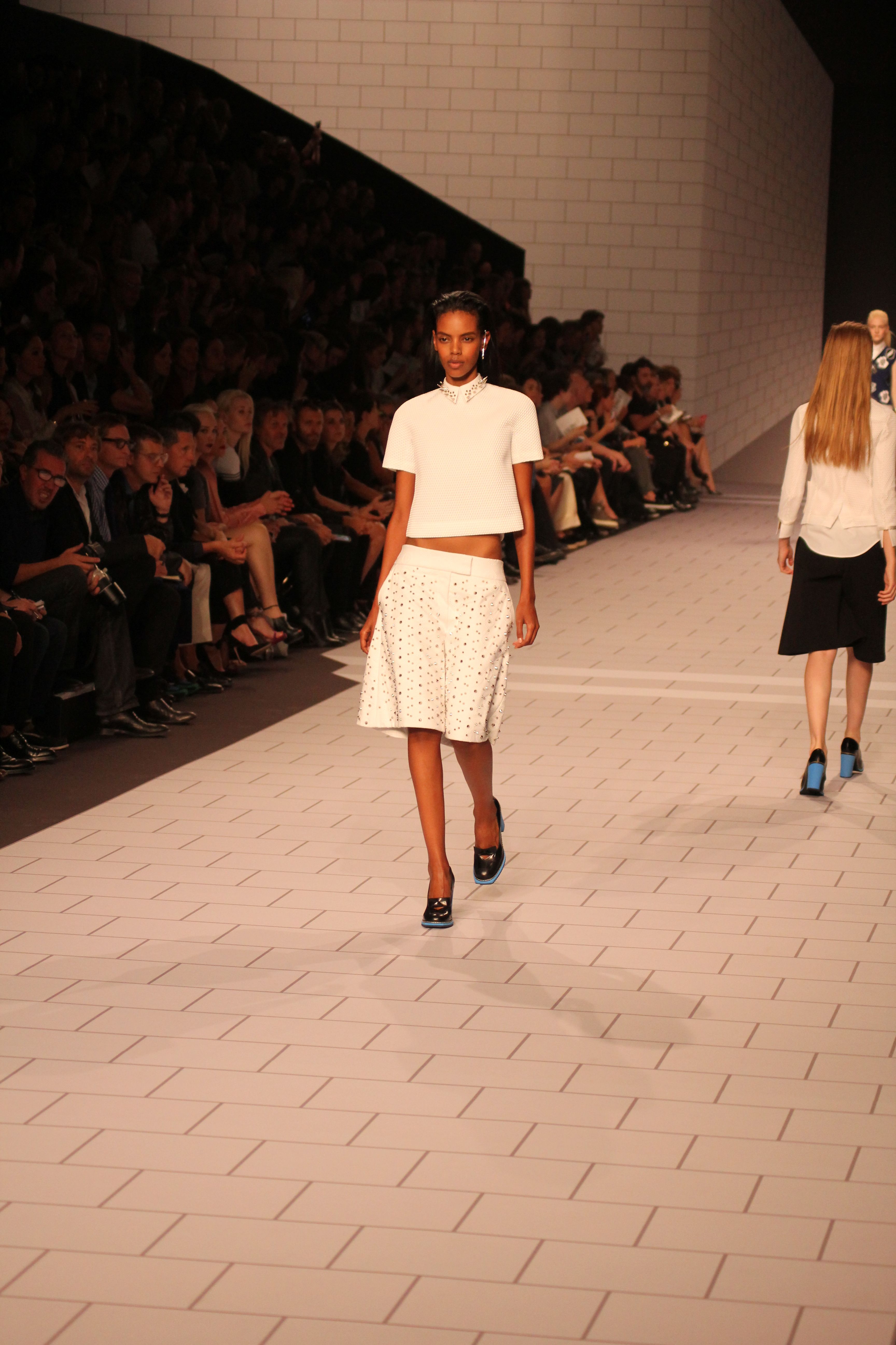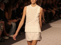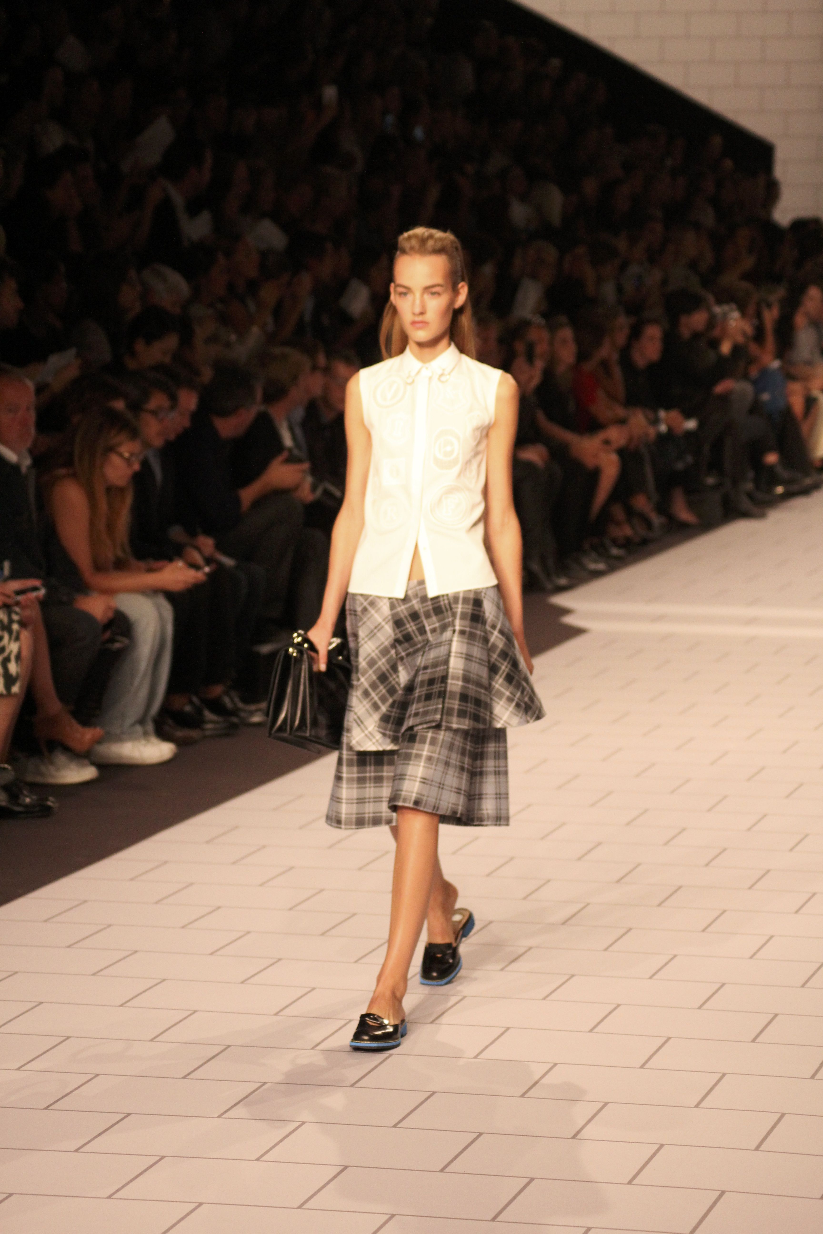 Viktor & Rolf présentaient aux tuileries leurs collections printemps été 2014. Une collection inspirée par les uniformes. Empreinte de rigueur qu’elle oppose à la rébellion, cette collection faisait défiler des jeunes écolières punk au son de « the wall » des pink floyd. Vestes preppy, jupes kilts et jupes culottes, blasers, ecussons en gris, noirs, bleux foncés. Quel show !
