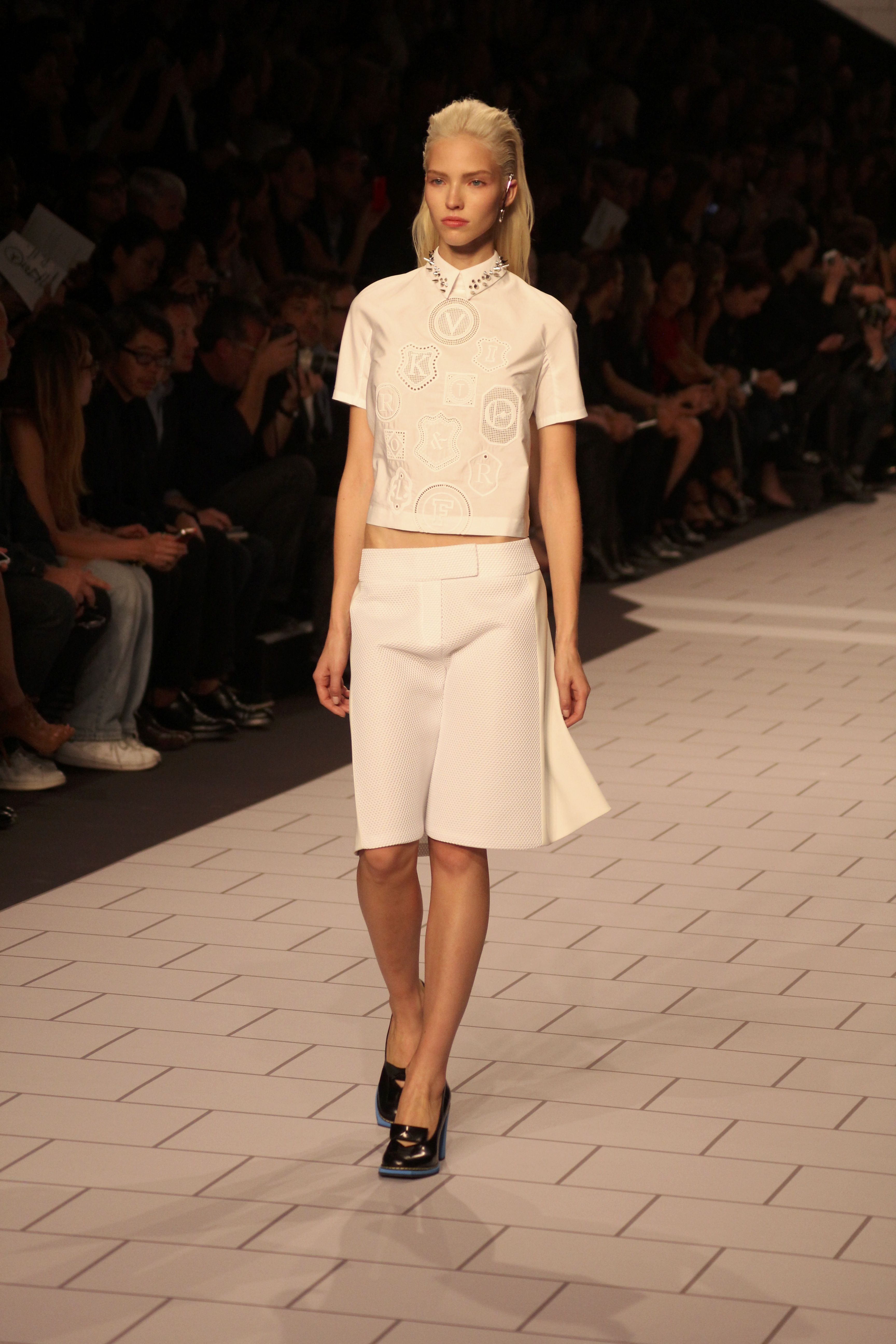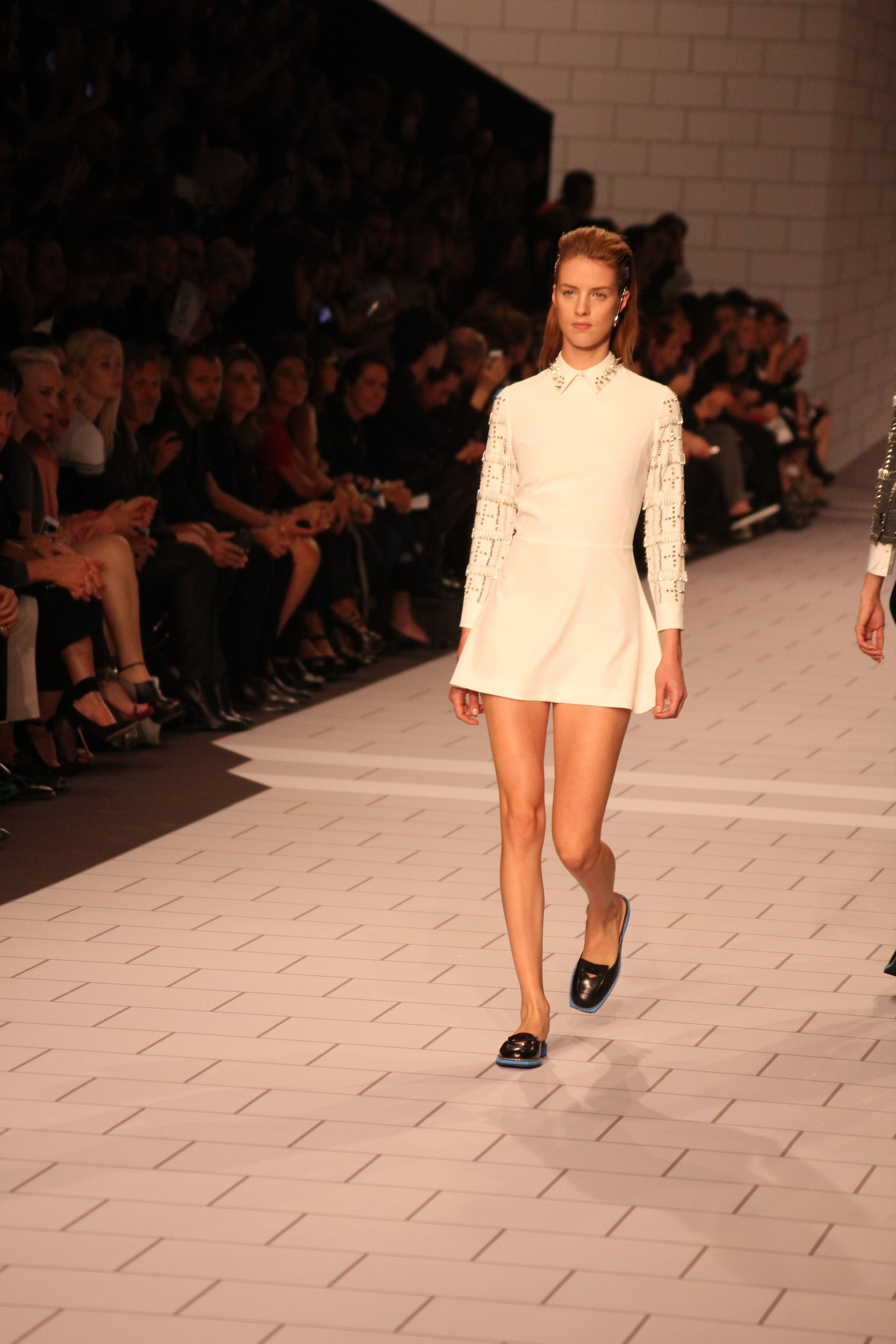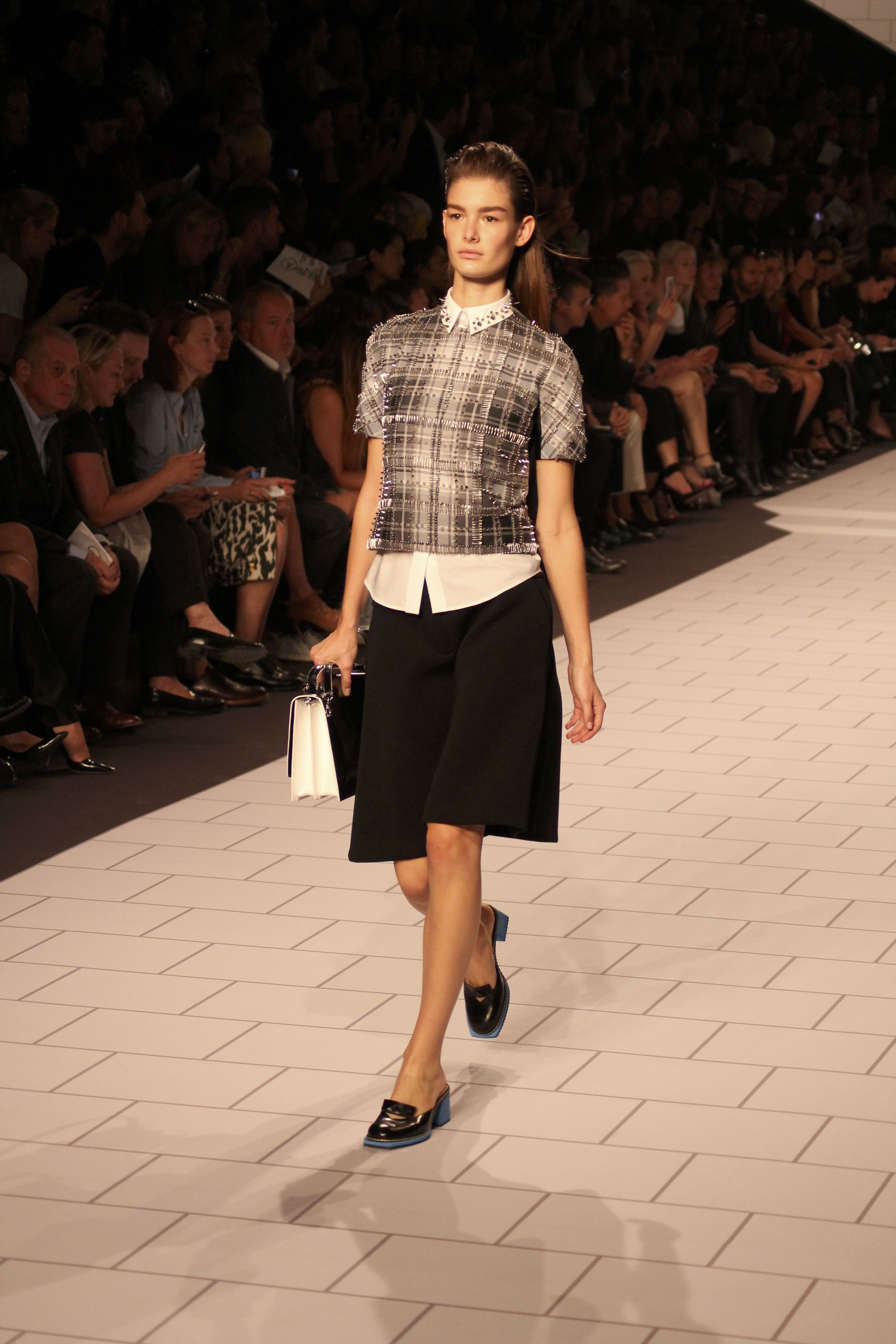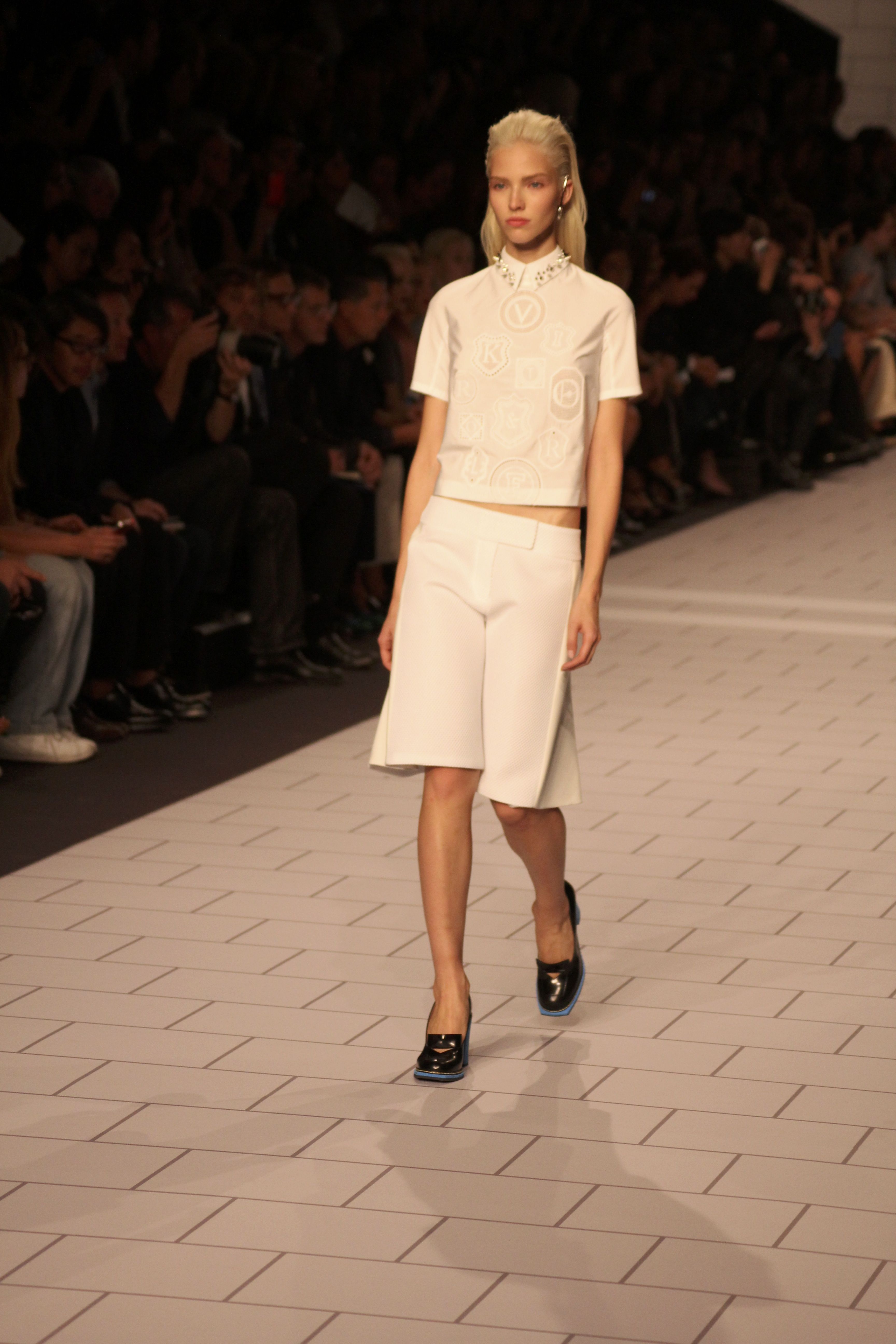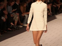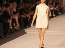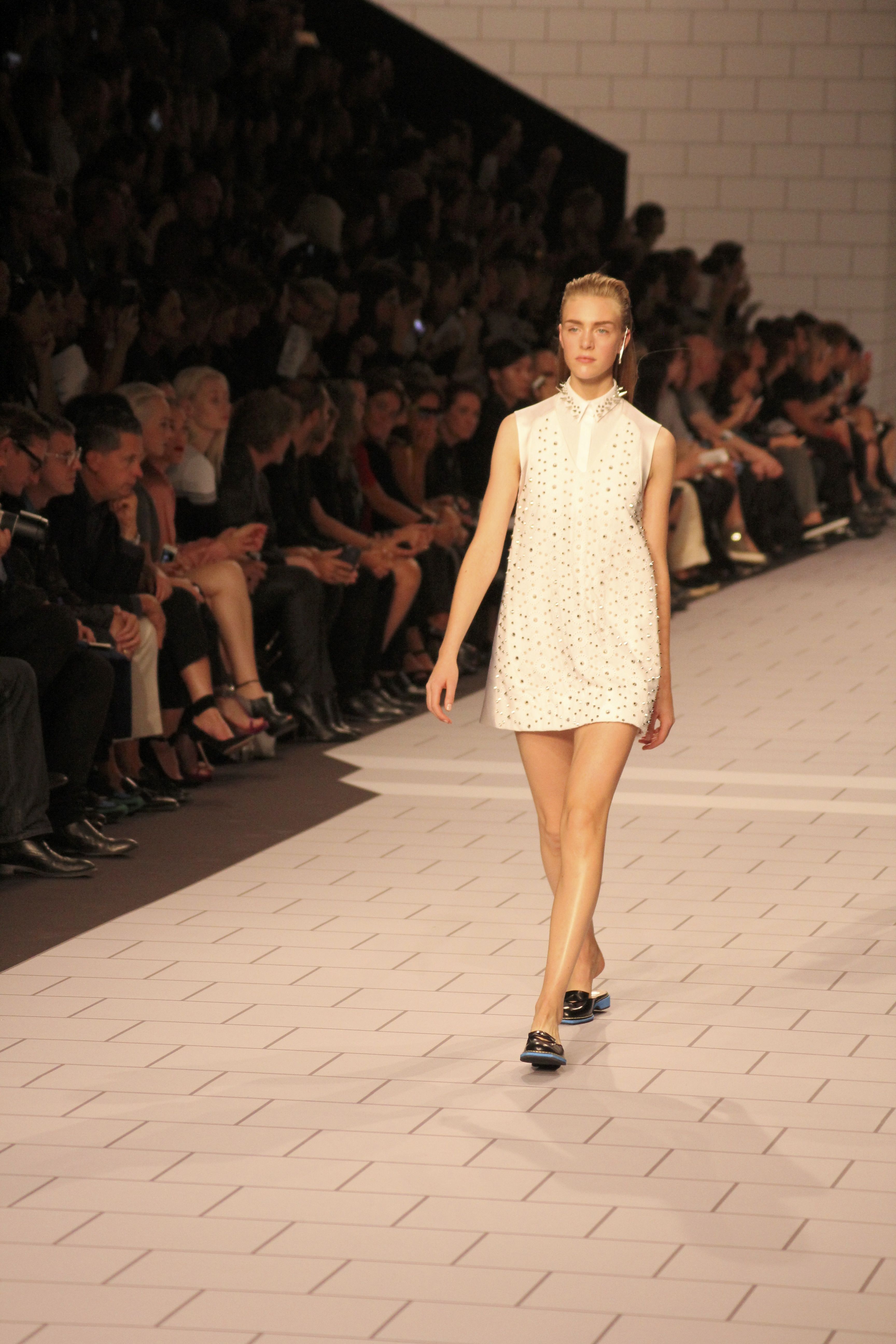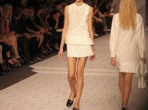 Viktor & Rolf présentaient aux tuileries leurs collections printemps été 2014. Une collection inspirée par les uniformes. Empreinte de rigueur qu’elle oppose à la rébellion, cette collection faisait défiler des jeunes écolières punk au son de « the wall » des pink floyd. Vestes preppy, jupes kilts et jupes culottes, blasers, ecussons en gris, noirs, bleux foncés. Quel show !