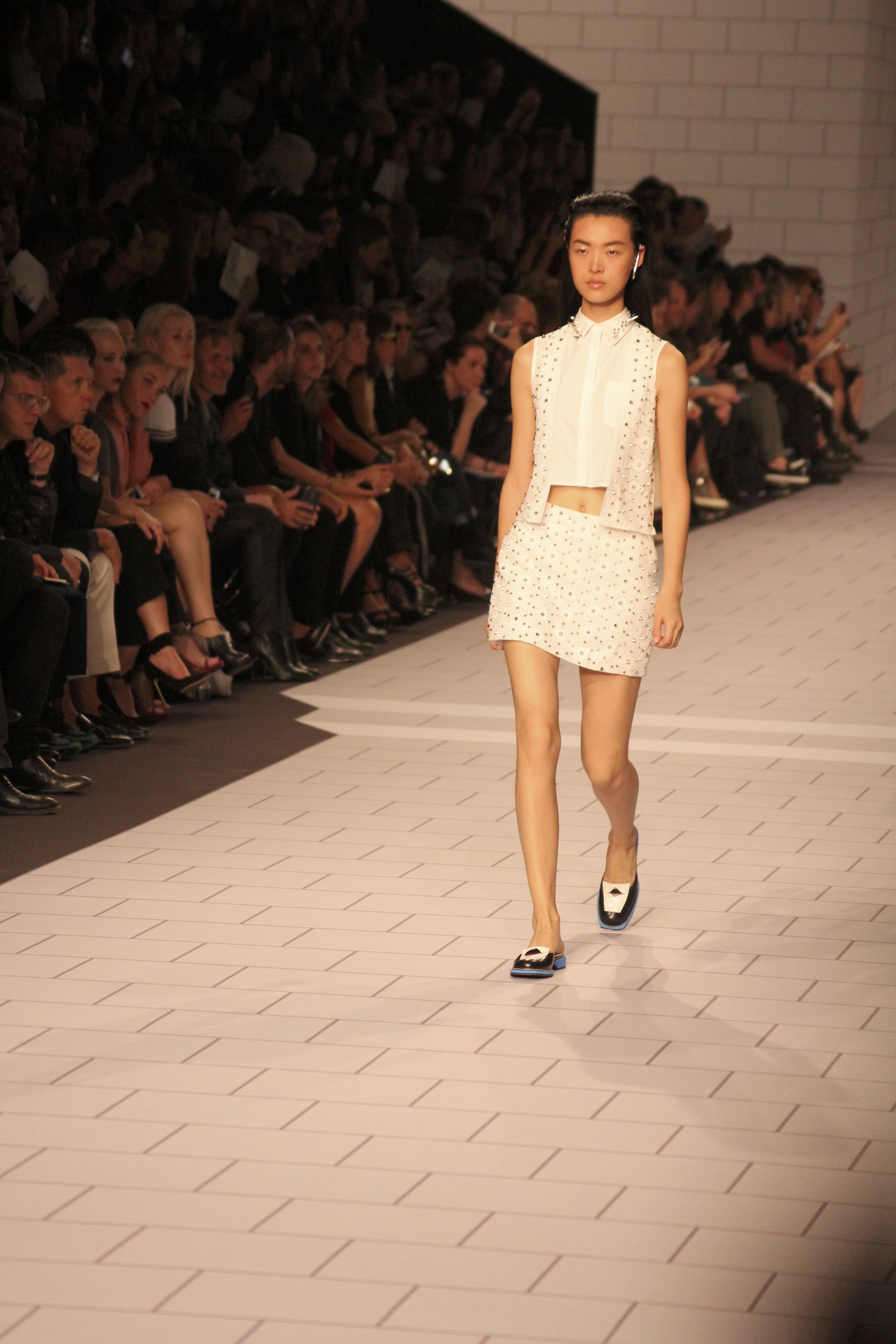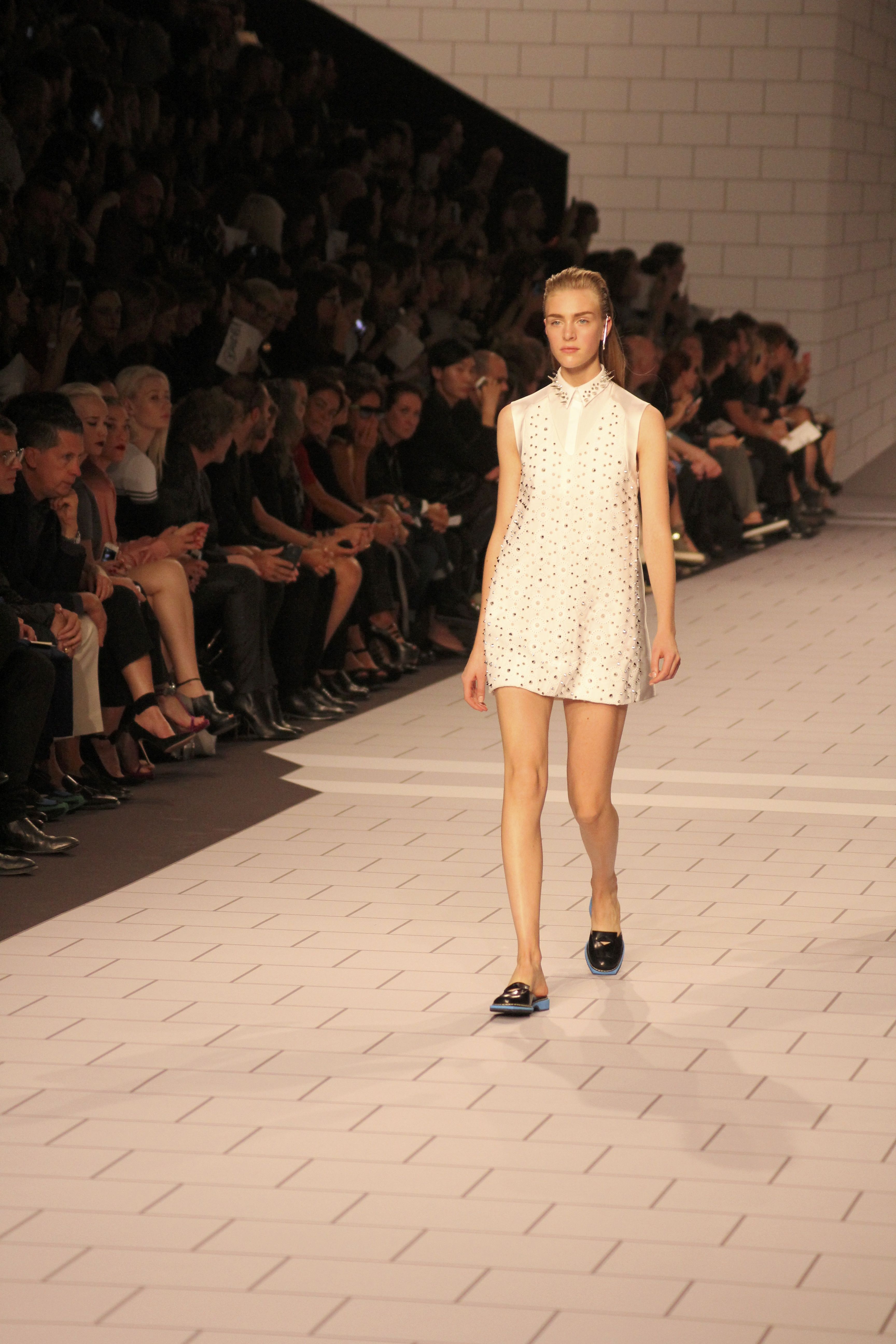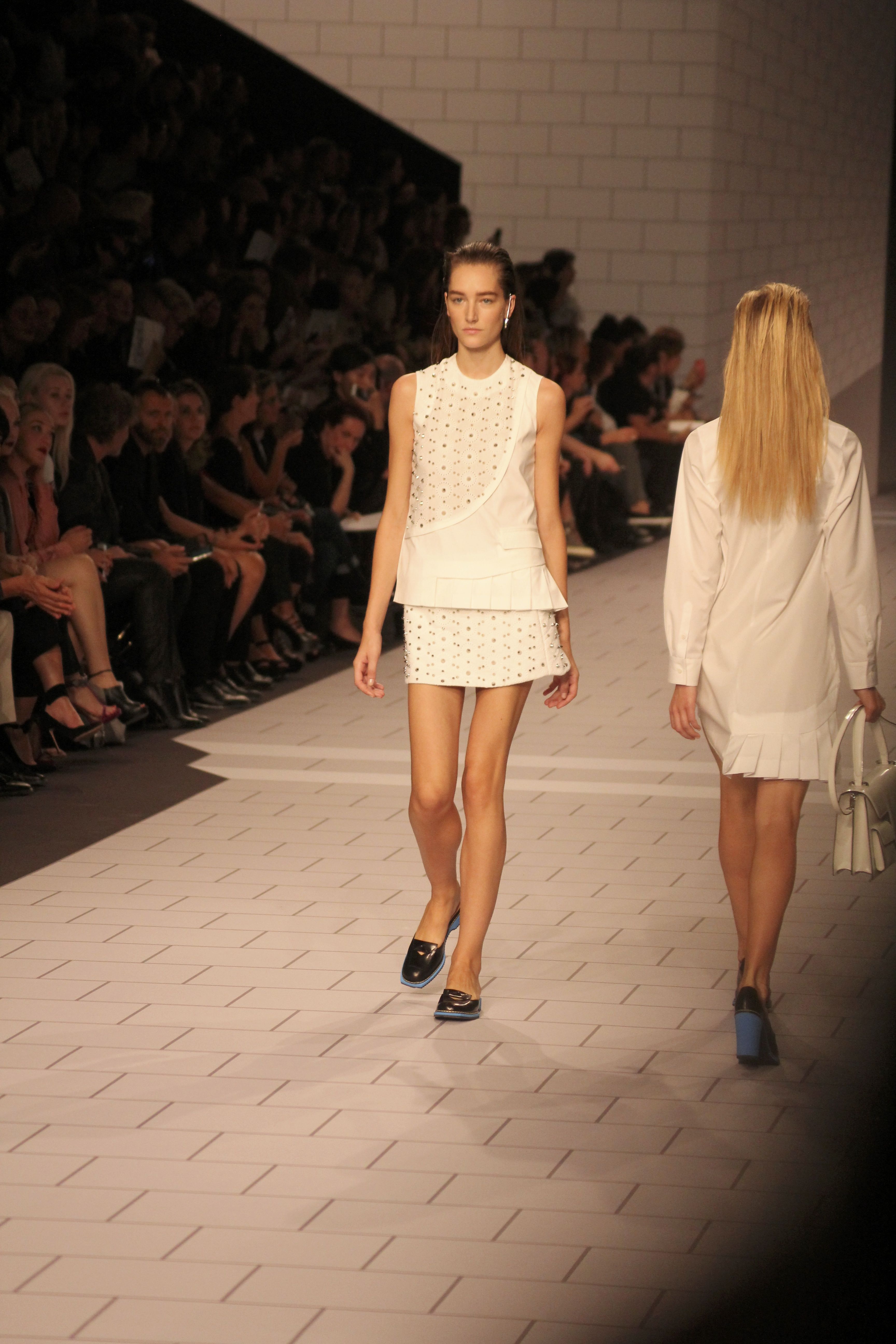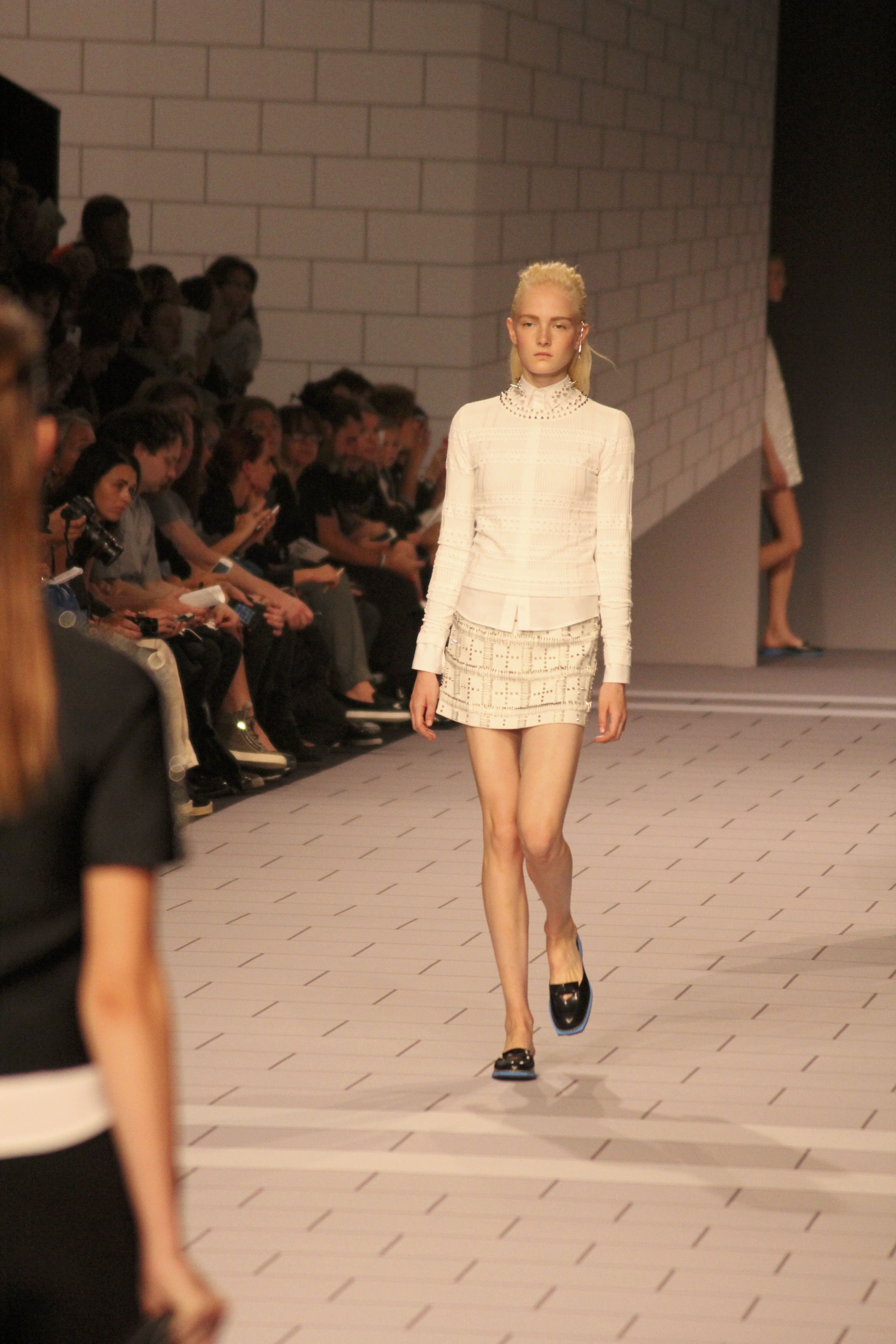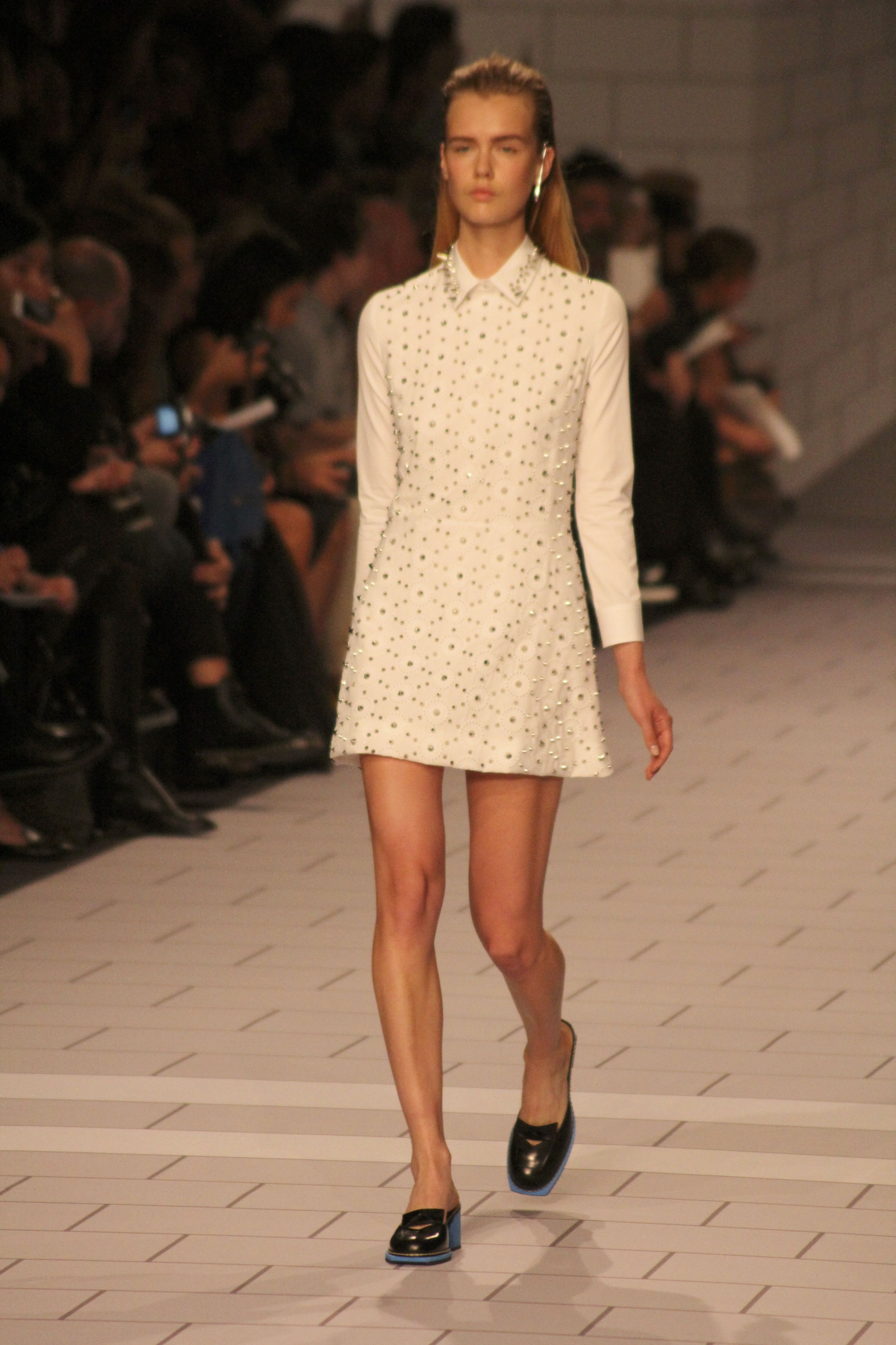 Viktor & Rolf présentaient aux tuileries leurs collections printemps été 2014. Une collection inspirée par les uniformes. Empreinte de rigueur qu’elle oppose à la rébellion, cette collection faisait défiler des jeunes écolières punk au son de « the wall » des pink floyd. Vestes preppy, jupes kilts et jupes culottes, blasers, ecussons en gris, noirs, bleux foncés. Quel show !