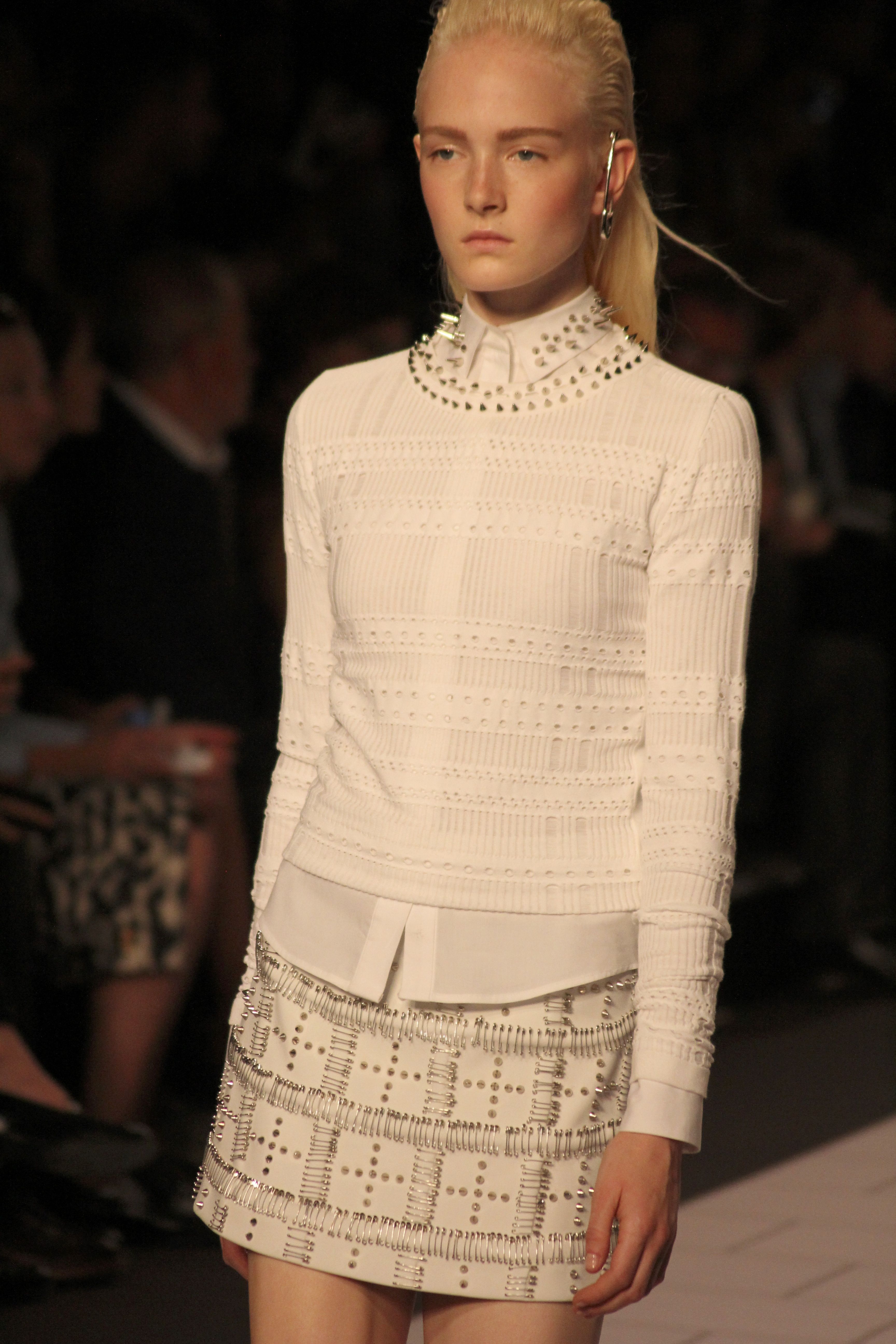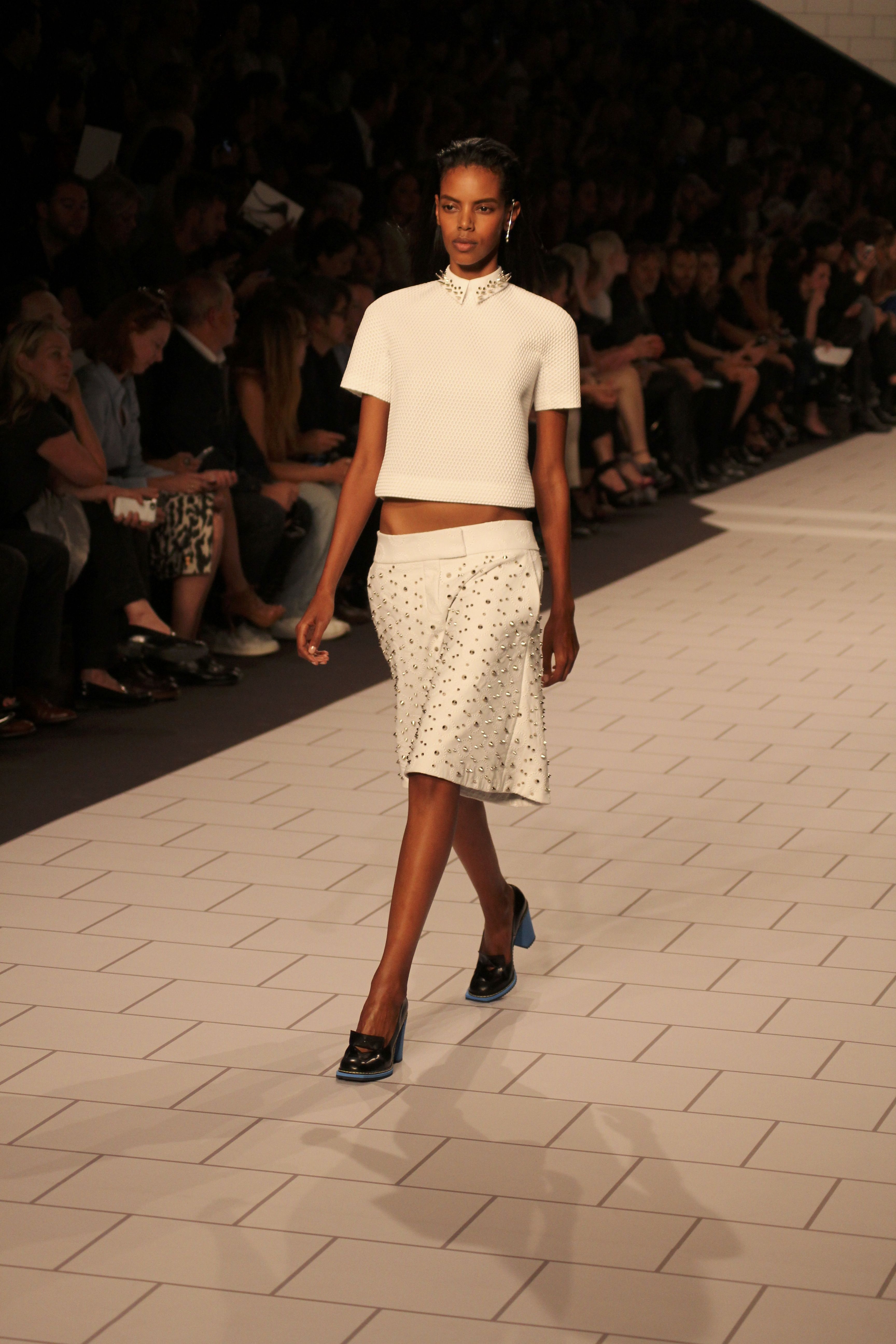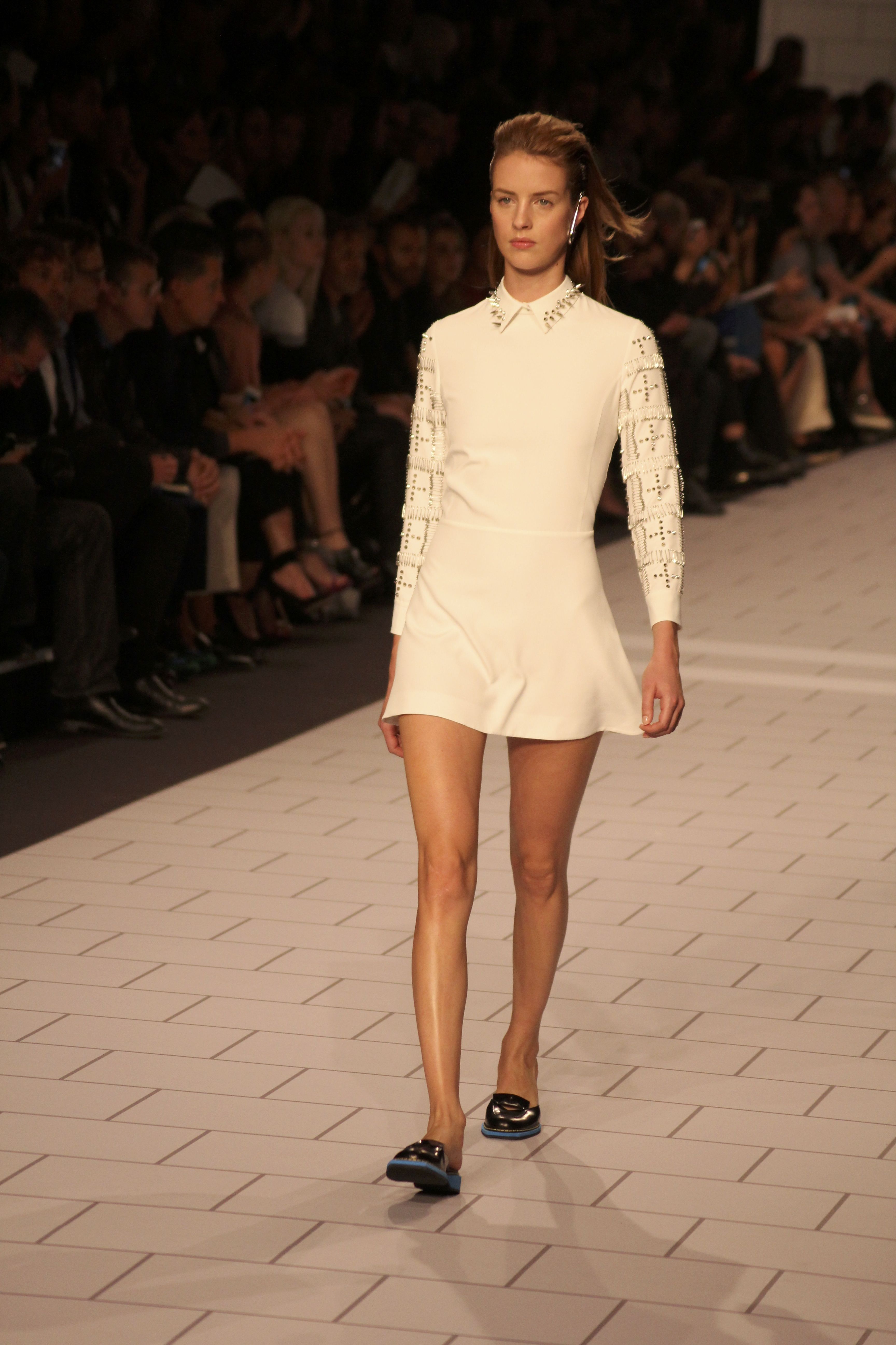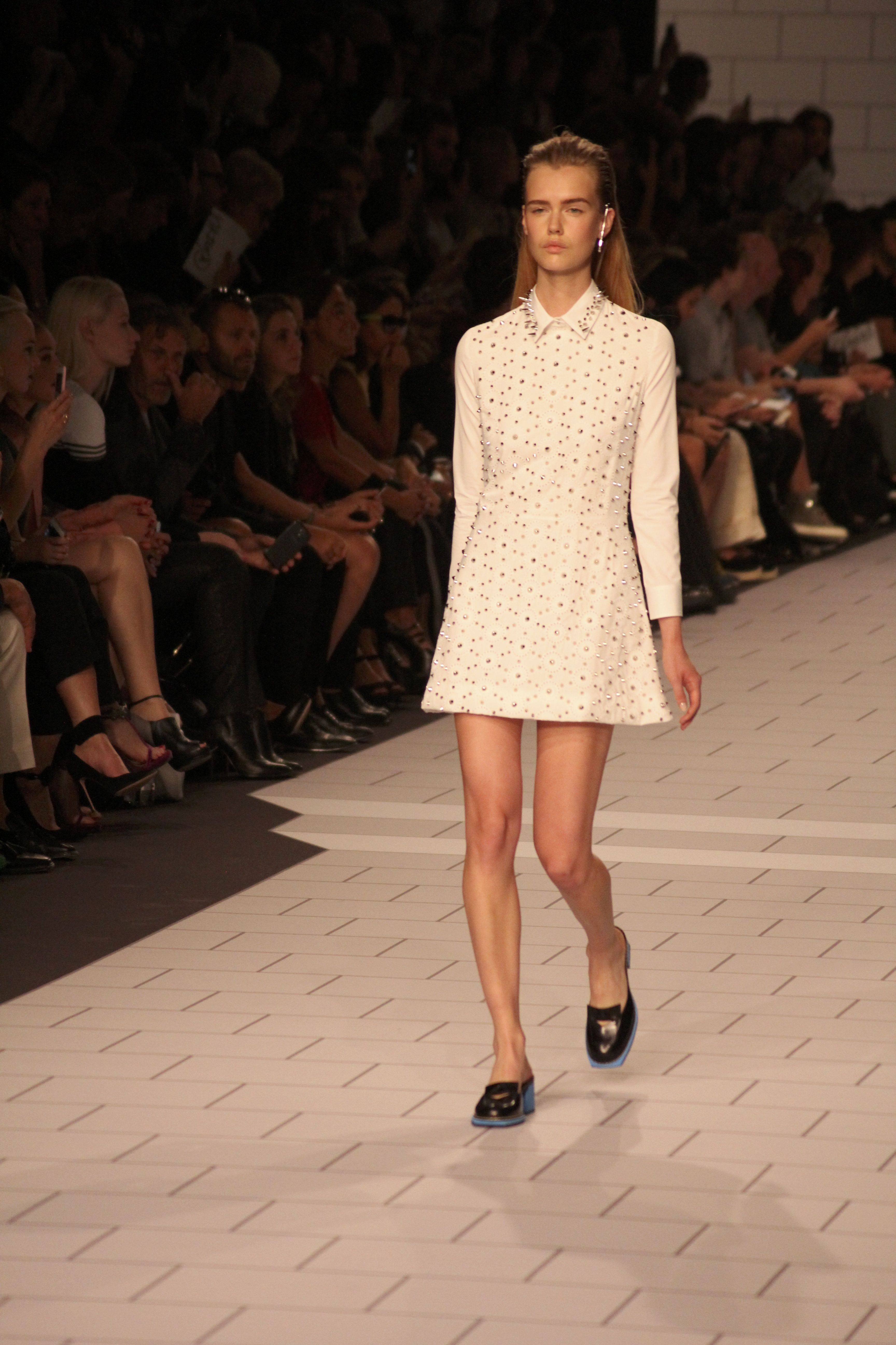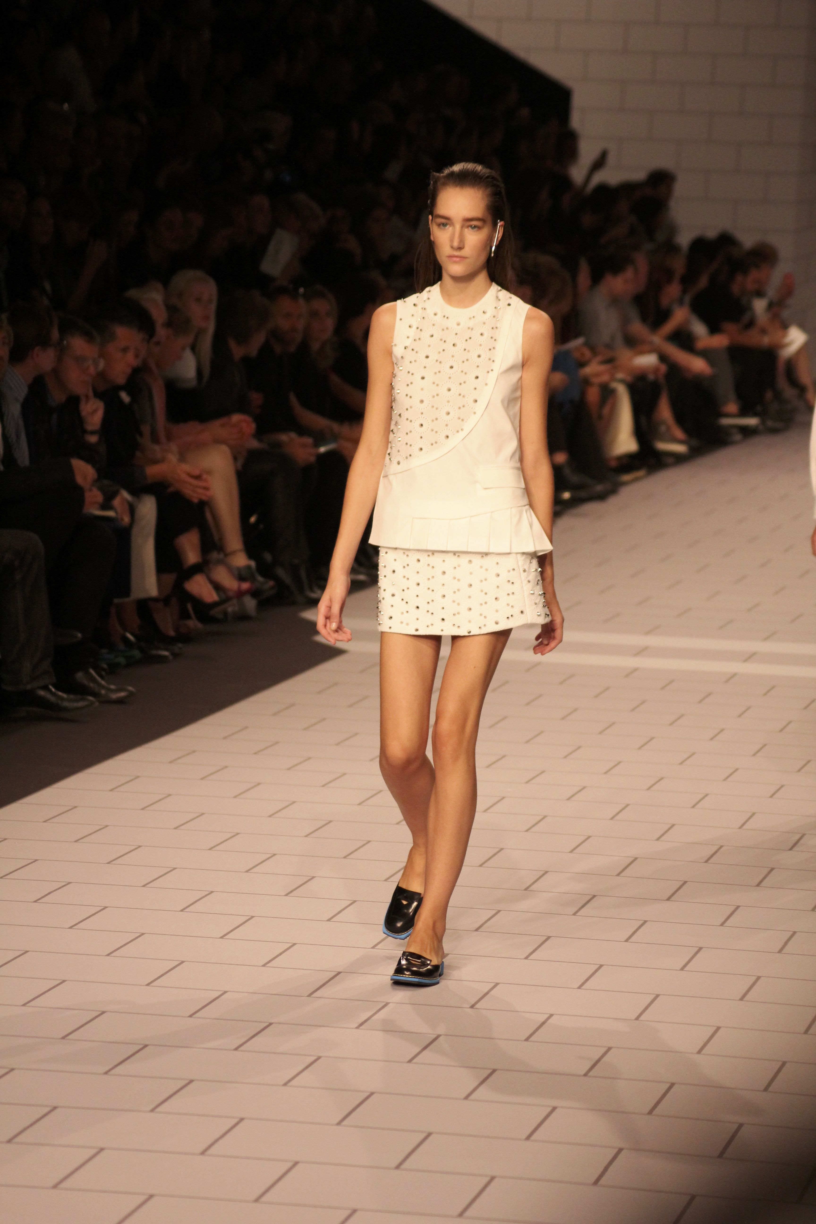 Viktor & Rolf présentaient aux tuileries leurs collections printemps été 2014. Une collection inspirée par les uniformes. Empreinte de rigueur qu’elle oppose à la rébellion, cette collection faisait défiler des jeunes écolières punk au son de « the wall » des pink floyd. Vestes preppy, jupes kilts et jupes culottes, blasers, ecussons en gris, noirs, bleux foncés. Quel show !