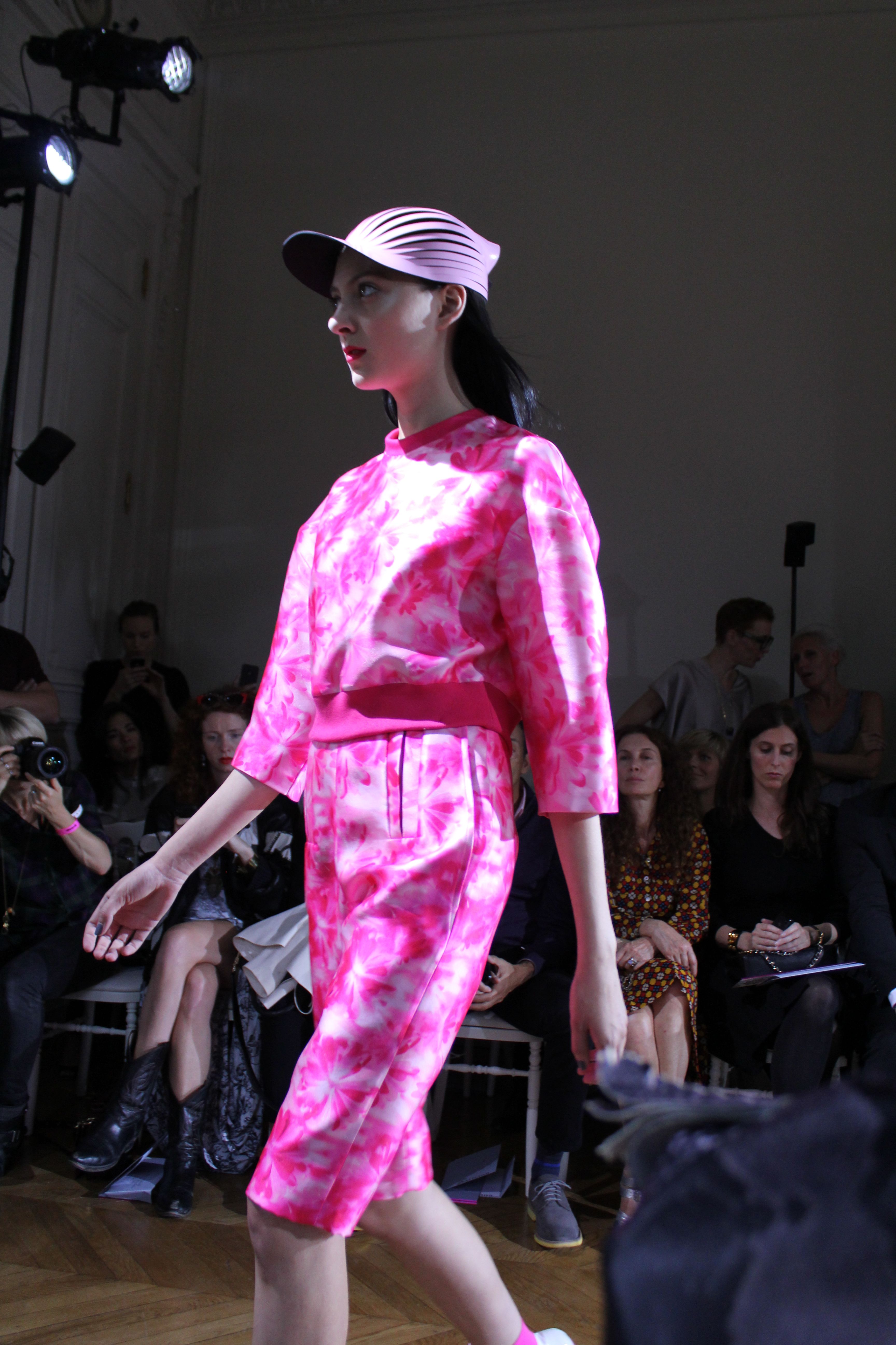 John Galliano Paris nous présente une collection printemps été 2014 néo-futuriste, pop et urbaine. Des silhouettes sculptées et chapeautées, urbaines, acides et colorées. La femme Galliano ne passe pas inaperçue.