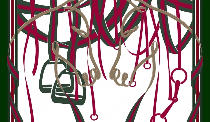 Foulard_Gucci_Paris_Masters_2013-1383587496Mesurant 90 cm x 90 cm, le dessin unique de ce foulard associe les icones Gucci provenant de l’héritage équestre de la Maison tels que l’étrier, le mors et la bande Web vert-rouge-vert. La beauté de cette création unique est mise en évidence par l’impeccable qualité du travail artisanal. Le modèle a été entièrement réalisé à la main en utilisant la technique de l’aquarelle. Chaque pièce a ensuite été imprimée manuellement en recourant à une technique sérigraphique. Les bords en serge de soie fine ont également été finis à la main en utilisant une technique italienne.