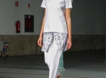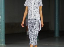 […] Carlos Couto présentait sa collection Warp inspirée par l’oeuvre de Roy Lichtenstein. Il met en valeur la technique du pointillisme et transforme en figures de nombreux points en utilisant les imprimés et les lasers. […]