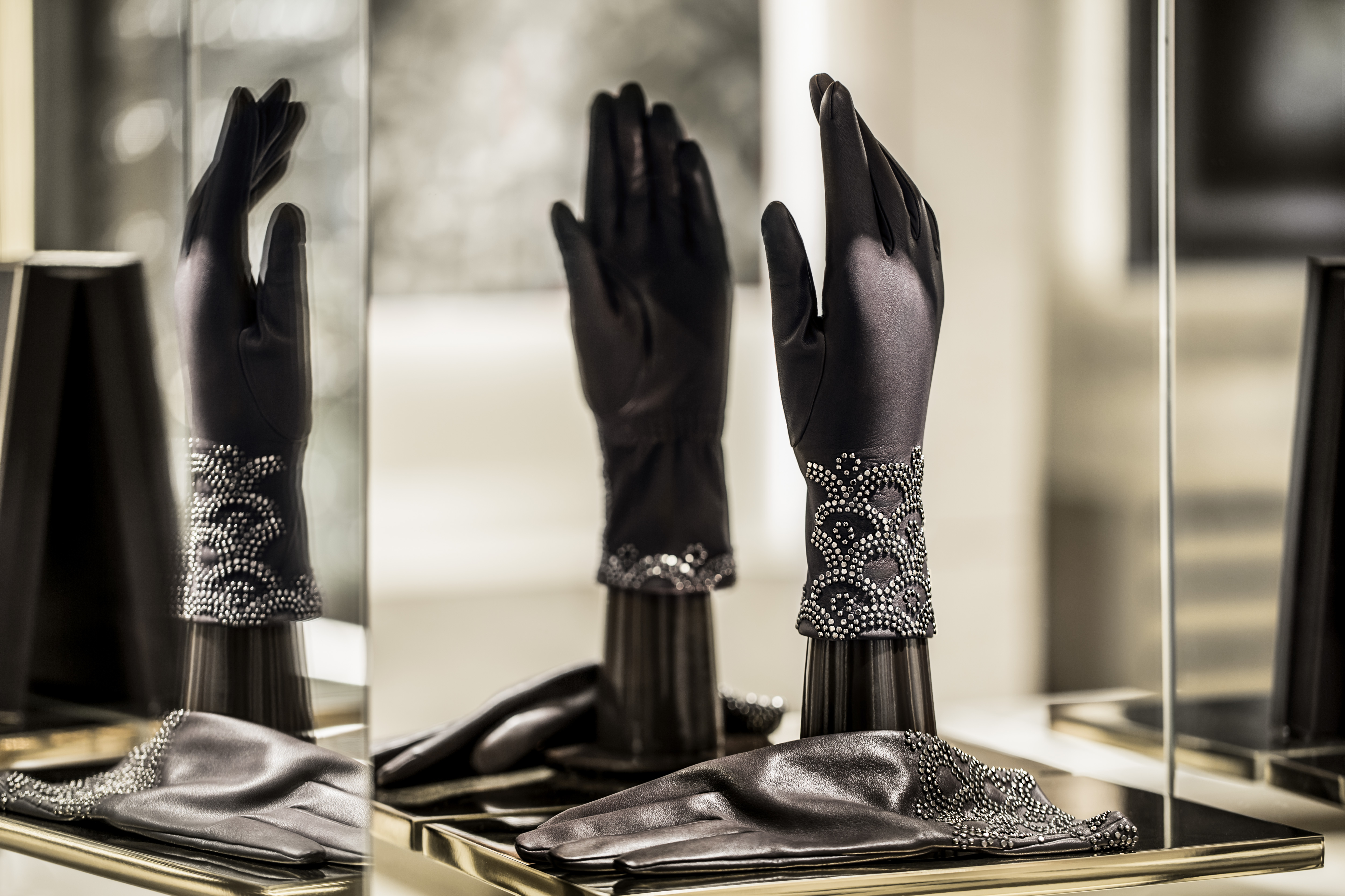 Pour l’accompagner dans cette nouvelle aventure, Guerlain s’est associé à une Maison française au savoir-faire traditionnel, Agnelle, qui possède les mêmes valeurs d’excellence et de création et qui, tout comme Guerlain, a reçu le label d’Entreprise du Patrimoine Vivant. Pour les gants Guerlain, c’est la plus belle, la plus souple des peaux, un agneau au toucher naturel et sensuel, qui a été sélectionnée. Tous sont doublés de soie, cousue main. Un travail de haute couture que l’on devine sans le voir et que viennent embellir quelques gouttes de parfum. Faisant corps avec la main, le parfum devient voile sur la peau. Objet de désir, main convoitée, doigts effleurés, le parfum se fait trace, sillage, présence échappée mais conservée sur ce gant oublié ou offert en inoubliable souvenir.