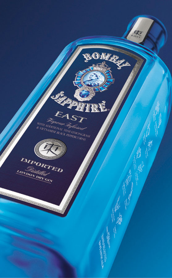Enfin disponible en France, le Bombay Sapphire East contient deux nouvelles épices, la citronnelle de Thaïlande et le poivre noir du Vietnam ; des ingrédients récoltés à la main qui s’ajoutent aux dix épices originelles de Bombay Sapphire.