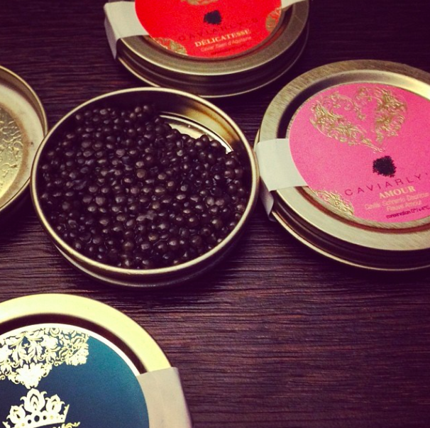 Jeudi dernier, j’ai eu la chance de participer à un atelier de dégustation de caviars Caviarly’s au bar à vin Wine by One rue de Marignan. Accompagné de vin blanc, Caviarly’s nous a fait découvrir les quatres sortes de caviar proposés à la vente sur son site internet ainsi que dans une sélection d’épiceries fines. Face à chacun, quatre boîtes de caviars à déguster avec une cuillère en nacre. Caviarly’s met définitivement un coup de jeune à ce produit, qui peut paraître un peu old school, avec un packaging flashy ainsi que des noms (Impérial, Délicatesse, Amour et Authentique) poétiques et plus faciles à retenir qu’un terme plus technique.