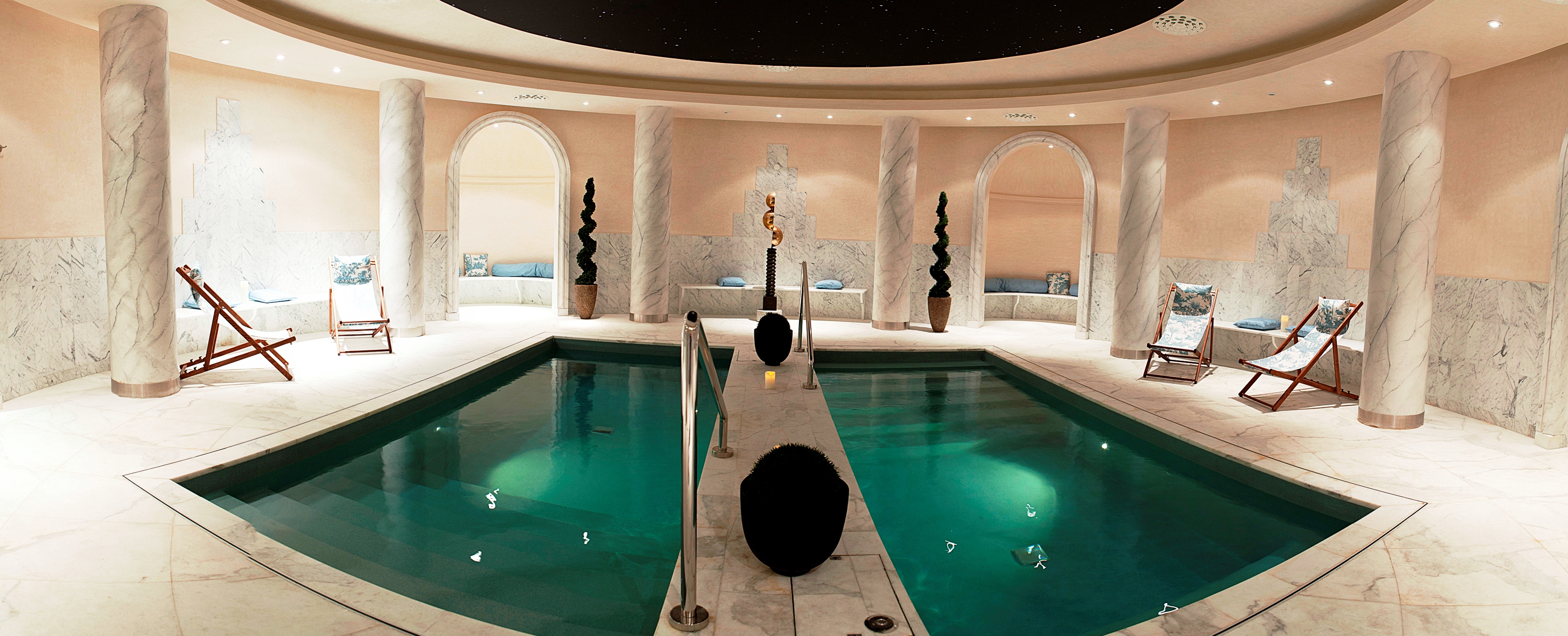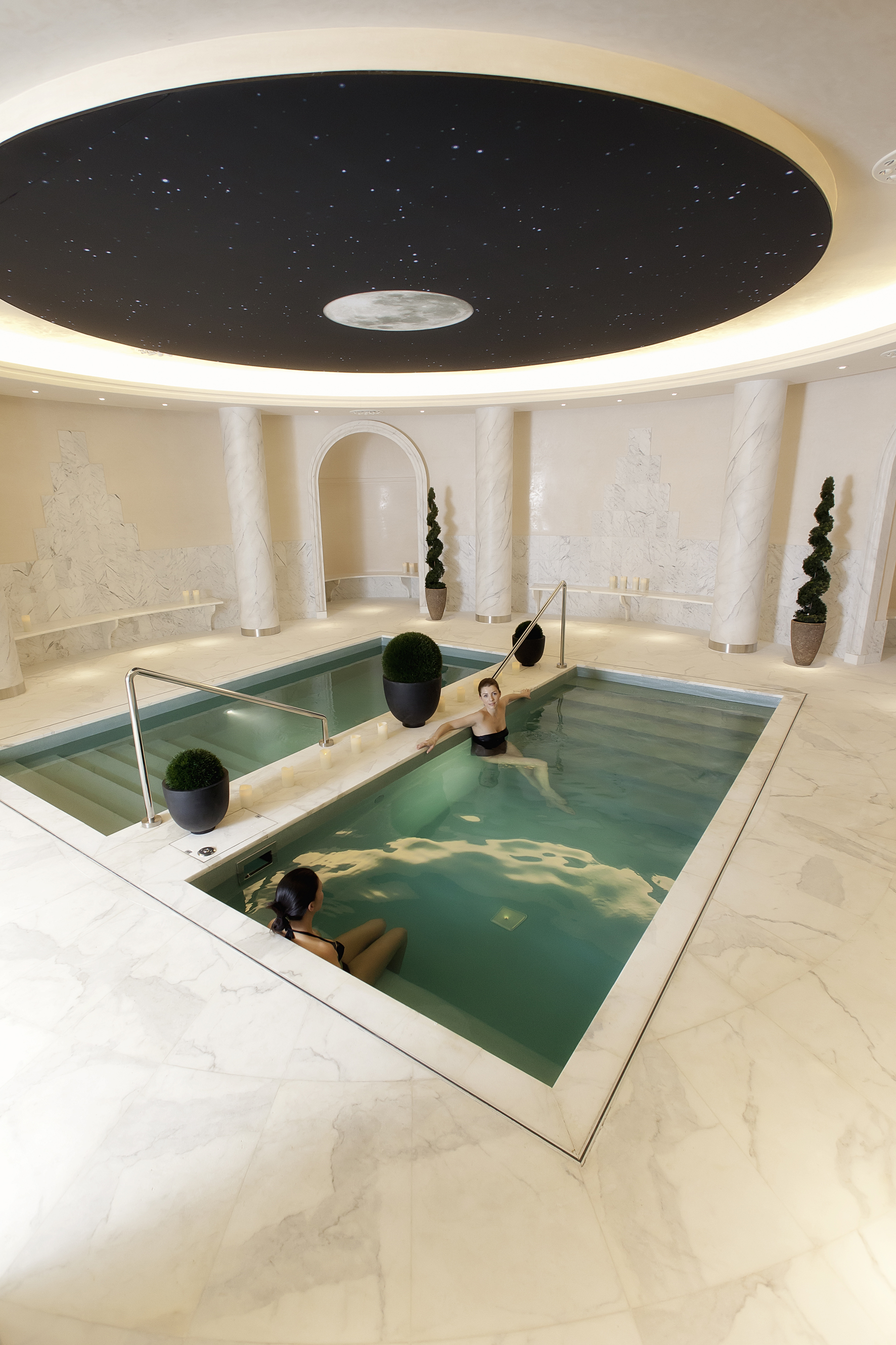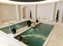 Entre les colonnes anciennes, les bassins, le sauna et le hammam vous préparent à un massage profond et relaxant dans une des 12 cabines de soin du lieu. Vous continuez ensuite votre voyage dans la tisanerie puis dans la salle de détente pour profiter pleinement de cette luxueuse parenthèse.