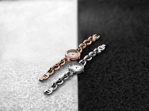 Pour les montres, le nude s’associe au noir, au blanc et aux tons argentés permettant de raconter une histoire audacieuse et élégante autour de la féminité.