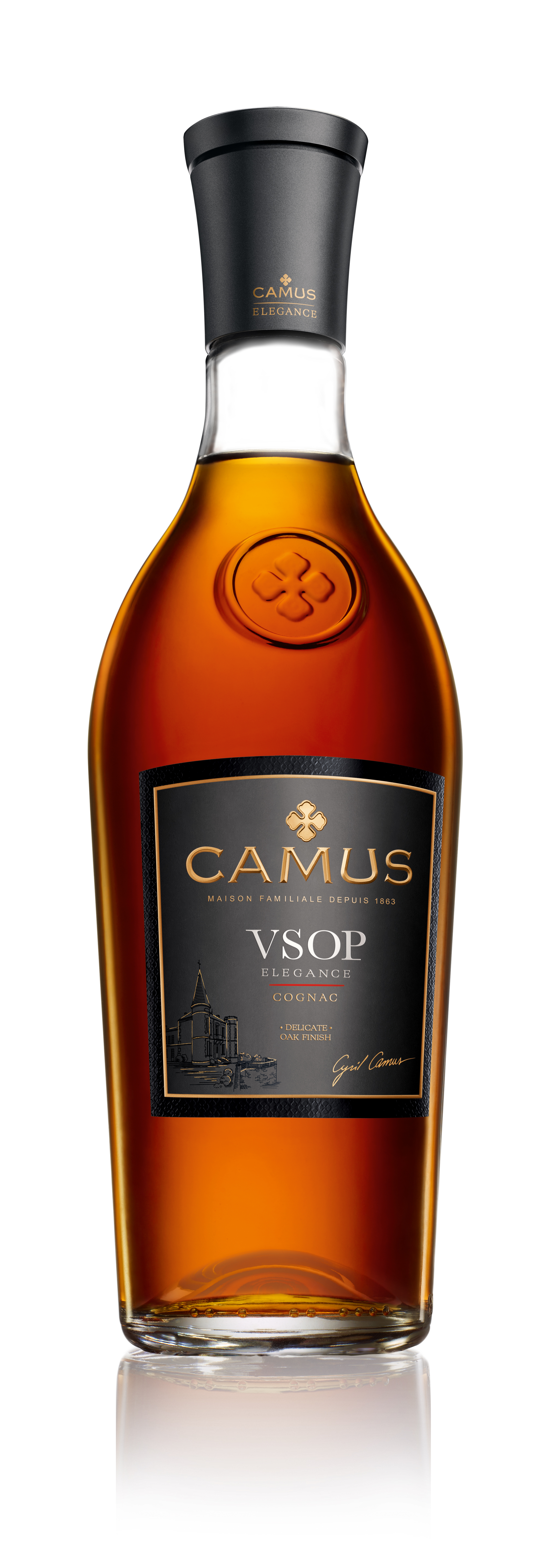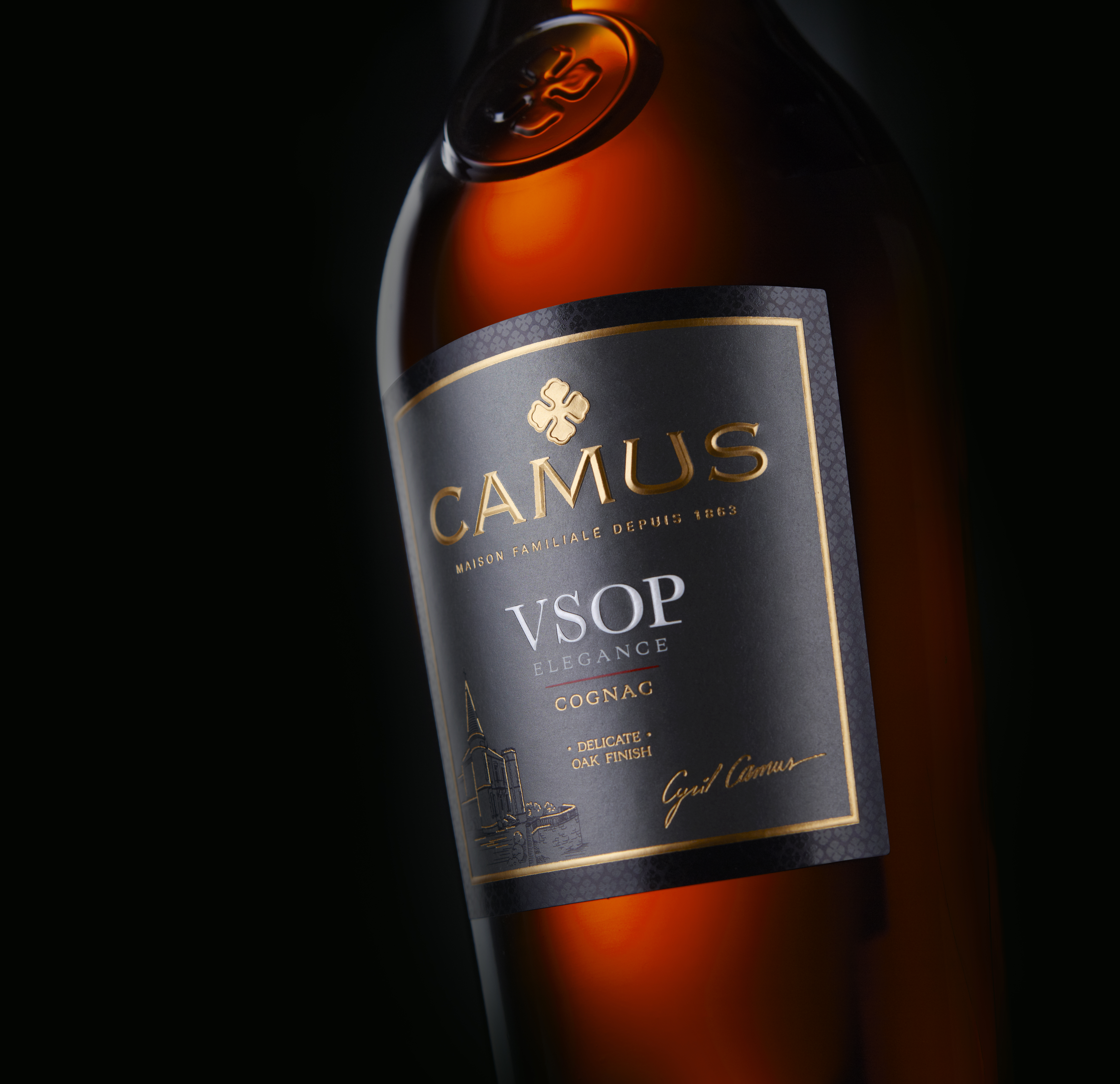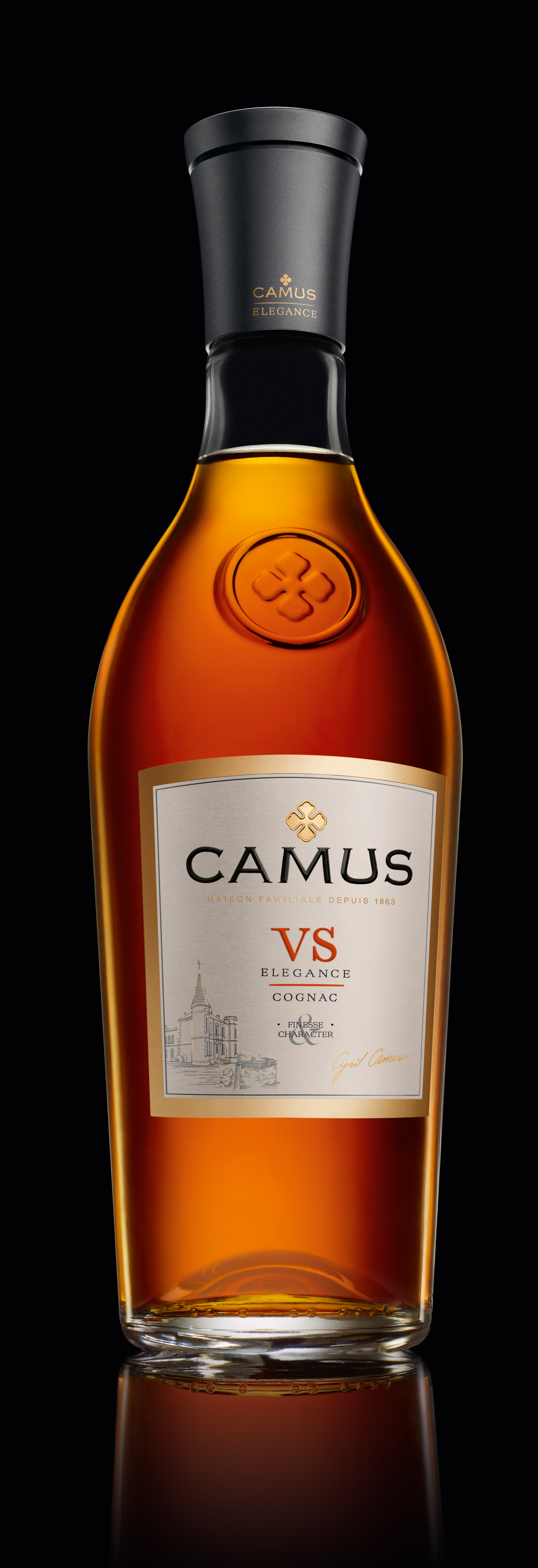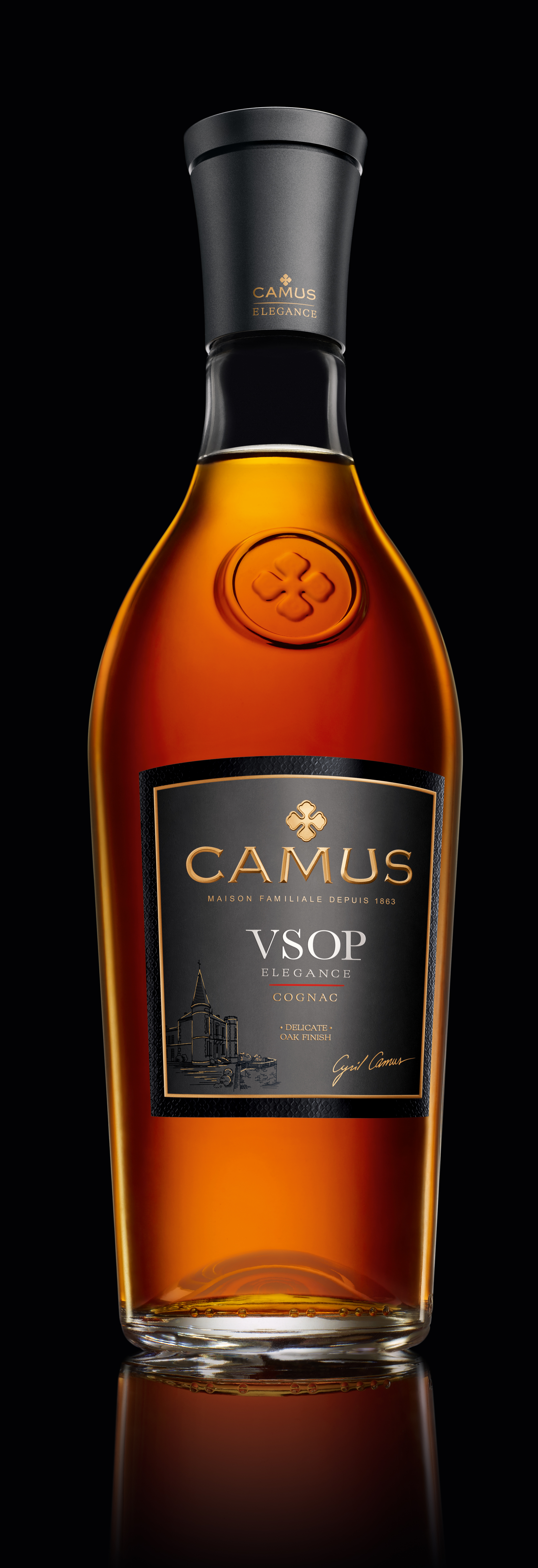 Les bouteilles ont été redessinées par Cyril Camus, Président de la Maison. Précision et raffinement sont les maitres mots des nouvelles lignes et étiquettes de la gamme « Elégance ». Les éléments emblématiques de la marque comme le château du Plessis, le domaine familial, et sa coupole figurent sur les nouveaux étuis. On y retrouve aussi une grappe de raisin, rappelant les origines viticoles de la famille. Enfin le trèfle iconique de Camus est gravé dans le verre des nouvelles bouteilles VS et VSOP de la gamme.