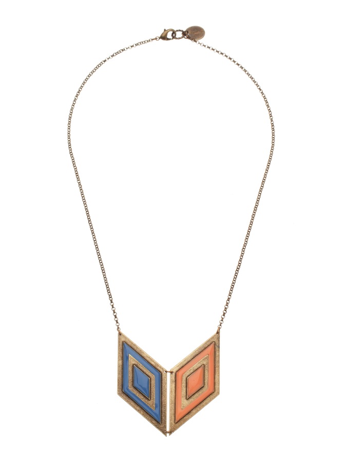 Empruntes de féminité et de légèreté, les créations de Virginie Mahé revisitent les années folles. Avec des touches graphiques et colorées, les bijoux sont en laiton traité anti-allergique et en émail.