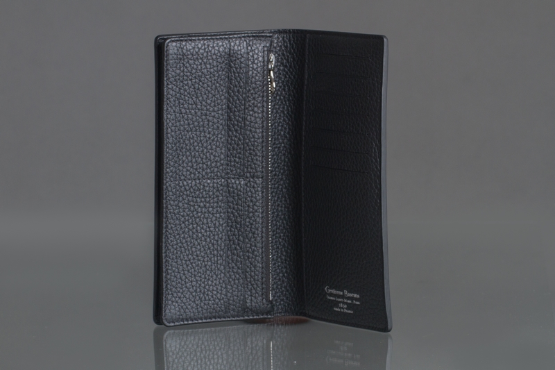 le Biarritz toile ou cuir. Gratianne Bascans propose également deux portefeuilles : le Luzien, disponible en petit et grand modèle.Le Chistera, avec sa forme rappelant les montagnes du Pays basque, incarne le luxe discret de l’homme actif et raffiné. Ses doubles surpiqures en fil contrasté et son intérieur doublé de toile bayadère apportent une originalité et une classe incomparable pour celui qui le détient.